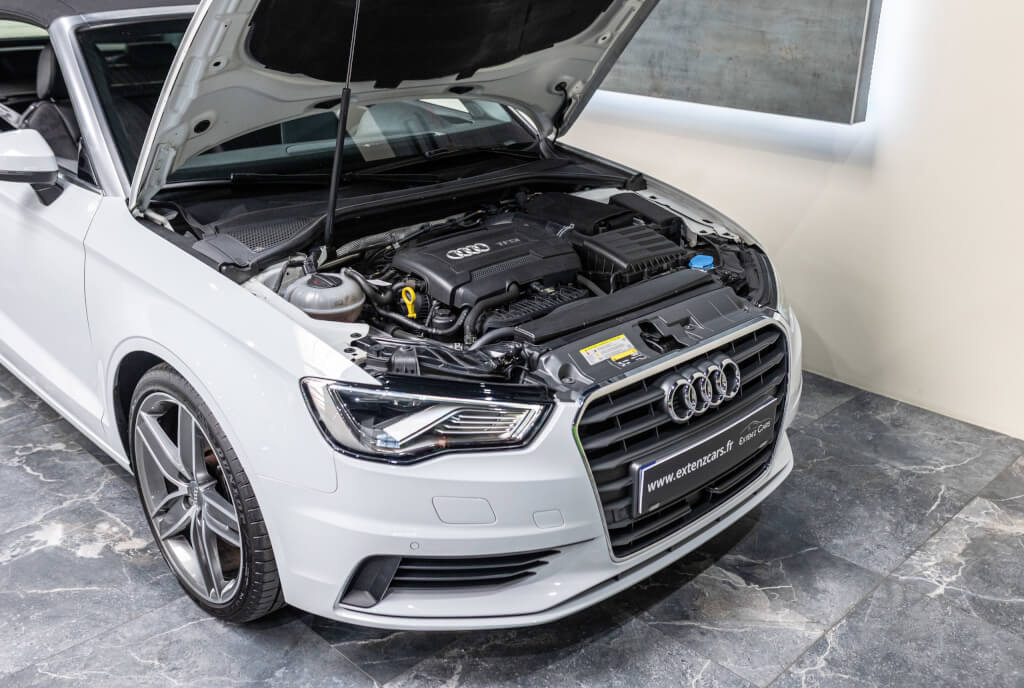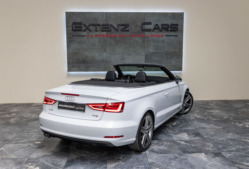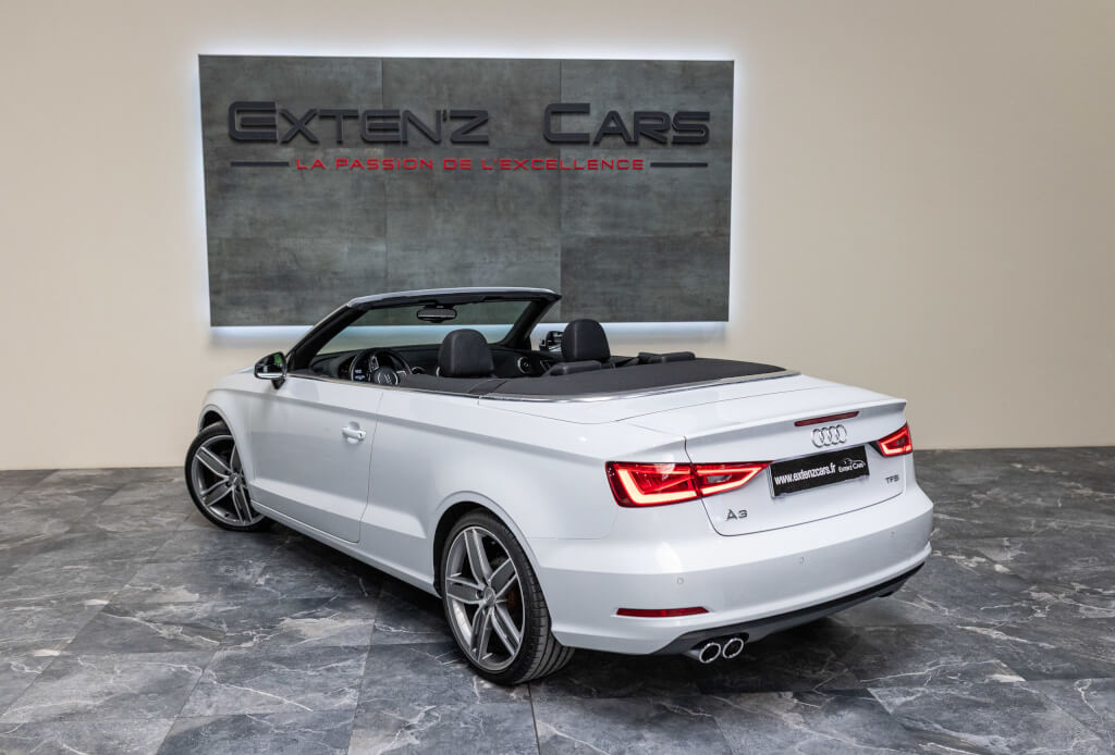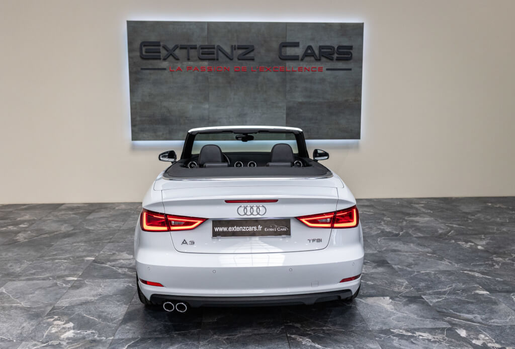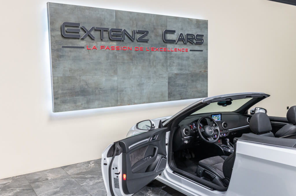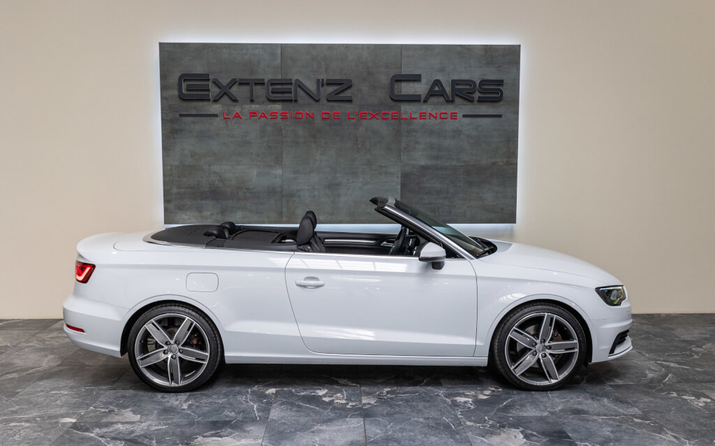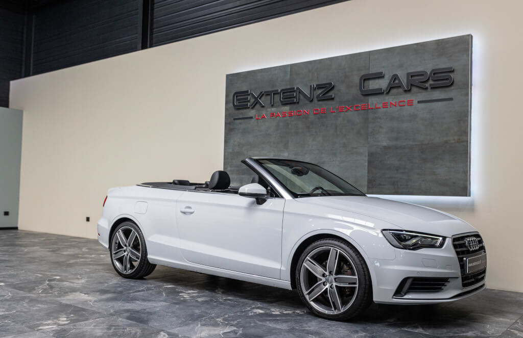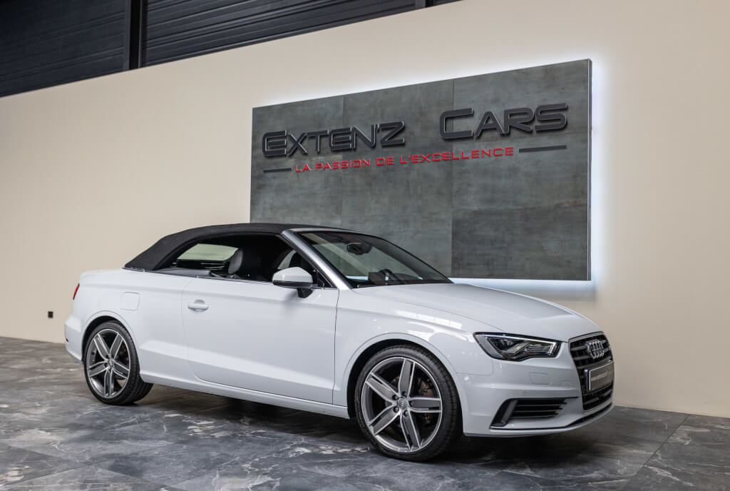 EXTEN’Z CARS vous propose cette superbe Audi A3 Cabriolet, mise en circulation le 30/01/2014, dans un très beau Blanc Glacier. Une configuration recherchée, aussi élégante que discrète, parfaitement mise en valeur par une ligne pure et intemporelle. Sous le capot, le 1.8 TFSI développe 180 CV , avec la remarquable boîte automatique S-Tronic à 7 rapports, connue pour sa réactivité et sa douceur. C’est une voiture qui se conduit avec le sourire, qu’on ouvre au moindre rayon de soleil, mais qui reste assez polyvalente pour être appréciée au quotidien. Une A3 Cabriolet qui a tout d’une grande : du look, du tempérament, de la fiabilité — sans en faire trop, juste ce qu’il faut pour rouler différent, avec classe.
