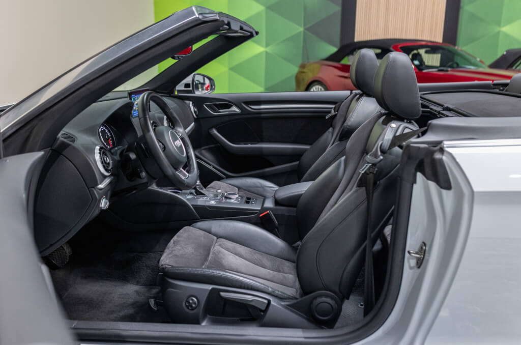 Cette A3 Cabriolet, ayant appartenu au même propriétaire depuis 2015, a bénéficié d’un entretien rigoureux exclusivement en concession AUDI.