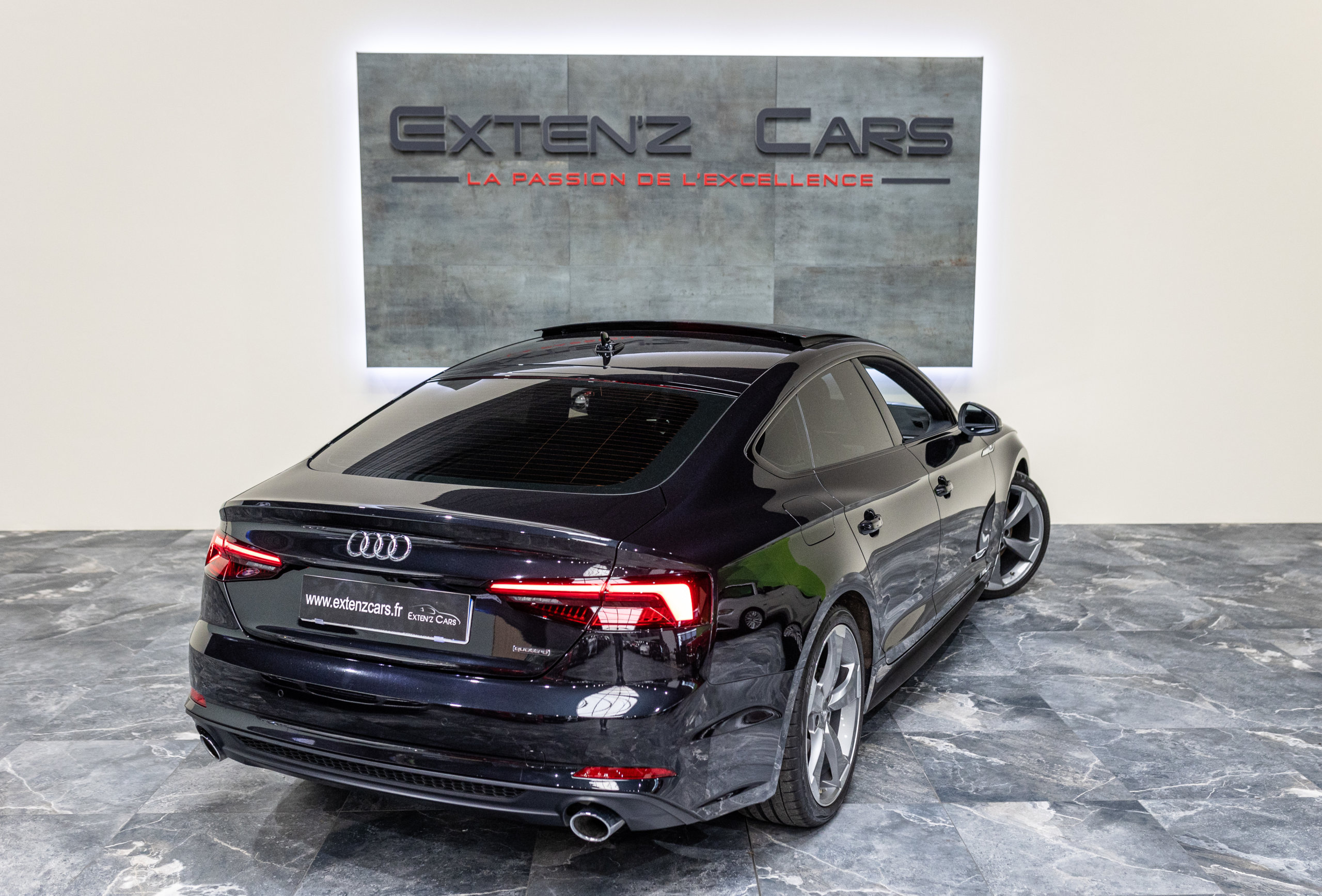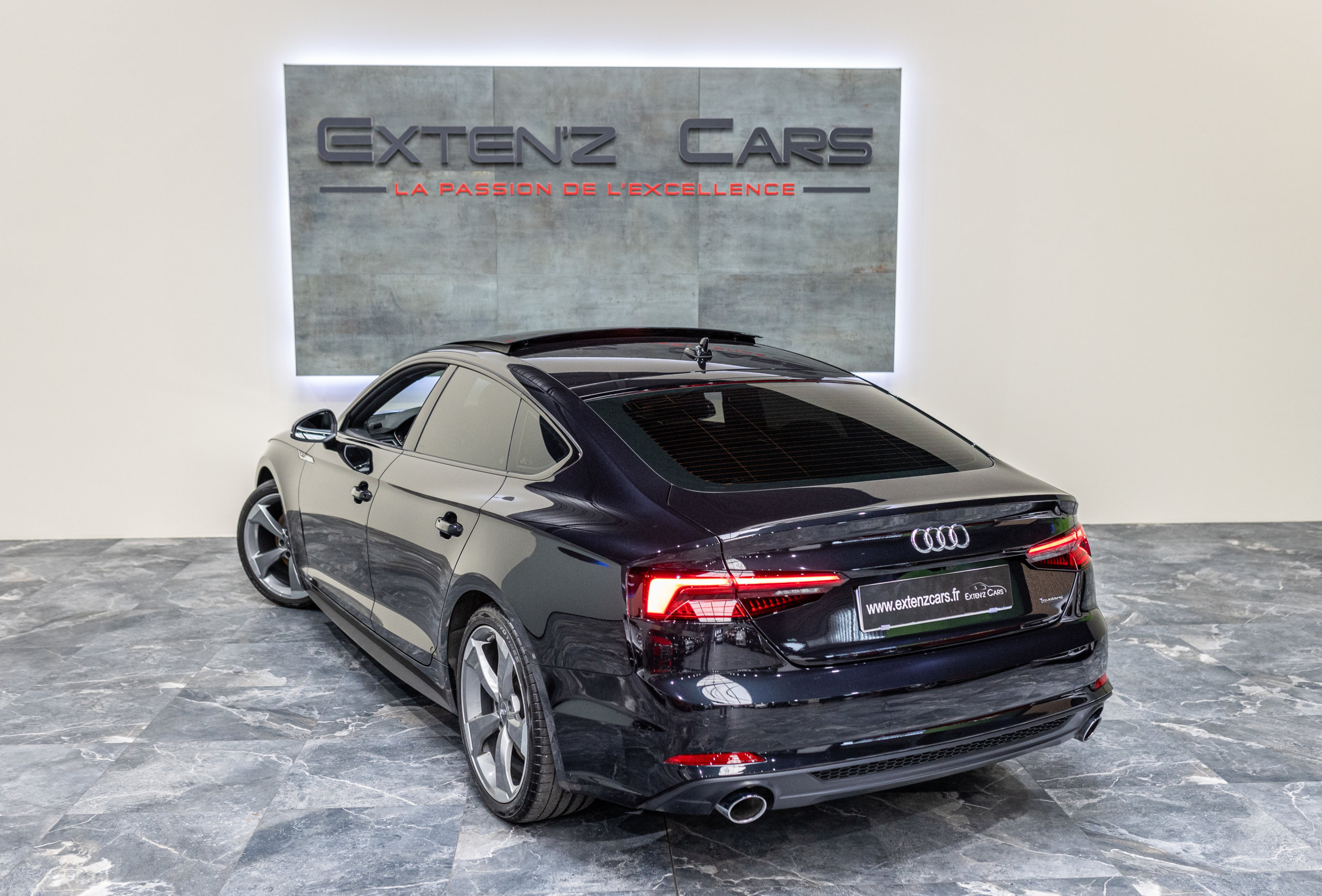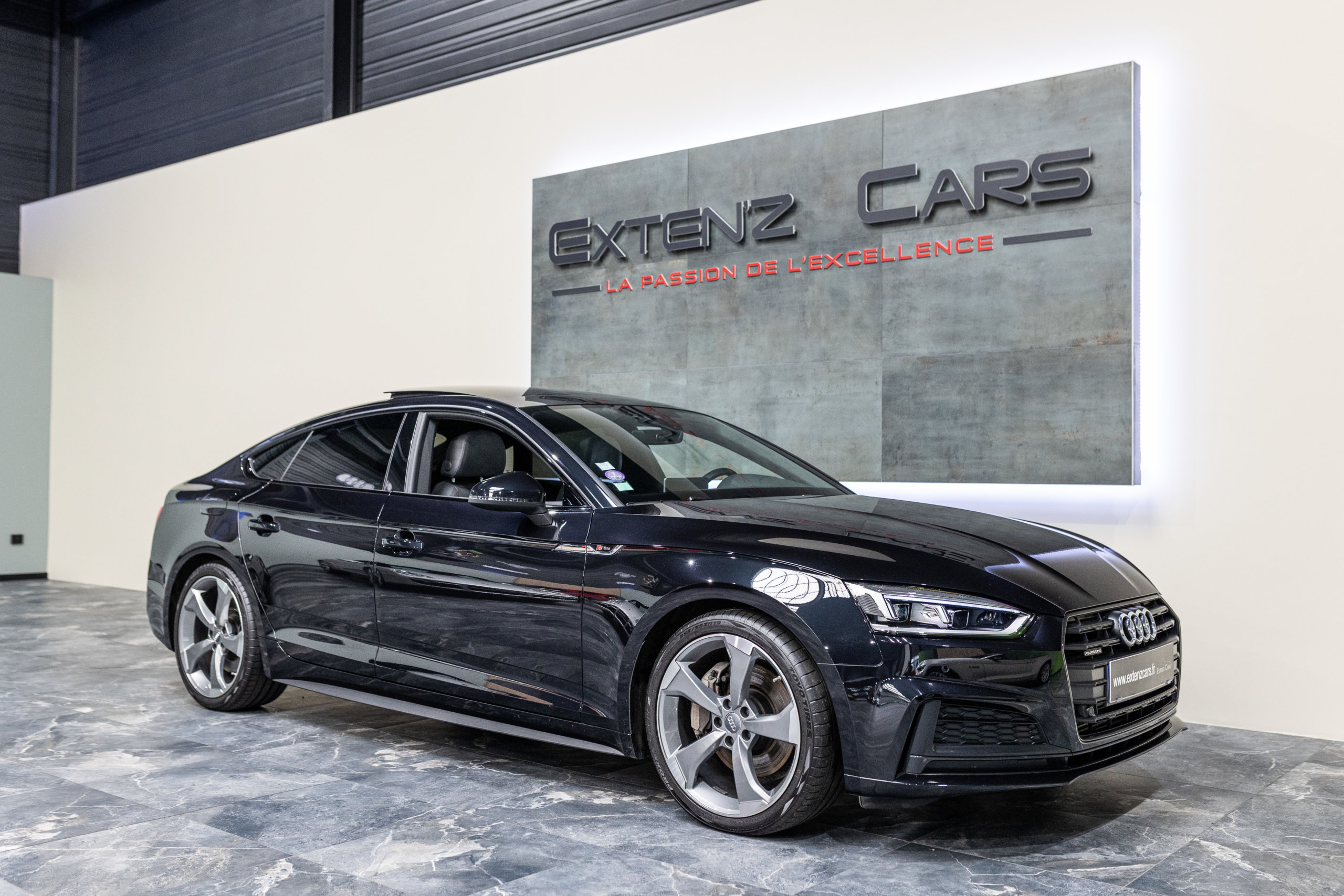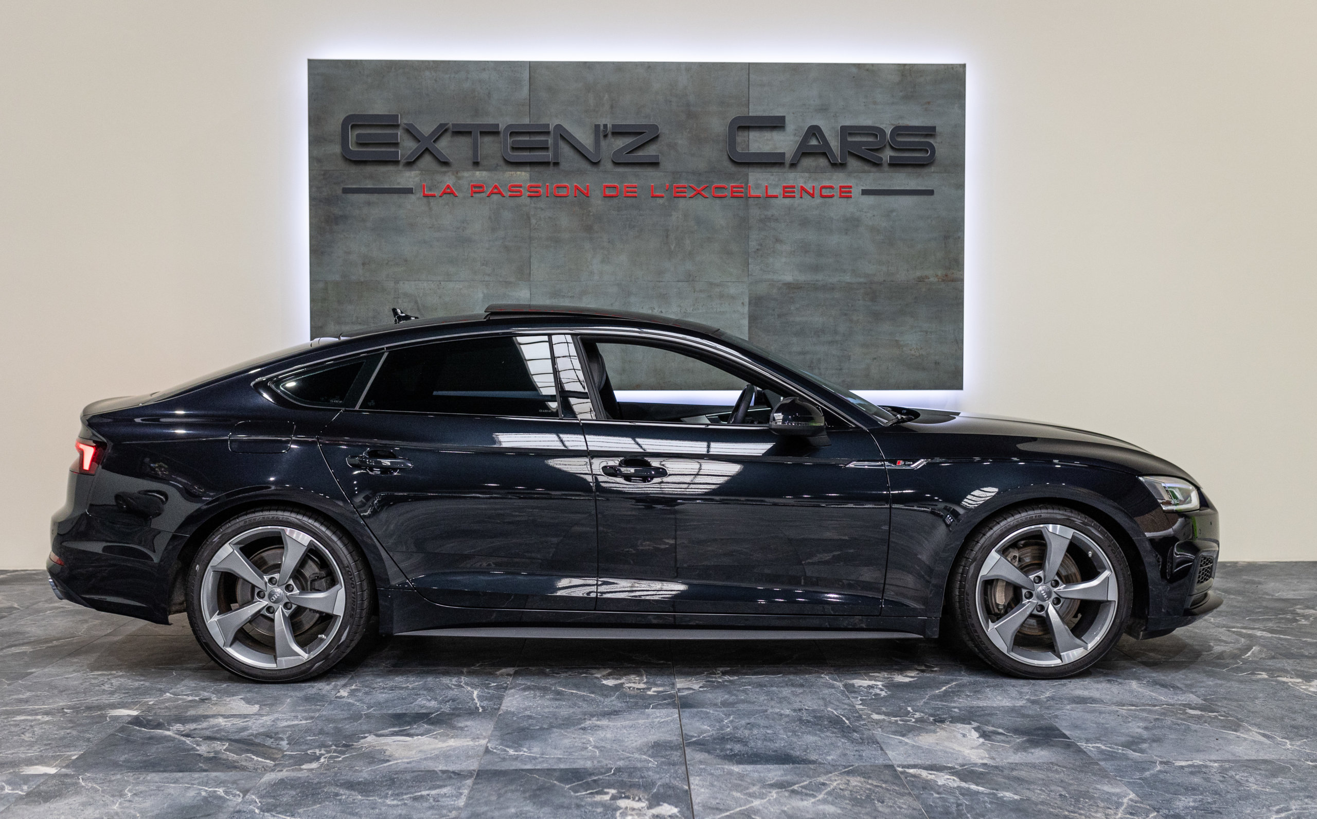 EXTEN’Z CARS vous propose cette magnifique AUDI A5 Sportback S-Line Quattro 2.0 TFSI développant 252 CV (15cv) mise en circulation le 16/05/2018 de couleur Noir Audi Exclusive Individuelle. Associée à une boite à vitesse automatique à double embrayage S-Tronic à 7 rapports. Mode Dynamic enclenché : la direction gagne en précision, l’amortissement devient plus rigide. L’Audi A5 est impeccablement finie, avec des ajustements parfaits et une incontestable qualité dans le choix des matériaux.
