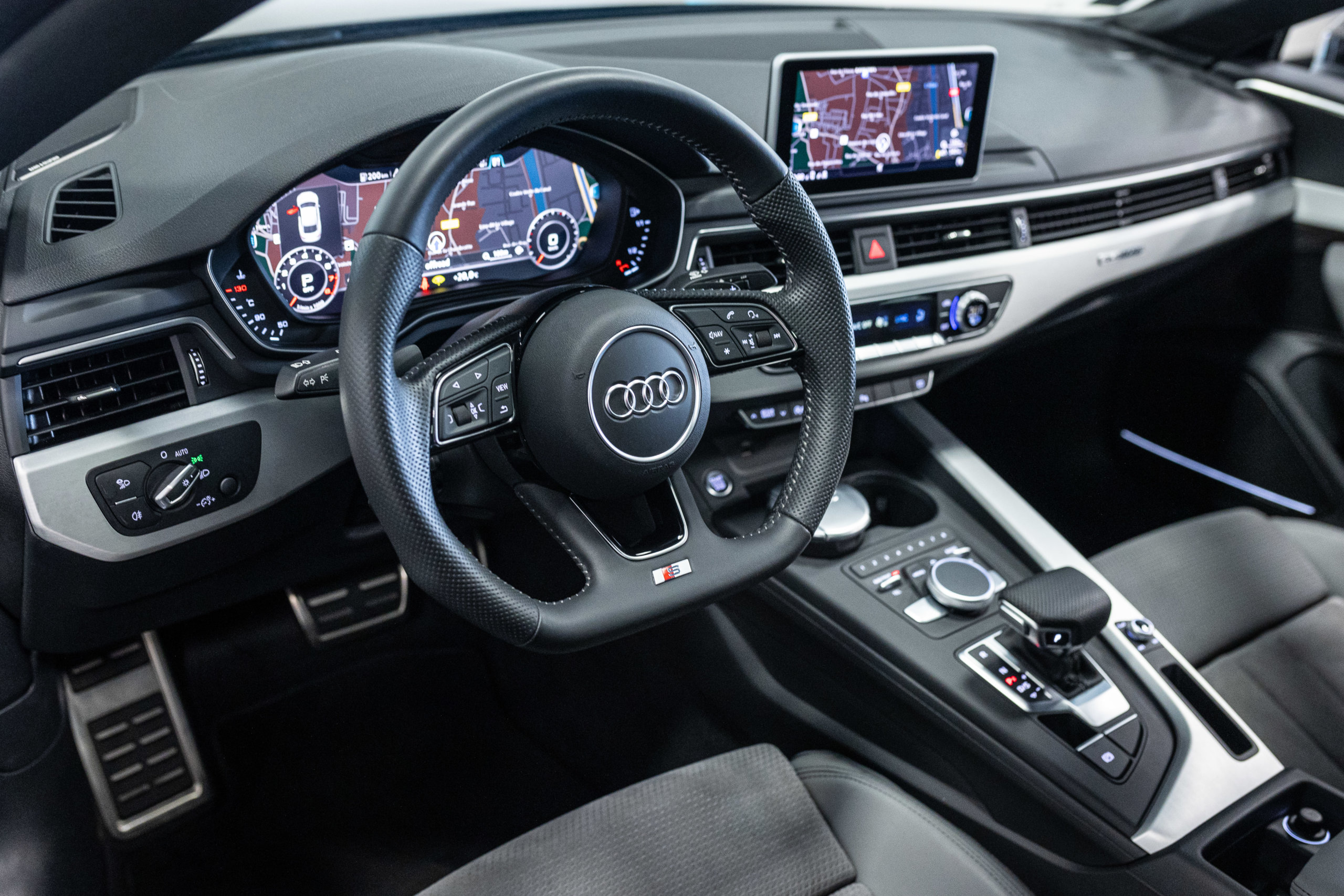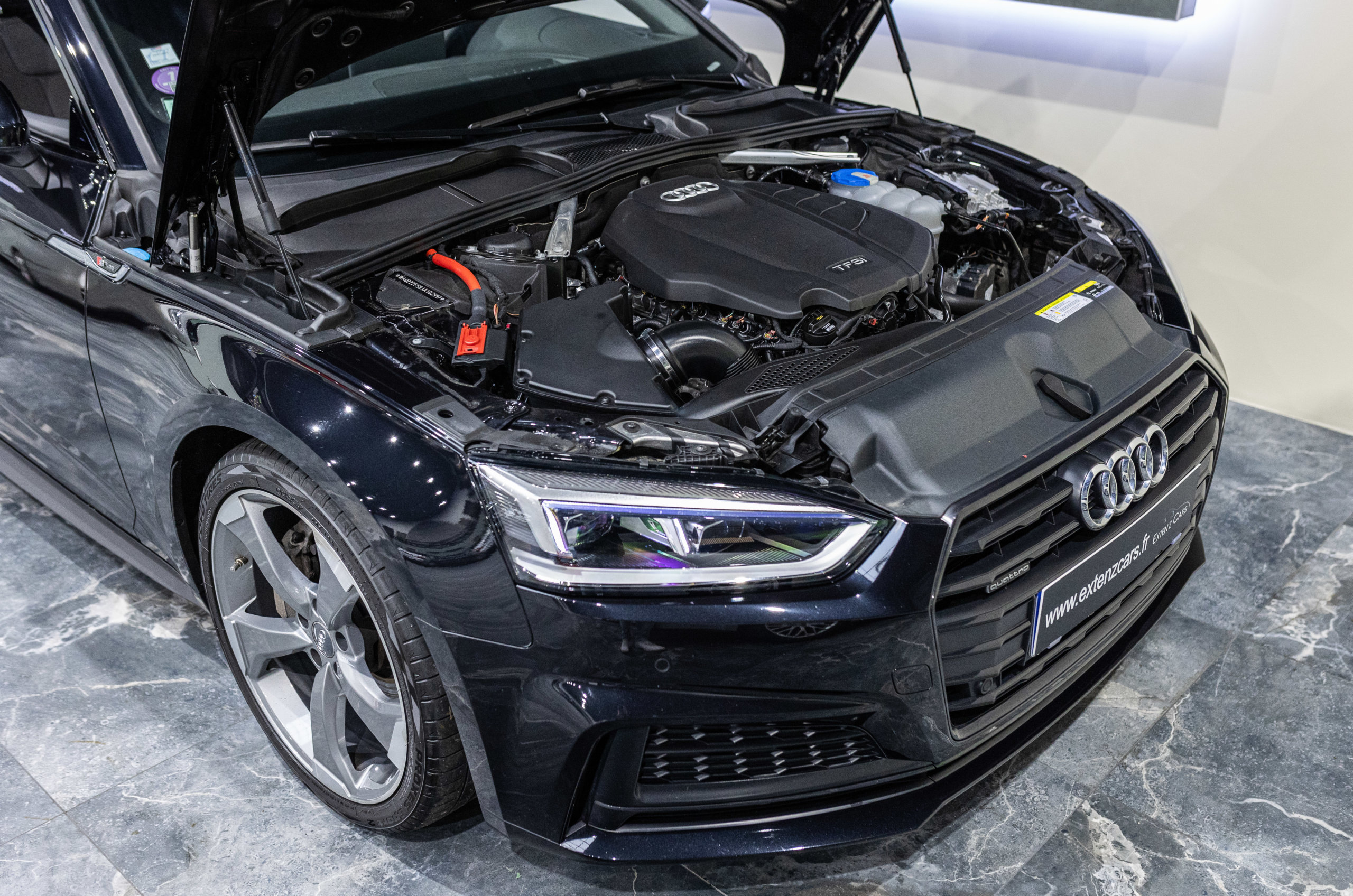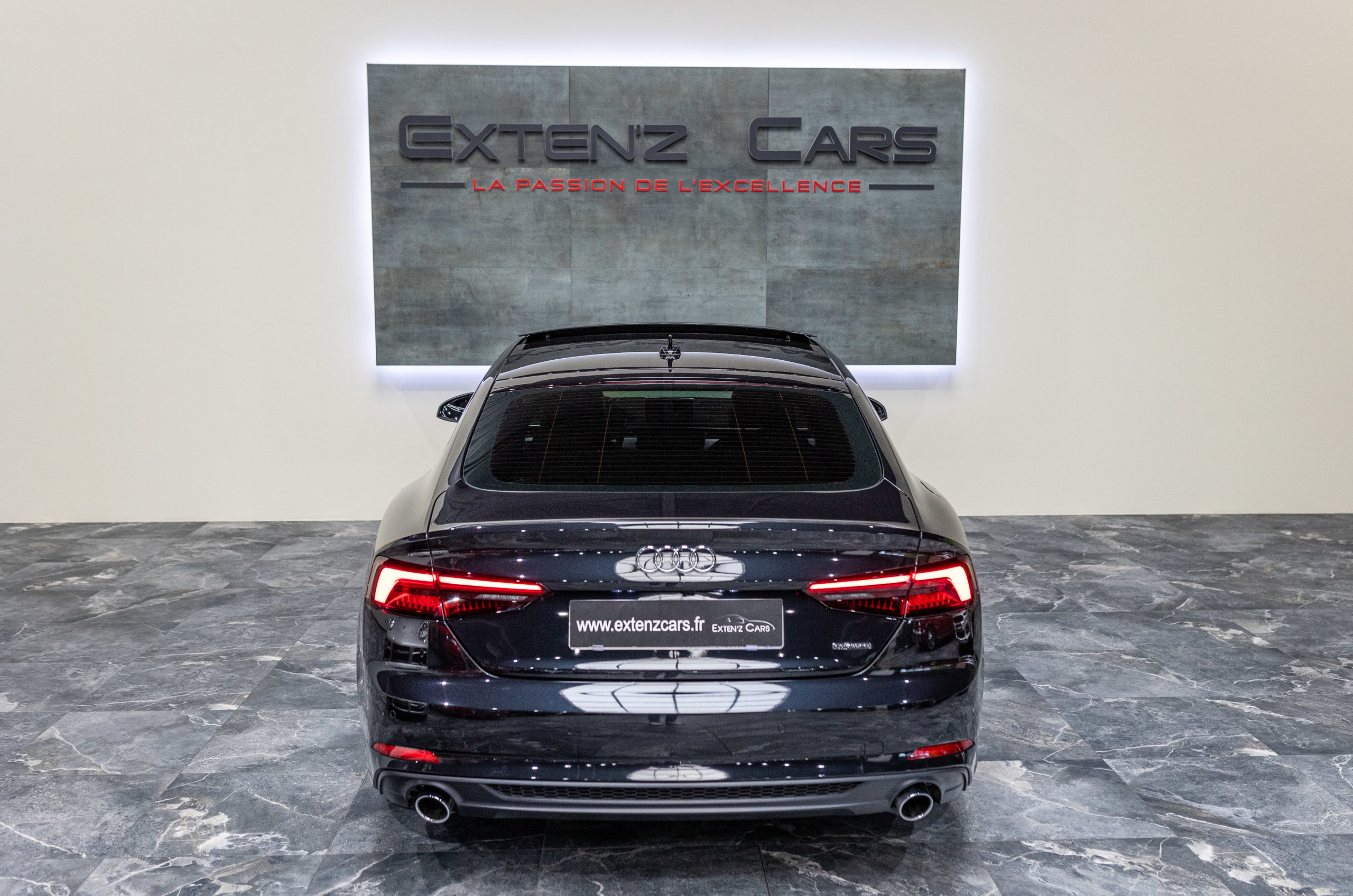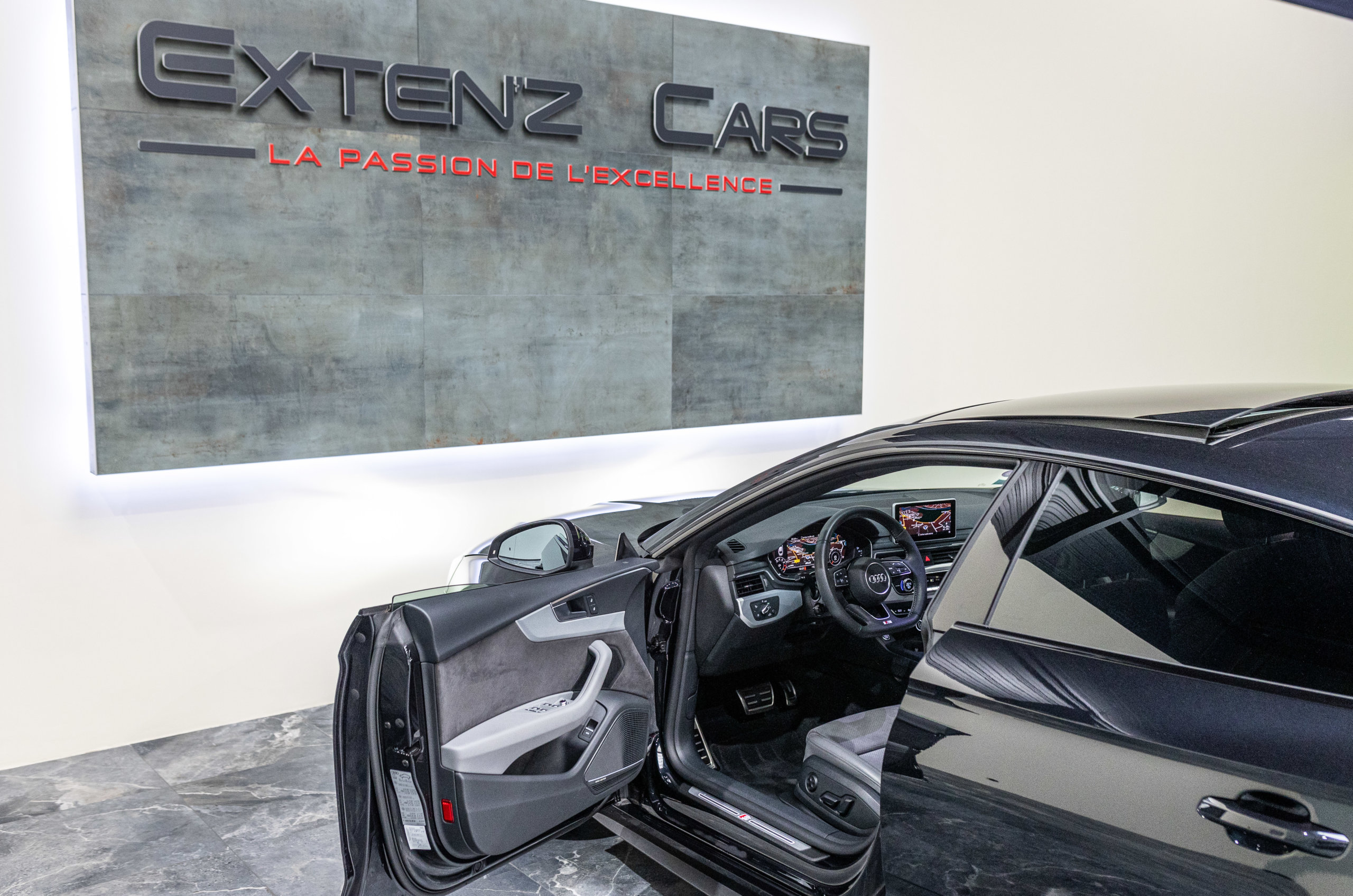 EXTEN’Z CARS vous propose cette magnifique AUDI A5 Sportback S-Line Quattro 2.0 TFSI développant 252 CV (15cv) mise en circulation le 16/05/2018 de couleur Noir Audi Exclusive Individuelle. Associée à une boite à vitesse automatique à double embrayage S-Tronic à 7 rapports. Mode Dynamic enclenché : la direction gagne en précision, l’amortissement devient plus rigide. L’Audi A5 est impeccablement finie, avec des ajustements parfaits et une incontestable qualité dans le choix des matériaux.