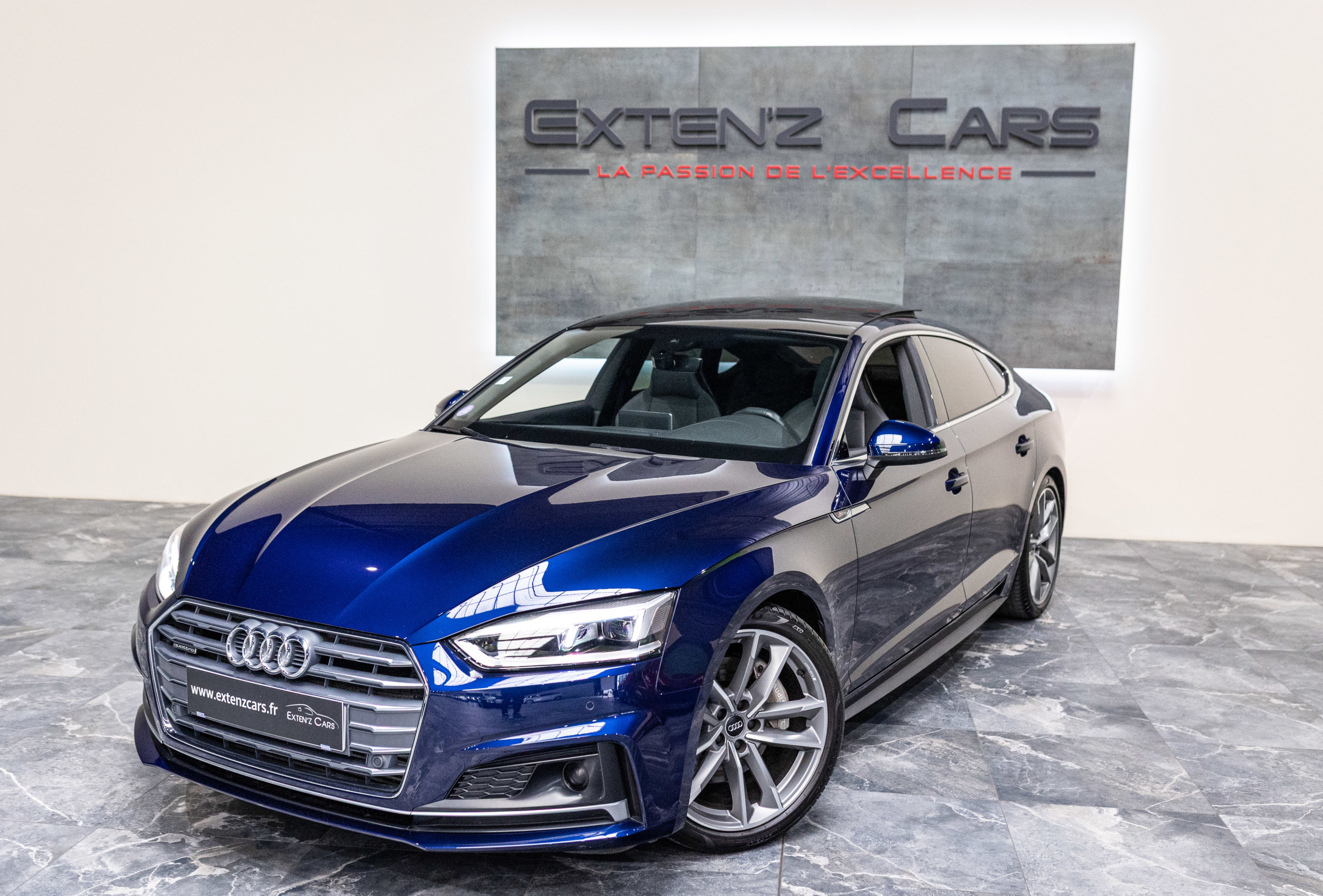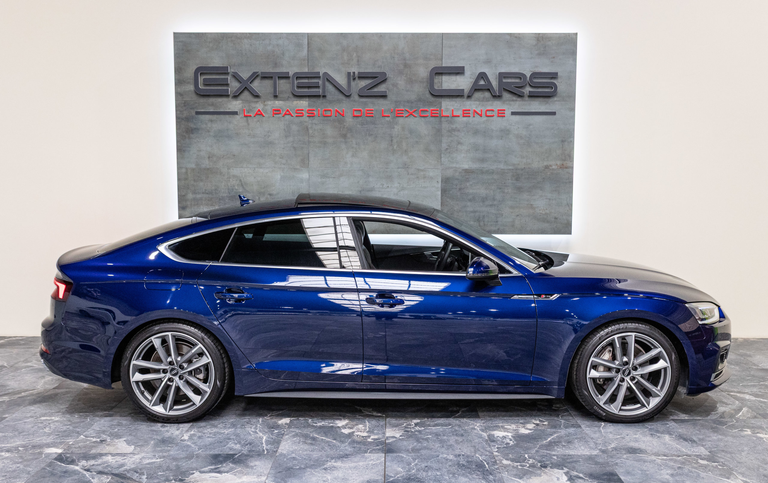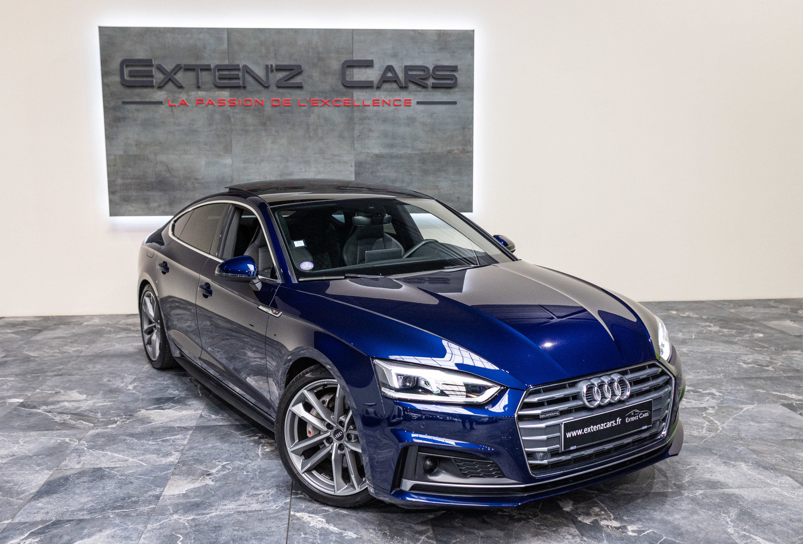 EXTEN’Z CARS vous propose cette magnifique AUDI A5 Sportback S-Line Quattro 45 TFSI développant 245 CV (15cv) mise en circulation le 18/09/2019 de couleur Bleu Navarre Métallisée.  Associée à une boite à vitesse automatique à double embrayage S-Tronic à 7 rapports. Mode Dynamic enclenché : la direction gagne en précision, l’amortissement devient plus rigide. L’Audi A5 est impeccablement finie, avec des ajustements parfaits et une incontestable qualité dans le choix des matériaux.