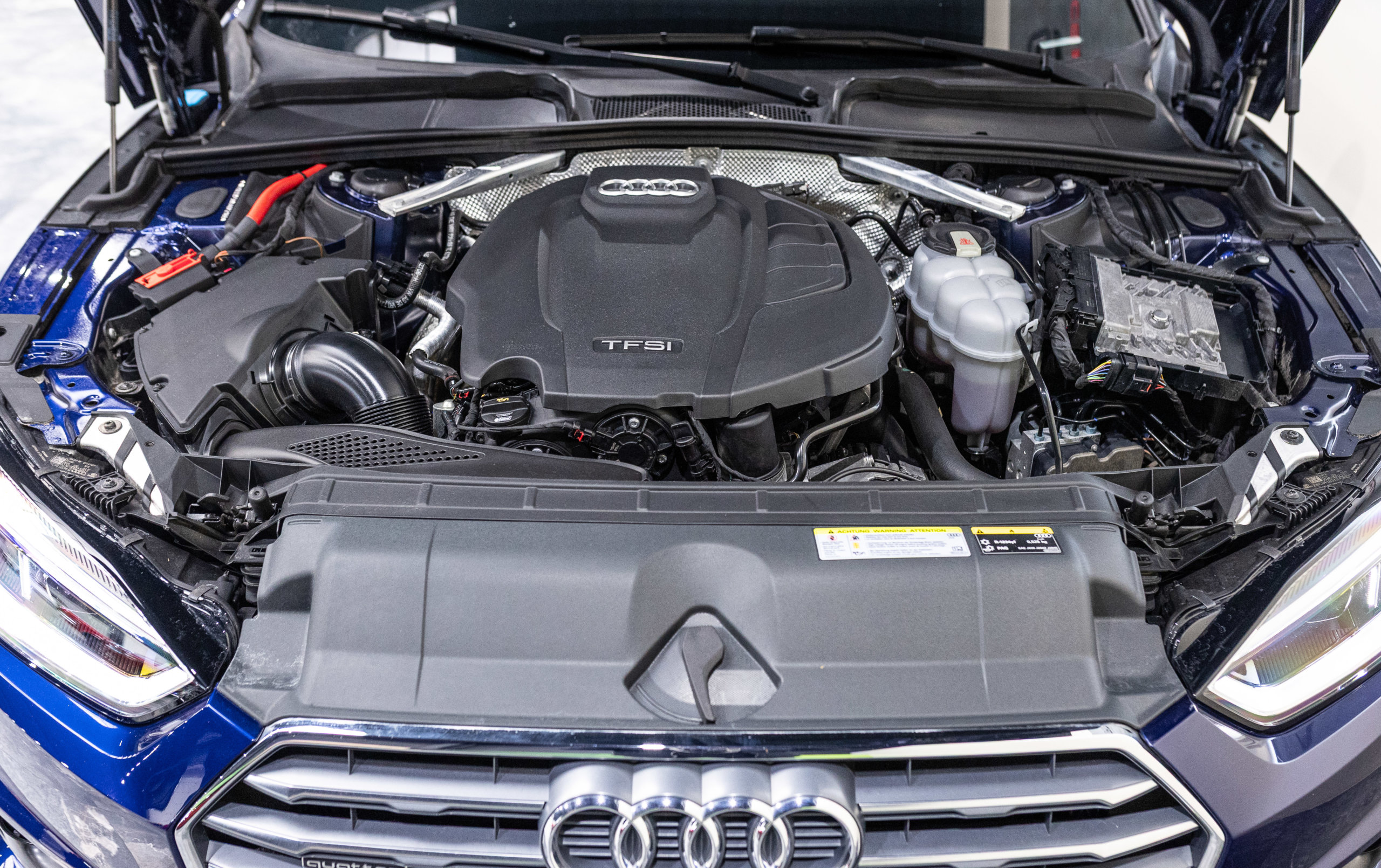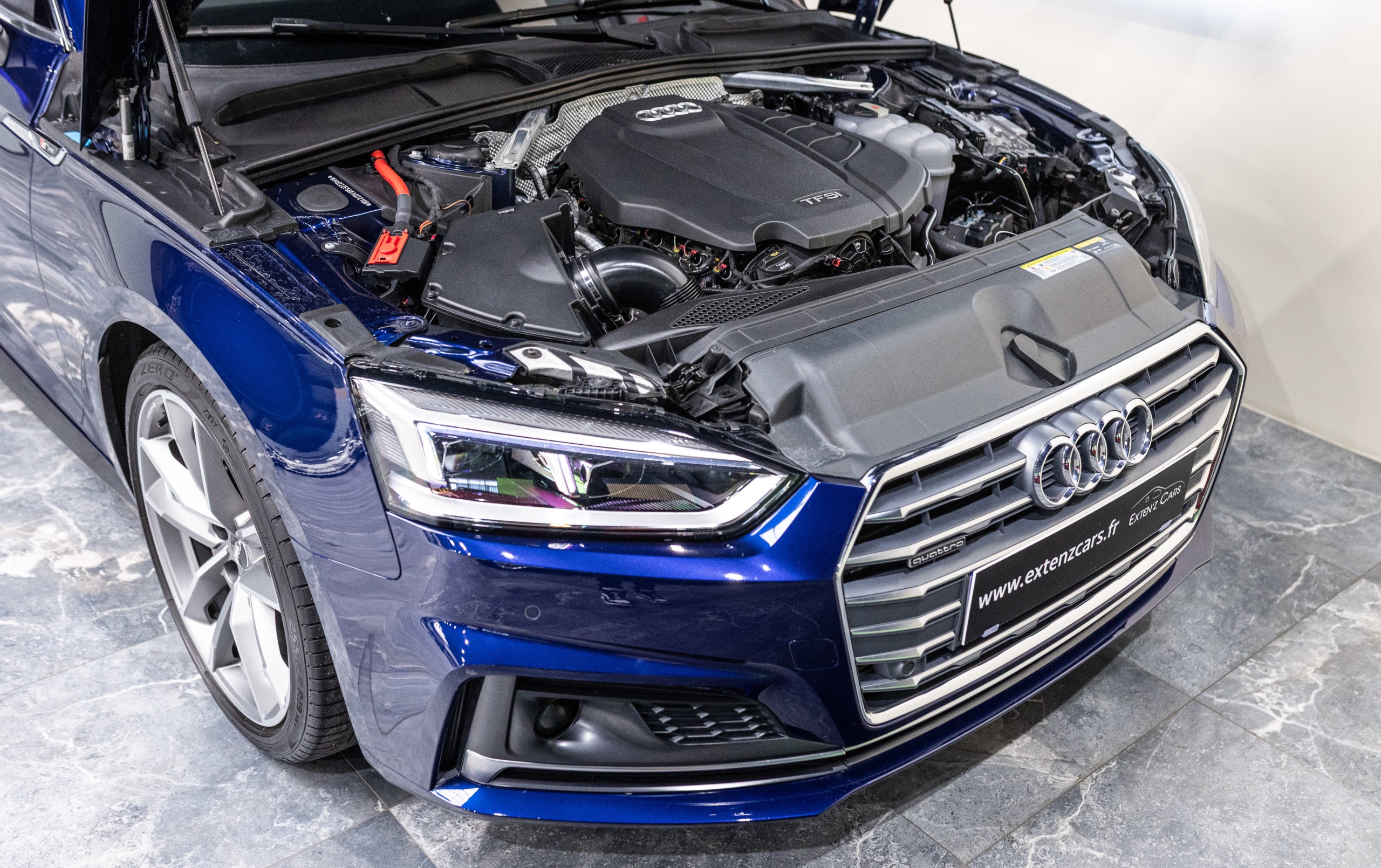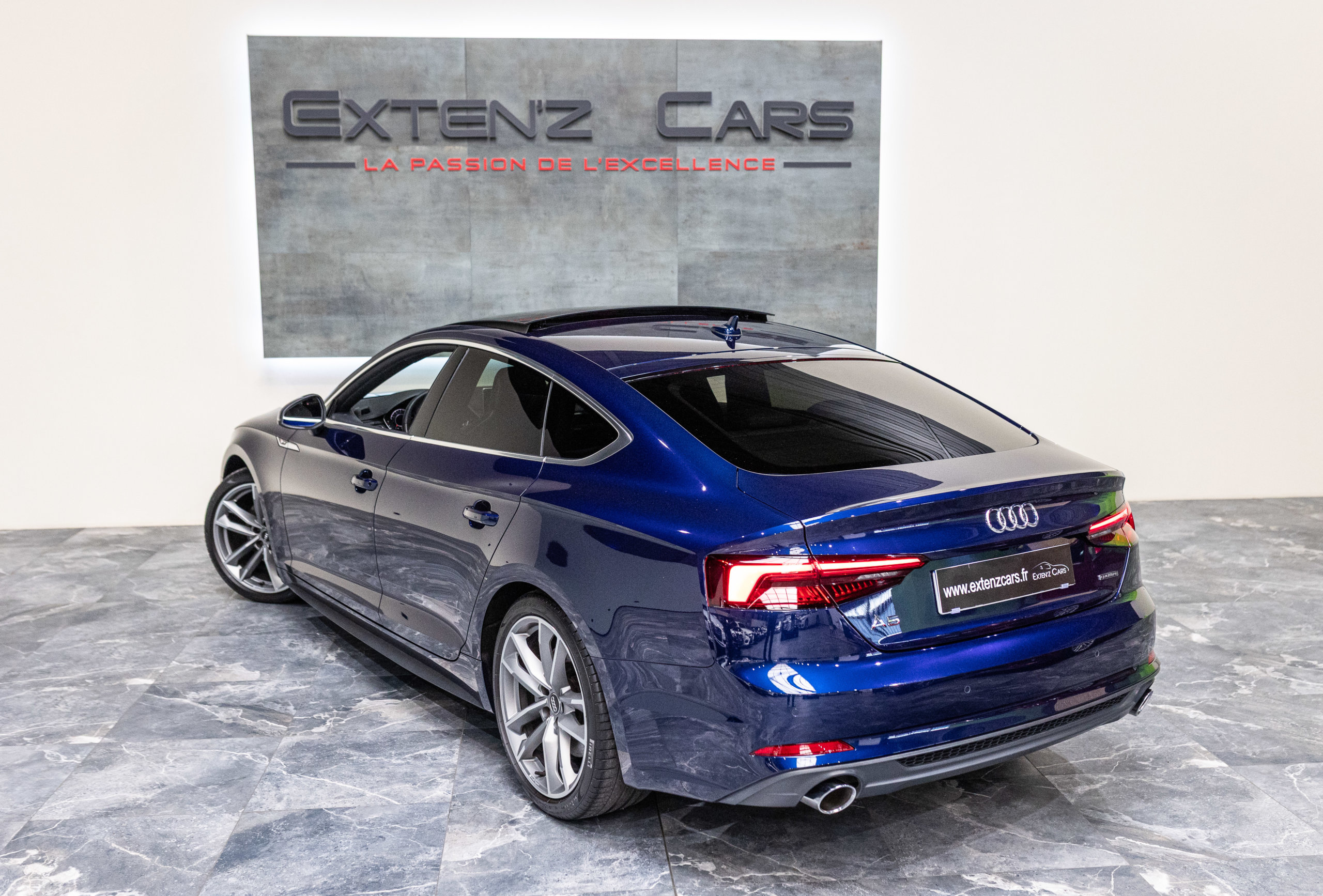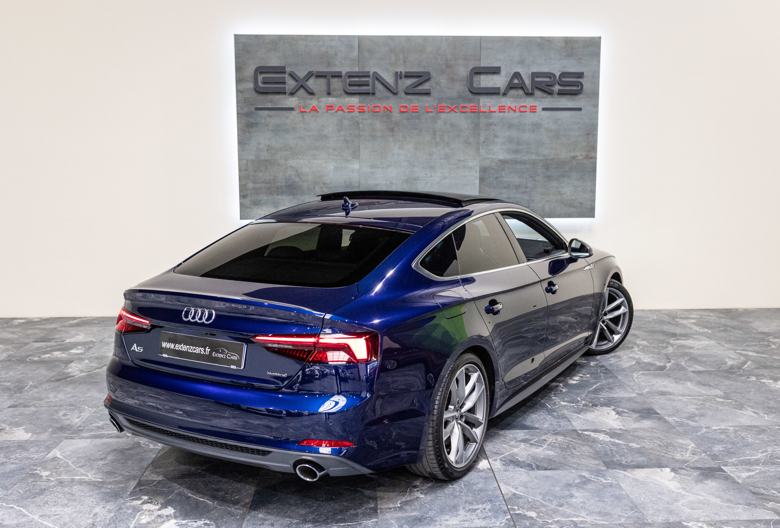 EXTEN’Z CARS vous propose cette magnifique AUDI A5 Sportback S-Line Quattro 45 TFSI développant 245 CV (15cv) mise en circulation le 18/09/2019 de couleur Bleu Navarre Métallisée.  Associée à une boite à vitesse automatique à double embrayage S-Tronic à 7 rapports. Mode Dynamic enclenché : la direction gagne en précision, l’amortissement devient plus rigide. L’Audi A5 est impeccablement finie, avec des ajustements parfaits et une incontestable qualité dans le choix des matériaux.