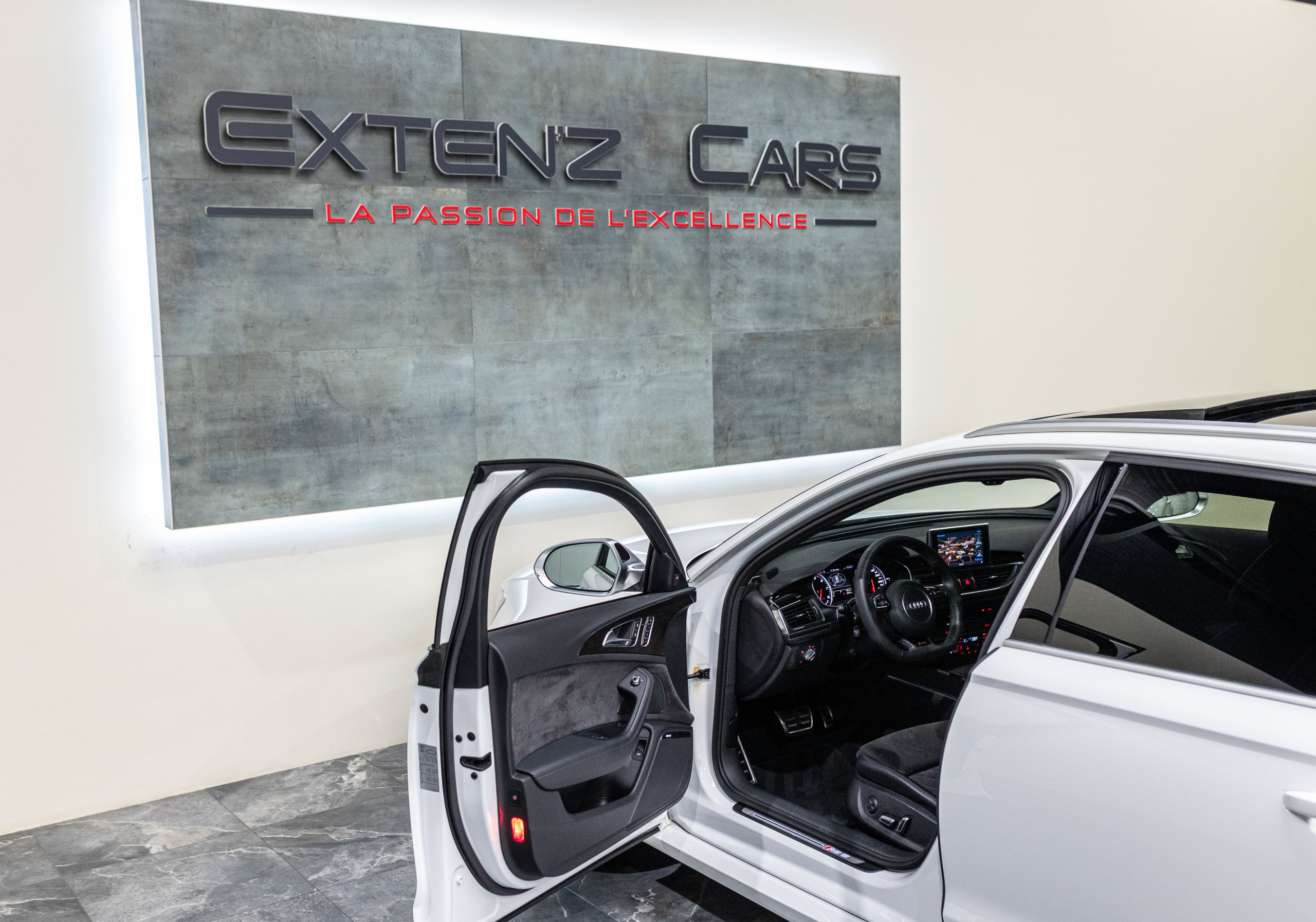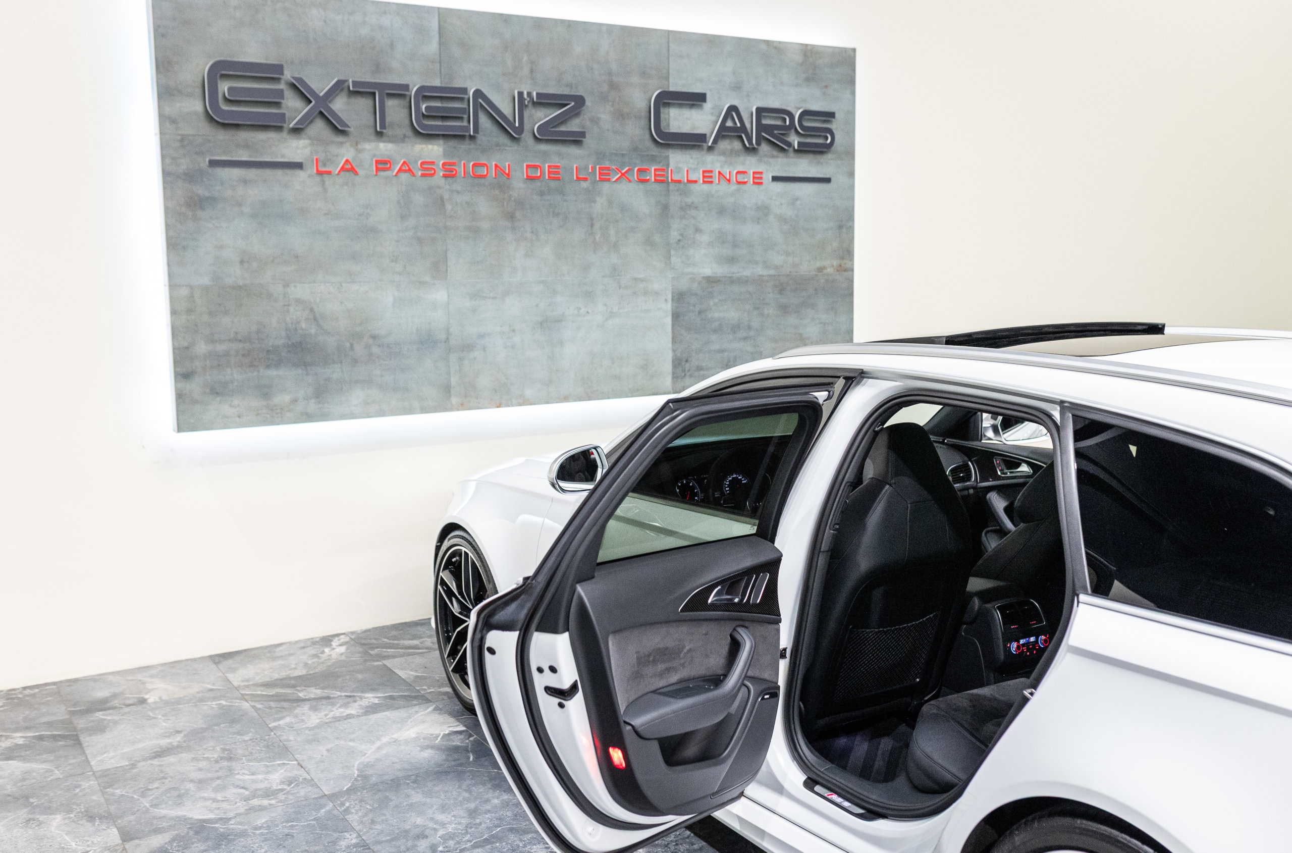 EXTEN’Z CARS vous propose une très belle Audi RS6 Avant C7 4.0 V8 TFSI Quattro, une merveille de puissance incarnée par ses 560 CV (47CV), véritable symbole d’élégance et de performance, mise en circulation le 22/10/2013. Une configuration rare et soignée, avec une teinte Blanc Ibis qui met parfaitement en valeur les lignes tendues et le caractère affirmé de ce break hautes performances. L’intérieur est à l’image de l’extérieur : sobre, élégant et sportif. Finition Audi irréprochable, sièges sport confortables, détails carbone et aluminium, tout respire la qualité et le plaisir de conduite. C’est un modèle qui sait tout faire : transporter la famille avec style, voyager loin avec sérénité, ou simplement faire vivre la passion de la belle mécanique.