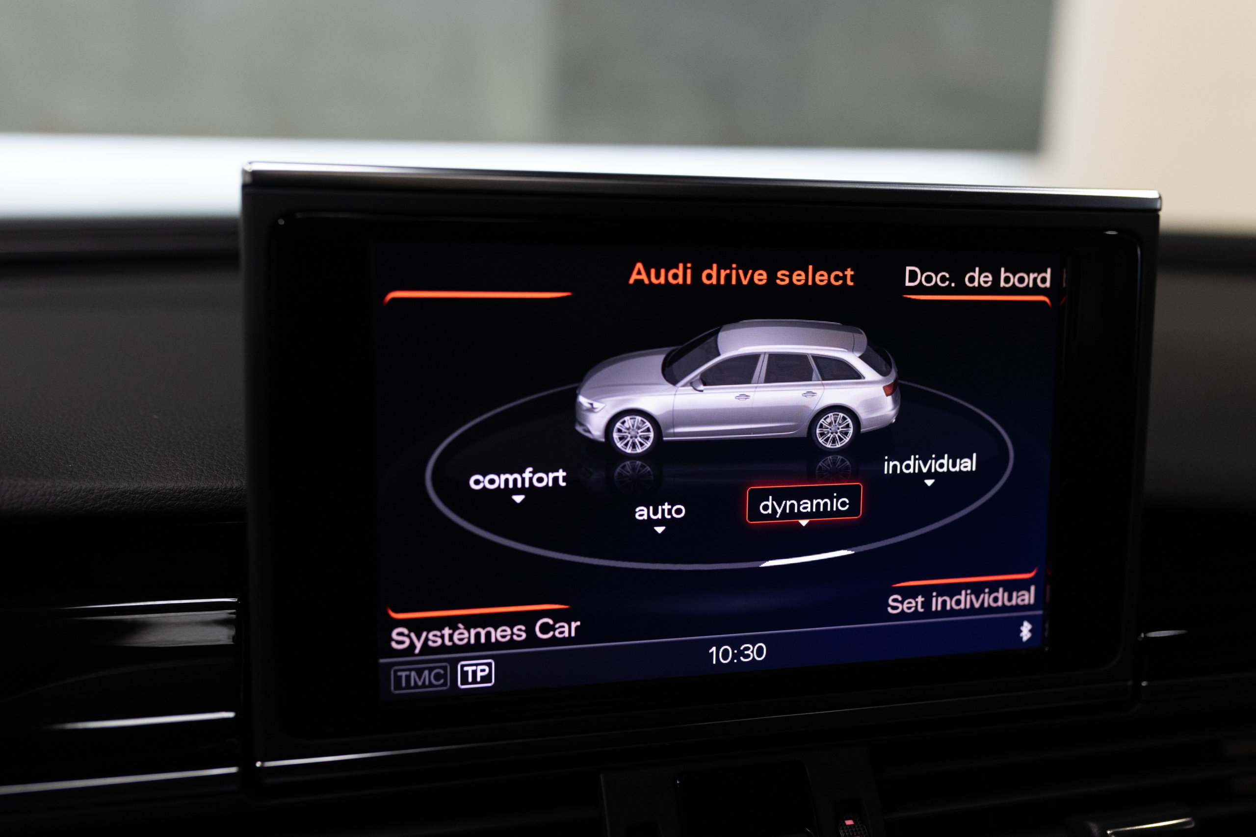 – AUDI Drive Select (Le Drive Select offre la possibilité de combiner les différents paramètres des trois modes de conduite, dynamique, sport ou confort, par exemple en associant un réglage sportif de l’amortissement à une direction très assistée, également la sonorité du moteur)