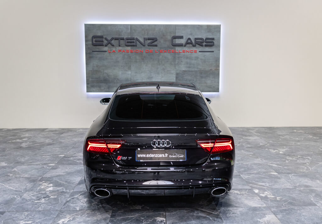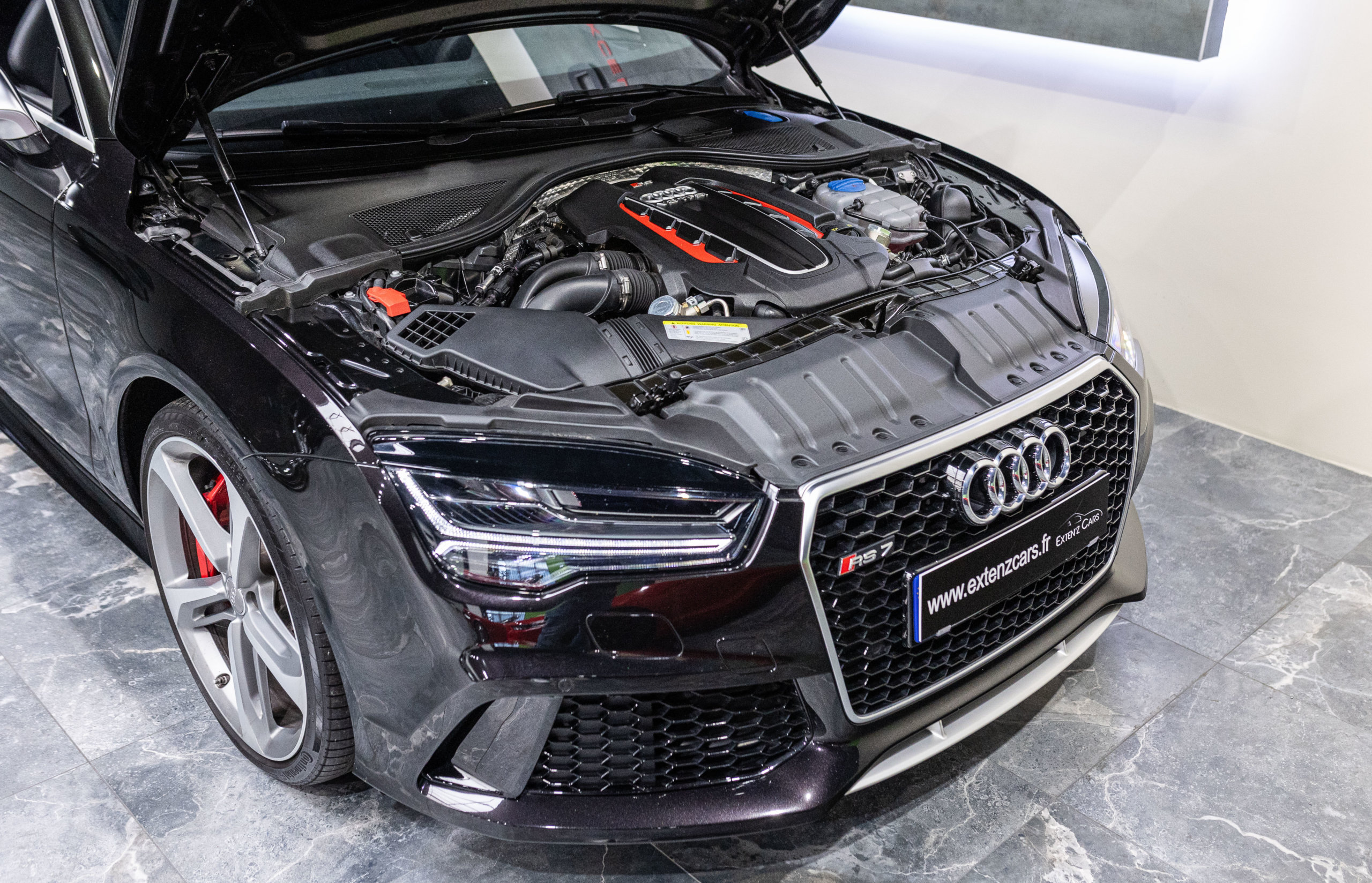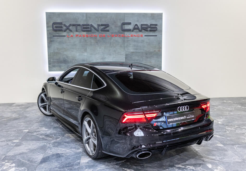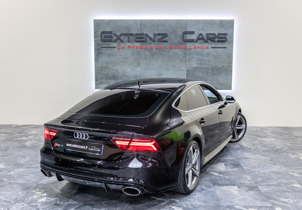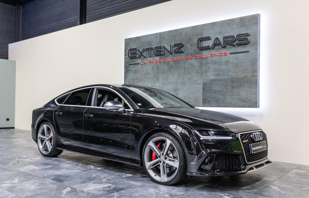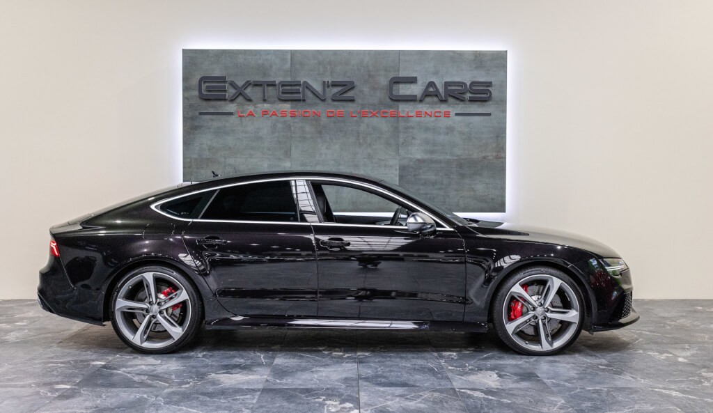EXTEN’Z CARS a l’immense plaisir de vous proposer cette splendide Audi RS7 Sportback 4.0 V8 TFSI Quattro, une merveille de puissance incarnée par ses 560 CV (47CV), véritable symbole d’élégance et de performance. Première mise en circulation le 11/05/2015, elle se pare d’une sublime robe Noir Panthère Cristal, qui souligne son allure à la fois majestueuse et dynamique. La conduite se révèle être une symphonie mécanique grâce à une transmission automatique fluide à 8 rapports. Vivez le frisson de la RS7 Sportback, une harmonie parfaite de sophistication, d’audace et de puissance.