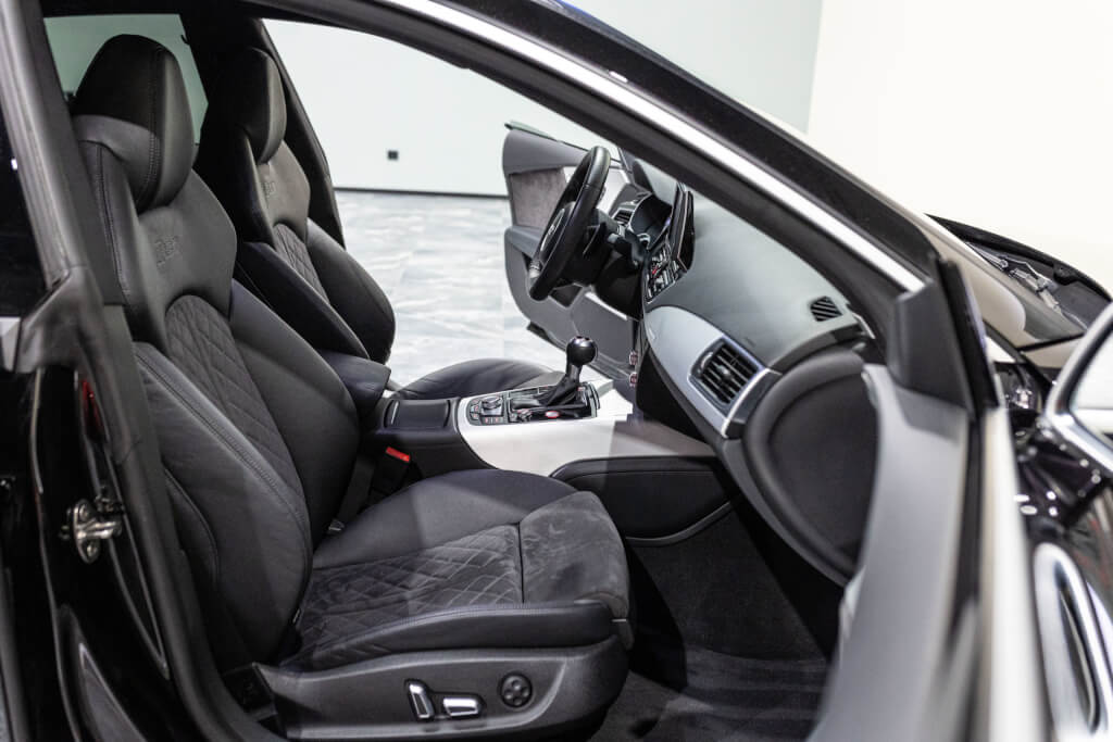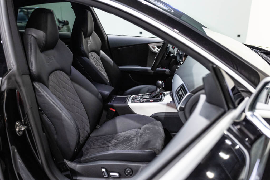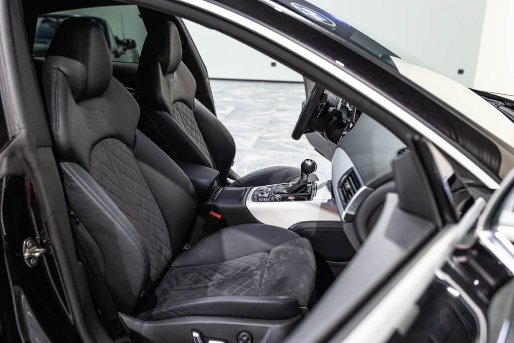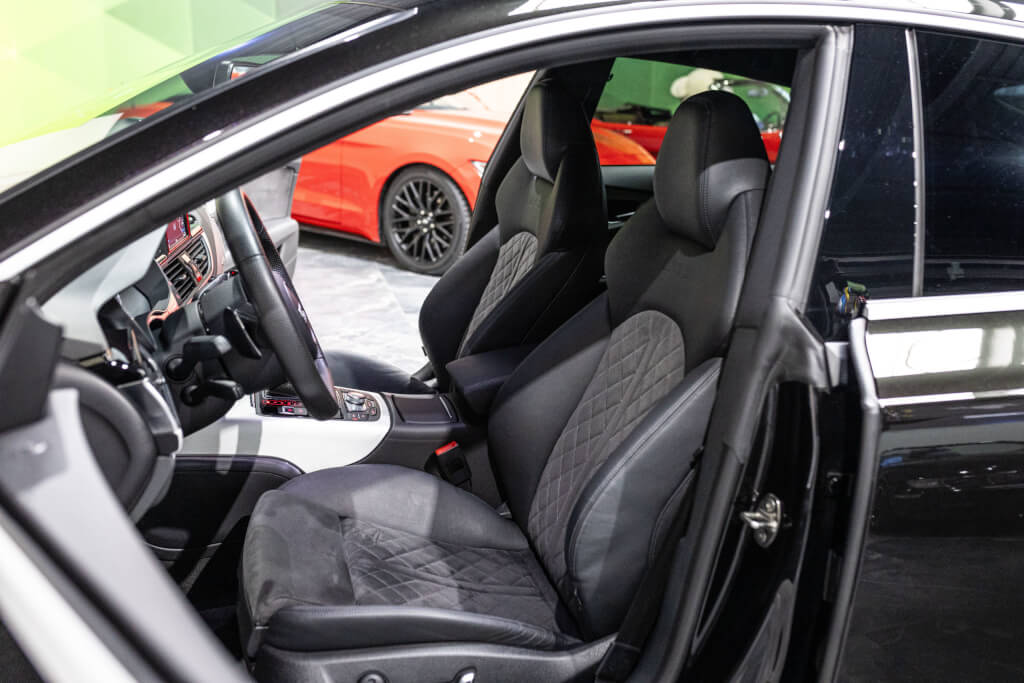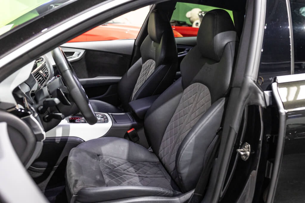 – Sellerie Cuir/Alcantara Noir avec Surpiqûres Diamant et Embossée RS7
