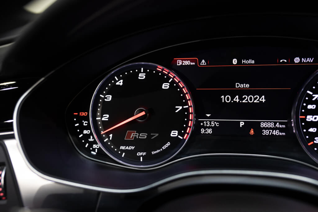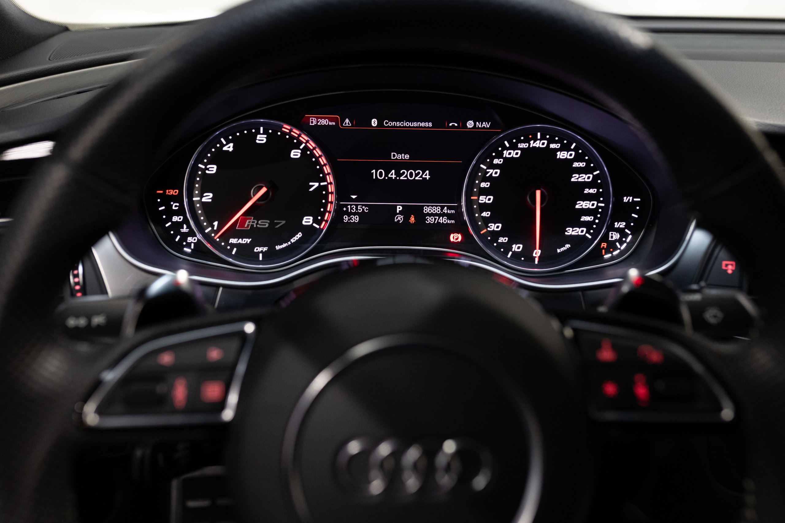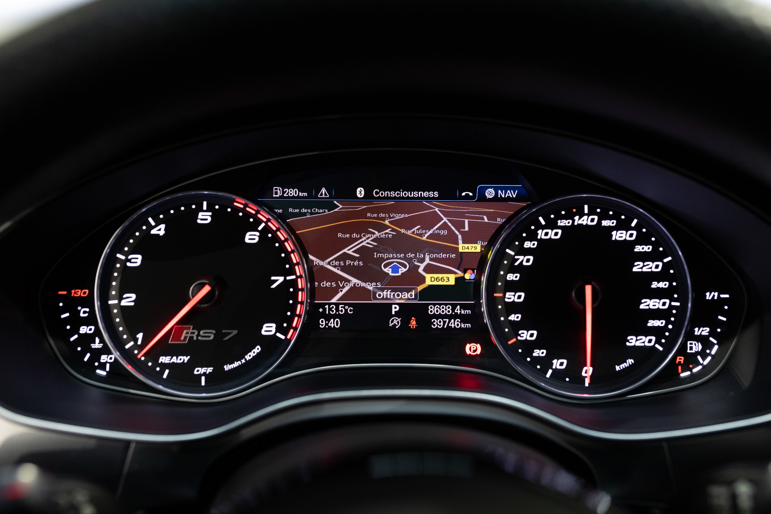 Cette RS7 Sportback de seconde main, se distingue par un faible kilométrage de 39.000 Km et se présente dans un état exceptionnel, proche du neuf, avec un historique d’entretien transparent et méticuleux exclusivement chez AUDI.