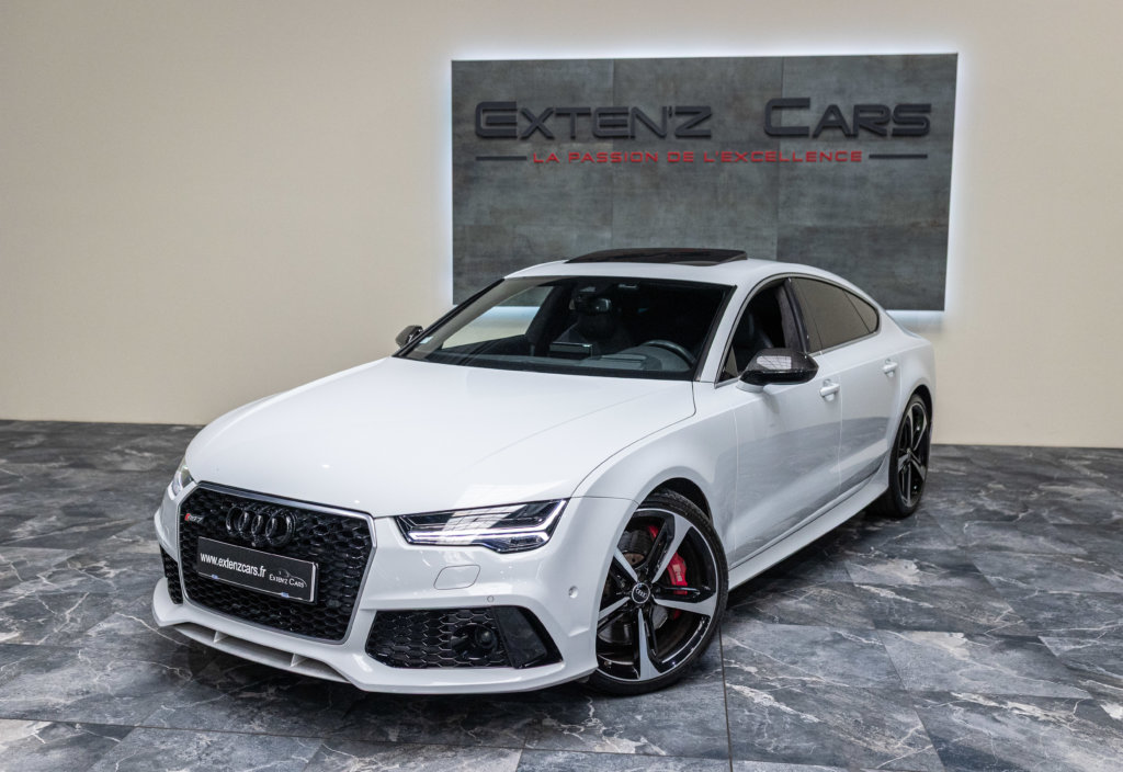 EXTEN’Z CARS vous présente une élégante Audi RS7 Sportback 4.0 V8 TFSI Quattro 560 CV (47cv), mise en circulation le 27/09/2015, habillée d’un somptueux Blanc Glacier Nacrée. Une voiture qui séduit par son style unique, mélange parfait entre le luxe d’une grande berline et le caractère affirmé d’une sportive. Sa silhouette Sportback lui donne une présence raffinée et dynamique, aussi belle à regarder qu’agréable à conduire. À l’intérieur, on retrouve tout le savoir-faire Audi, finitions haut de gamme, matériaux de qualité, sièges sport confortables et maintien impeccable, une ambiance où chaque détail respire le sérieux et l’élégance. Polyvalente, elle sait offrir un confort de tous les jours comme des moments de conduite passionnants dès qu’on libère le V8.