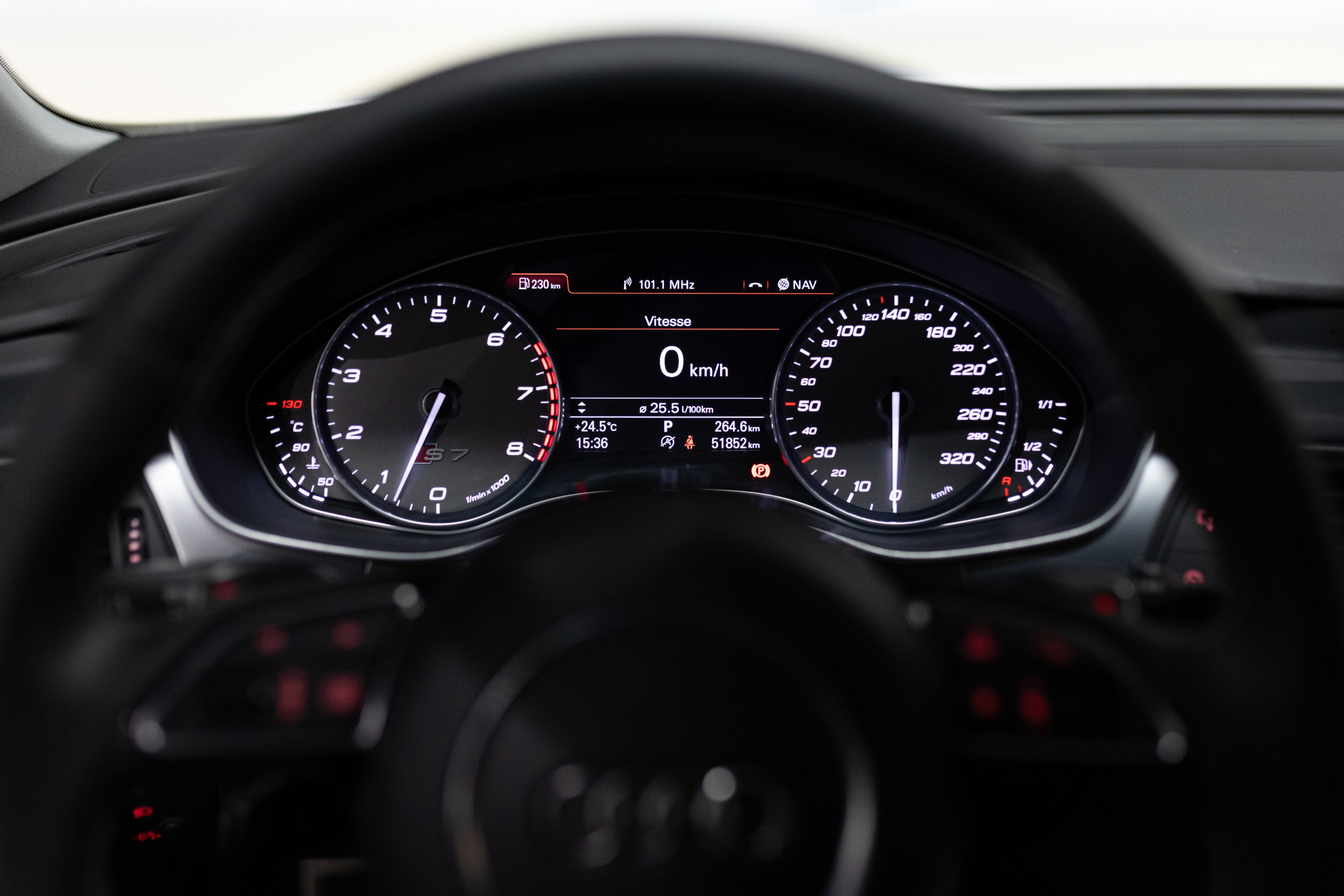 Cette S7 Sportback de Première main, se distingue par un faible kilométrage de 52.000 Km et se présente dans un état exceptionnel, proche du neuf, avec un historique d’entretien transparent et méticuleux exclusivement chez AUDI.