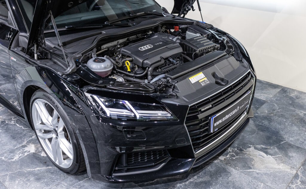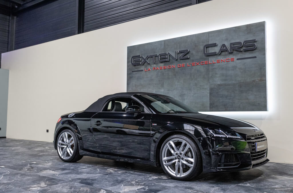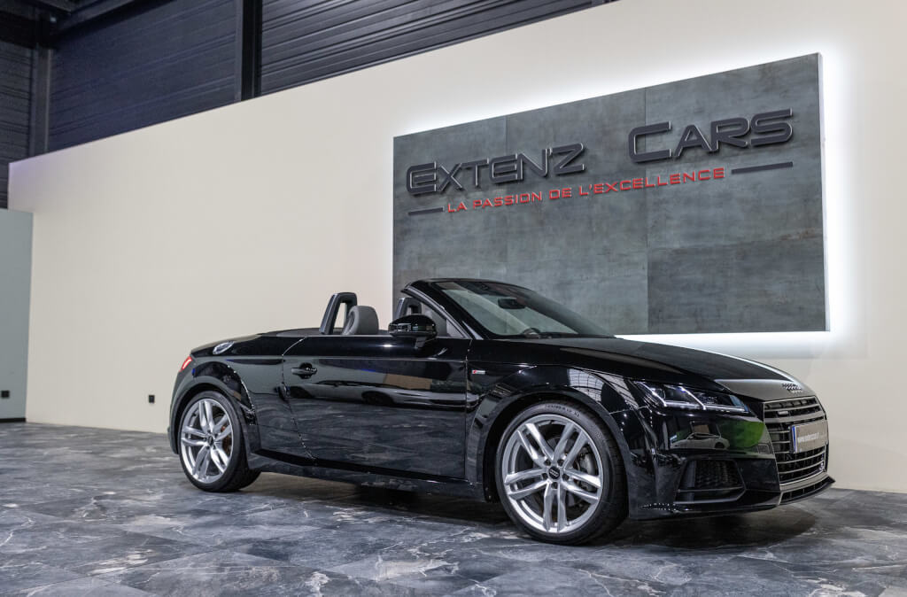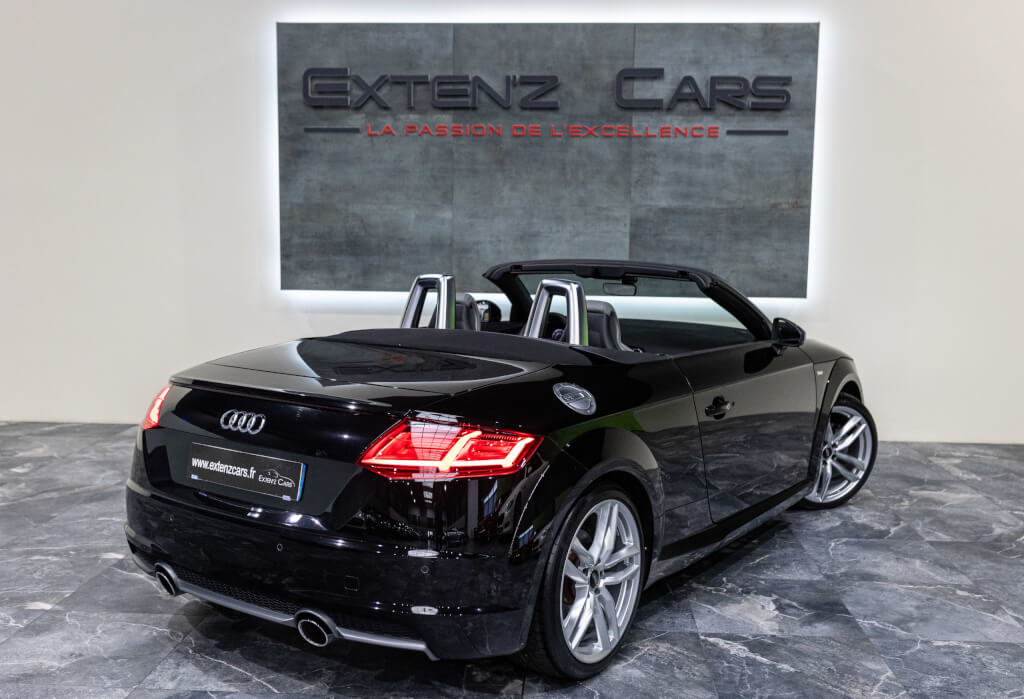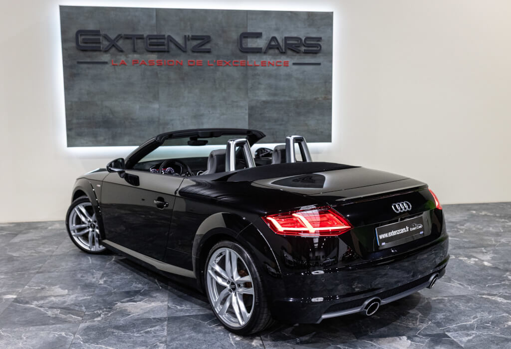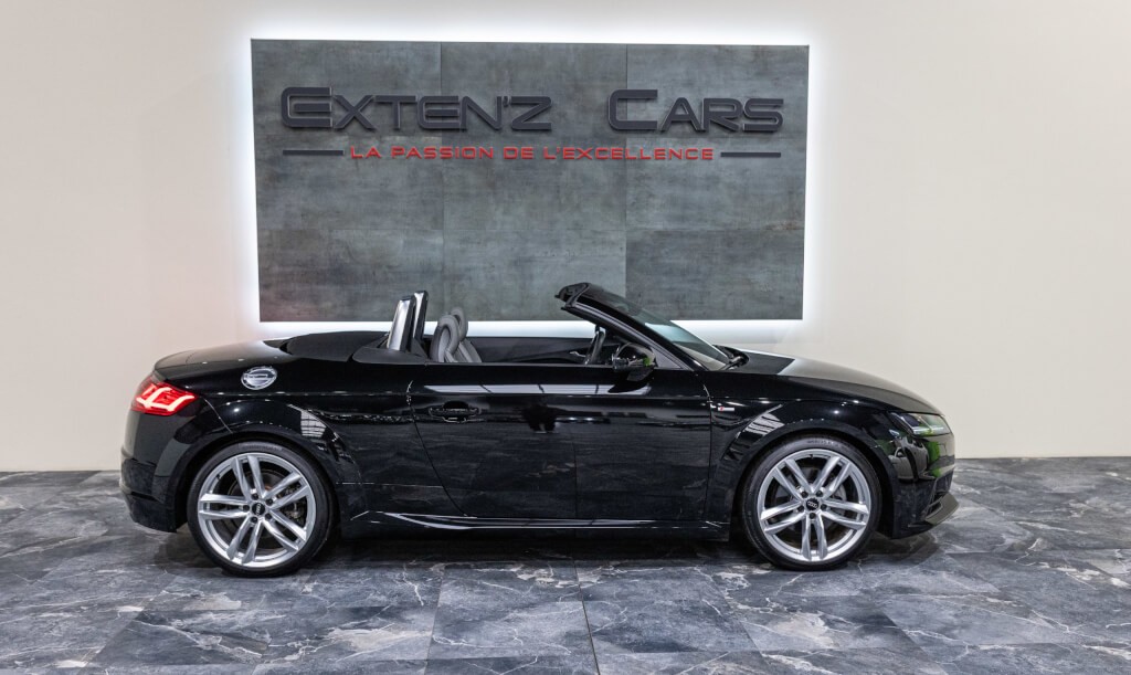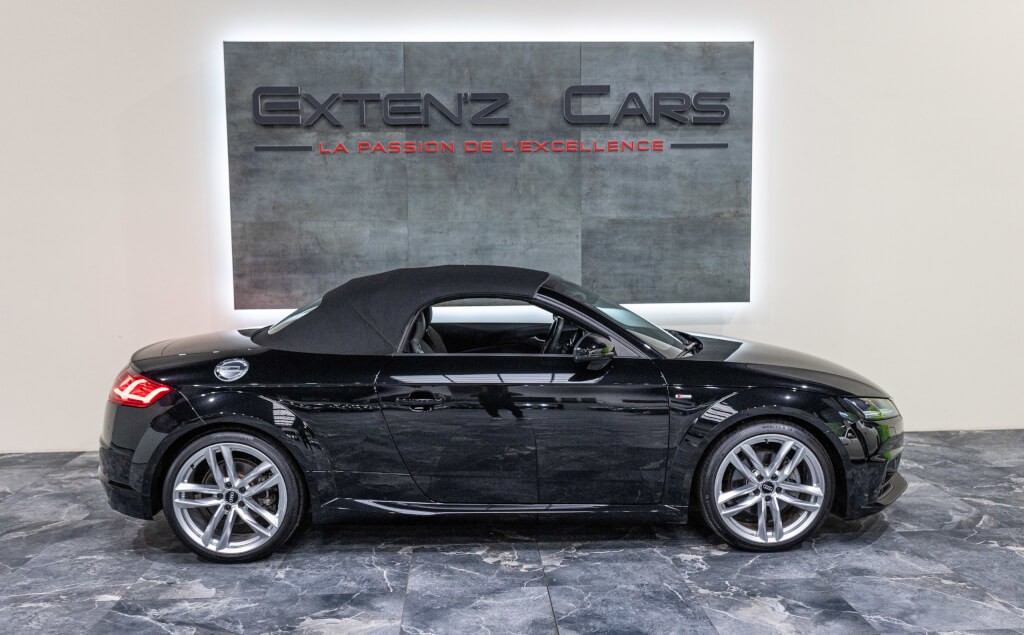 EXTEN’Z CARS vous propose cette Audi TT Cabriolet S-Line 2.0 TFSI Quattro 230 CV (13cv) S-Tronic, mise en circulation le 25/03/2015, dans une élégante teinte Noir Mythique Métallisée. Sous le capot, son moteur 2.0 TFSI développe 230 chevaux, associé à la transmission intégrale Quattro et à la boîte S-Tronic à double embrayage, offrant des performances dynamiques et une tenue de route irréprochable. Son design intemporel, véritable signature de l’Audi TT, séduit par ses lignes fluides et tendues, son châssis abaissé et ses détails sportifs. Ce roadster ne laisse personne indifférent. À l’intérieur, les sièges sport en cuir, le Virtual Cockpit Audi et les finitions haut de gamme assurent un confort luxueux et une technologie moderne pour une expérience de conduite inégalée.