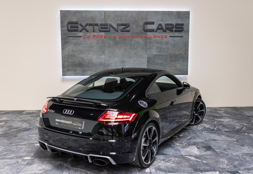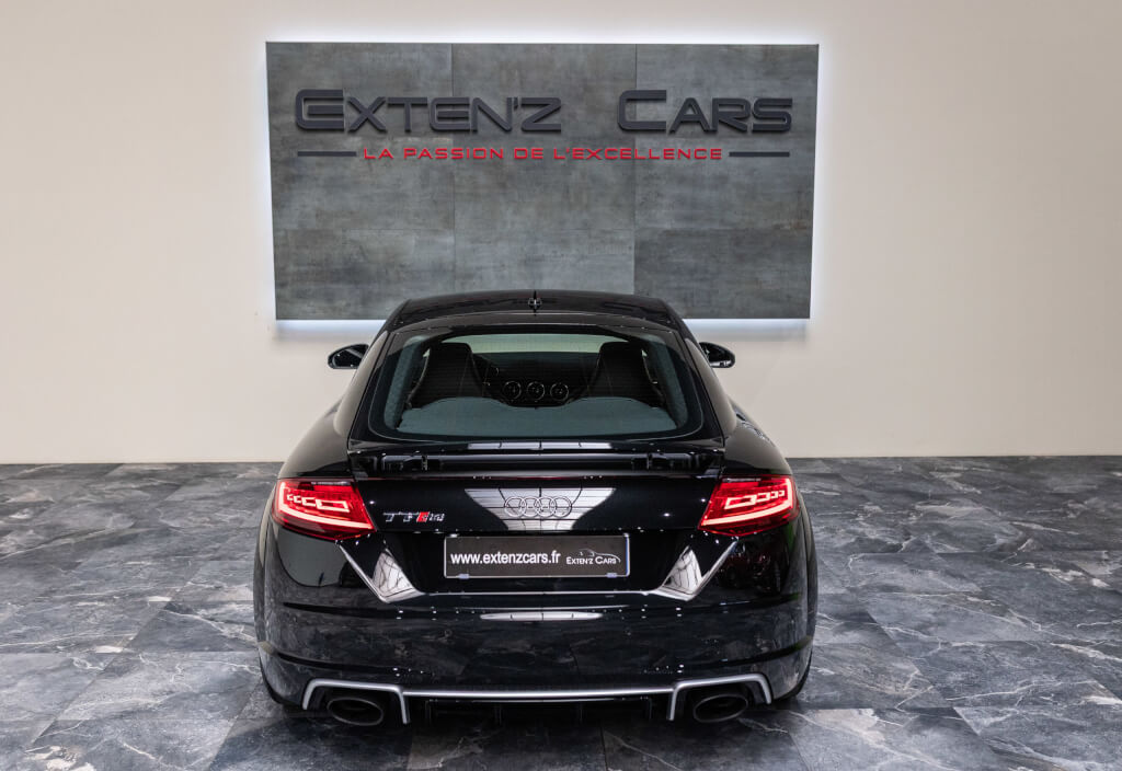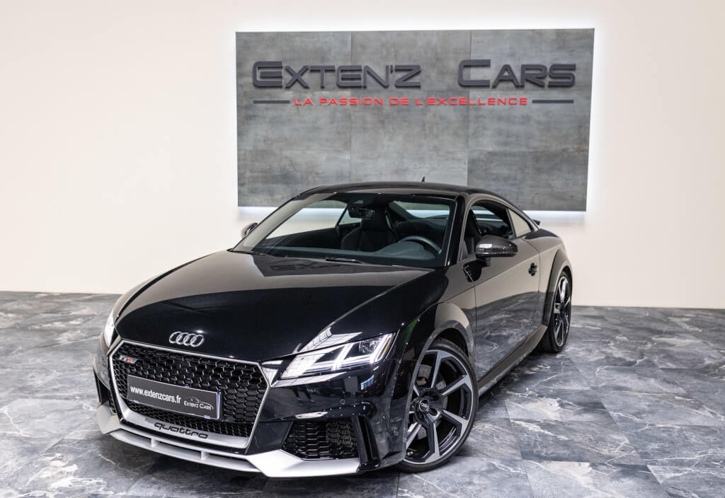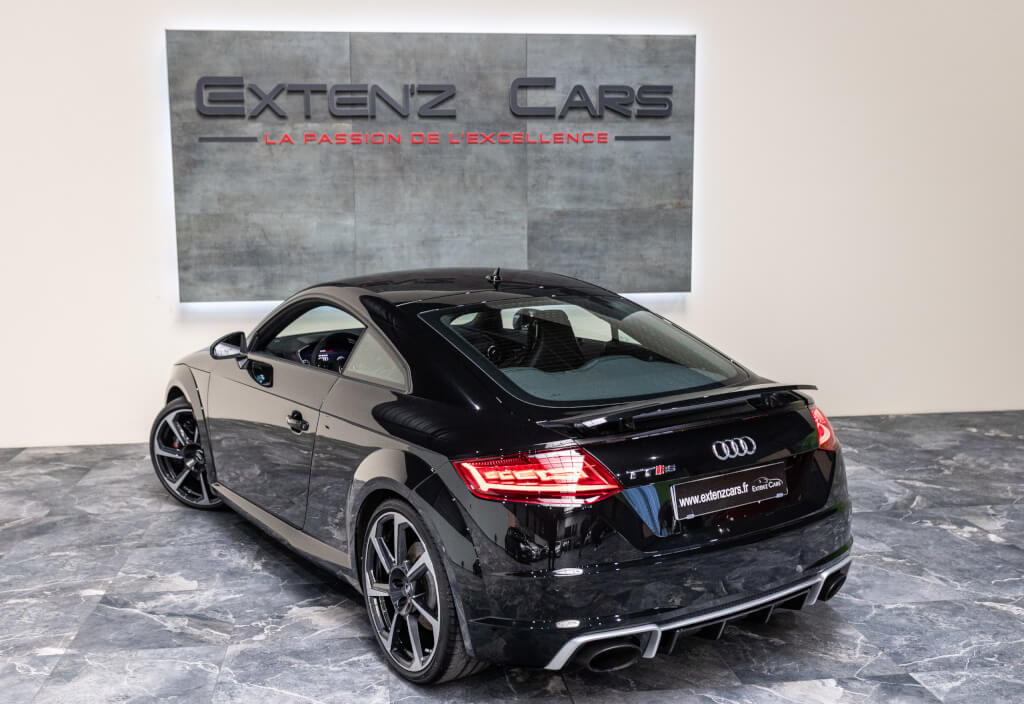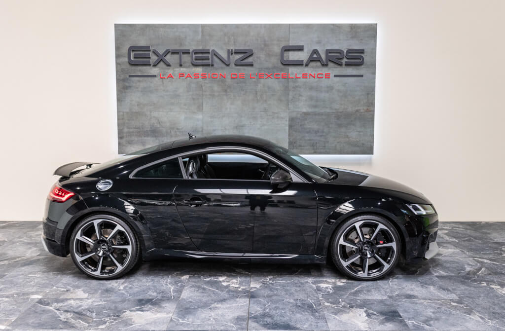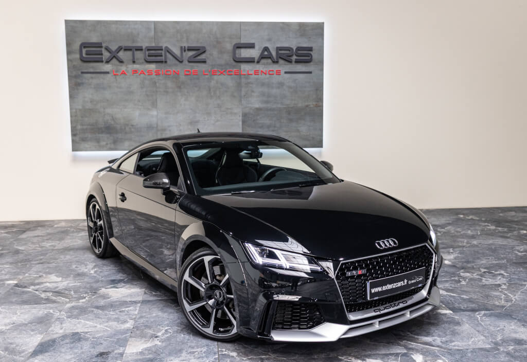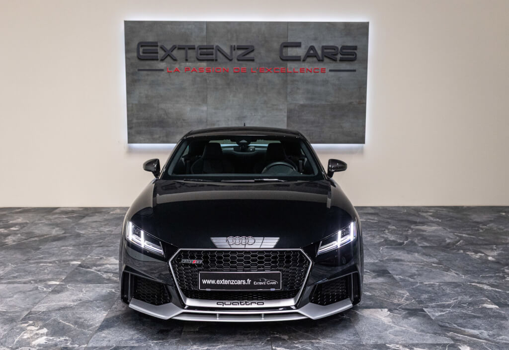 EXTEN’Z CARS vous propose cette superbe Audi TT RS Coupé 2.5 TFSI quattro, mise en circulation le 09/02/2018, dans une configuration rare et parfaitement conservée, avec une magnifique teinte Noir Mythic Métallisée. C’est exactement ce qu’on attend d’une vraie RS : compacte, bien posée, moteur plein, comportement précis, et surtout, le dernier 5 cylindres Audi encore en piste. Ce bloc, reconnu pour sa sonorité unique, son caractère et sa fiabilité, n’est plus produit aujourd’hui. La production a cessé, et les beaux exemplaires comme celui-ci deviennent rares. L’intérieur est à l’image de ce qu’Audi fait de mieux : sobre, propre, sans une fausse note. Cuir Nappa noir, finitions impeccables, Virtual Cockpit, une ambiance bien construite, sans effet de mode. Tout est là, bien présenté, bien assemblé. Boîte S tronic 7 rapports, transmission quattro, une voiture qu’on peut utiliser tous les jours sans jamais s’en lasser. Elle passe fort, elle sonne juste, elle donne envie de rouler.