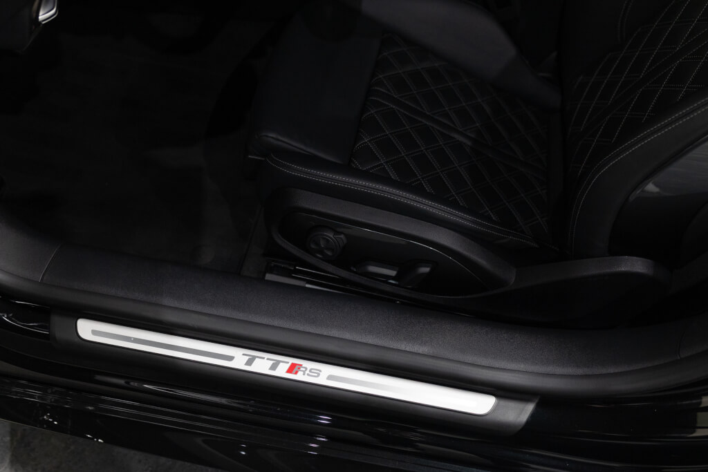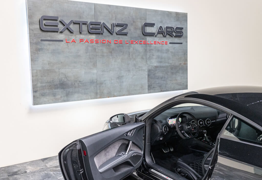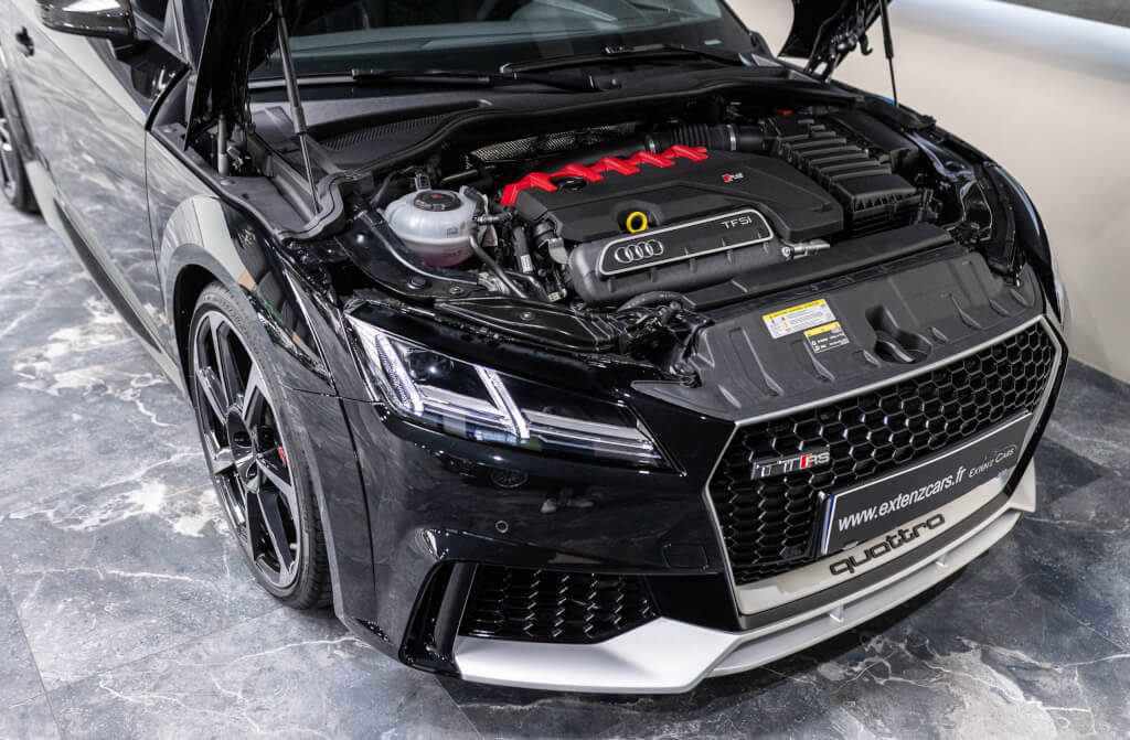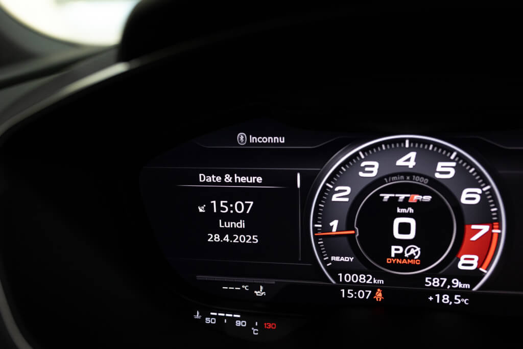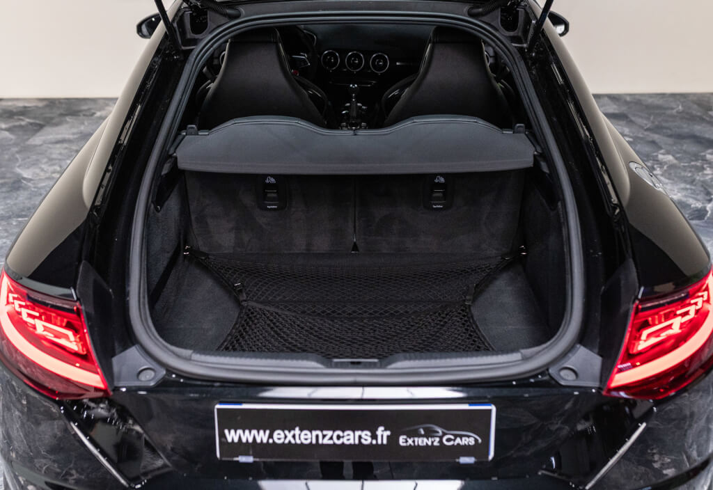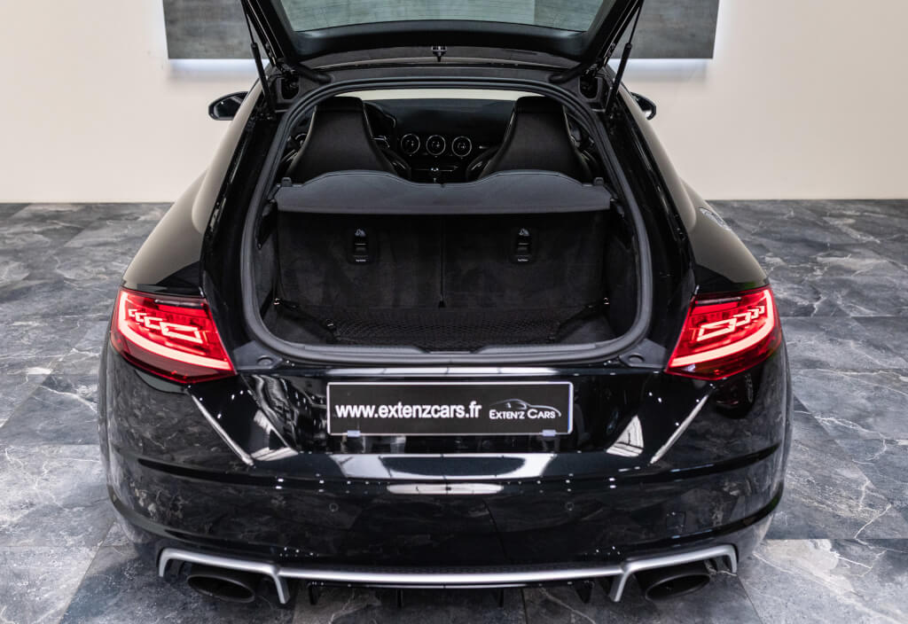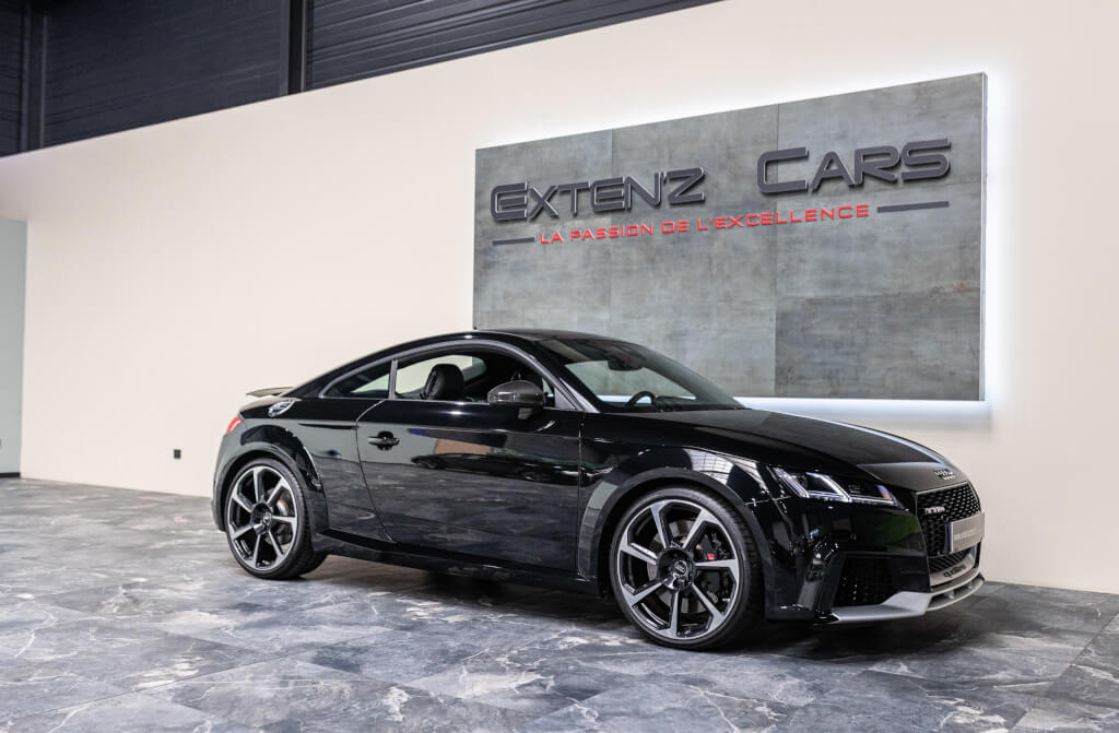 EXTEN’Z CARS vous propose cette superbe Audi TT RS Coupé 2.5 TFSI quattro, mise en circulation le 09/02/2018, dans une configuration rare et parfaitement conservée, avec une magnifique teinte Noir Mythic Métallisée. C’est exactement ce qu’on attend d’une vraie RS : compacte, bien posée, moteur plein, comportement précis, et surtout, le dernier 5 cylindres Audi encore en piste. Ce bloc, reconnu pour sa sonorité unique, son caractère et sa fiabilité, n’est plus produit aujourd’hui. La production a cessé, et les beaux exemplaires comme celui-ci deviennent rares. L’intérieur est à l’image de ce qu’Audi fait de mieux : sobre, propre, sans une fausse note. Cuir Nappa noir, finitions impeccables, Virtual Cockpit, une ambiance bien construite, sans effet de mode. Tout est là, bien présenté, bien assemblé. Boîte S tronic 7 rapports, transmission quattro, une voiture qu’on peut utiliser tous les jours sans jamais s’en lasser. Elle passe fort, elle sonne juste, elle donne envie de rouler.