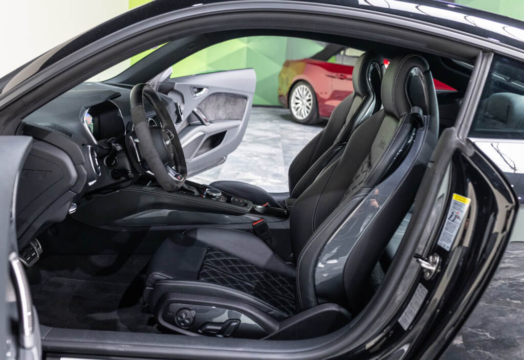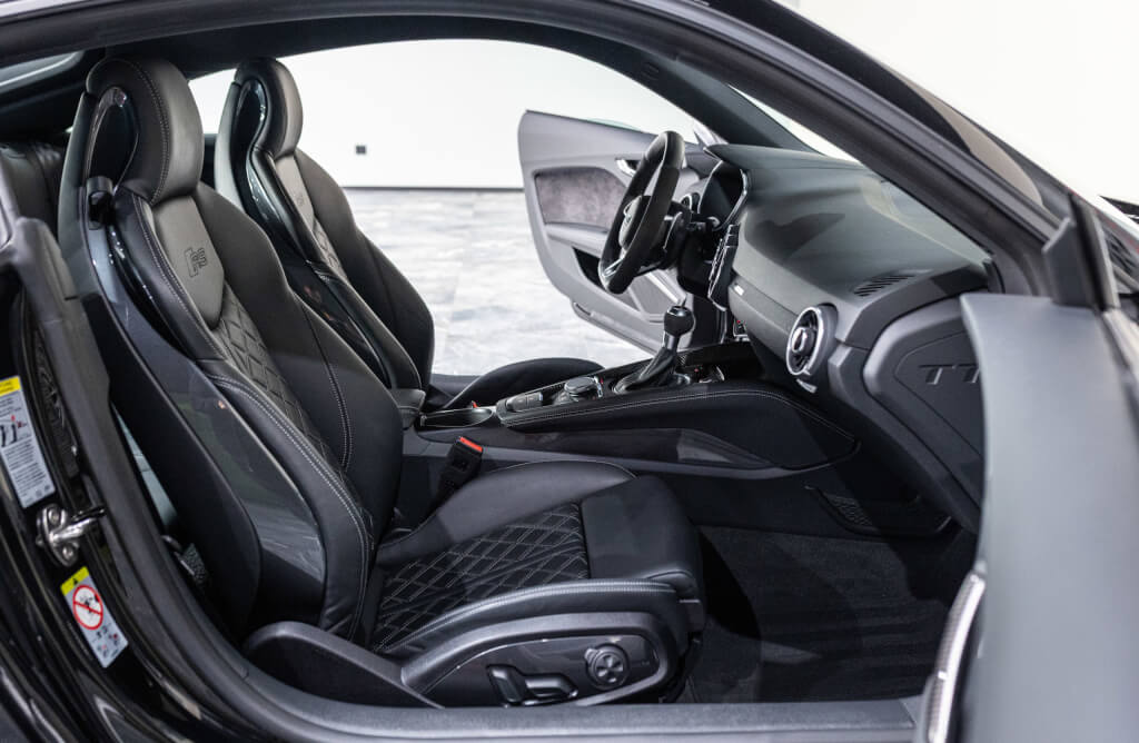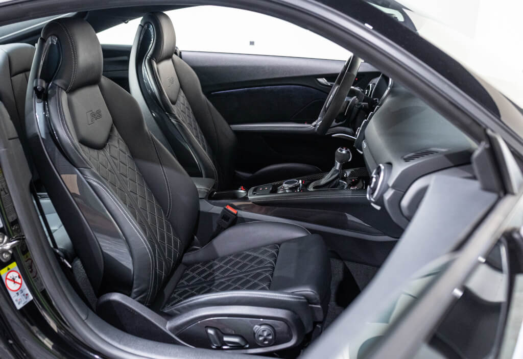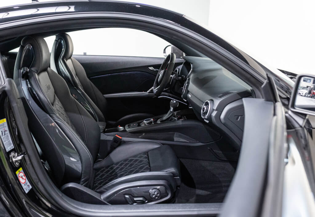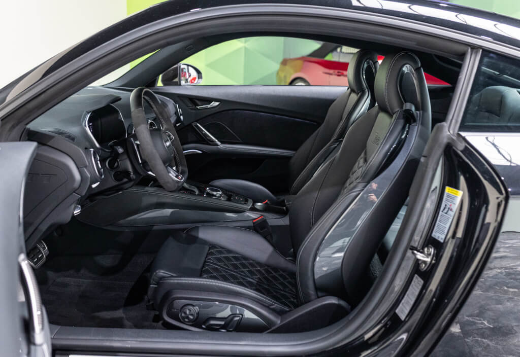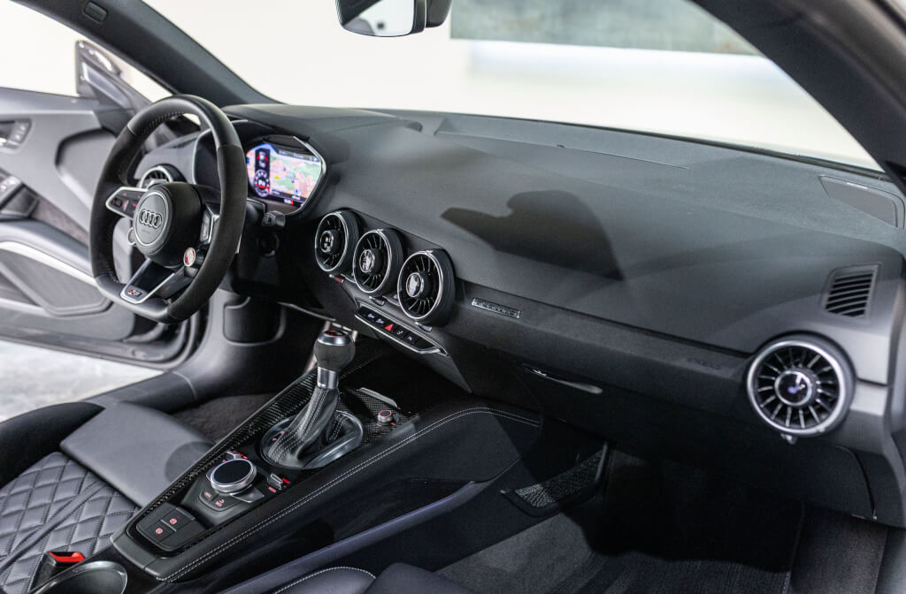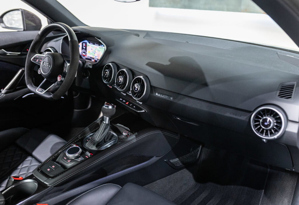 EXTEN’Z CARS vous propose cette superbe Audi TT RS Coupé 2.5 TFSI quattro, mise en circulation le 09/02/2018, dans une configuration rare et parfaitement conservée, avec une magnifique teinte Noir Mythic Métallisée. C’est exactement ce qu’on attend d’une vraie RS : compacte, bien posée, moteur plein, comportement précis, et surtout, le dernier 5 cylindres Audi encore en piste. Ce bloc, reconnu pour sa sonorité unique, son caractère et sa fiabilité, n’est plus produit aujourd’hui. La production a cessé, et les beaux exemplaires comme celui-ci deviennent rares. L’intérieur est à l’image de ce qu’Audi fait de mieux : sobre, propre, sans une fausse note. Cuir Nappa noir, finitions impeccables, Virtual Cockpit, une ambiance bien construite, sans effet de mode. Tout est là, bien présenté, bien assemblé. Boîte S tronic 7 rapports, transmission quattro, une voiture qu’on peut utiliser tous les jours sans jamais s’en lasser. Elle passe fort, elle sonne juste, elle donne envie de rouler.