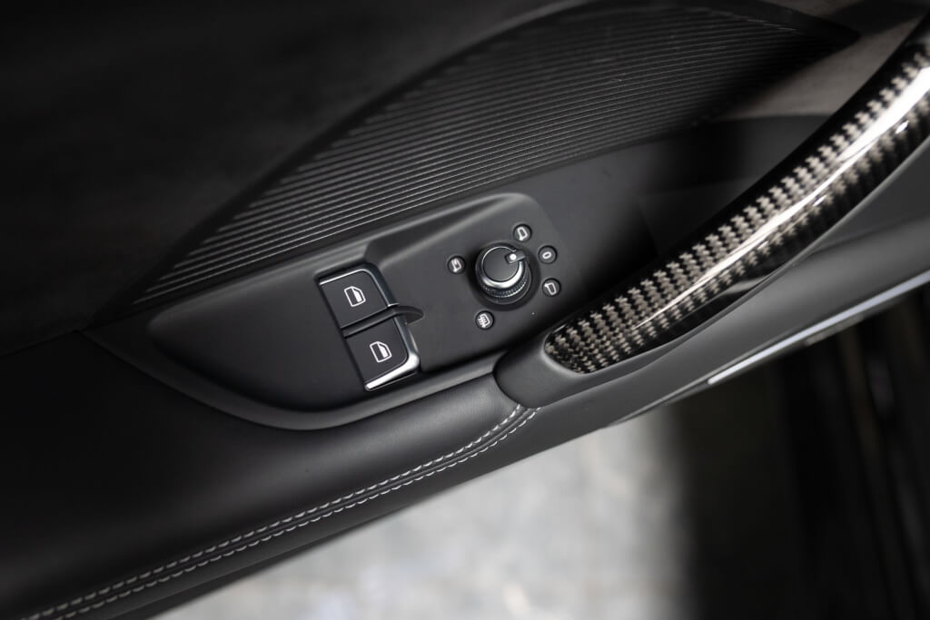 – Sellerie Cuir Nappa Noir avec Surpiqures Matelassés Losange Grises & Contre Portes en Daim (945€)