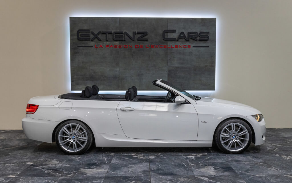 EXTEN’Z CARS vous propose cette superbe BMW Série 3 Cabriolet (E93) 325i Pack M, un cabriolet rare et recherché par les amateurs de belles voitures. Équipée de son célèbre moteur 6 cylindres atmosphérique de 3.0 litres, développant 218 CV (13CV), Mise en circulation le 31/03/2009, dans une magnifique couleur Alpinweiss. Polyvalente et élégante, ce cabriolet est fait pour les passionnés qui souhaitent profiter du plaisir de rouler cheveux au vent tout en bénéficiant du confort et de la qualité légendaire de BMW. Ce modèle représente un futur collector, idéal pour un investissement ou pour le plaisir de posséder un cabriolet intemporel.