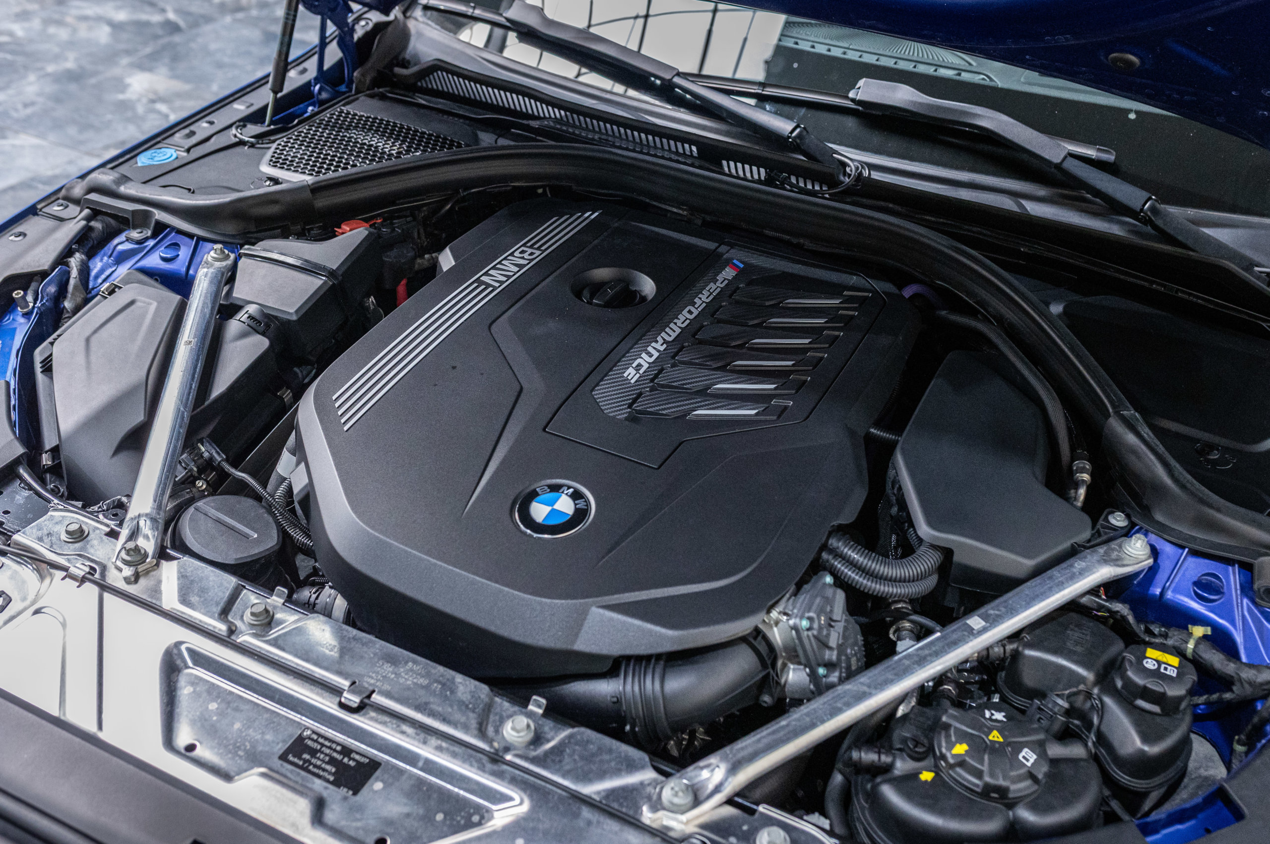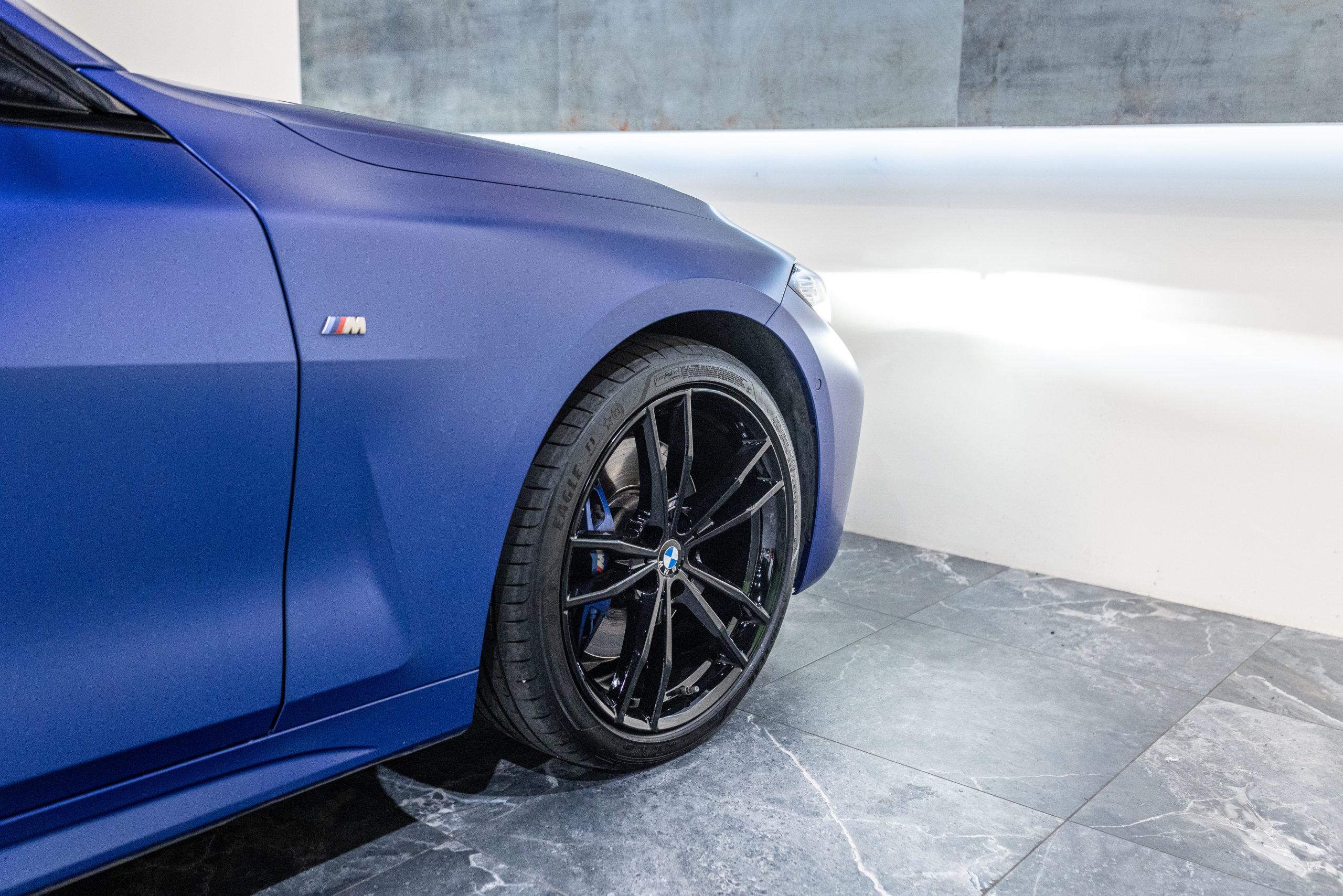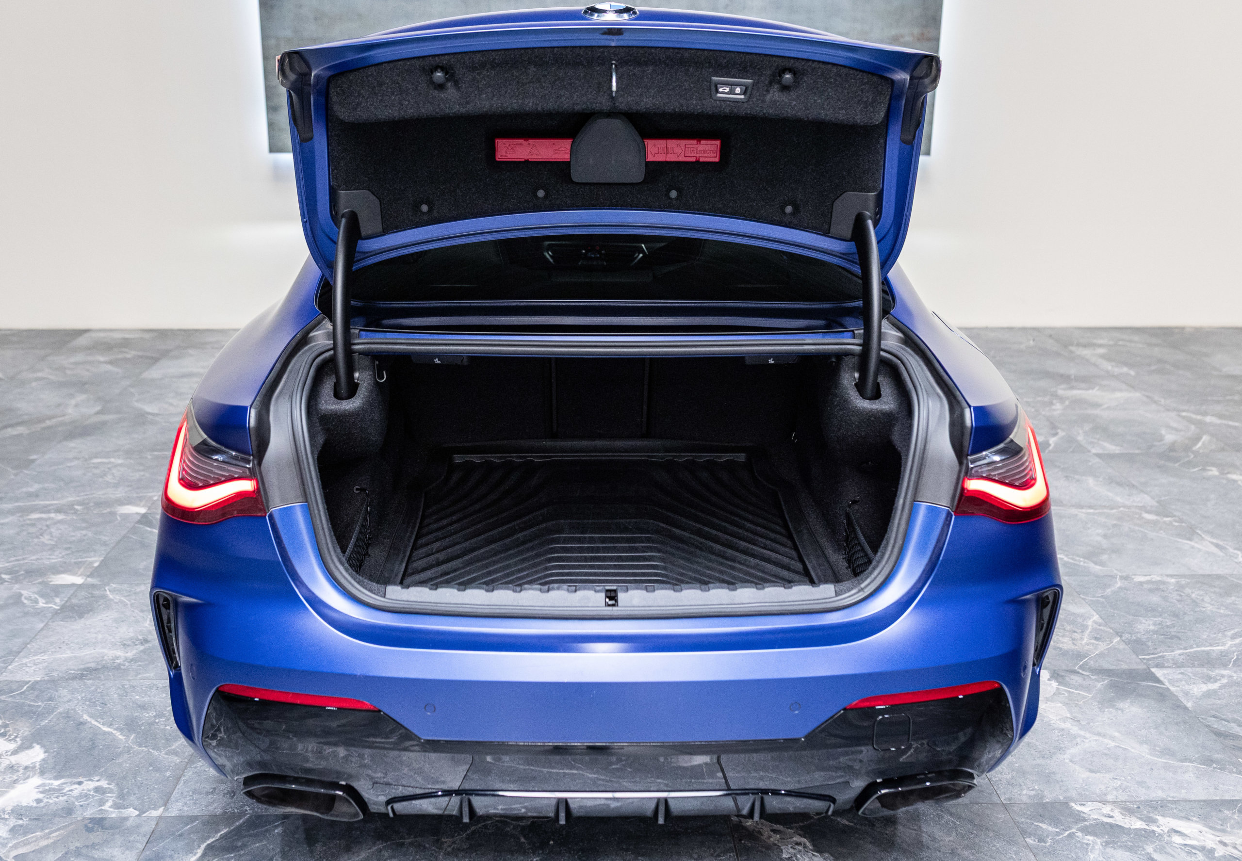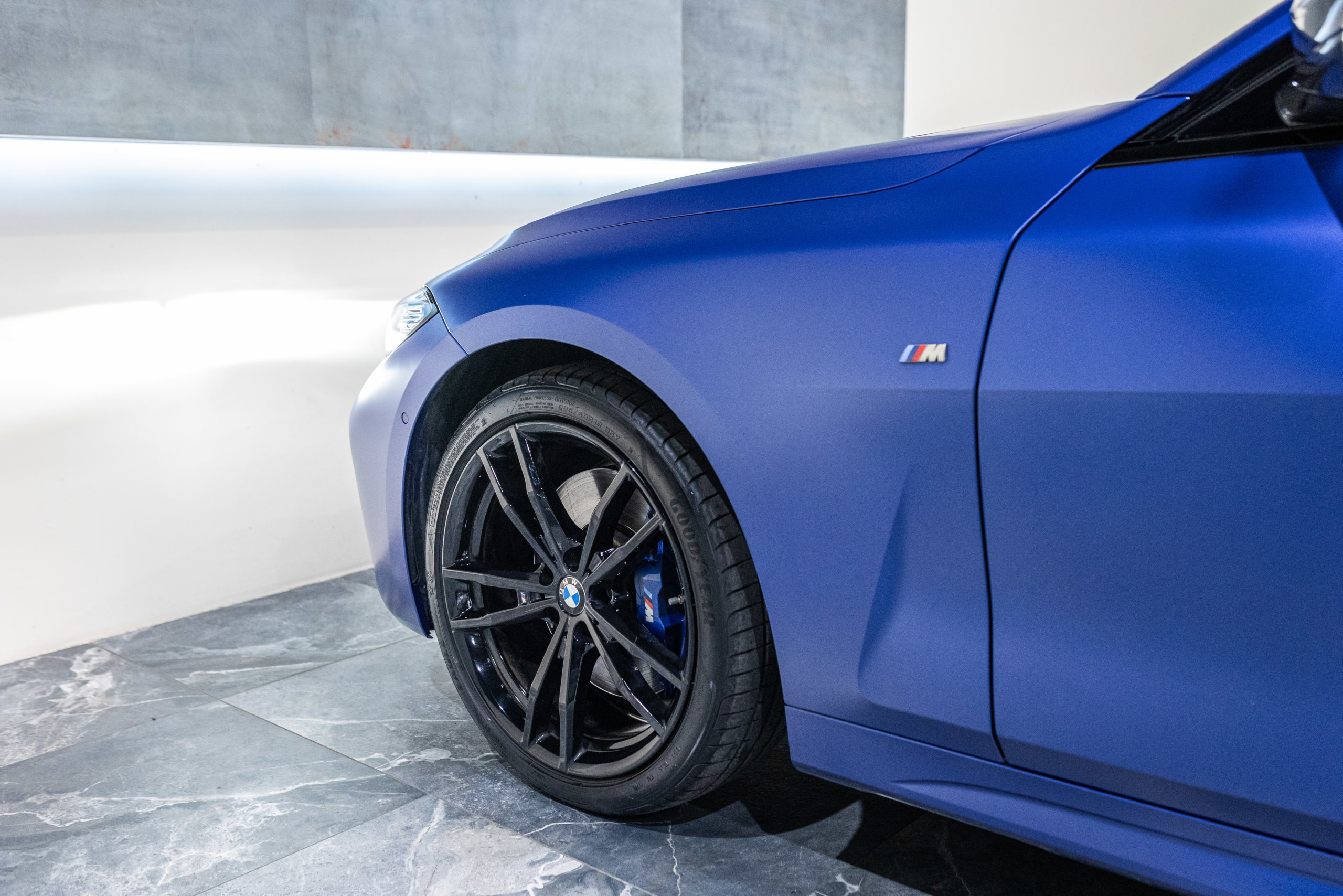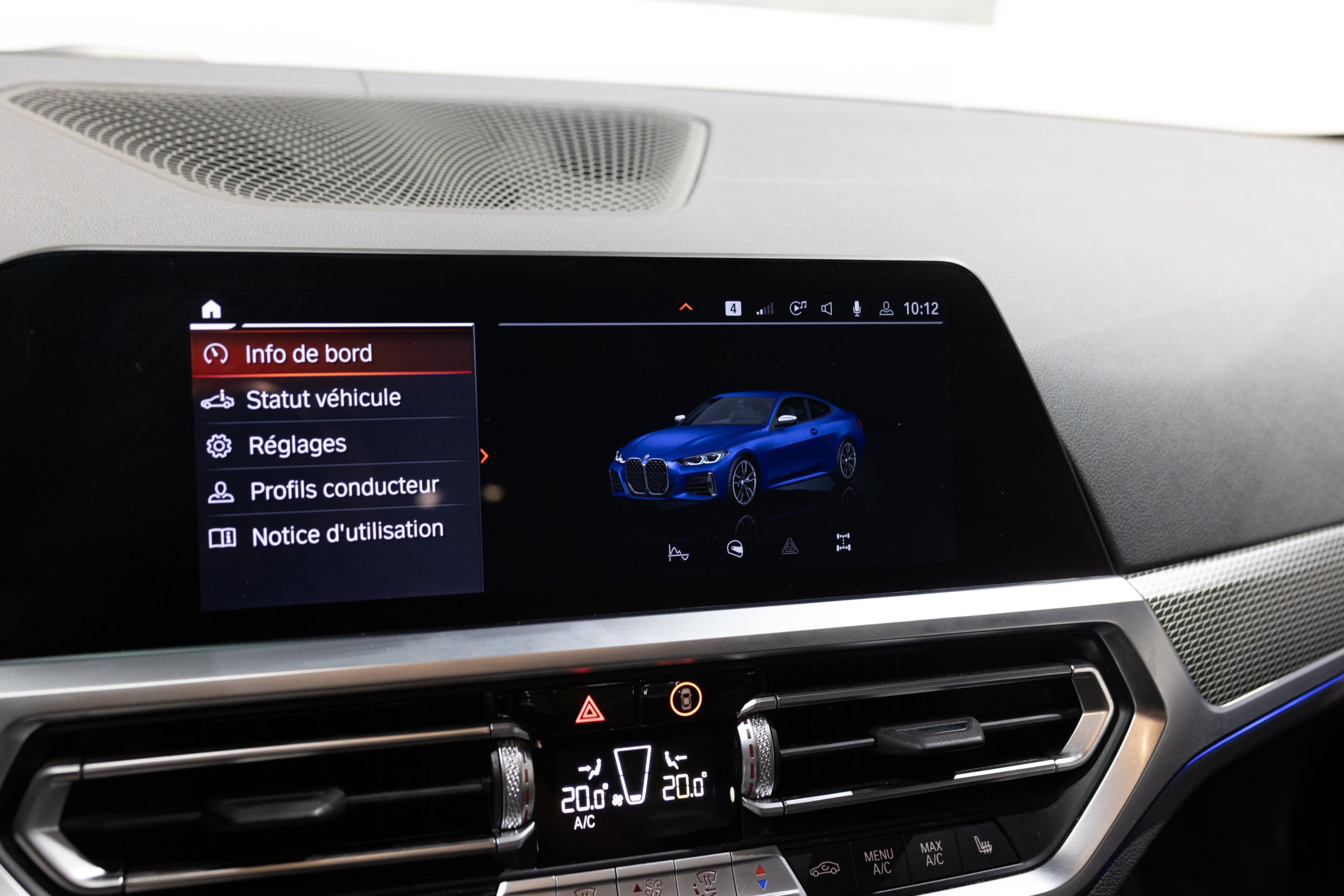 EXTEN’Z CARS vous présente cette BMW Série 4 Coupé M 440i xDrive, développant 374 CV (26cv) dans une configuration absolument parfaite. La teinte Frozen Portimao Blue, exclusive et satinée, lui donne une présence visuelle incroyable. C’est une couleur qui change selon la lumière, qui capte l’œil sans jamais tomber dans l’excès. La ligne du coupé G22 est racée, équilibrée, musclée juste ce qu’il faut. Avec les jantes noires, les étriers bleus M, les sorties d’échappement noires brillantes et les finitions Shadow Line, tout est cohérent, tout respire la sportivité classe. Sous le capot, le six cylindres en ligne BMW dans sa meilleure forme. 374 chevaux, un couple disponible à tous les régimes, une sonorité parfaitement dosée, et une boîte ZF à 8 rapports qui fait toujours ce qu’il faut, au bon moment. La transmission xDrive assure une motricité impeccable sans jamais brider le plaisir.