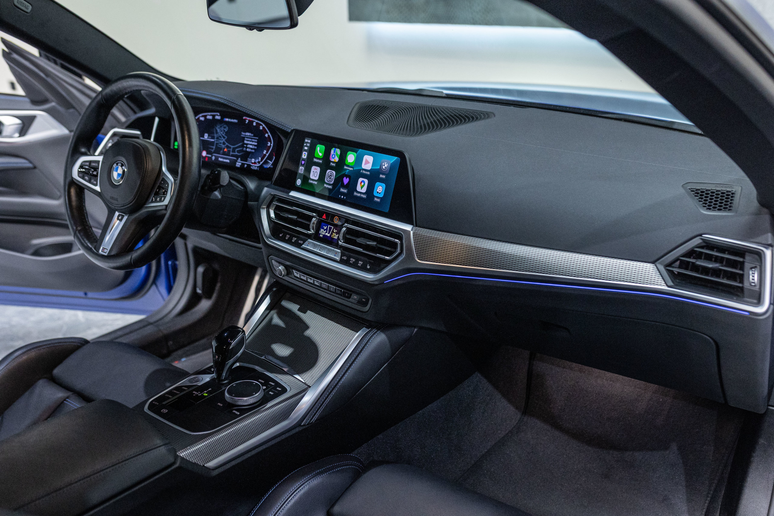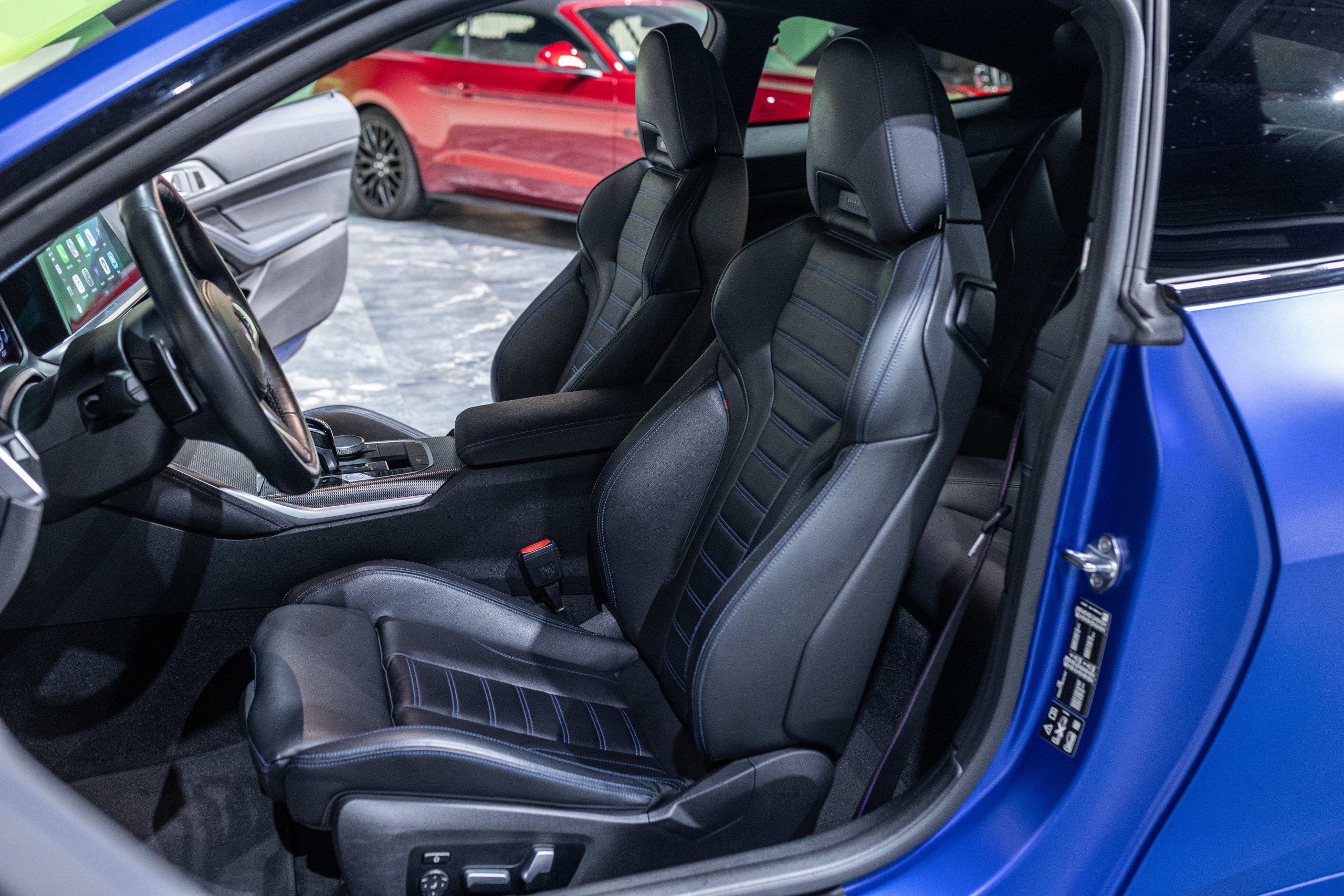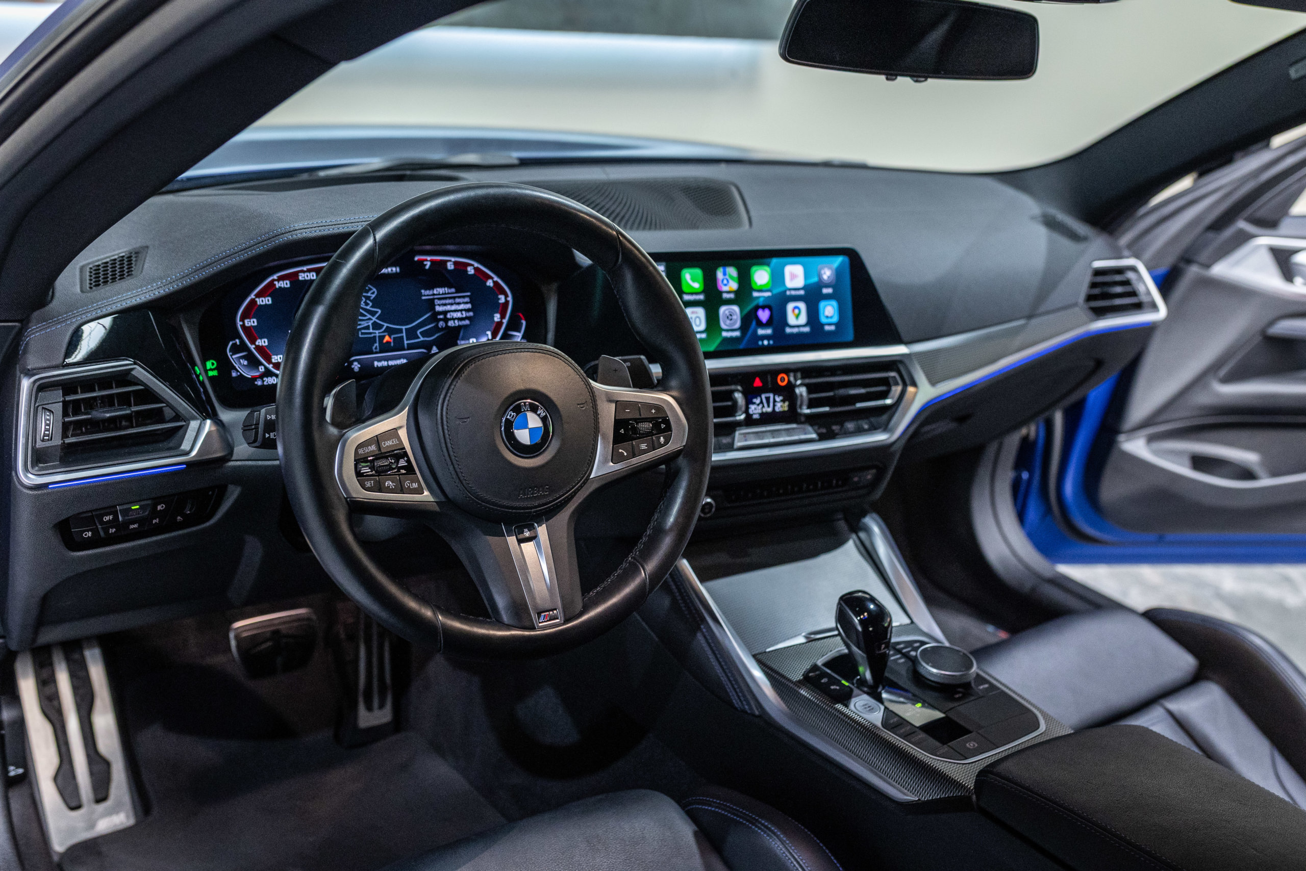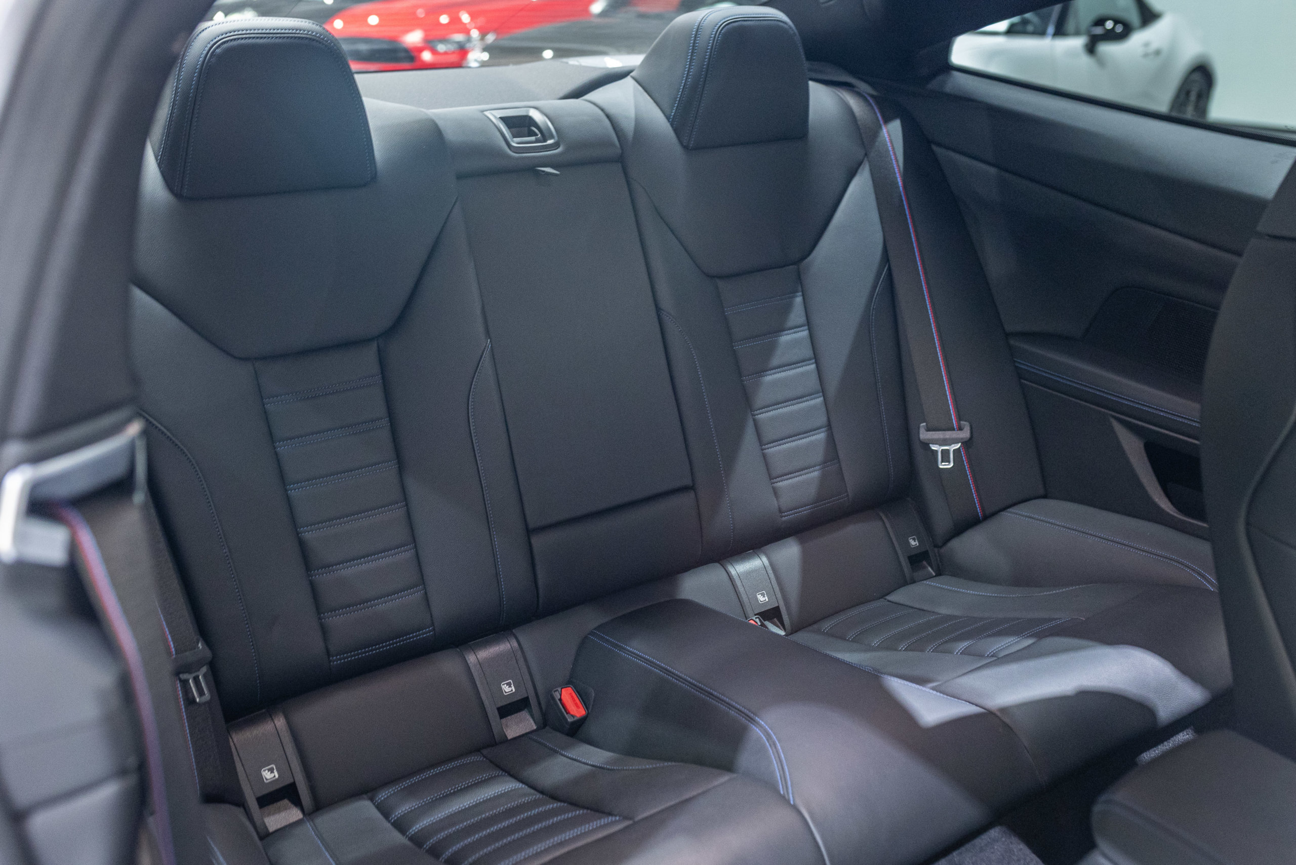 À l’intérieur, on retrouve un habitacle sport et raffiné, avec les sièges M en cuir noir, le combiné digital, l’interface BMW iDrive dernière génération, et tous les petits détails qu’on attend d’un vrai coupé haut de gamme.
