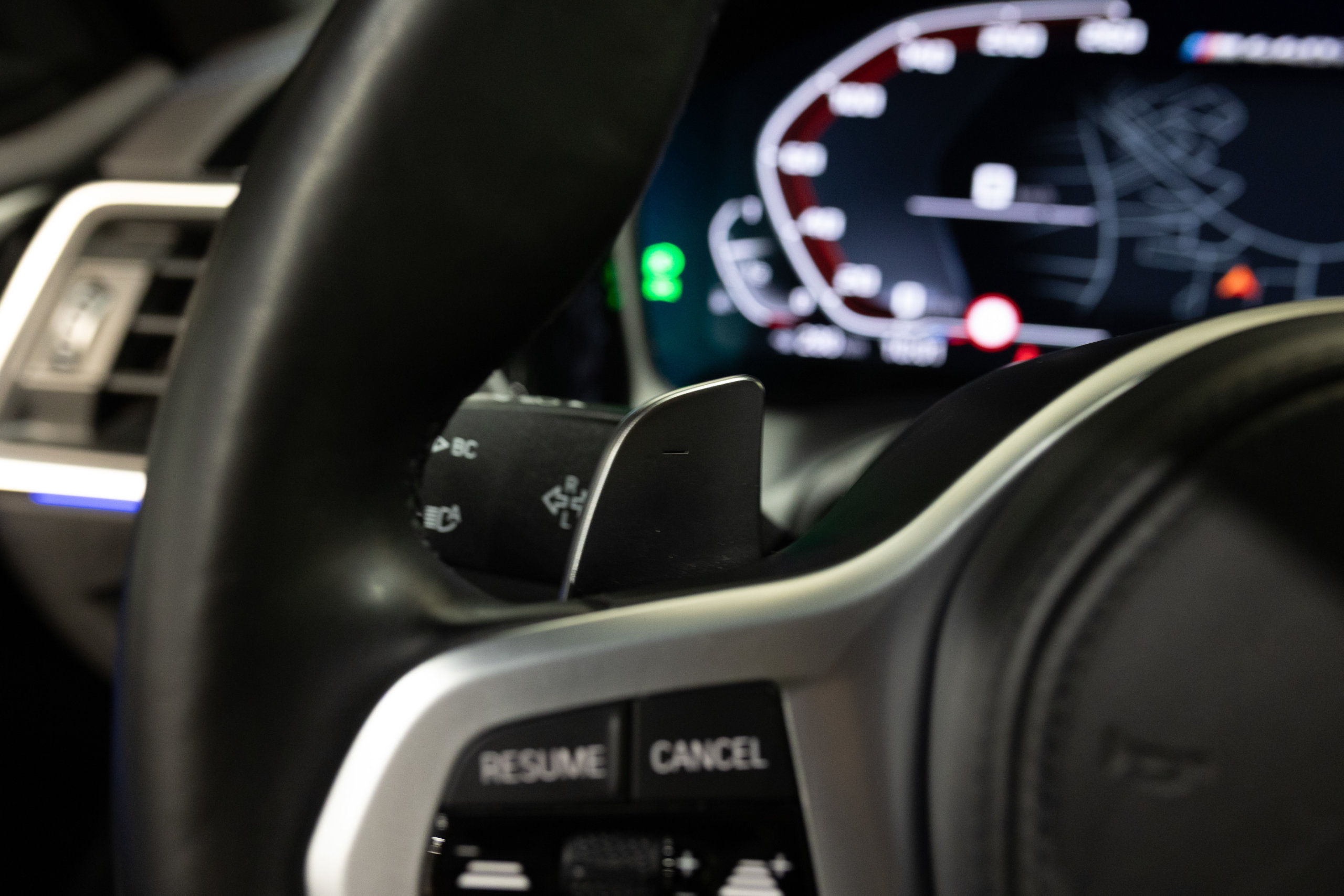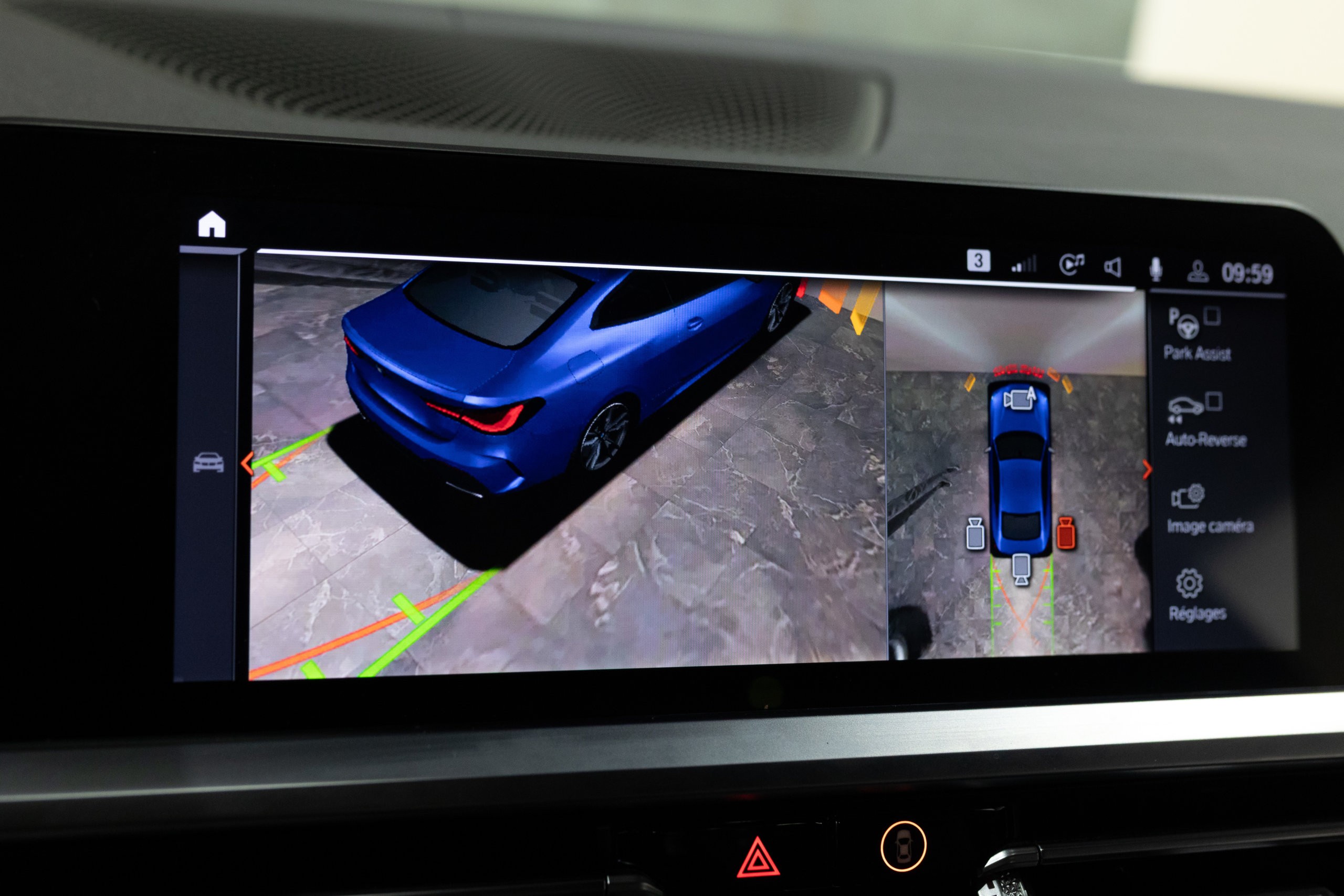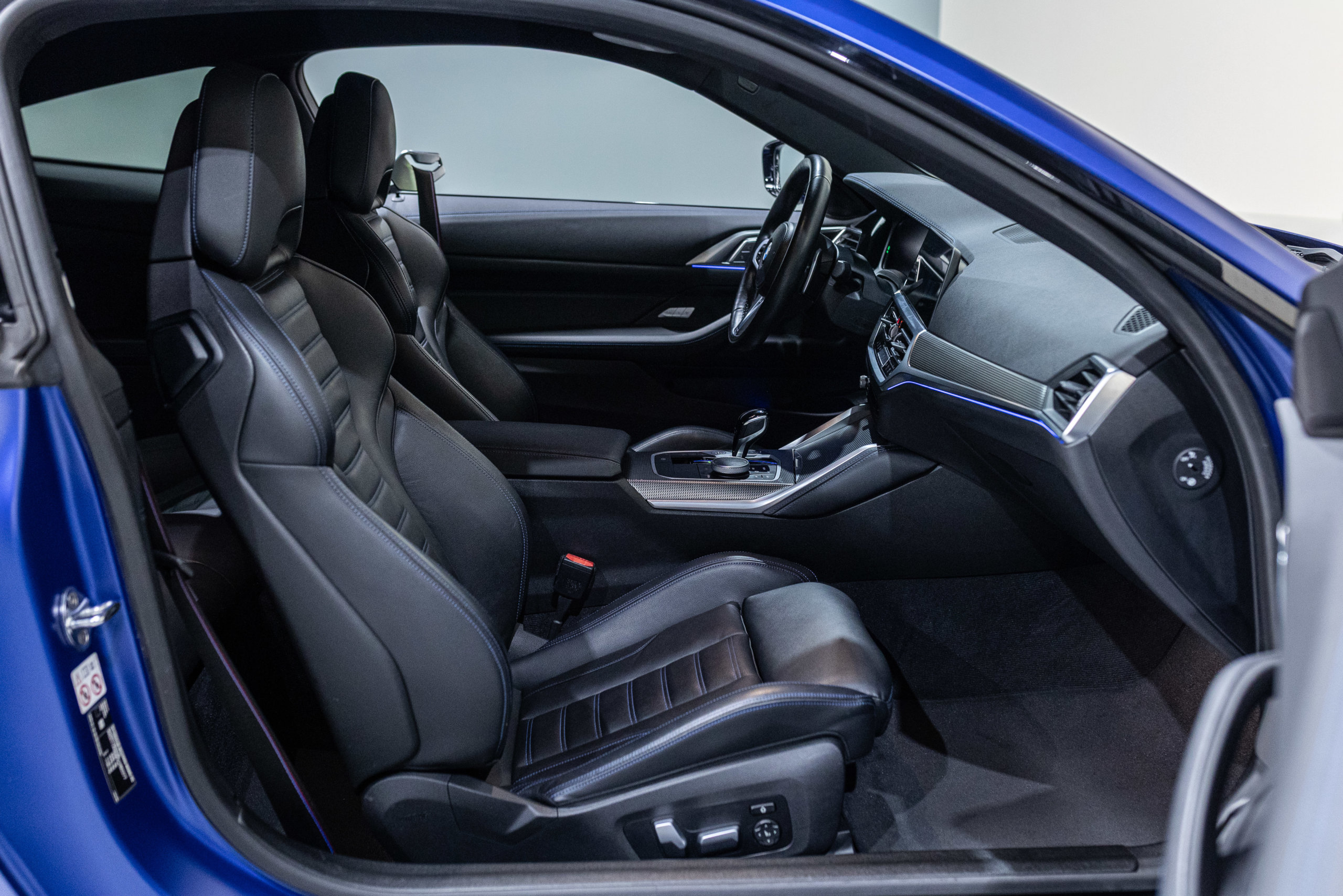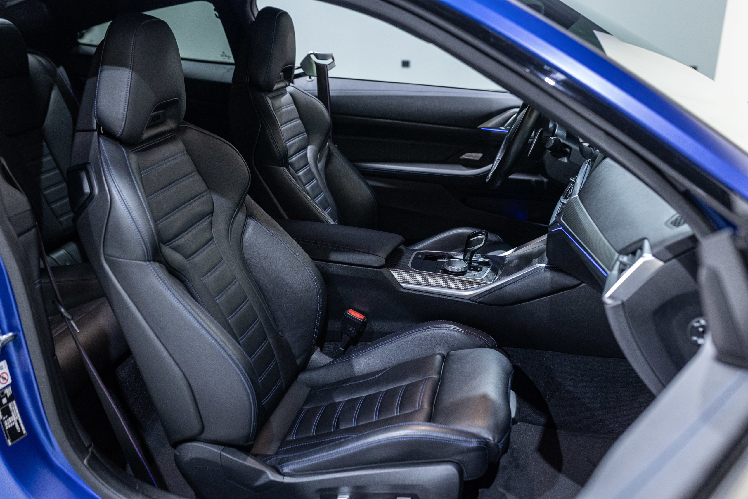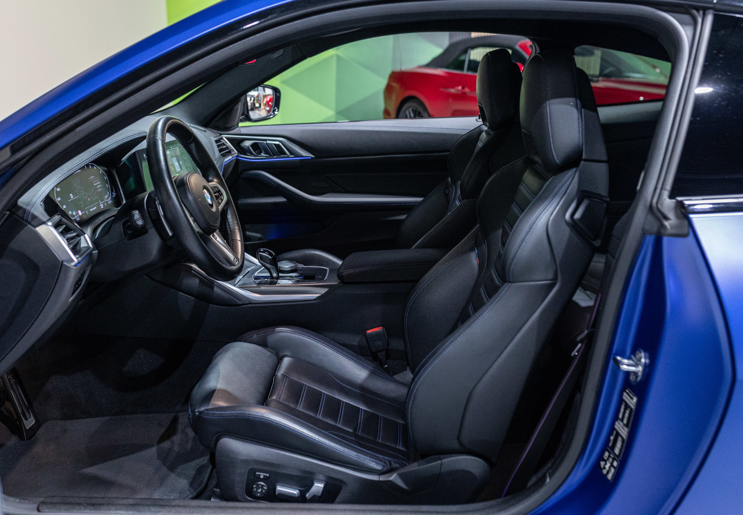 À l’intérieur, on retrouve un habitacle sport et raffiné, avec les sièges M en cuir noir, le combiné digital, l’interface BMW iDrive dernière génération, et tous les petits détails qu’on attend d’un vrai coupé haut de gamme.