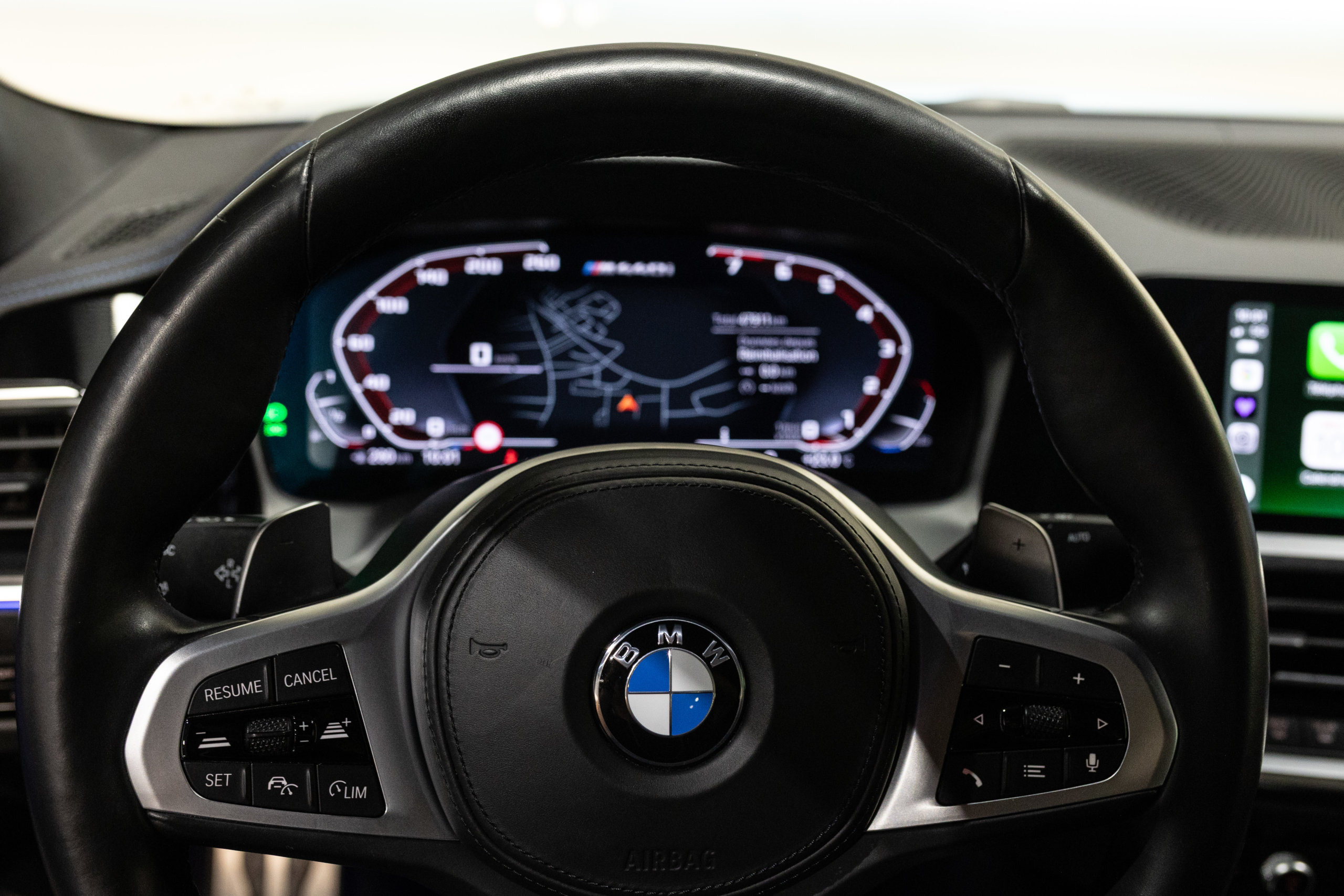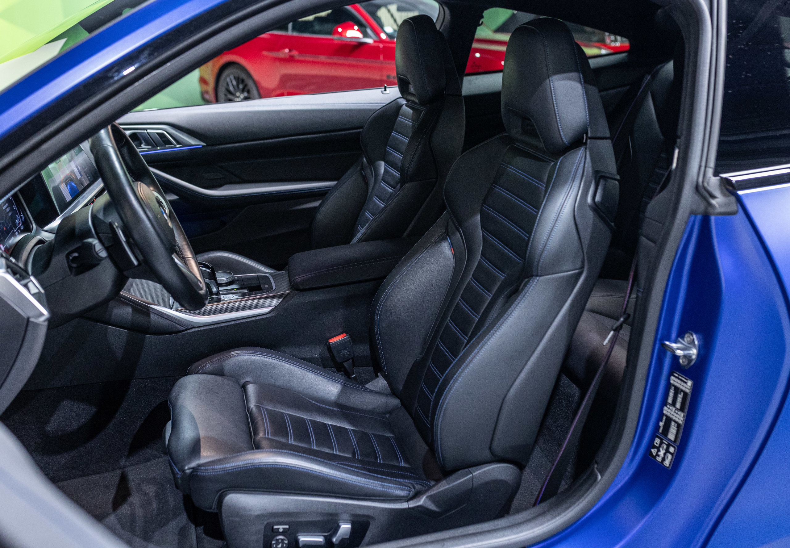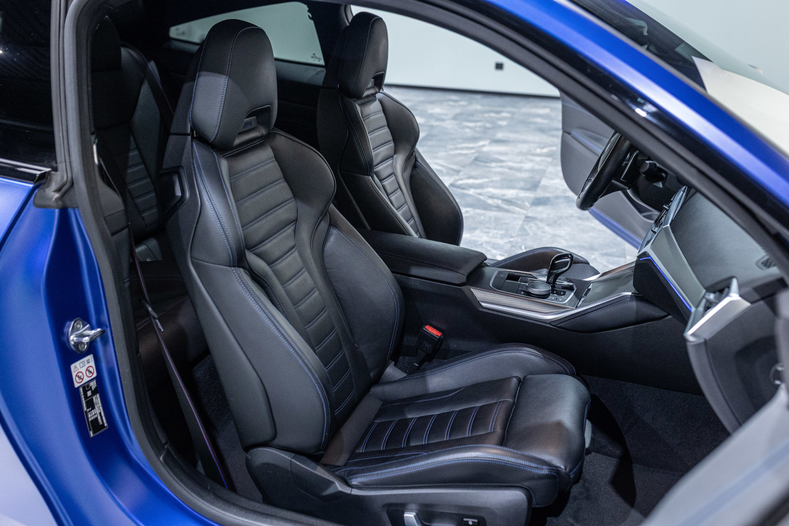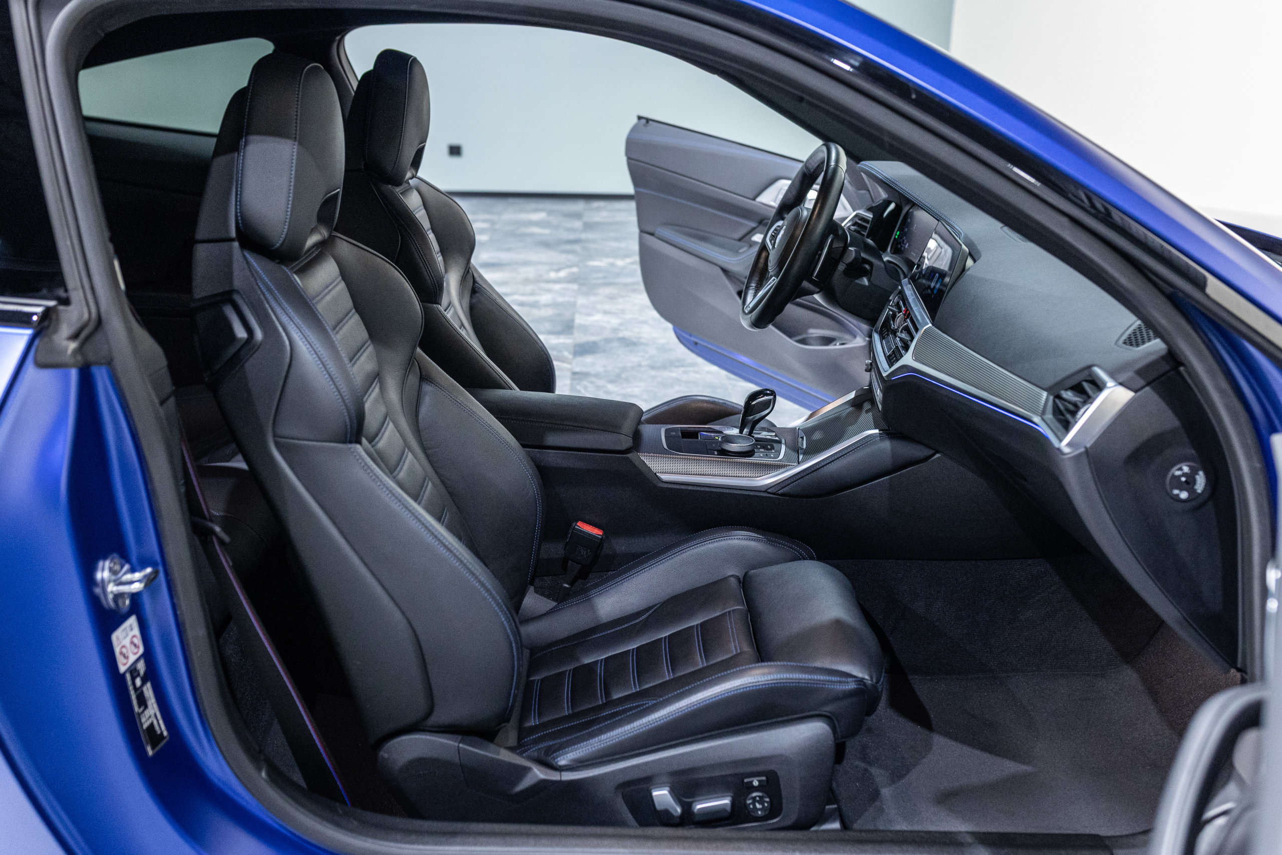 À l’intérieur, on retrouve un habitacle sport et raffiné, avec les sièges M en cuir noir, le combiné digital, l’interface BMW iDrive dernière génération, et tous les petits détails qu’on attend d’un vrai coupé haut de gamme.