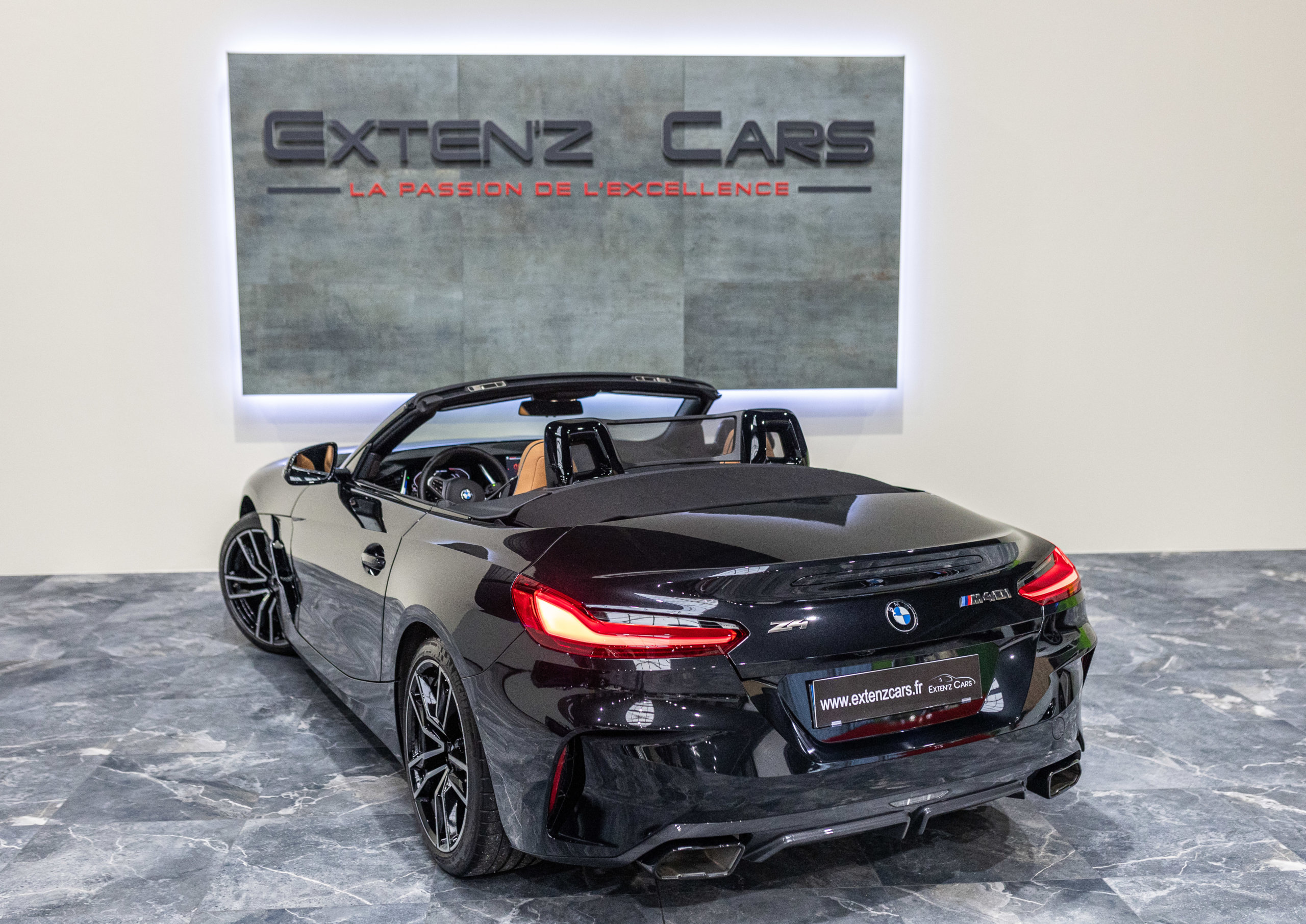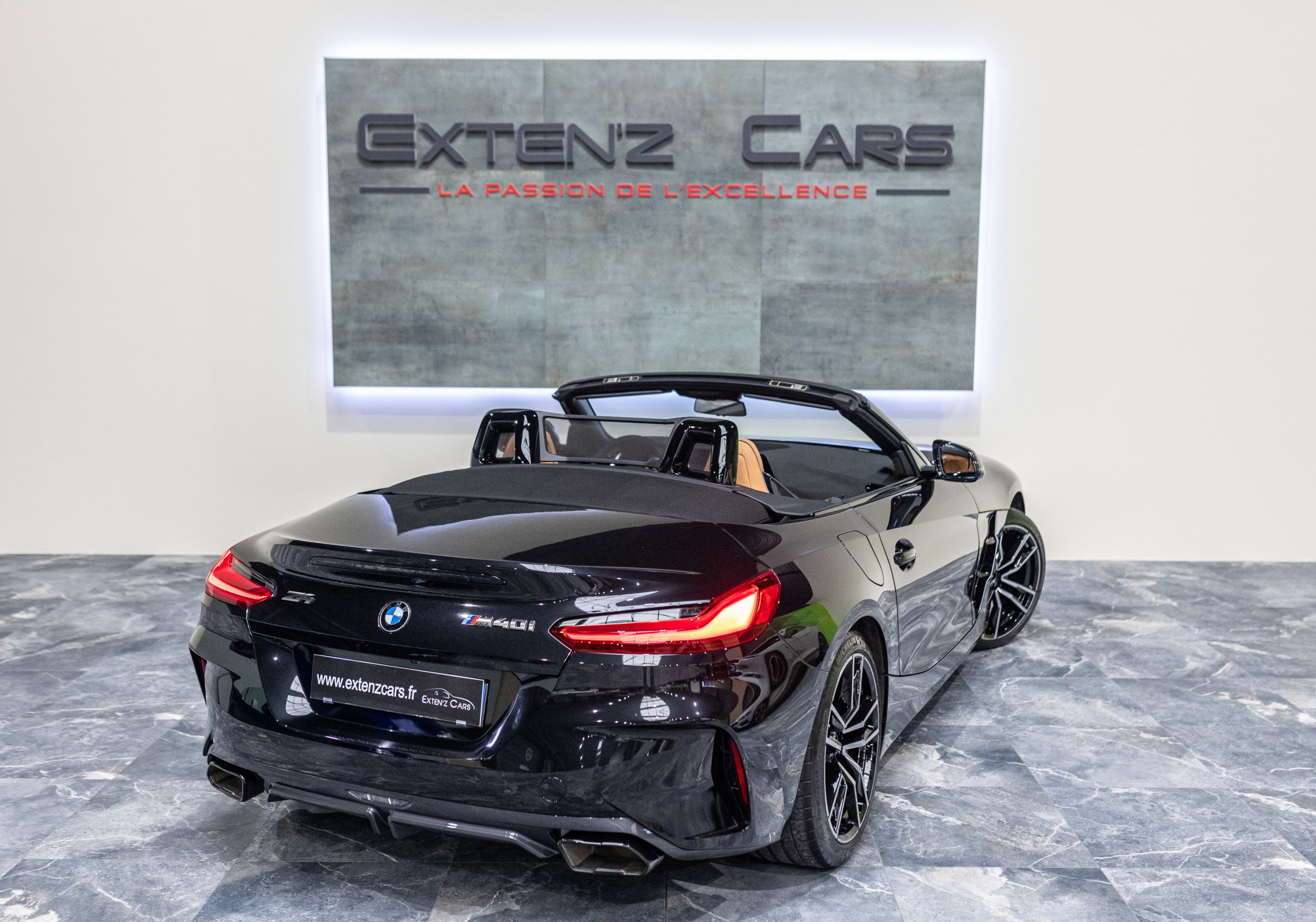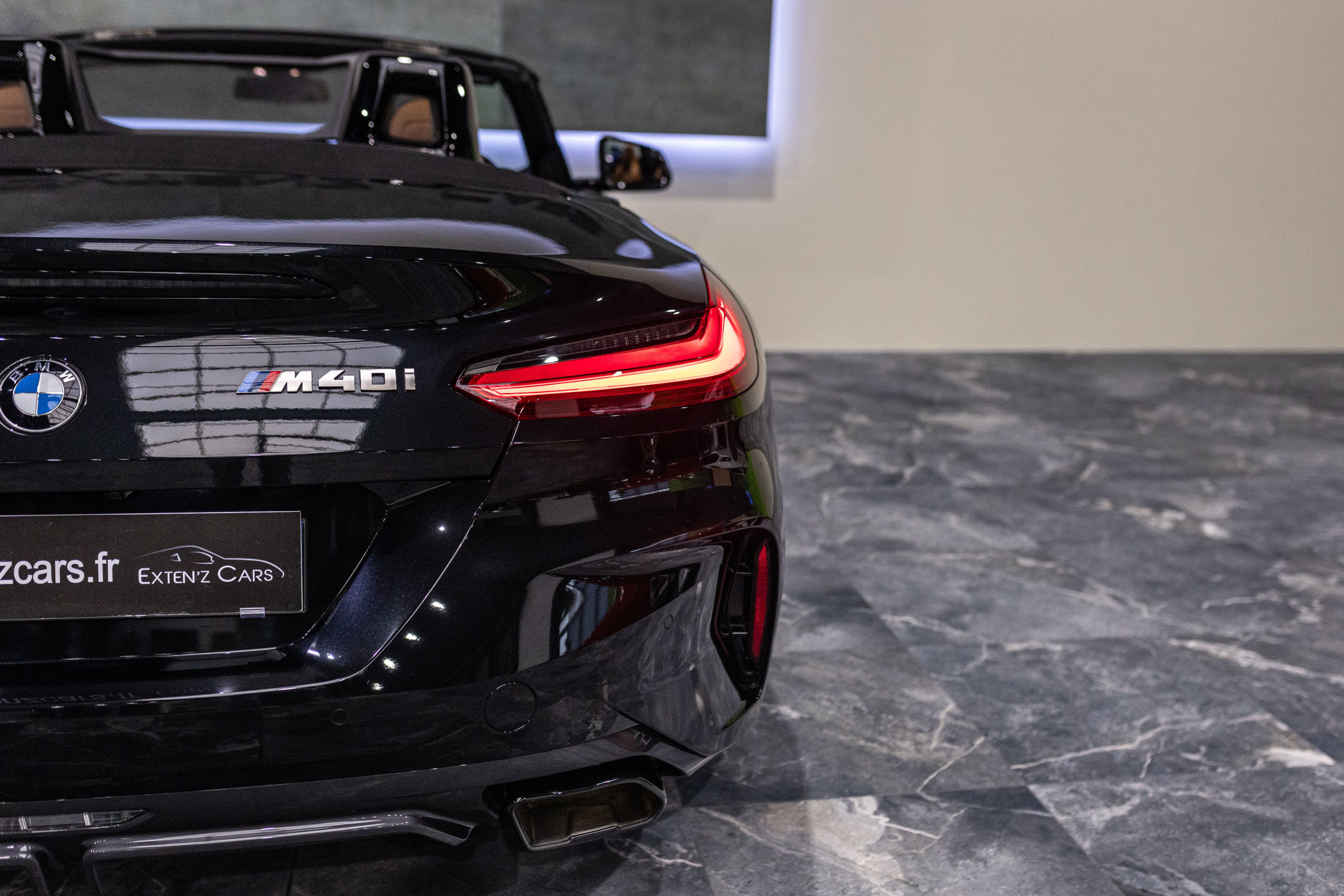 EXTEN’Z CARS vous propose cette magnifique BMW Z4 M 40i (G29) avec son fabuleux 3.0 six cylindres en ligne développant 340 CV (22cv), mise en circulation le 23/07/2020 de couleur Noir Saphir Métallisée. Associée à une boîte automatique à 8 rapports si vous préférez une conduite plus sportive, il lui suffit de passer en mode manuel pour disposer alors des rapports fixes à l’aide des palettes de changement de vitesse au volant. Autant son comportement routier est parmi les meilleurs de sa catégorie et sa ligne fait l’unanimité. Vous apprécierez sa puissance confortablement à bord d’un 6 Cylindres envoûtant. Vous apprécierez également l’ensemble des équipements d’un véritable haut de gamme à bord de ce Cabriolet.