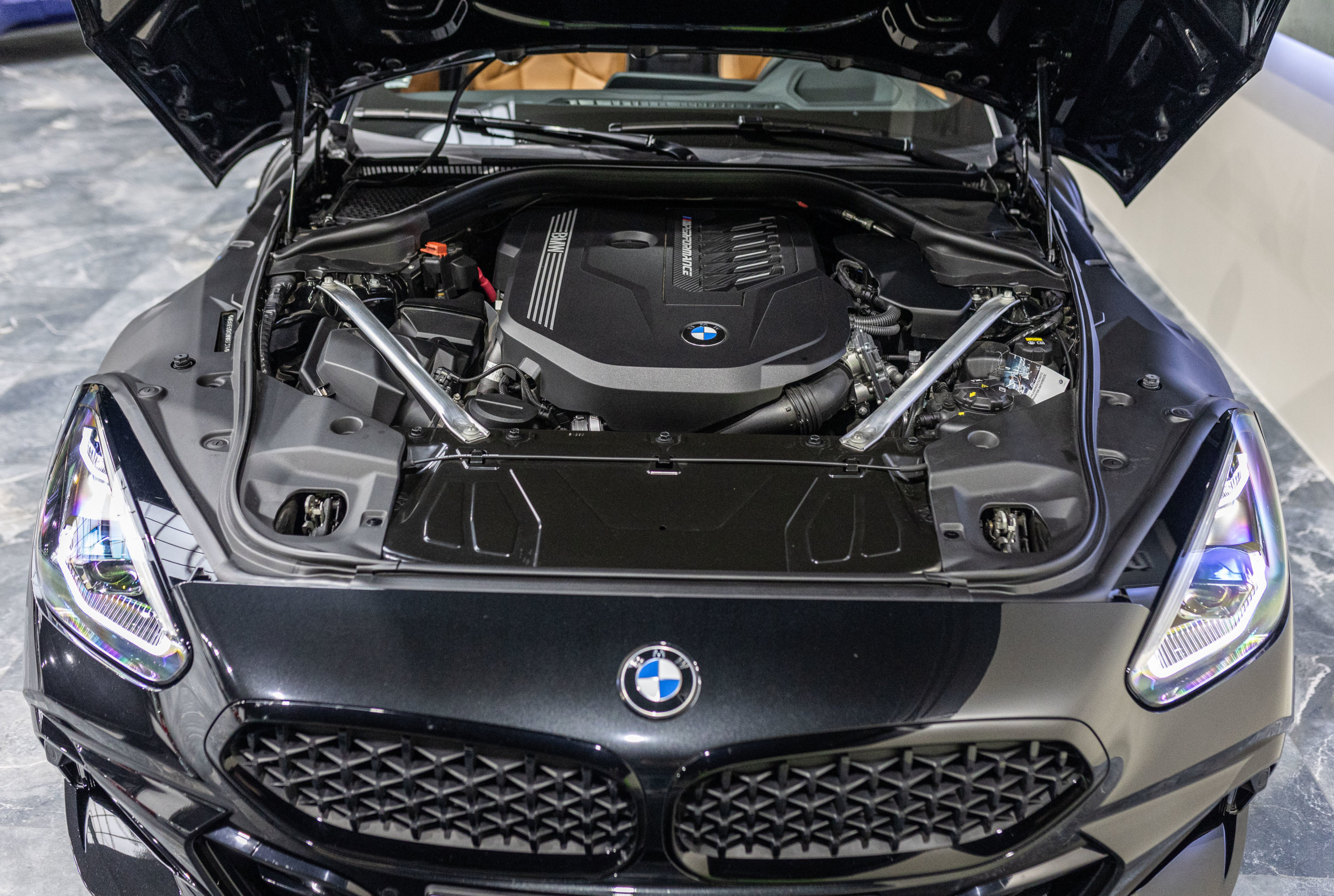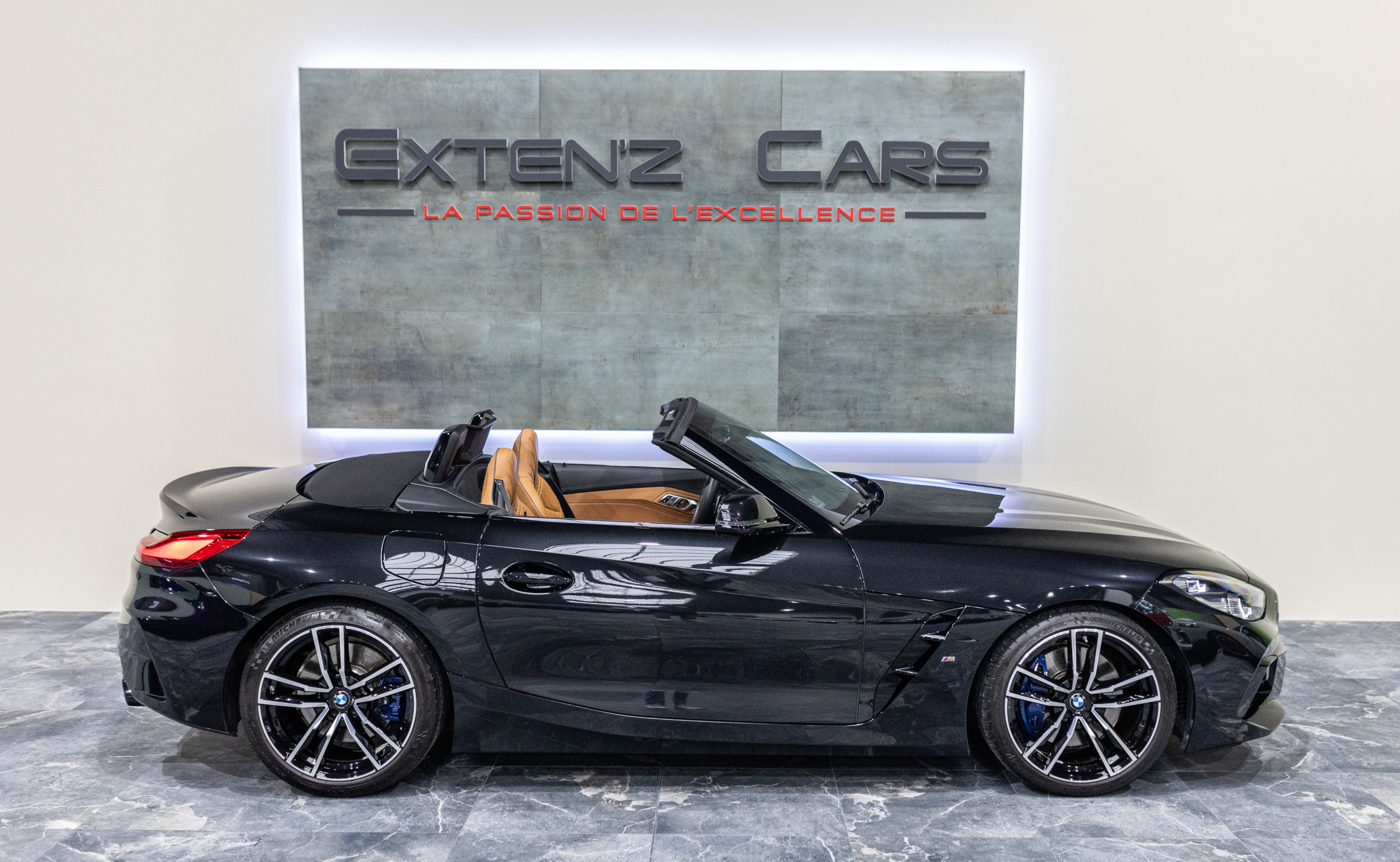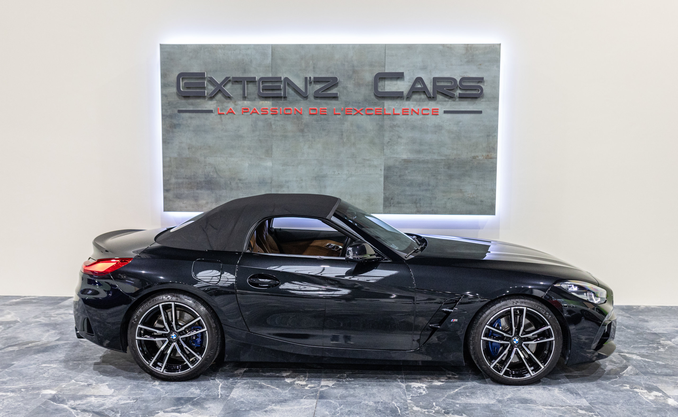 EXTEN’Z CARS vous propose cette magnifique BMW Z4 M 40i (G29) avec son fabuleux 3.0 six cylindres en ligne développant 340 CV (22cv), mise en circulation le 23/07/2020 de couleur Noir Saphir Métallisée. Associée à une boîte automatique à 8 rapports si vous préférez une conduite plus sportive, il lui suffit de passer en mode manuel pour disposer alors des rapports fixes à l’aide des palettes de changement de vitesse au volant. Autant son comportement routier est parmi les meilleurs de sa catégorie et sa ligne fait l’unanimité. Vous apprécierez sa puissance confortablement à bord d’un 6 Cylindres envoûtant. Vous apprécierez également l’ensemble des équipements d’un véritable haut de gamme à bord de ce Cabriolet.