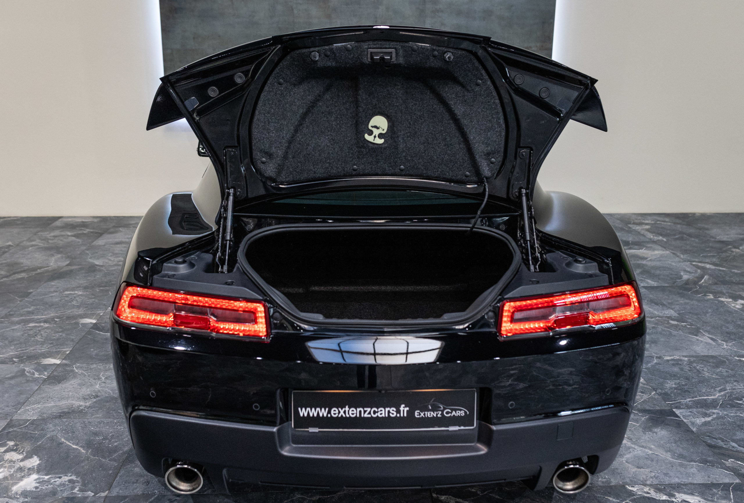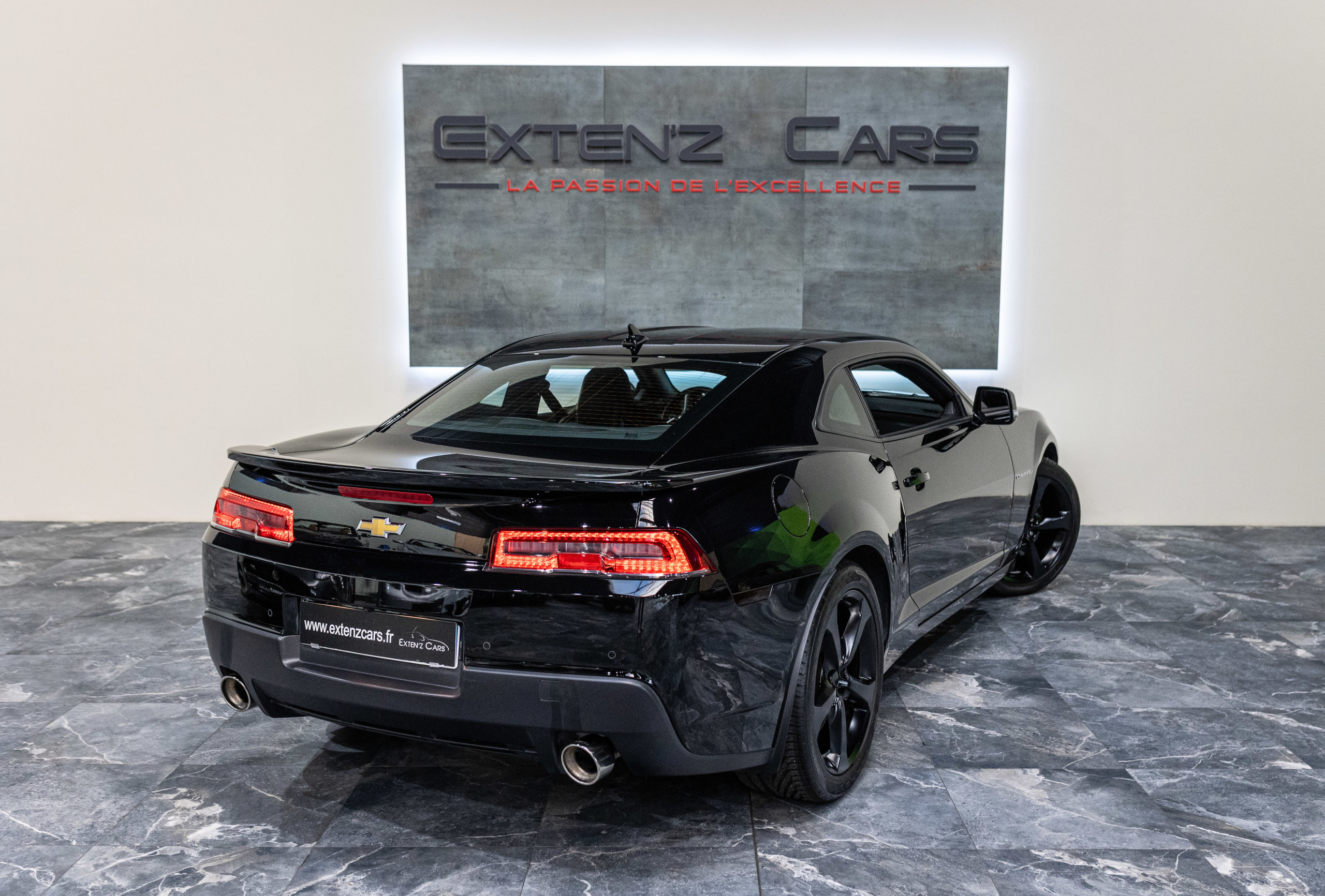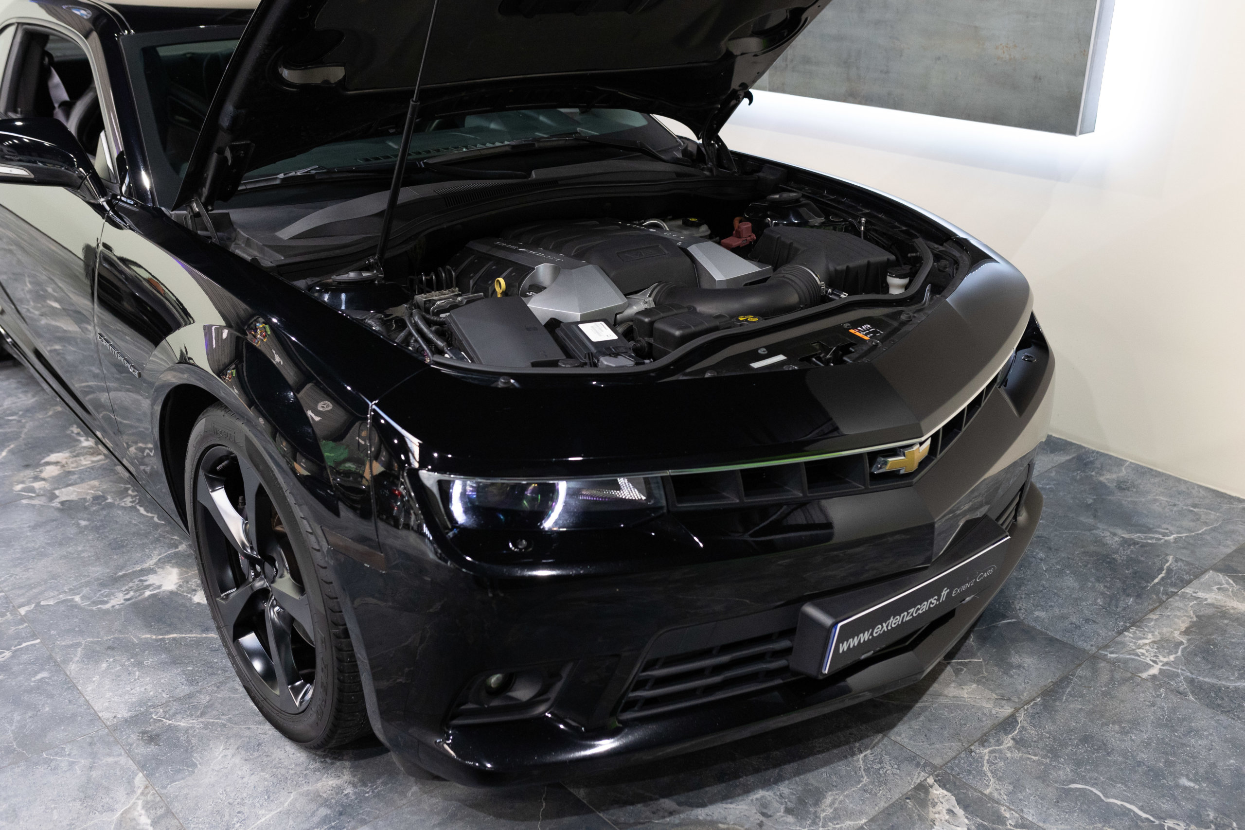 EXTEN’Z CARS vous propose cette séduisante Camaro associée à une configuration rare et tout simplement magnifique Chevrolet Camaro V (II) Coupé avec son fantastique V8 6.2 Atmosphérique développant 405CV (32cv), mise en circulation le 06/08/2014 de couleur Noir. Cette Camaro distille beaucoup de plaisir à ses occupants tout en offrant un rapport prix/plaisir. En particulier sa silhouette bodybuildée, la position de conduite est parfaite et on peut admirer devant soi le long capot bosselé. Prendre les commandes d’un tel engin, aussi imposant par le gabarit que par son histoire, génère des sensations extraordinaires.