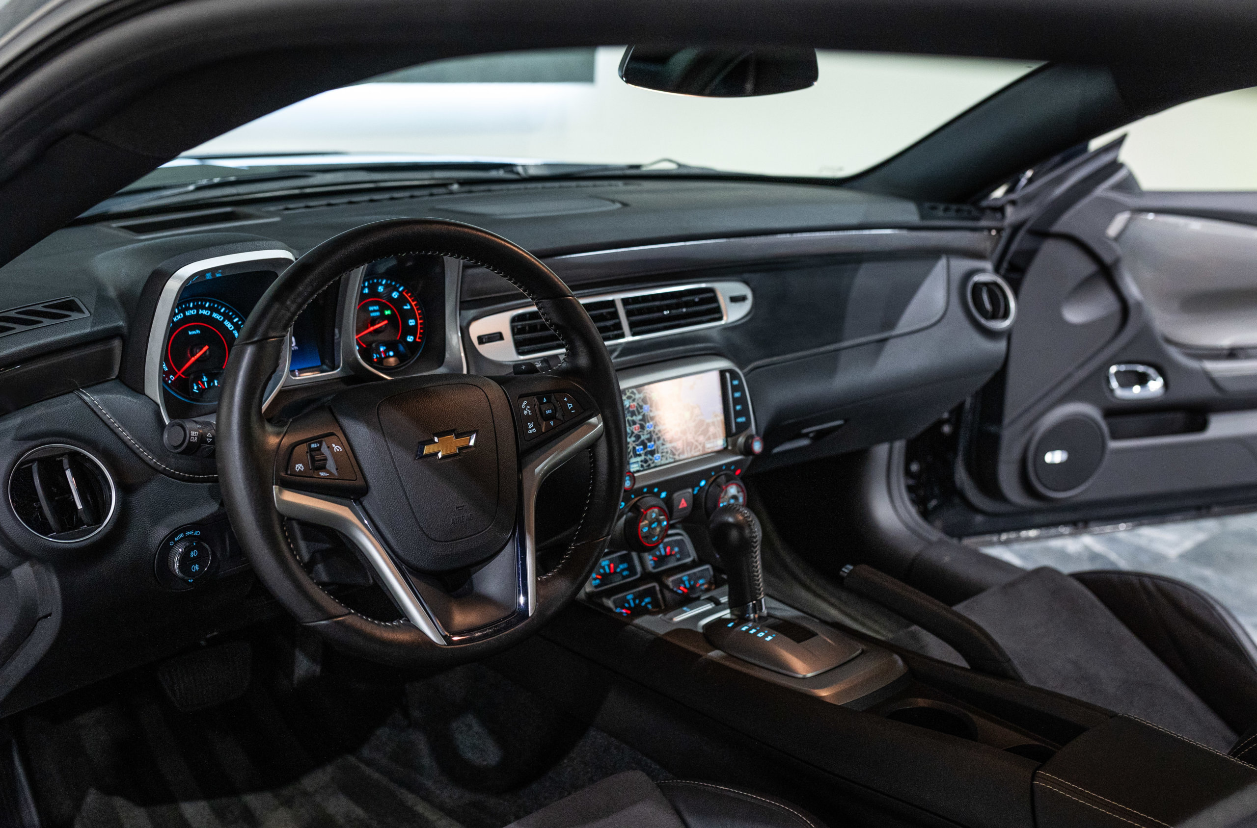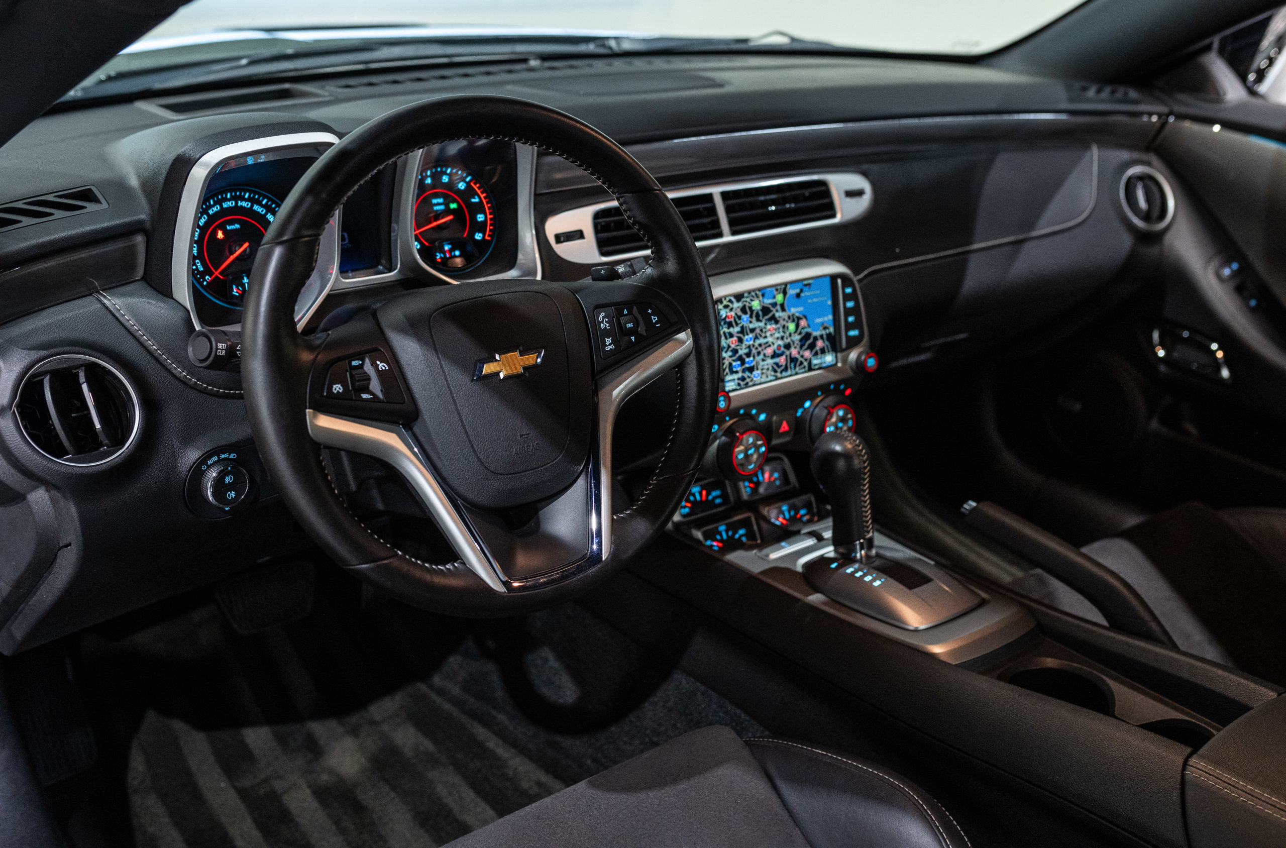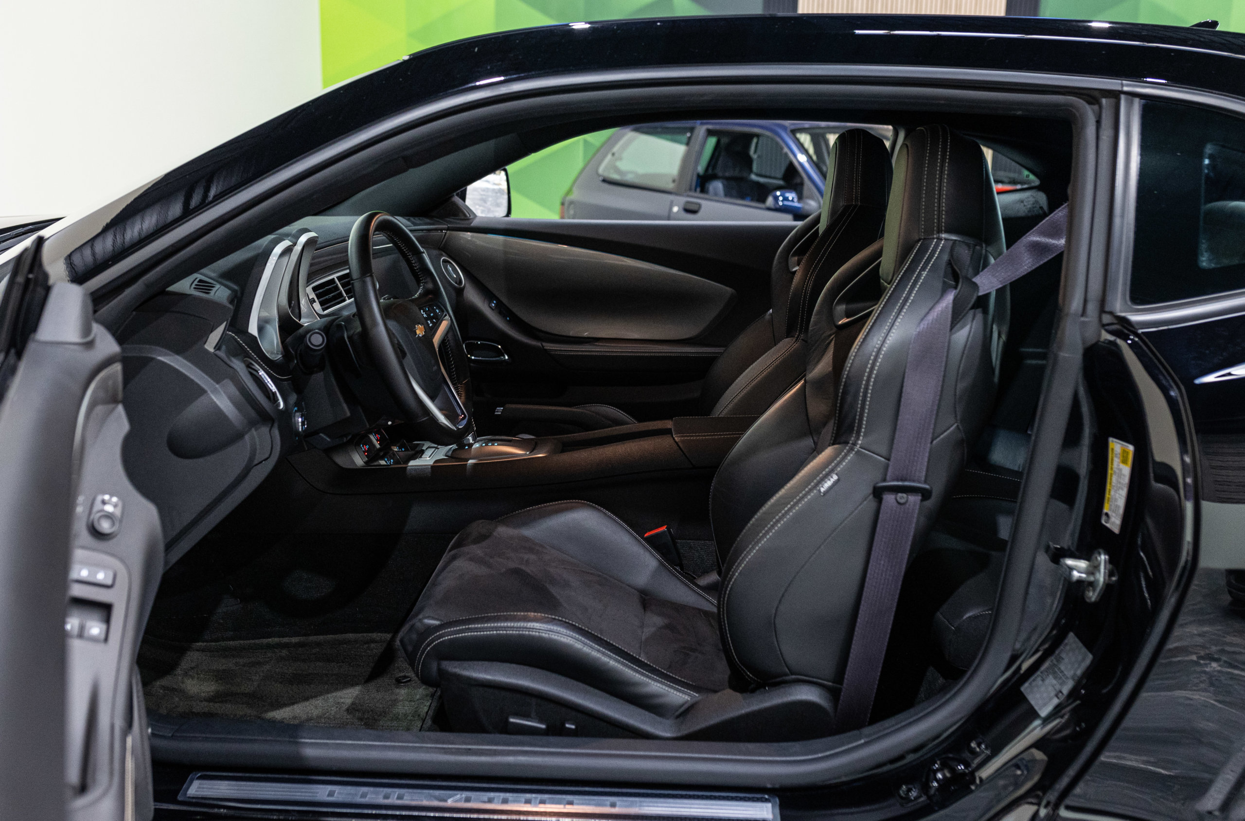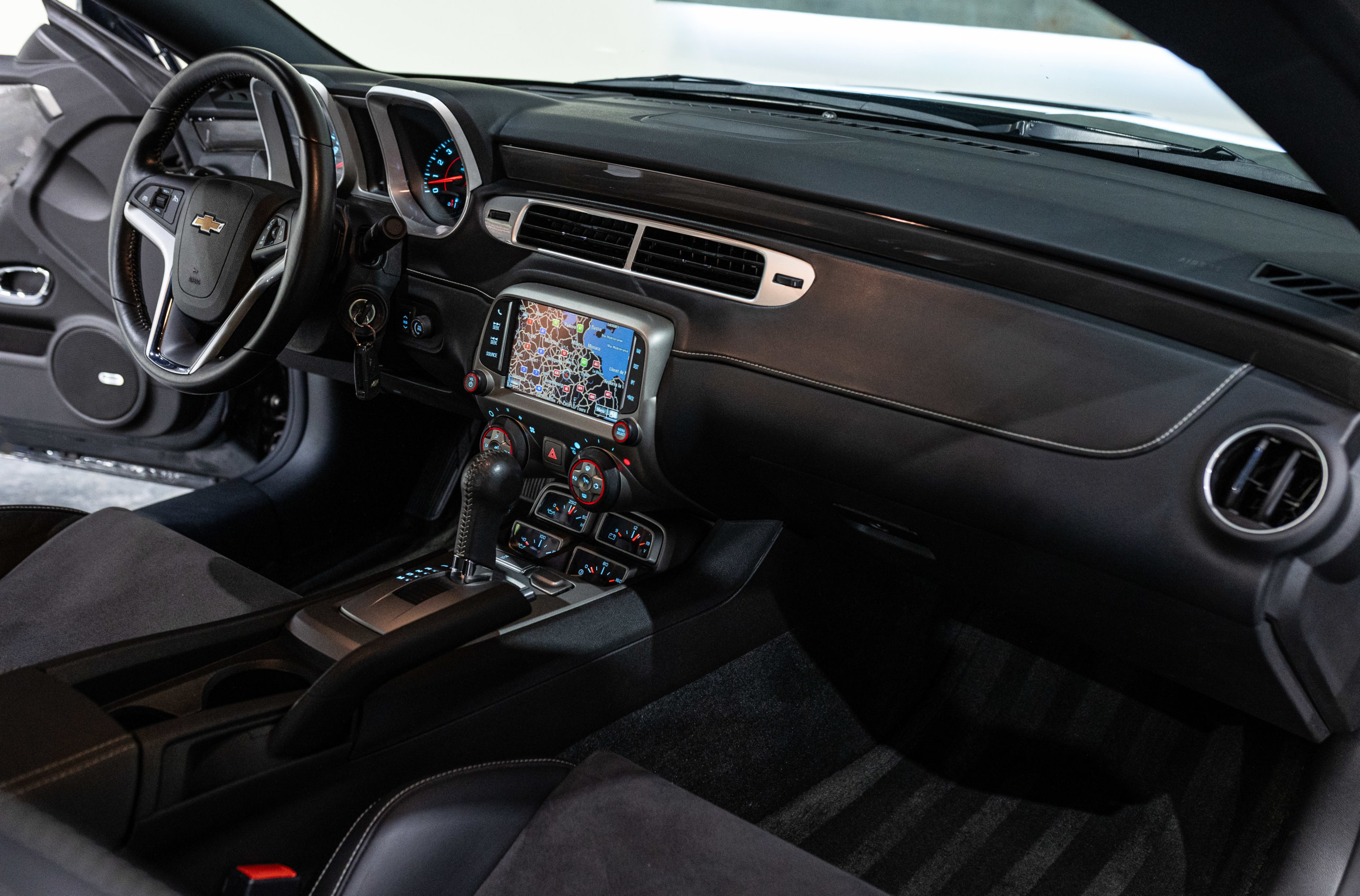 EXTEN’Z CARS vous propose cette séduisante Camaro associée à une configuration rare et tout simplement magnifique Chevrolet Camaro V (II) Coupé avec son fantastique V8 6.2 Atmosphérique développant 405CV (32cv), mise en circulation le 06/08/2014 de couleur Noir. Cette Camaro distille beaucoup de plaisir à ses occupants tout en offrant un rapport prix/plaisir. En particulier sa silhouette bodybuildée, la position de conduite est parfaite et on peut admirer devant soi le long capot bosselé. Prendre les commandes d’un tel engin, aussi imposant par le gabarit que par son histoire, génère des sensations extraordinaires.