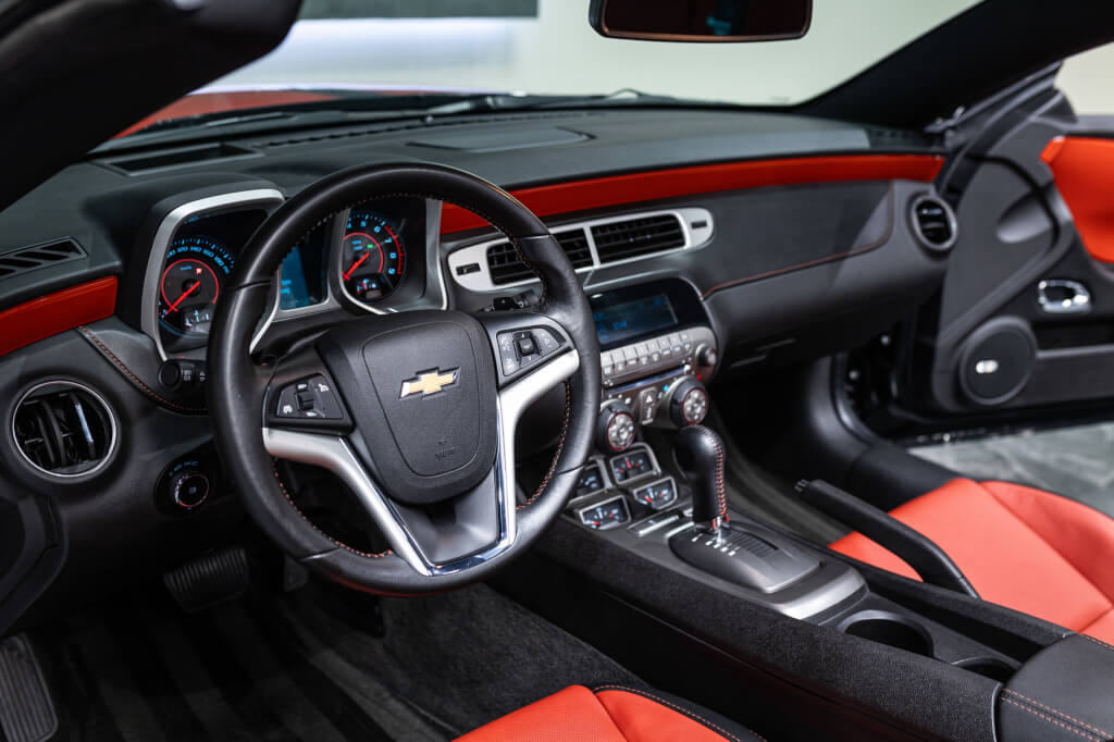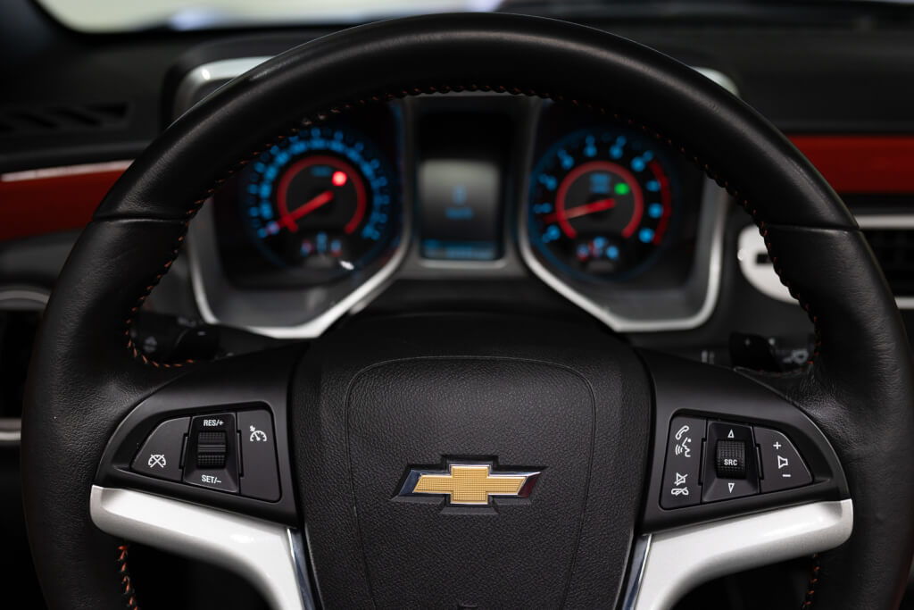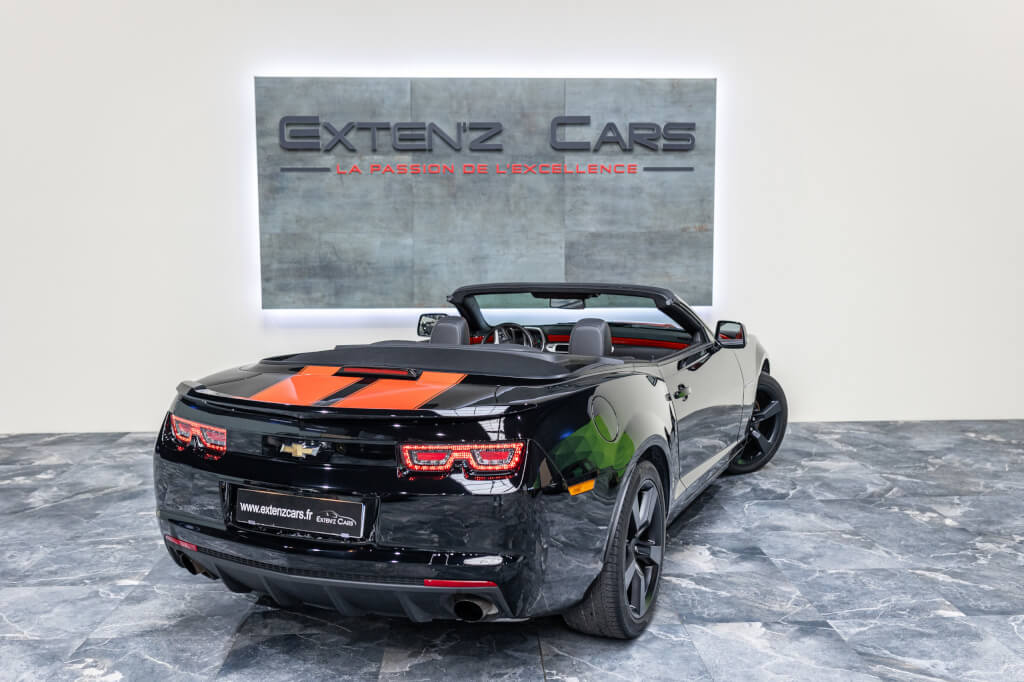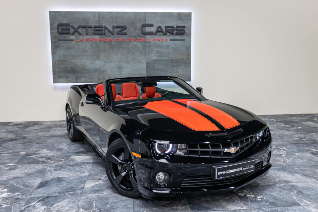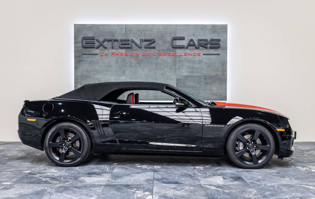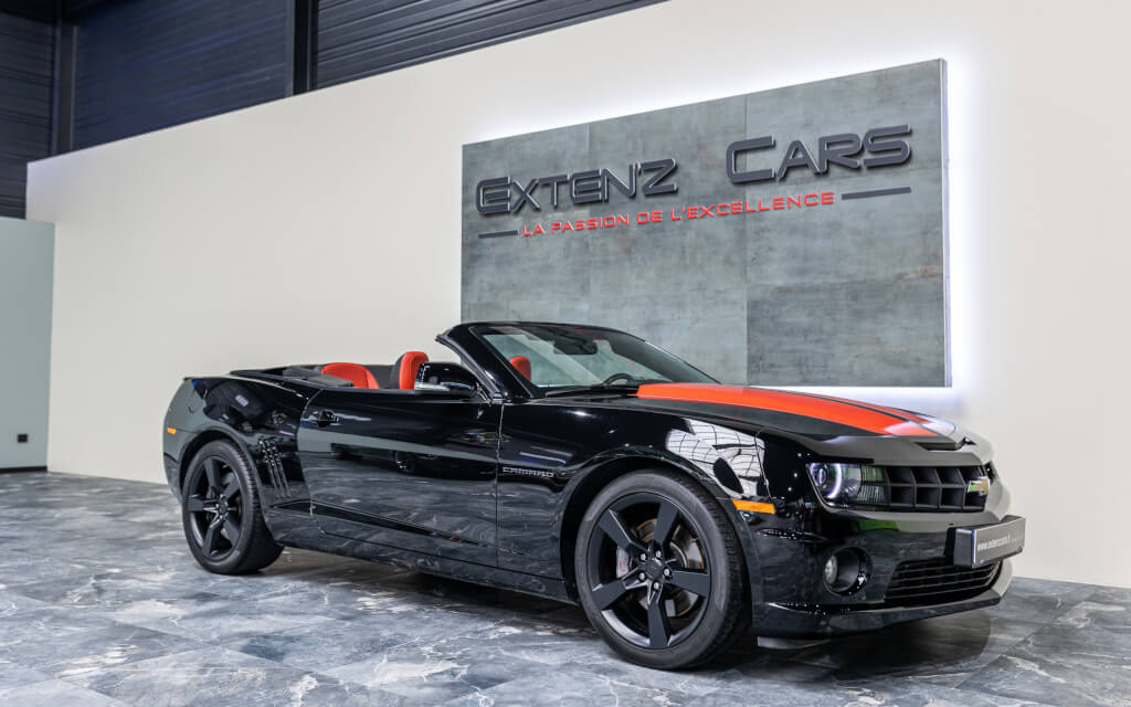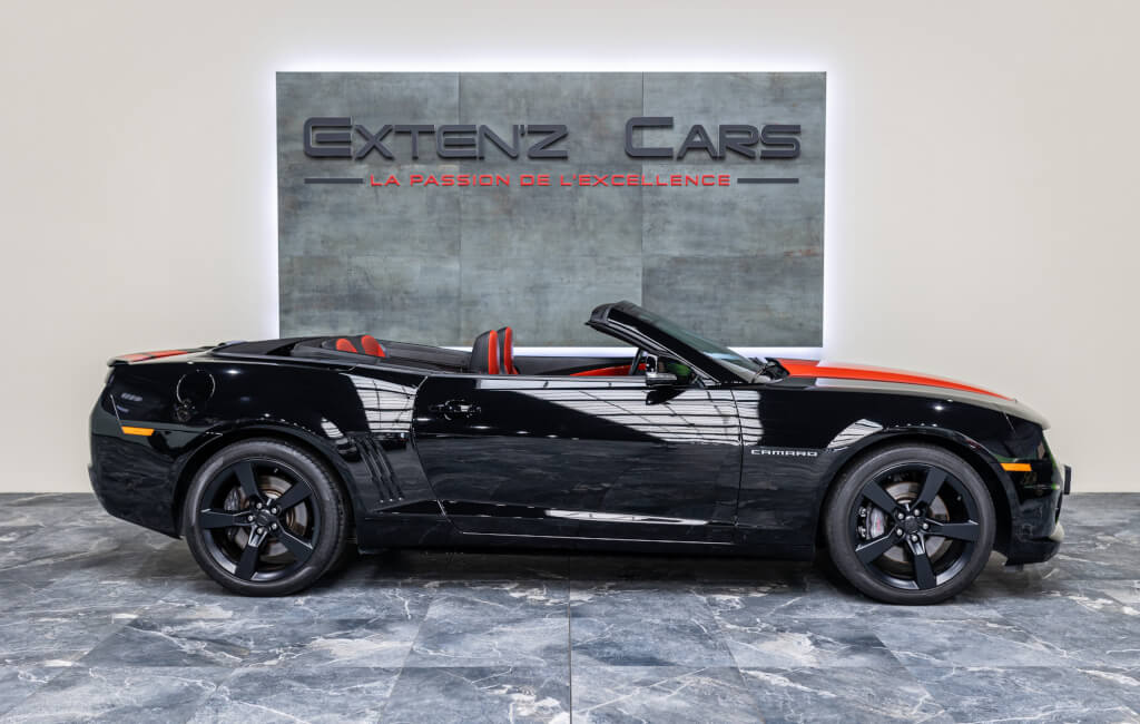 EXTEN’Z CARS vous propose cette séduisante Chevrolet Camaro V Convertible avec son fantastique V8 6.2 Atmosphérique développant 405 CV (32cv), mise en circulation le 21/06/2012. Cette Camaro distille beaucoup de plaisir à ses occupants tout en offrant un rapport prix/plaisir. En particulier sa silhouette bodybuildée, la position de conduite est parfaite et on peut admirer devant soi le long capot bosselé. Prendre les commandes d’un tel engin, aussi imposant par le gabarit que par son histoire, génère des sensations extraordinaires.