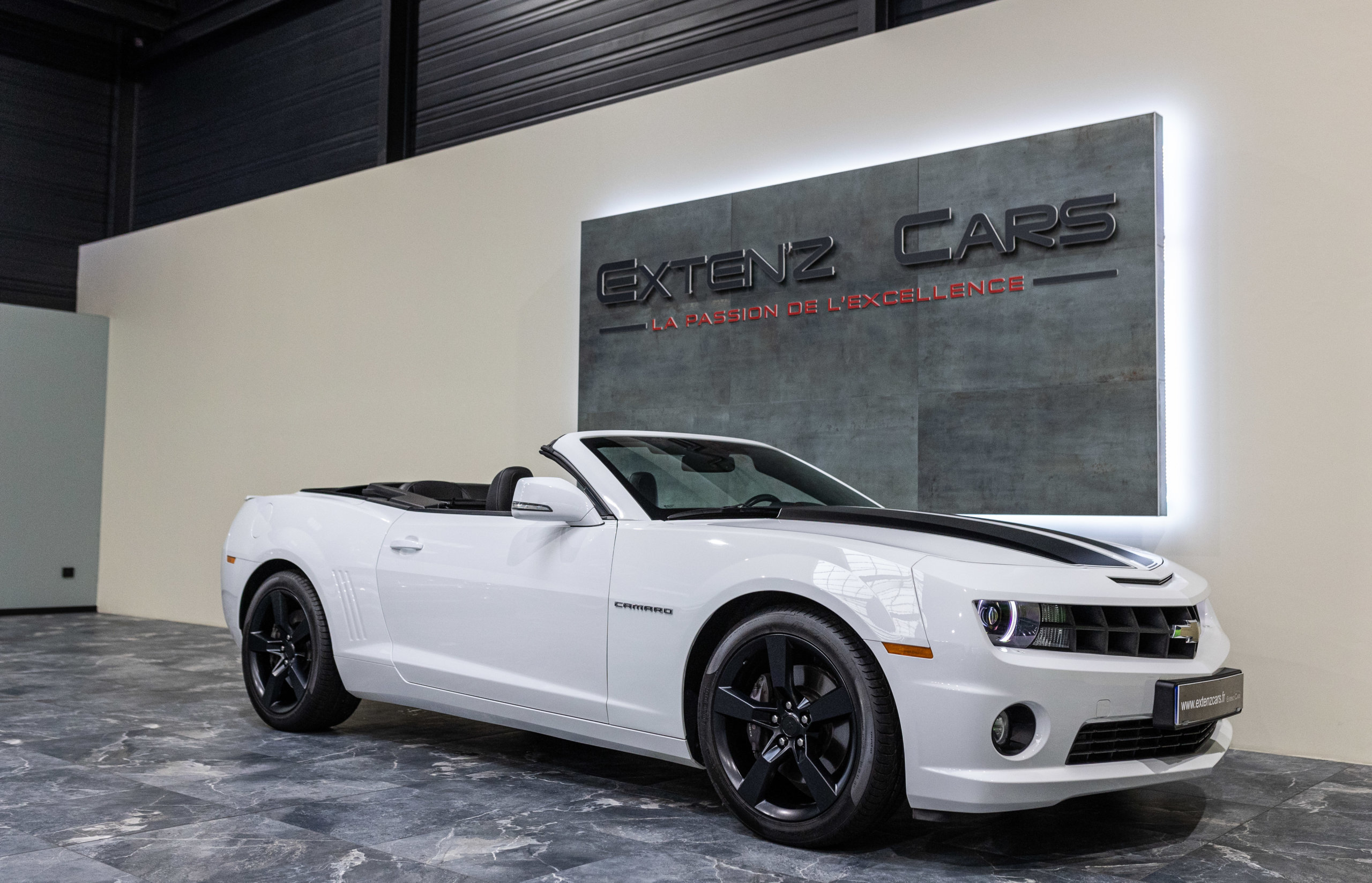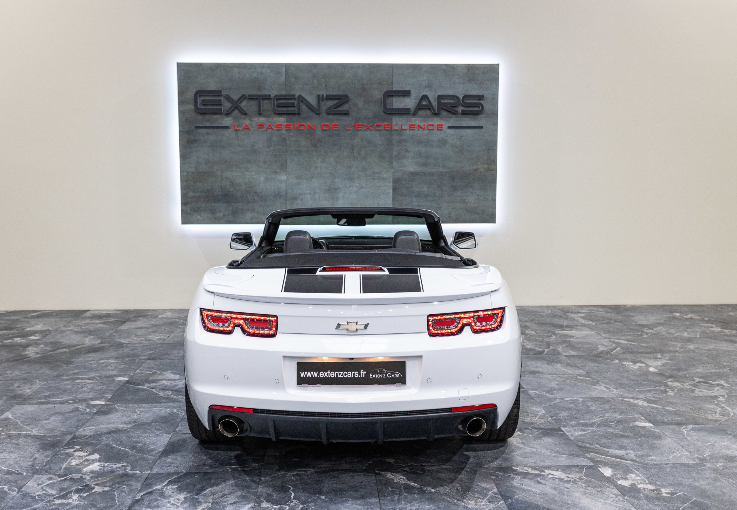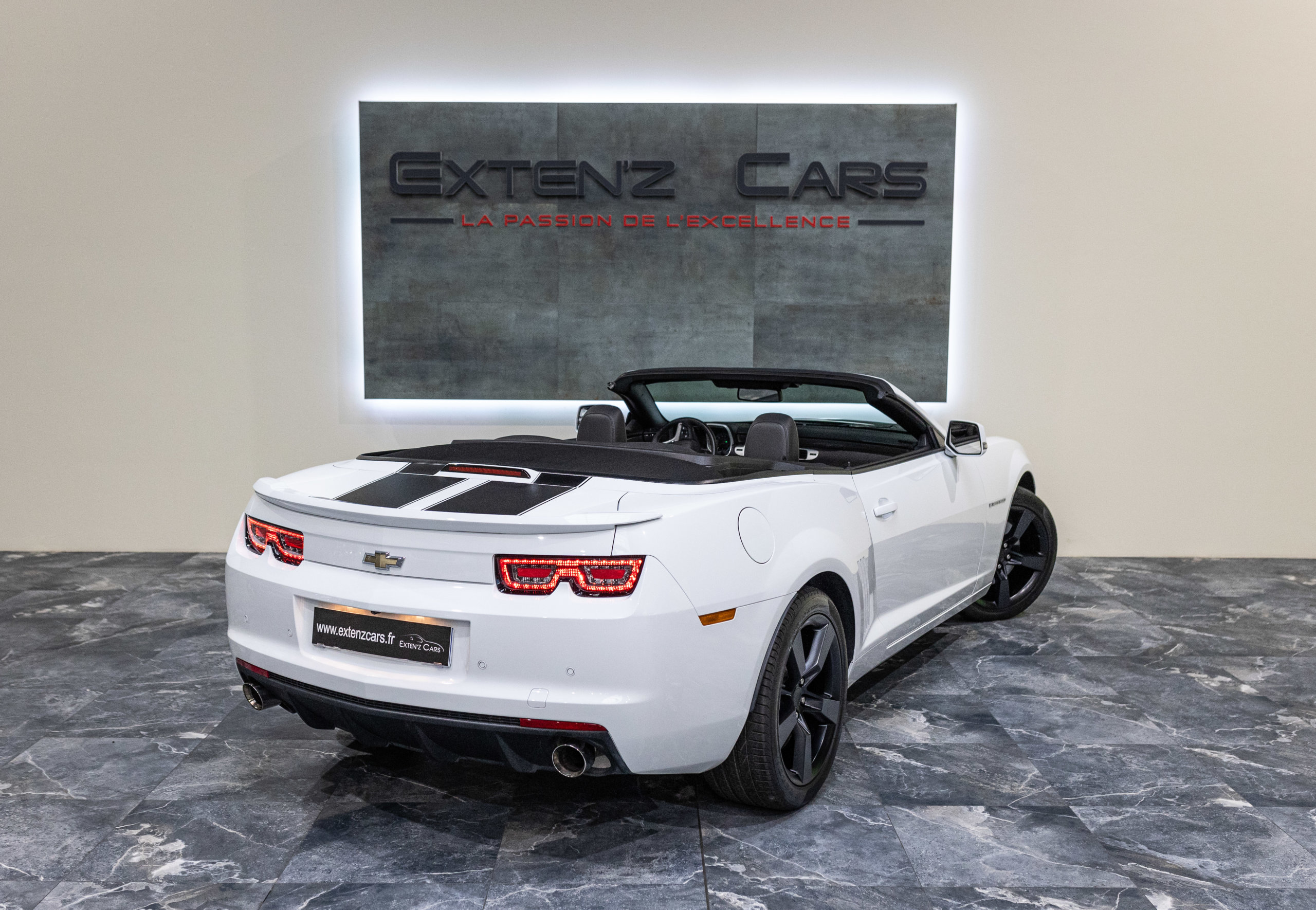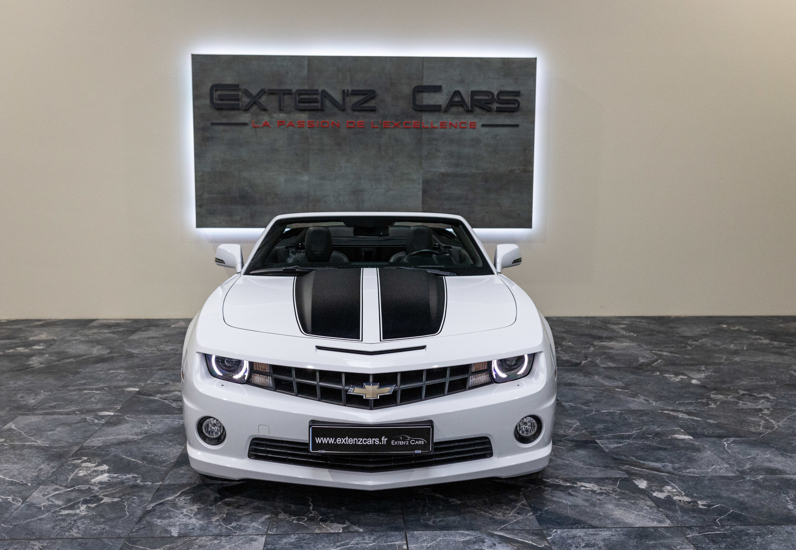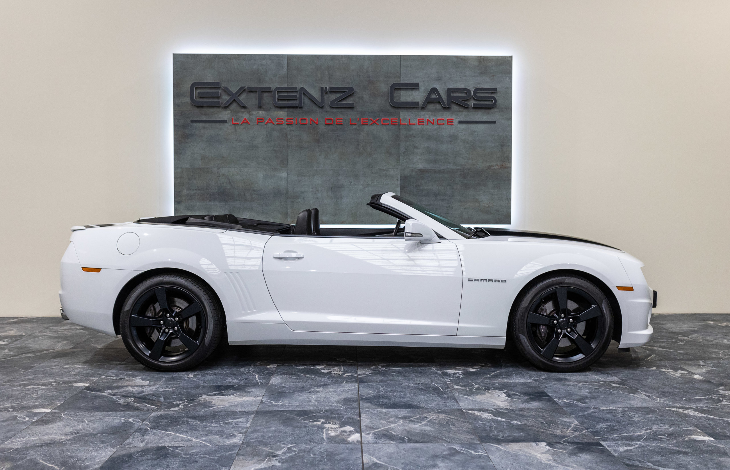 EXTEN’Z CARS vous propose cette séduisante Chevrolet Camaro V Convertible avec son fantastique V8 6.2 Atmosphérique développant 405 CV (32cv), mise en circulation le 11/09/2013. Cette Camaro distille beaucoup de plaisir à ses occupants tout en offrant un rapport prix/plaisir. En particulier sa silhouette bodybuildée, la position de conduite est parfaite et on peut admirer devant soi le long capot bosselé. Prendre les commandes d’un tel engin, aussi imposant par le gabarit que par son histoire, génère des sensations extraordinaires.