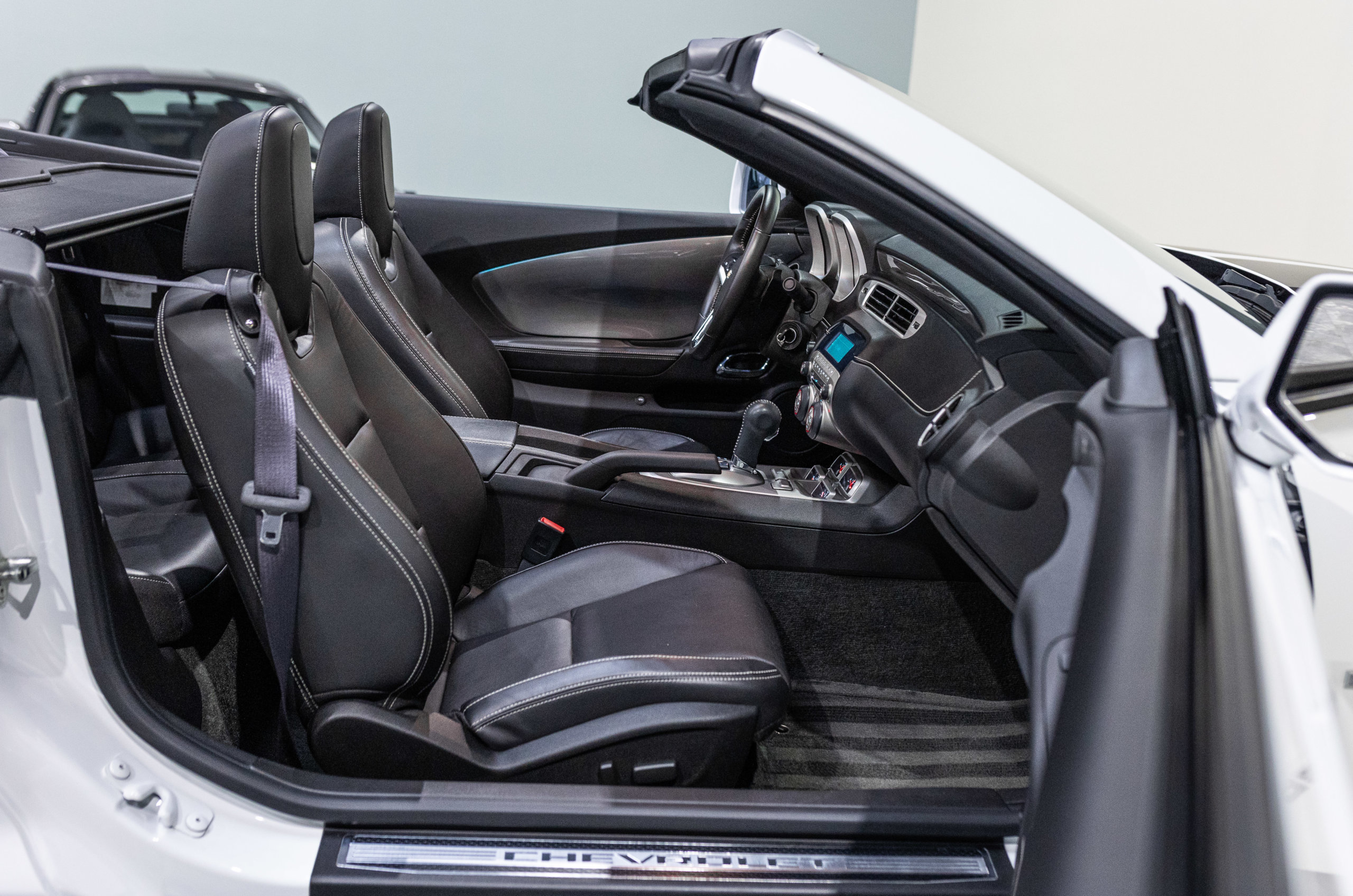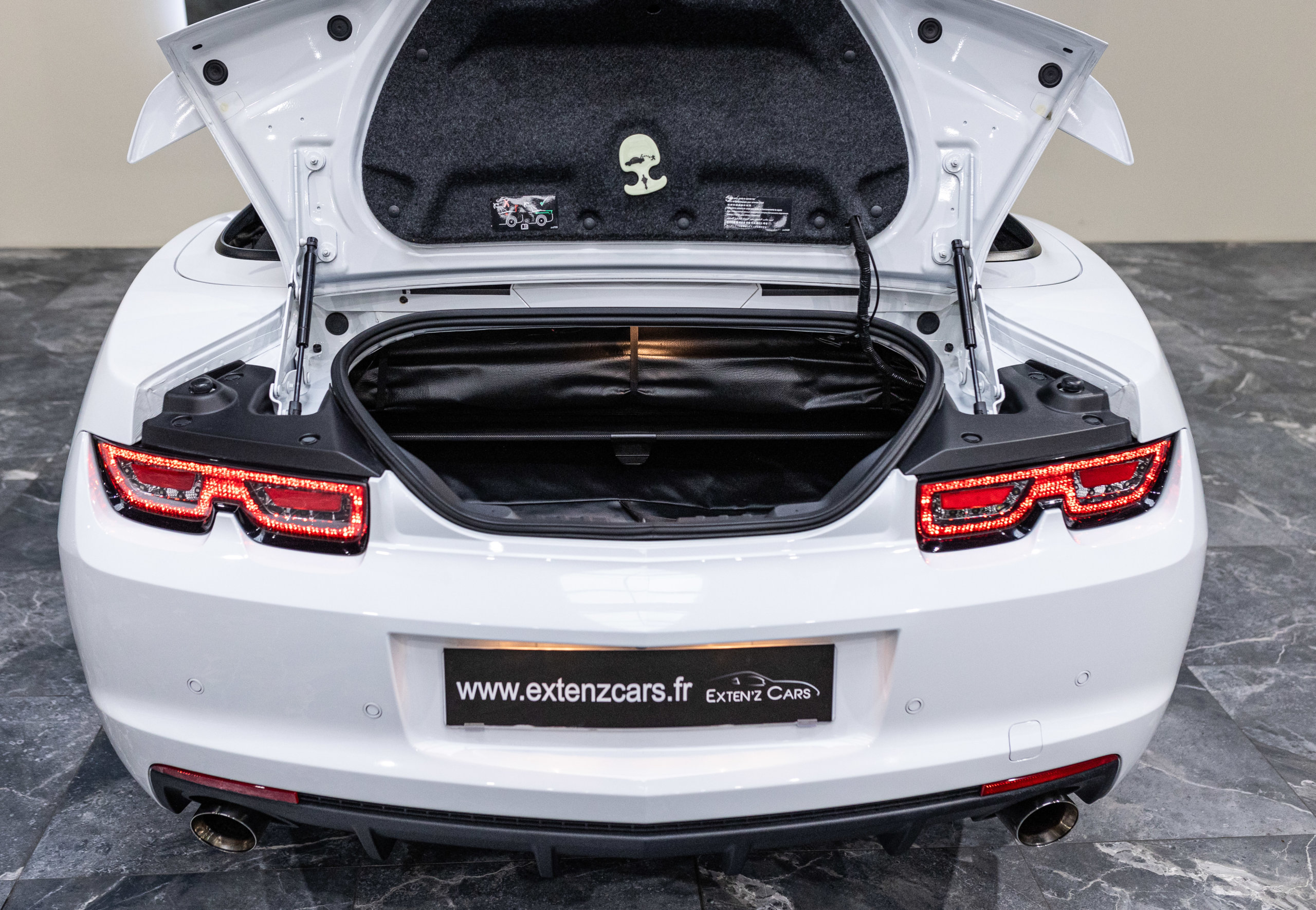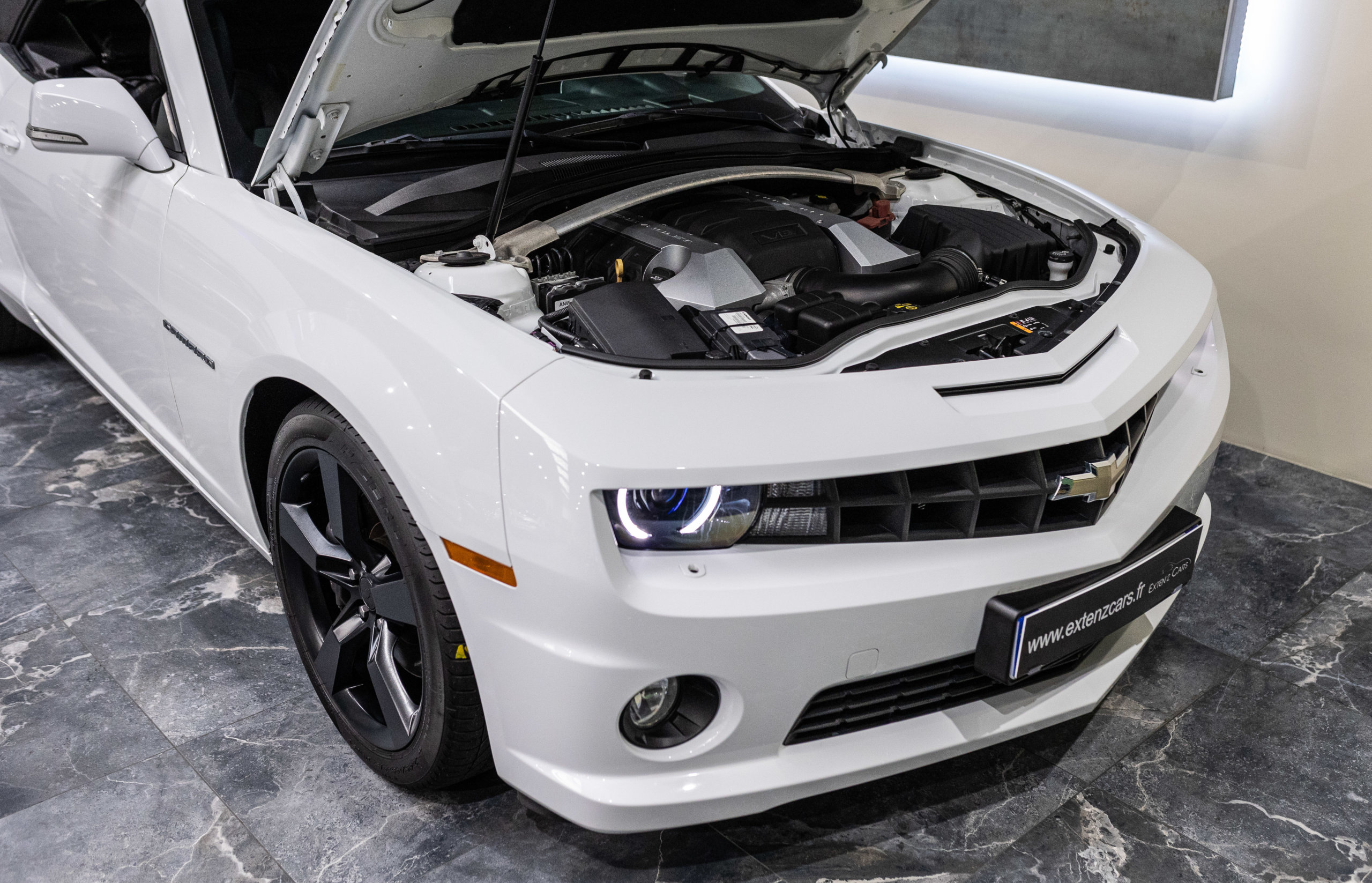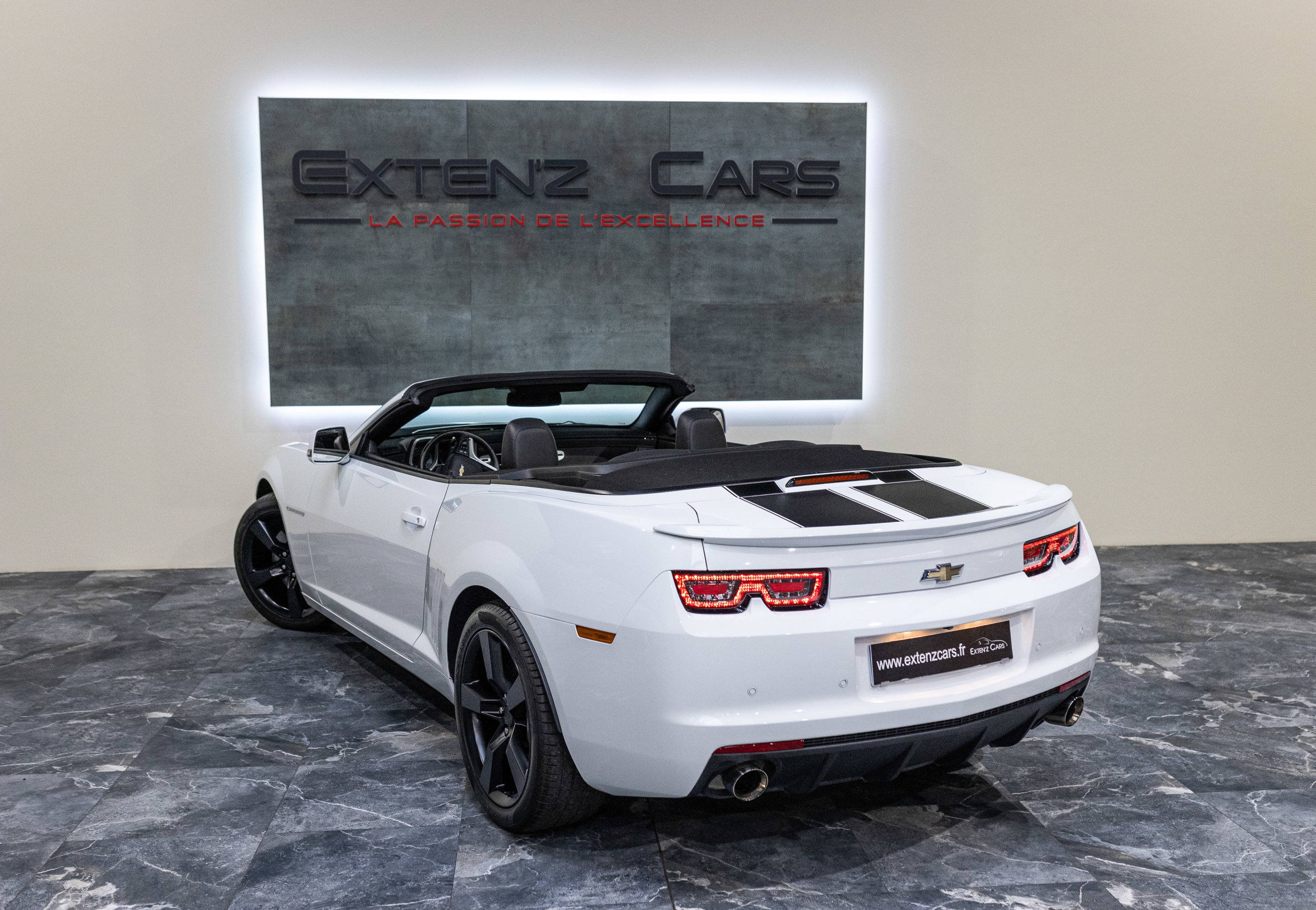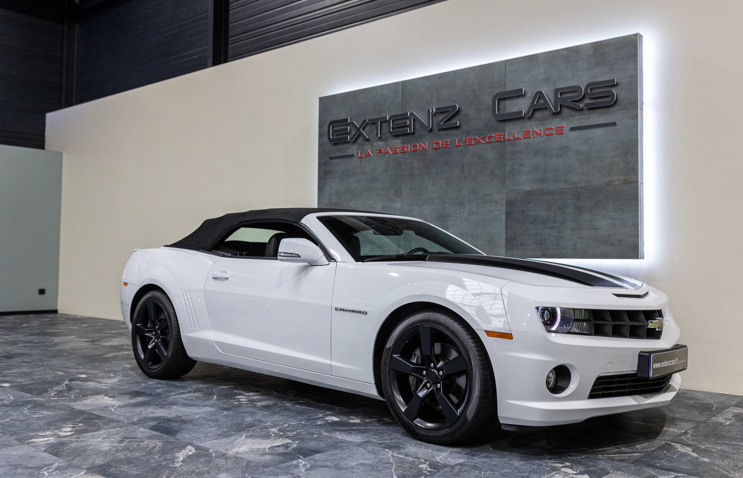 EXTEN’Z CARS vous propose cette séduisante Chevrolet Camaro V Convertible avec son fantastique V8 6.2 Atmosphérique développant 405 CV (32cv), mise en circulation le 11/09/2013. Cette Camaro distille beaucoup de plaisir à ses occupants tout en offrant un rapport prix/plaisir. En particulier sa silhouette bodybuildée, la position de conduite est parfaite et on peut admirer devant soi le long capot bosselé. Prendre les commandes d’un tel engin, aussi imposant par le gabarit que par son histoire, génère des sensations extraordinaires.