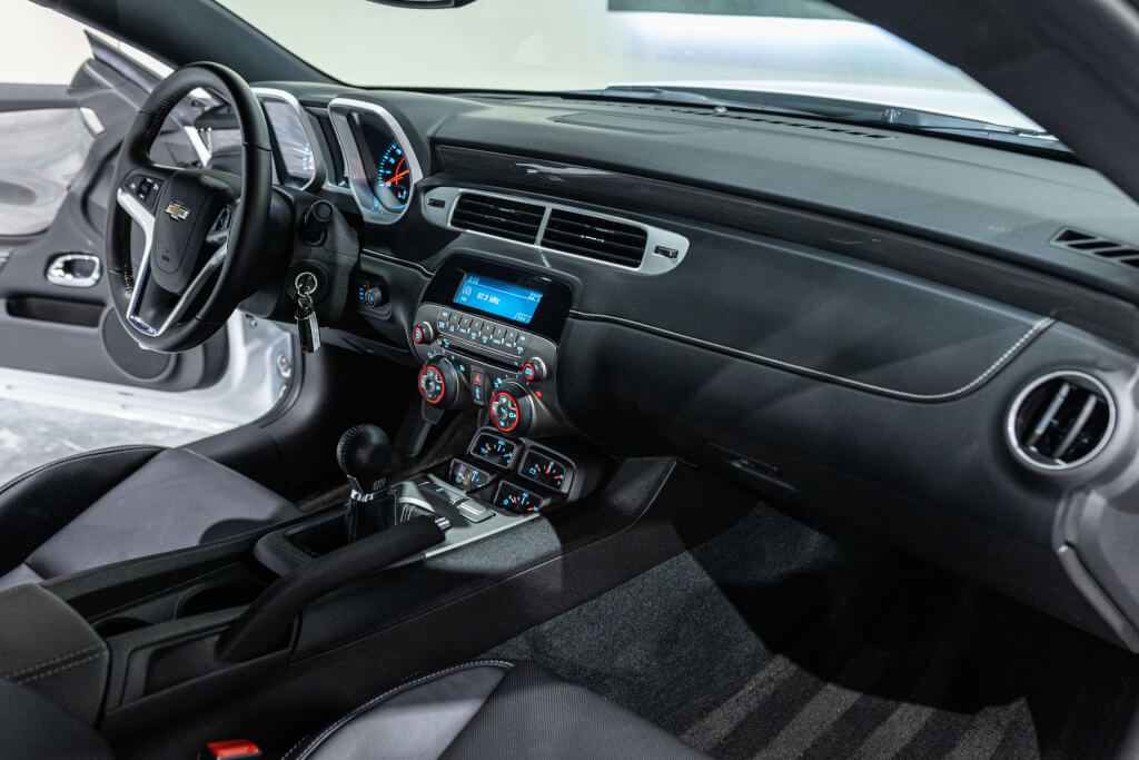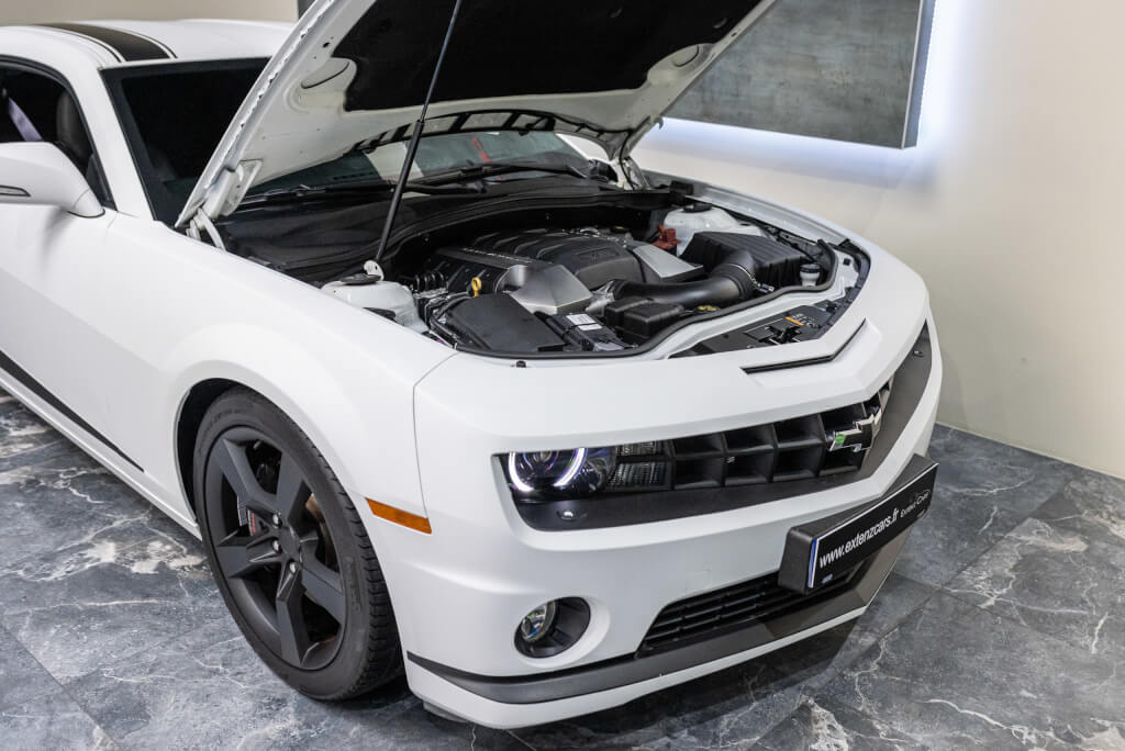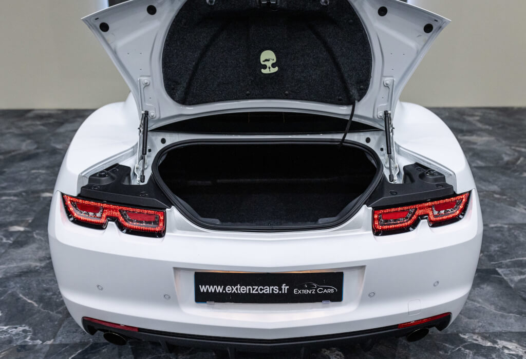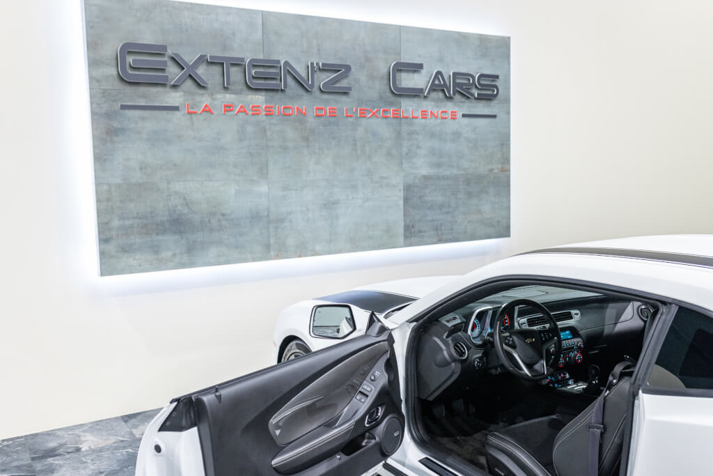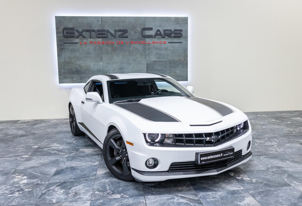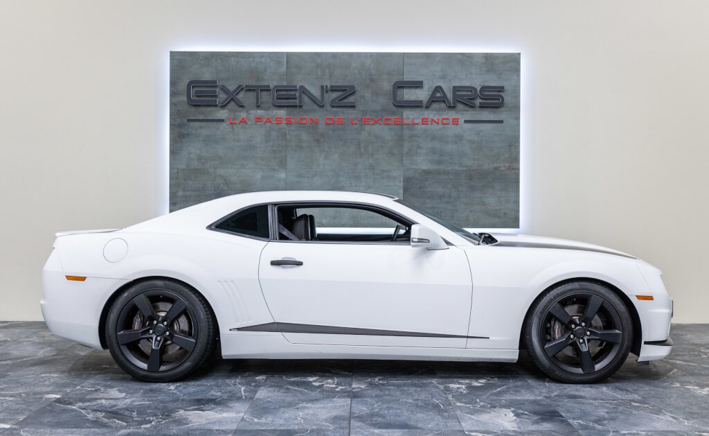 EXTEN’Z CARS vous propose cette séduisante Camaro associée à une configuration rare et tout simplement magnifique. Chevrolet Camaro V Coupé avec son fantastique V8 6.2 Atmosphérique développant 432CV (35cv), mise en circulation le 16/08/2012. Cette Camaro distille beaucoup de plaisir à ses occupants tout en offrant un rapport prix/plaisir. En particulier sa silhouette bodybuildée, la position de conduite est parfaite et on peut admirer devant soi le long capot bosselé. Prendre les commandes d’un tel engin, aussi imposant par le gabarit que par son histoire, génère des sensations extraordinaires.