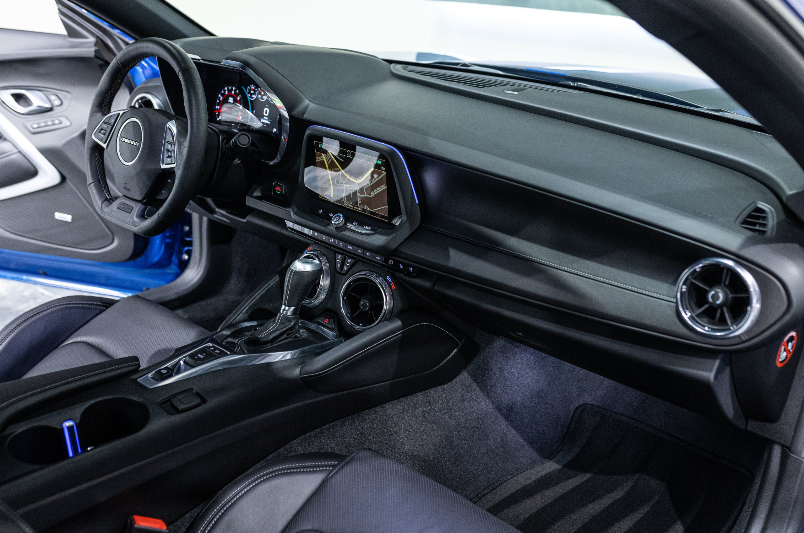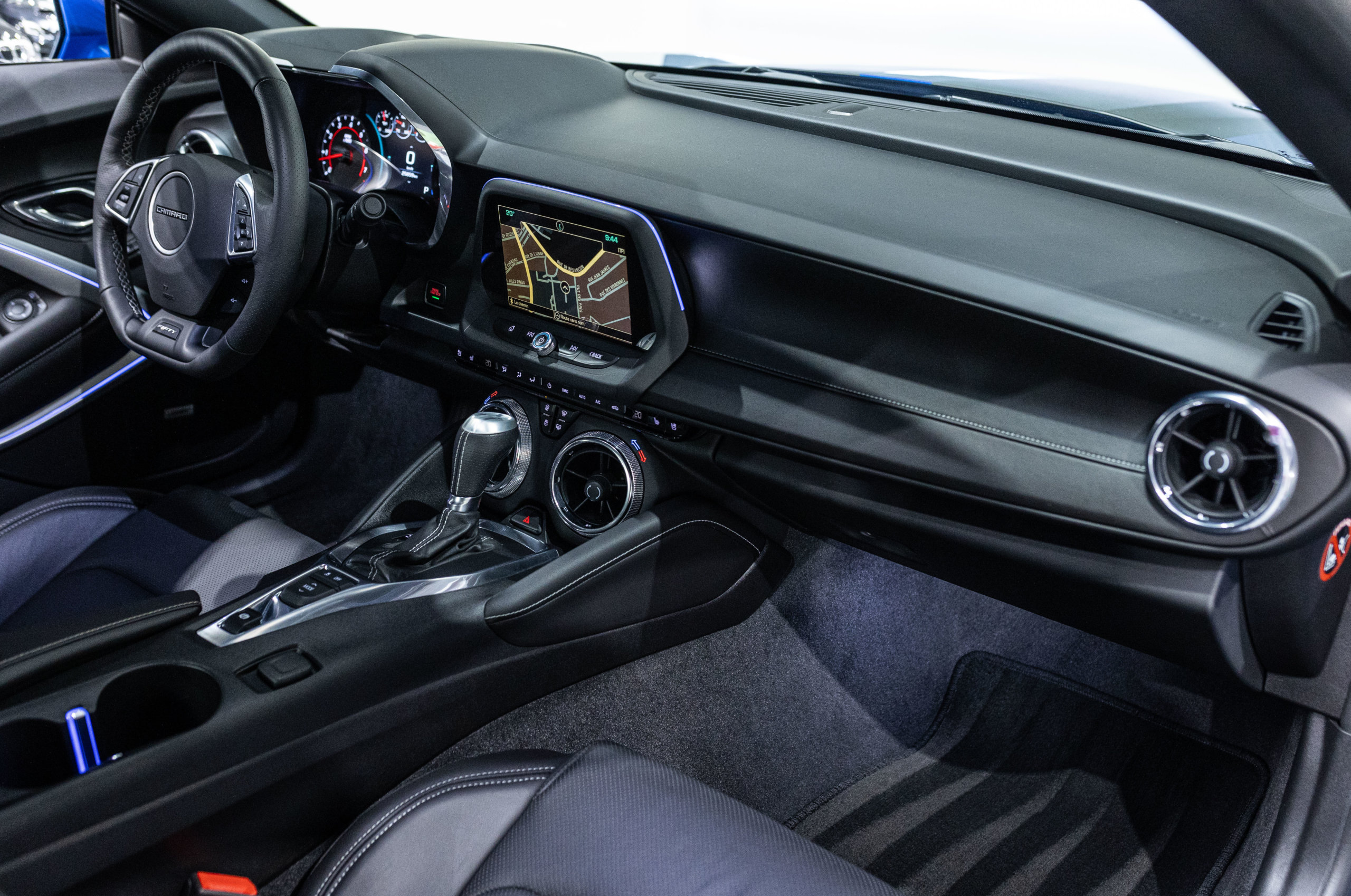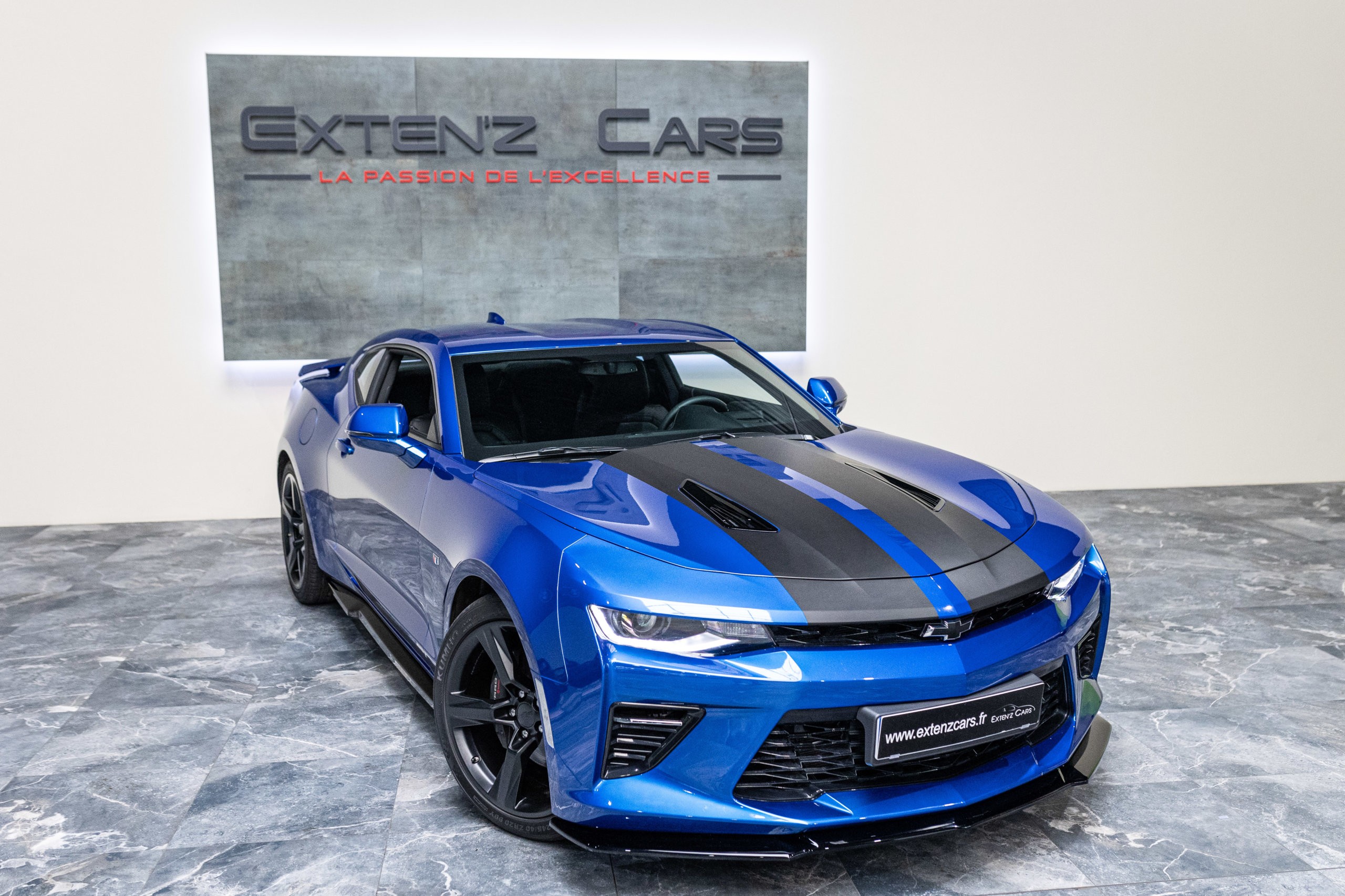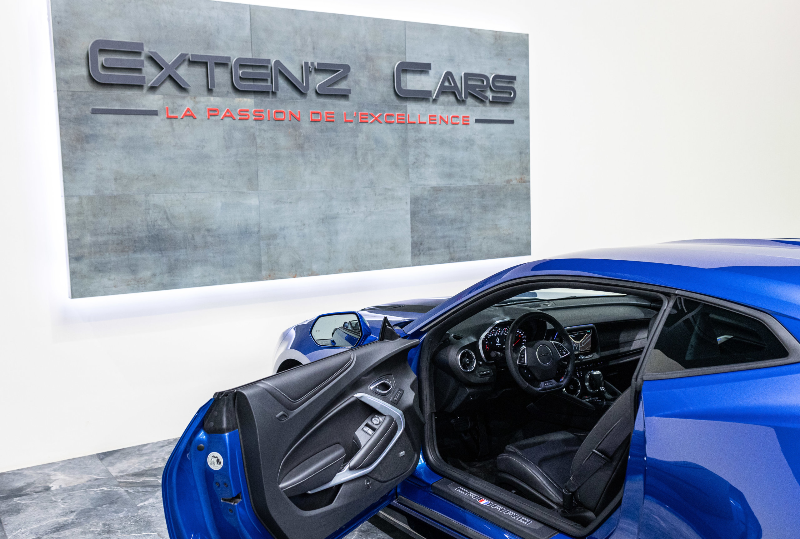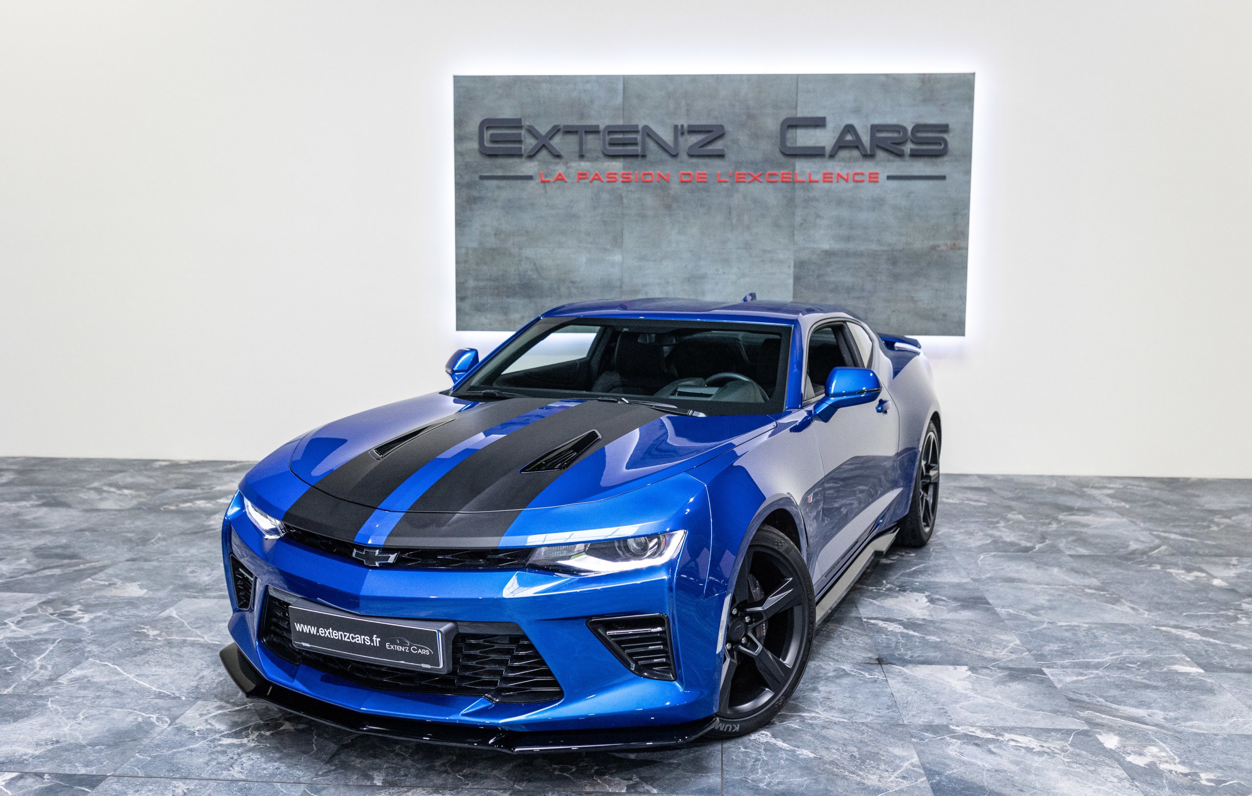 EXTEN’Z CARS vous propose cette séduisante Chevrolet Camaro VI avec son fantastique V8 6.2 Atmosphérique développant 453 CV (35cv), mise en circulation le 03/05/2017 de couleur Blue Me Away Metallic. Associée à une boite à vitesse automatique à huit rapports, si vous préférez une conduite plus sportive, il lui suffit de passer en mode manuel à l’aide des palettes de changement de vitesse au volant pour disposer alors des sept rapports fixes. Cette Camaro distille beaucoup de plaisir à ses occupants tout en offrant un rapport prix/plaisir. En particulier sa silhouette bodybuildée, la position de conduite est parfaite et on peut admirer devant soi le long capot bosselé. Prendre les commandes d’un tel engin, aussi imposant par le gabarit que par son histoire, génère des sensations extraordinaires.