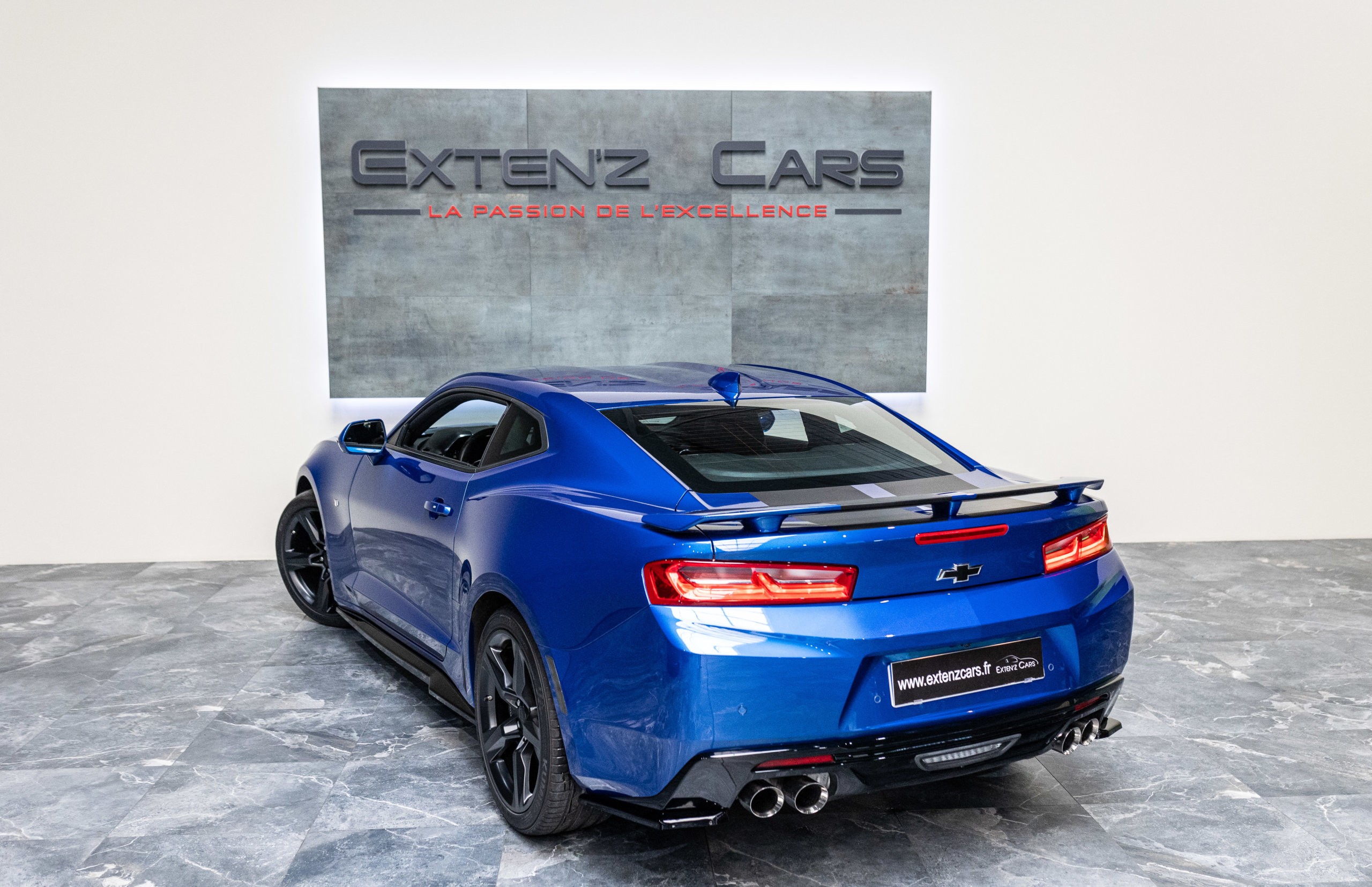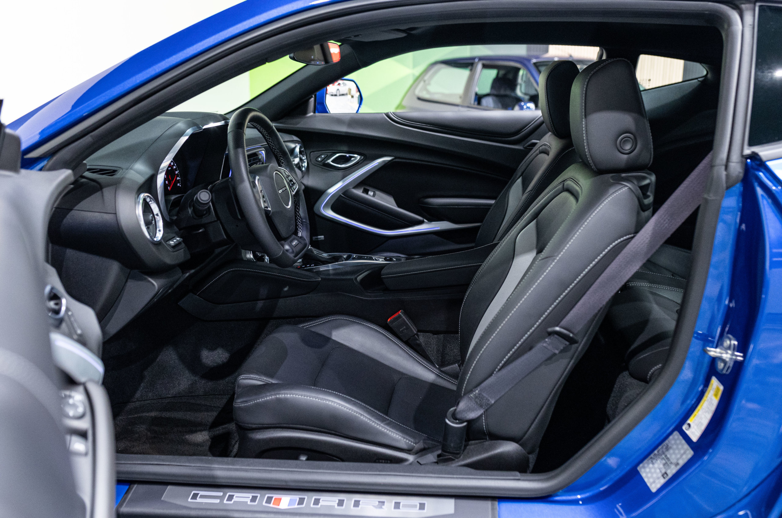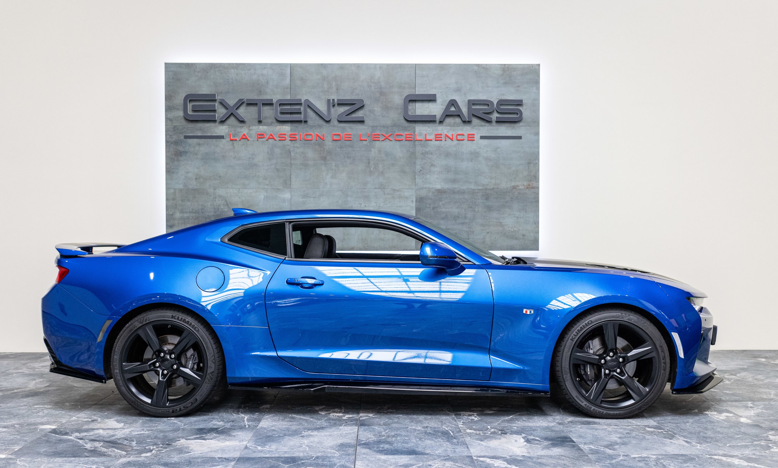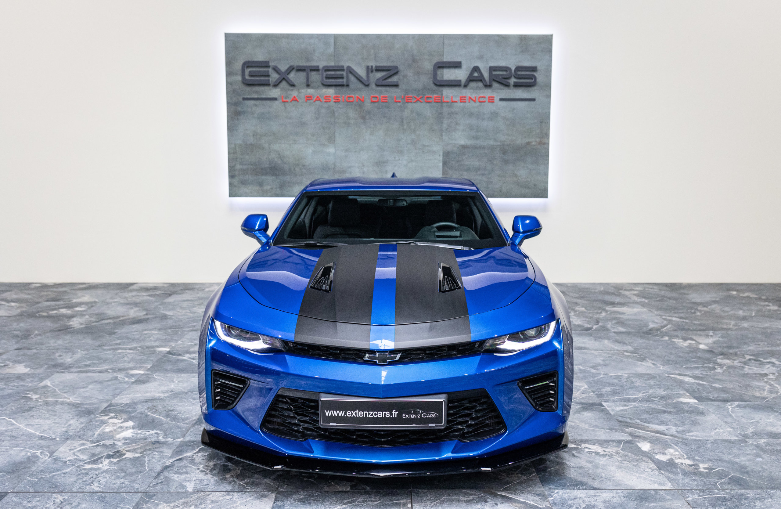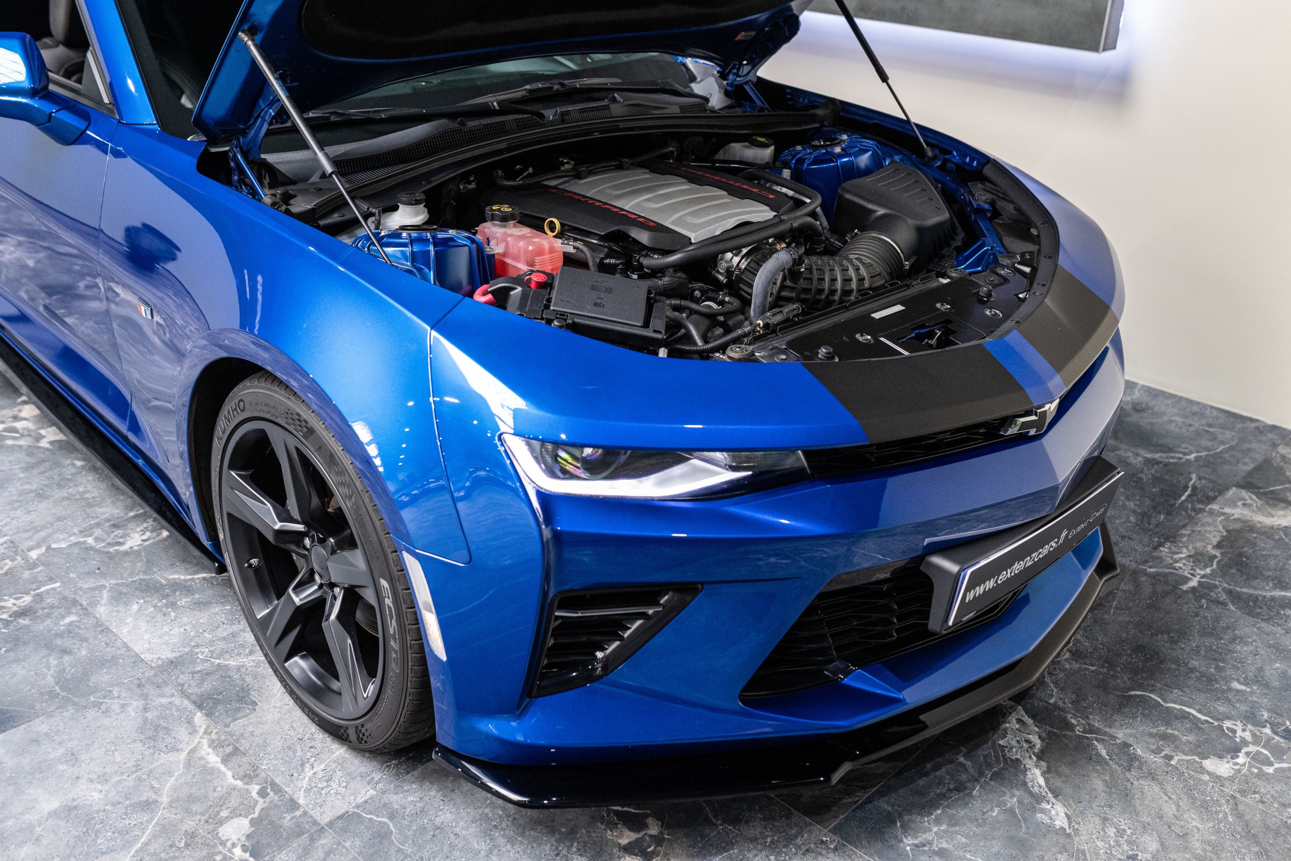 EXTEN’Z CARS vous propose cette séduisante Chevrolet Camaro VI avec son fantastique V8 6.2 Atmosphérique développant 453 CV (35cv), mise en circulation le 03/05/2017 de couleur Blue Me Away Metallic. Associée à une boite à vitesse automatique à huit rapports, si vous préférez une conduite plus sportive, il lui suffit de passer en mode manuel à l’aide des palettes de changement de vitesse au volant pour disposer alors des sept rapports fixes. Cette Camaro distille beaucoup de plaisir à ses occupants tout en offrant un rapport prix/plaisir. En particulier sa silhouette bodybuildée, la position de conduite est parfaite et on peut admirer devant soi le long capot bosselé. Prendre les commandes d’un tel engin, aussi imposant par le gabarit que par son histoire, génère des sensations extraordinaires.