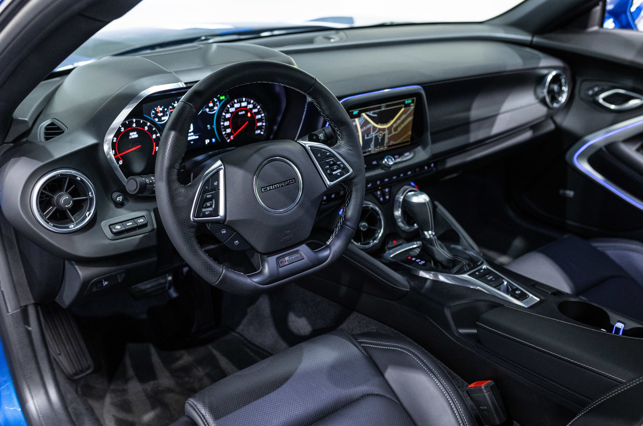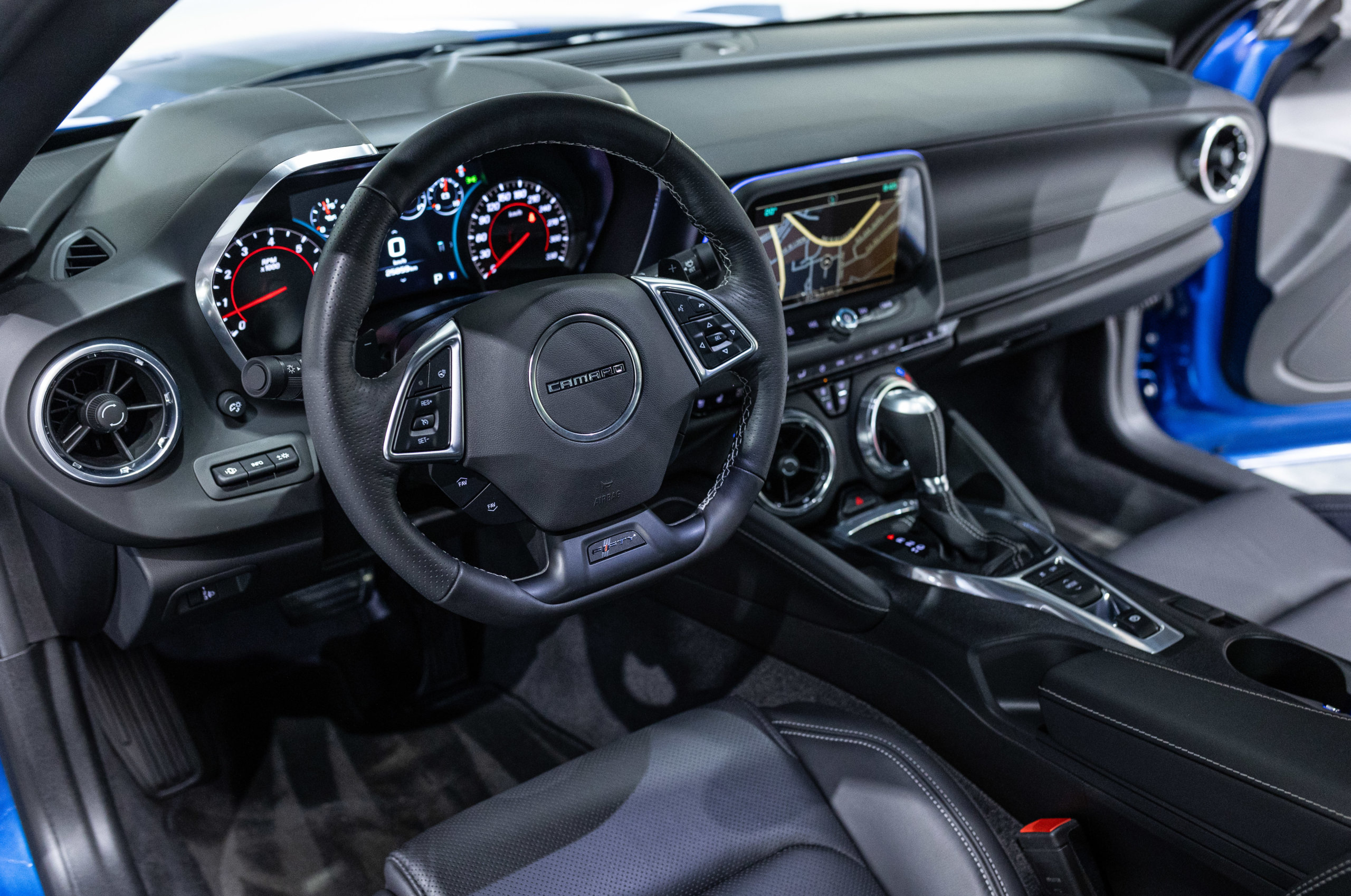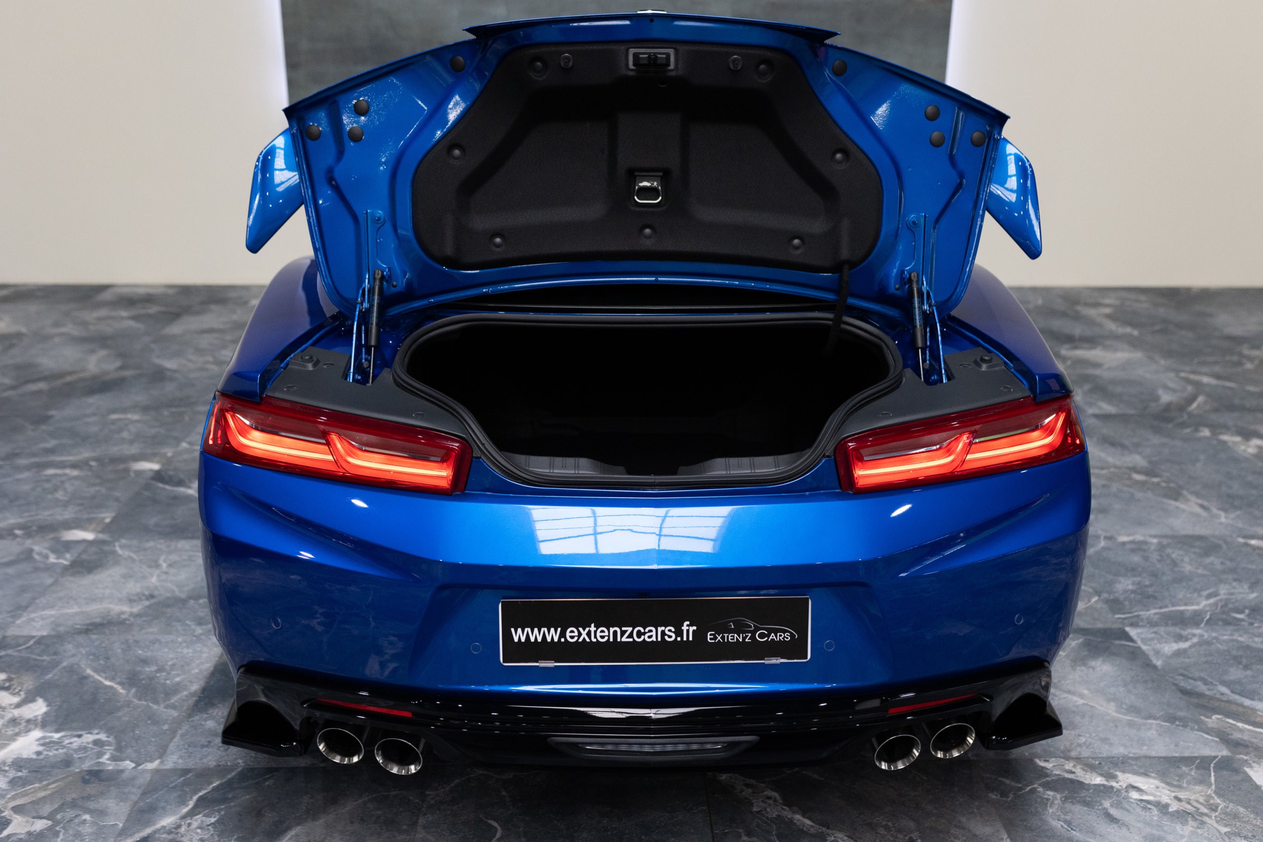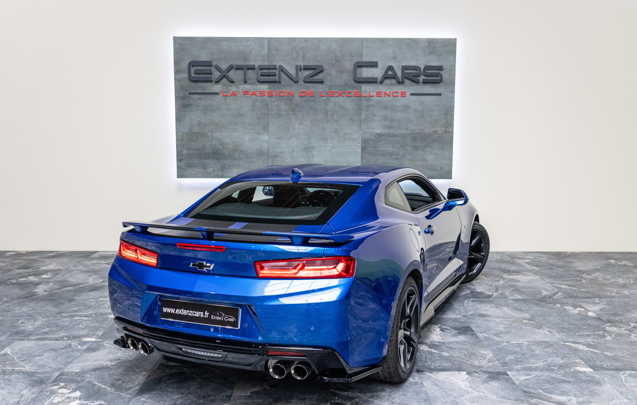 EXTEN’Z CARS vous propose cette séduisante Chevrolet Camaro VI avec son fantastique V8 6.2 Atmosphérique développant 453 CV (35cv), mise en circulation le 03/05/2017 de couleur Blue Me Away Metallic. Associée à une boite à vitesse automatique à huit rapports, si vous préférez une conduite plus sportive, il lui suffit de passer en mode manuel à l’aide des palettes de changement de vitesse au volant pour disposer alors des sept rapports fixes. Cette Camaro distille beaucoup de plaisir à ses occupants tout en offrant un rapport prix/plaisir. En particulier sa silhouette bodybuildée, la position de conduite est parfaite et on peut admirer devant soi le long capot bosselé. Prendre les commandes d’un tel engin, aussi imposant par le gabarit que par son histoire, génère des sensations extraordinaires.