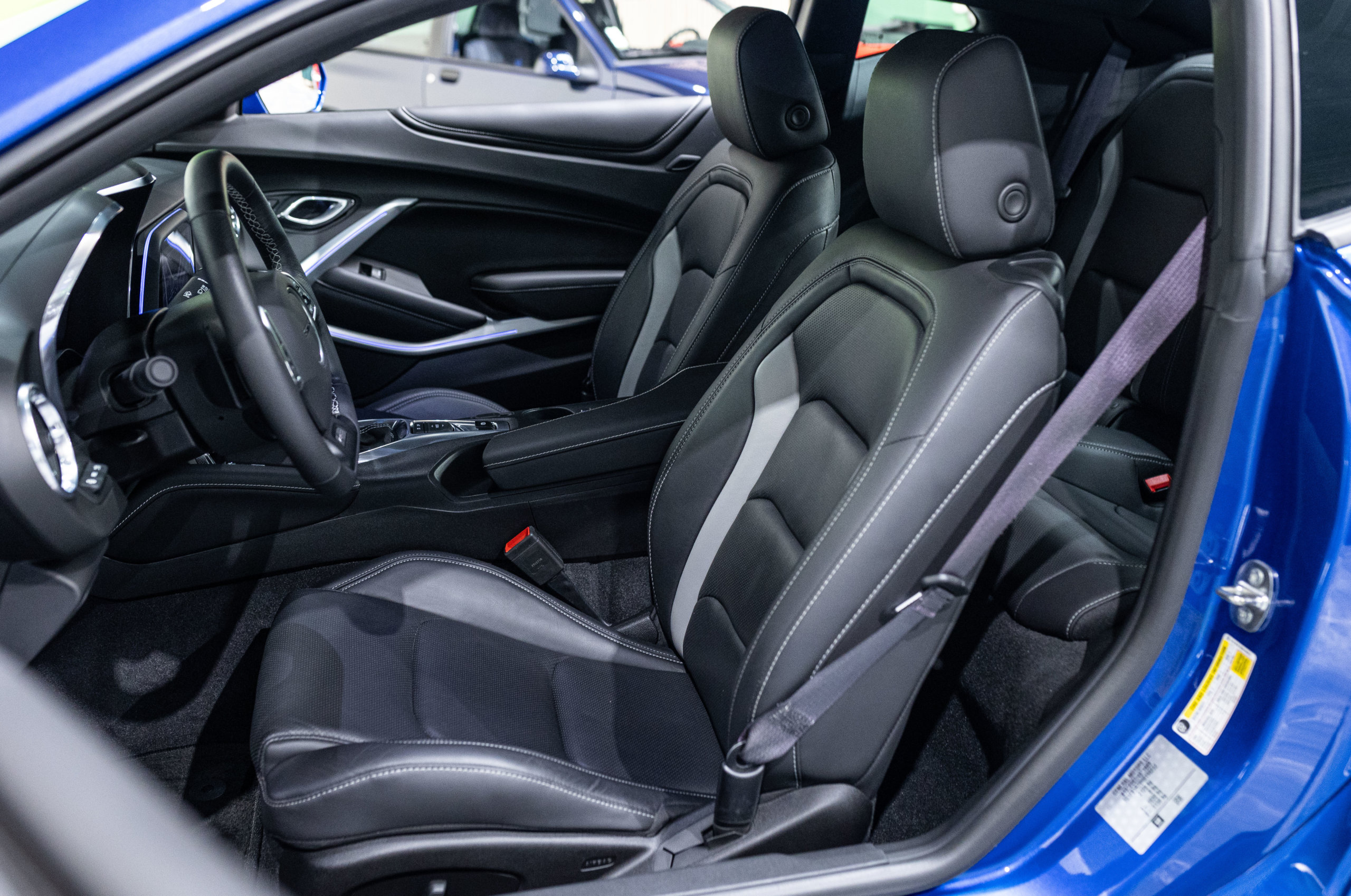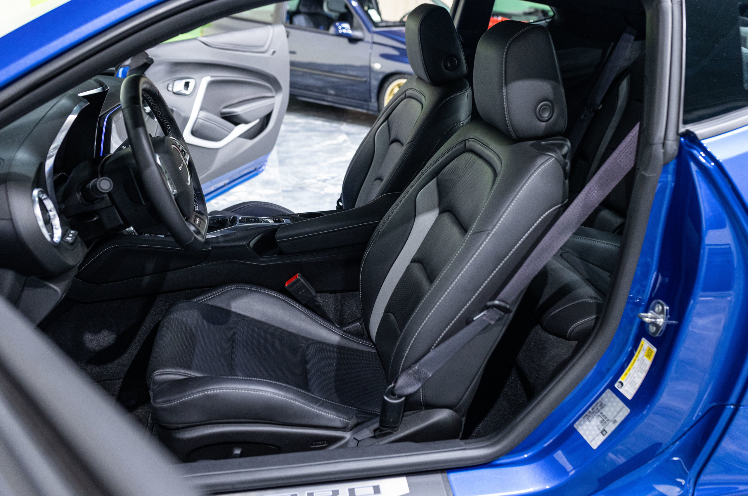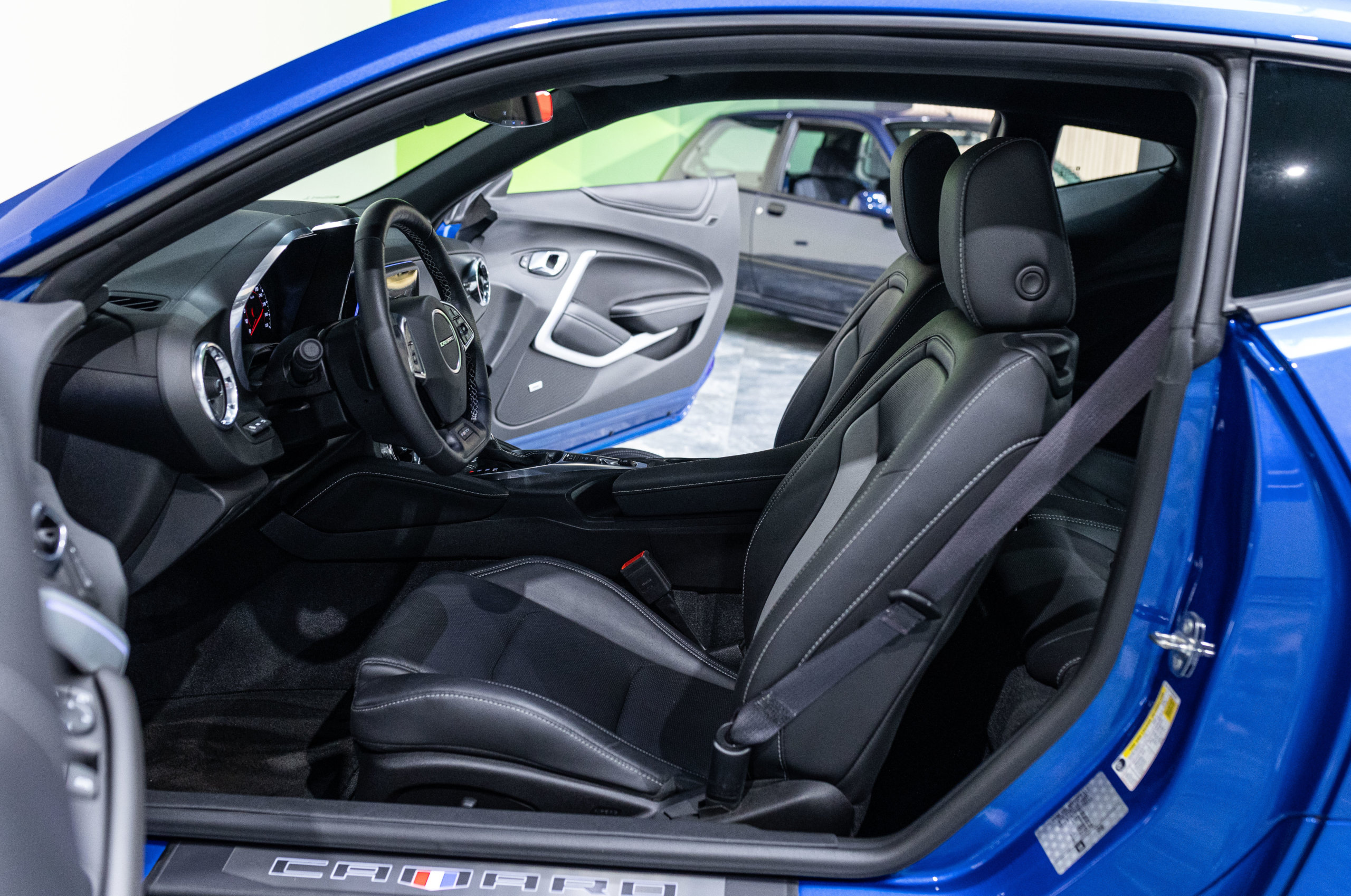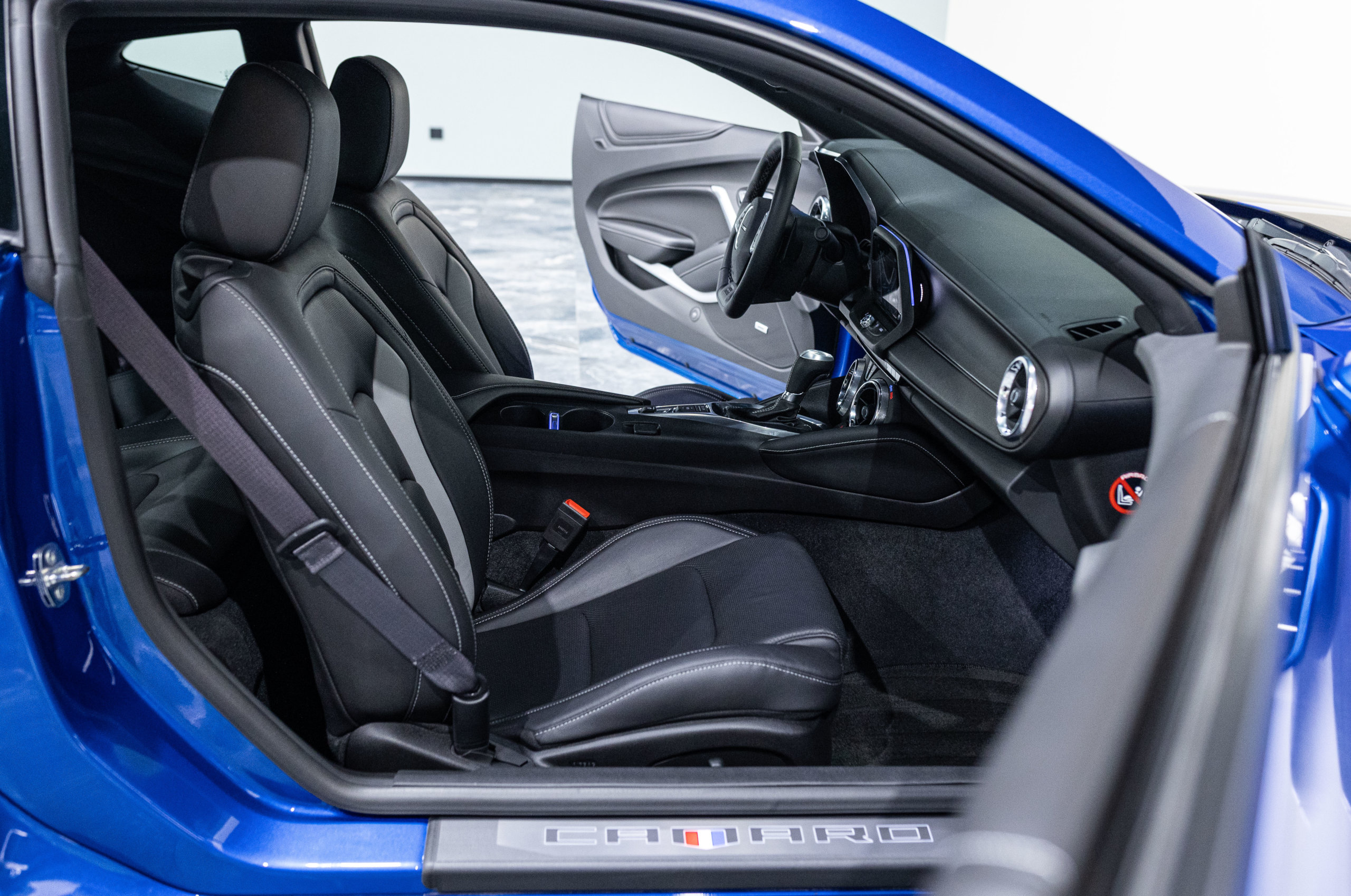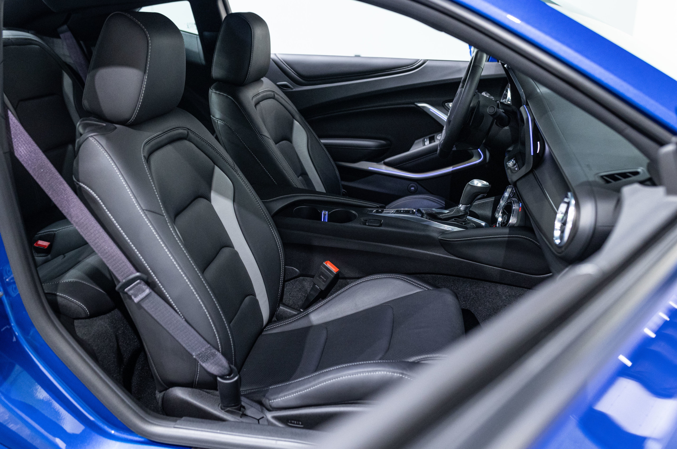 EXTEN’Z CARS vous propose cette séduisante Chevrolet Camaro VI avec son fantastique V8 6.2 Atmosphérique développant 453 CV (35cv), mise en circulation le 03/05/2017 de couleur Blue Me Away Metallic. Associée à une boite à vitesse automatique à huit rapports, si vous préférez une conduite plus sportive, il lui suffit de passer en mode manuel à l’aide des palettes de changement de vitesse au volant pour disposer alors des sept rapports fixes. Cette Camaro distille beaucoup de plaisir à ses occupants tout en offrant un rapport prix/plaisir. En particulier sa silhouette bodybuildée, la position de conduite est parfaite et on peut admirer devant soi le long capot bosselé. Prendre les commandes d’un tel engin, aussi imposant par le gabarit que par son histoire, génère des sensations extraordinaires.