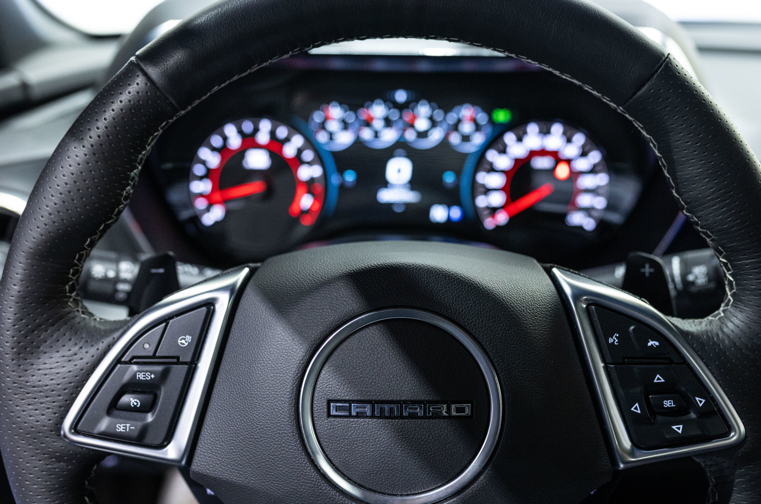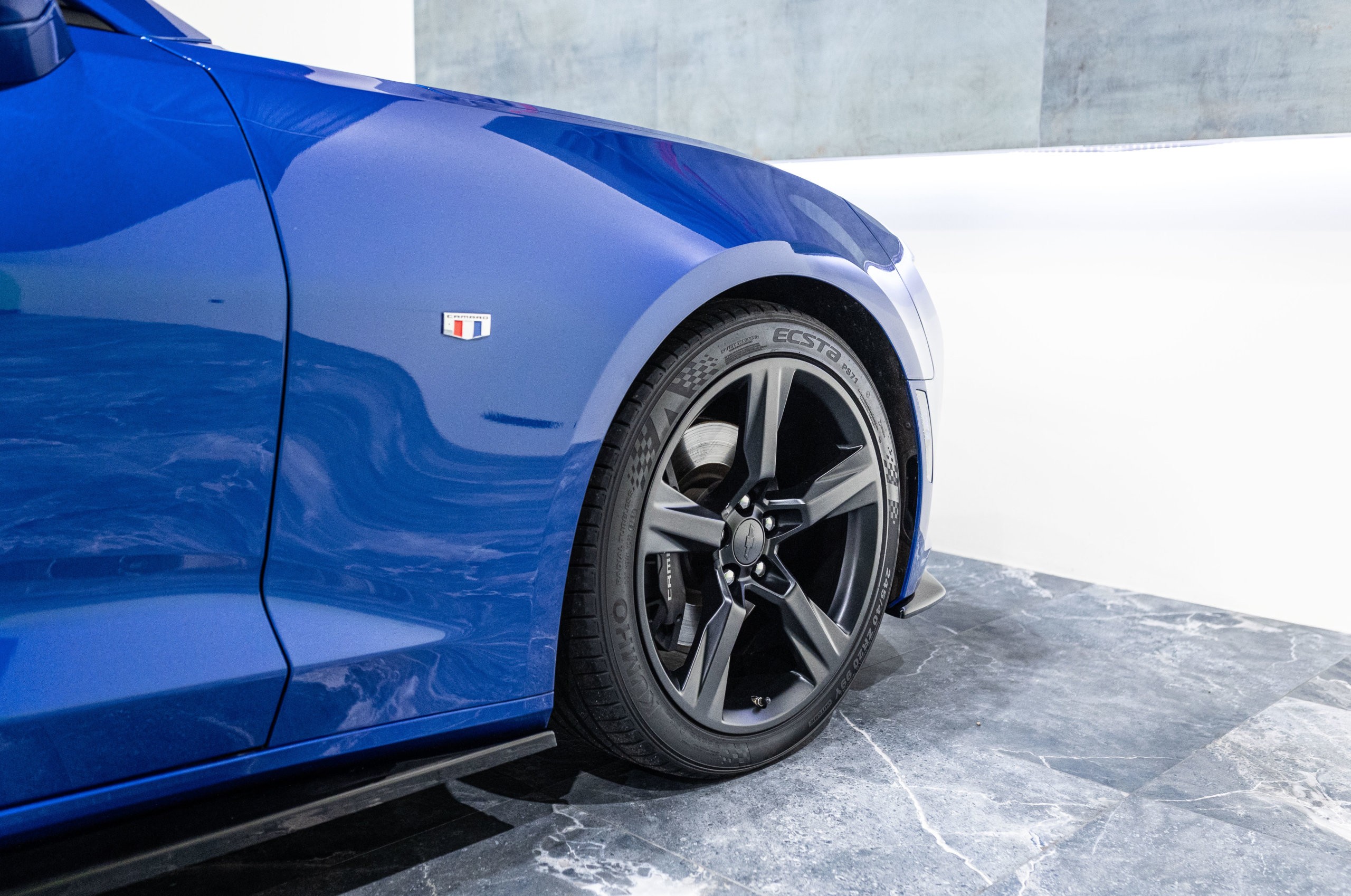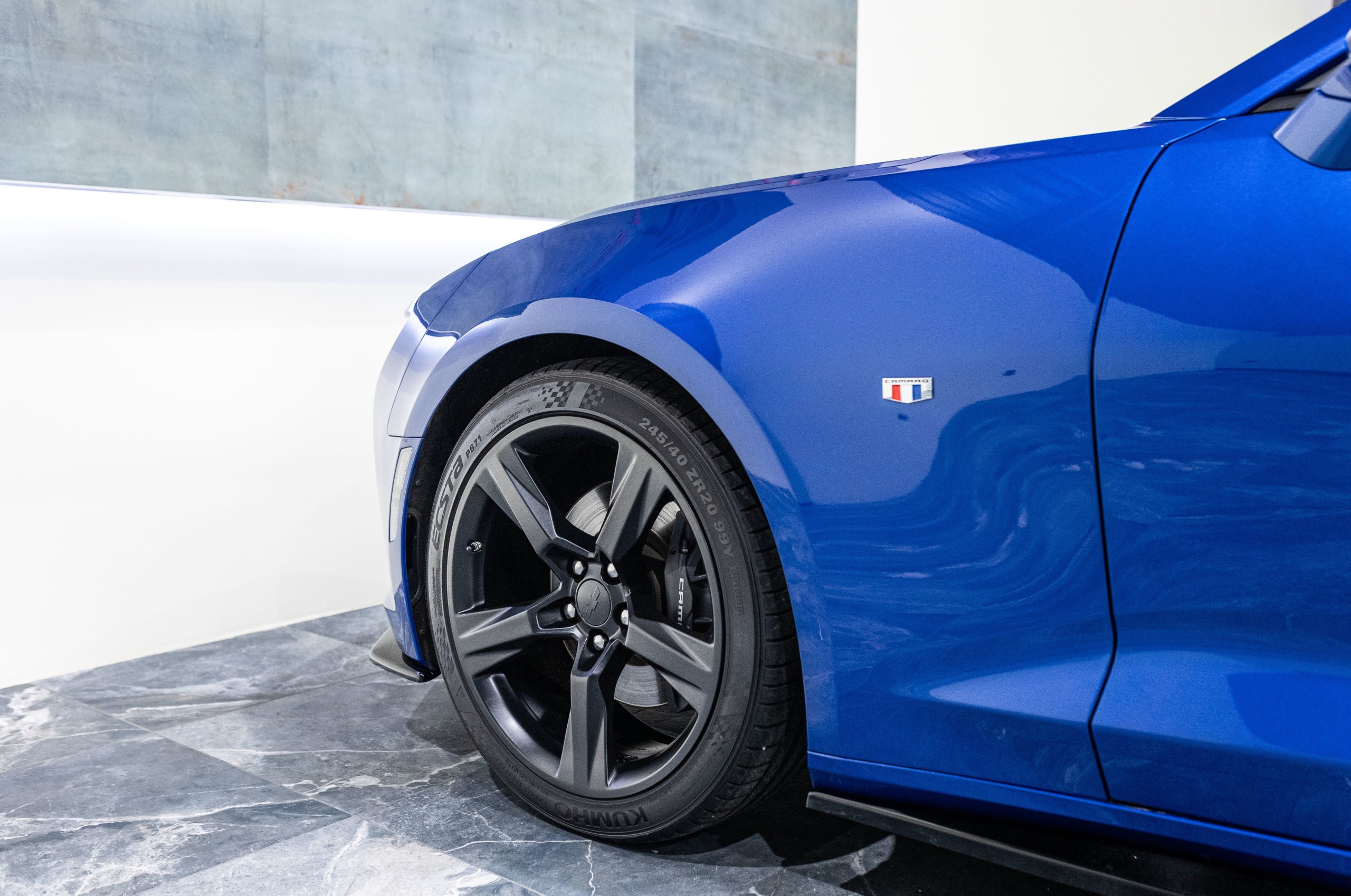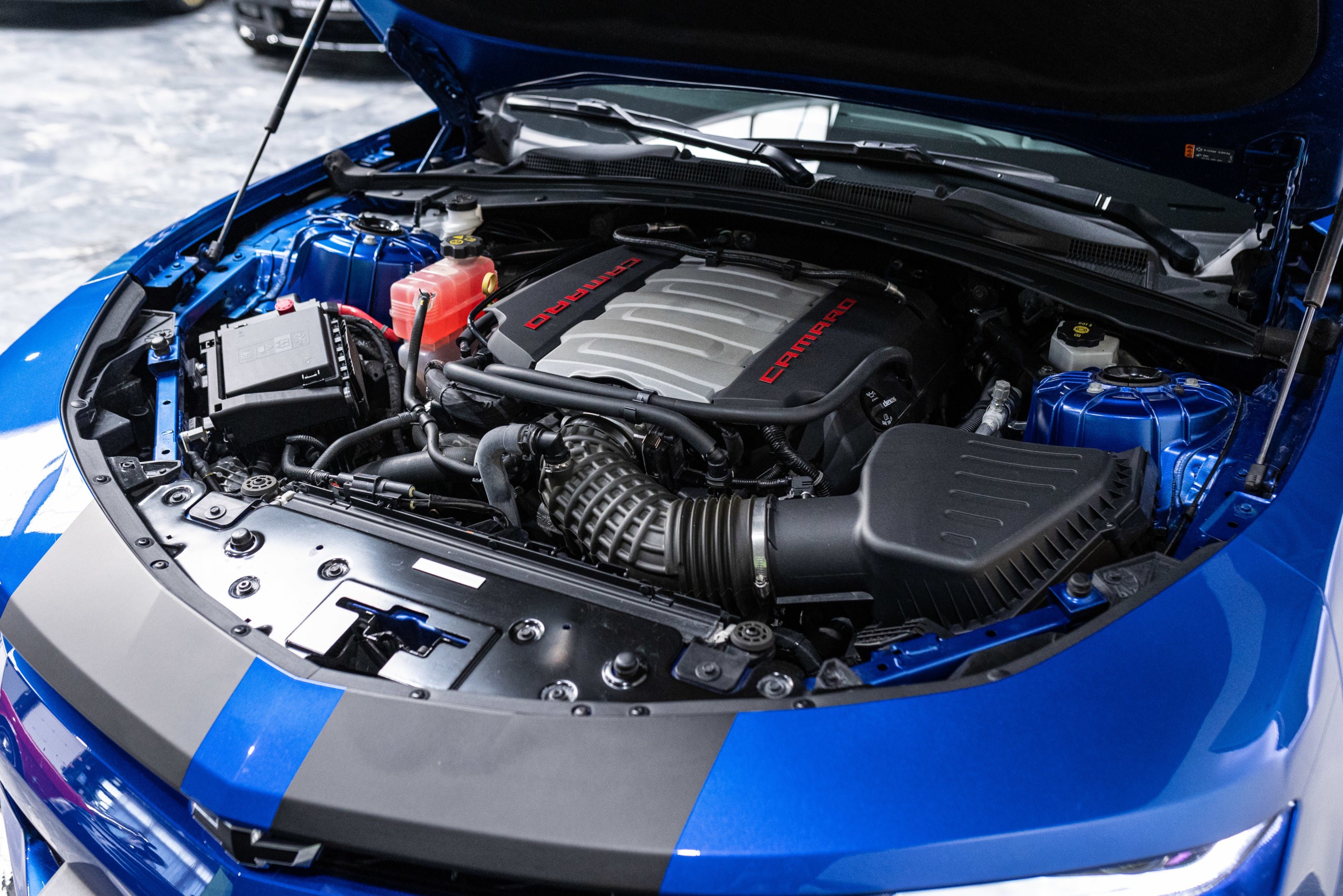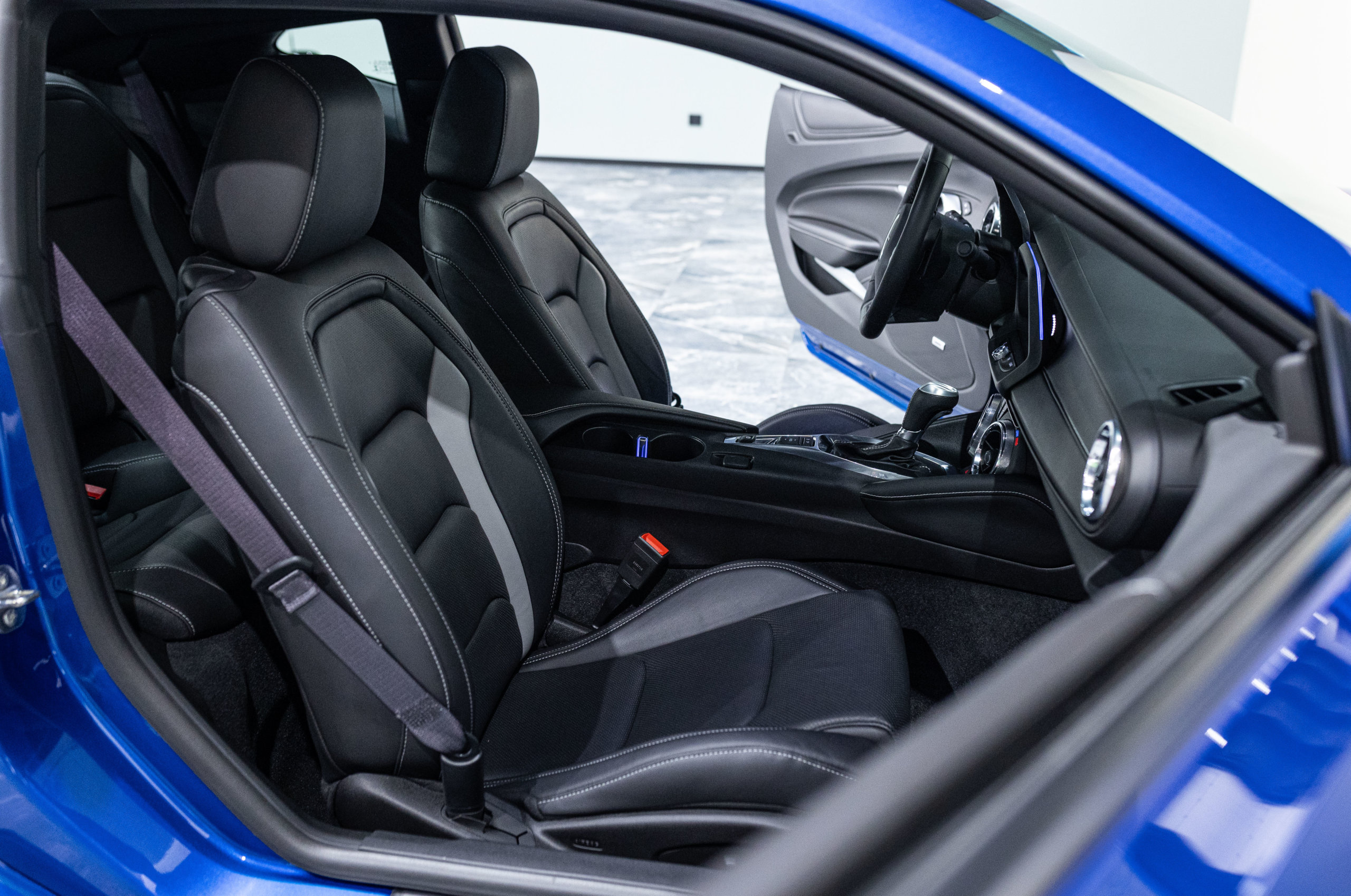 EXTEN’Z CARS vous propose cette séduisante Chevrolet Camaro VI avec son fantastique V8 6.2 Atmosphérique développant 453 CV (35cv), mise en circulation le 03/05/2017 de couleur Blue Me Away Metallic. Associée à une boite à vitesse automatique à huit rapports, si vous préférez une conduite plus sportive, il lui suffit de passer en mode manuel à l’aide des palettes de changement de vitesse au volant pour disposer alors des sept rapports fixes. Cette Camaro distille beaucoup de plaisir à ses occupants tout en offrant un rapport prix/plaisir. En particulier sa silhouette bodybuildée, la position de conduite est parfaite et on peut admirer devant soi le long capot bosselé. Prendre les commandes d’un tel engin, aussi imposant par le gabarit que par son histoire, génère des sensations extraordinaires.