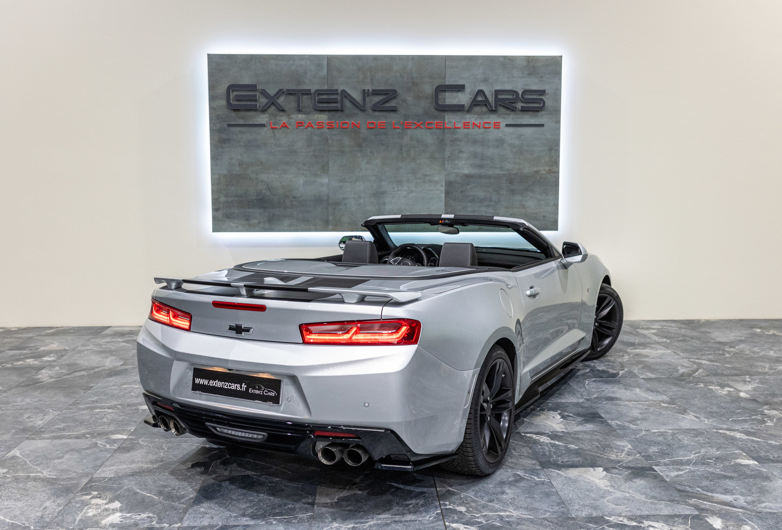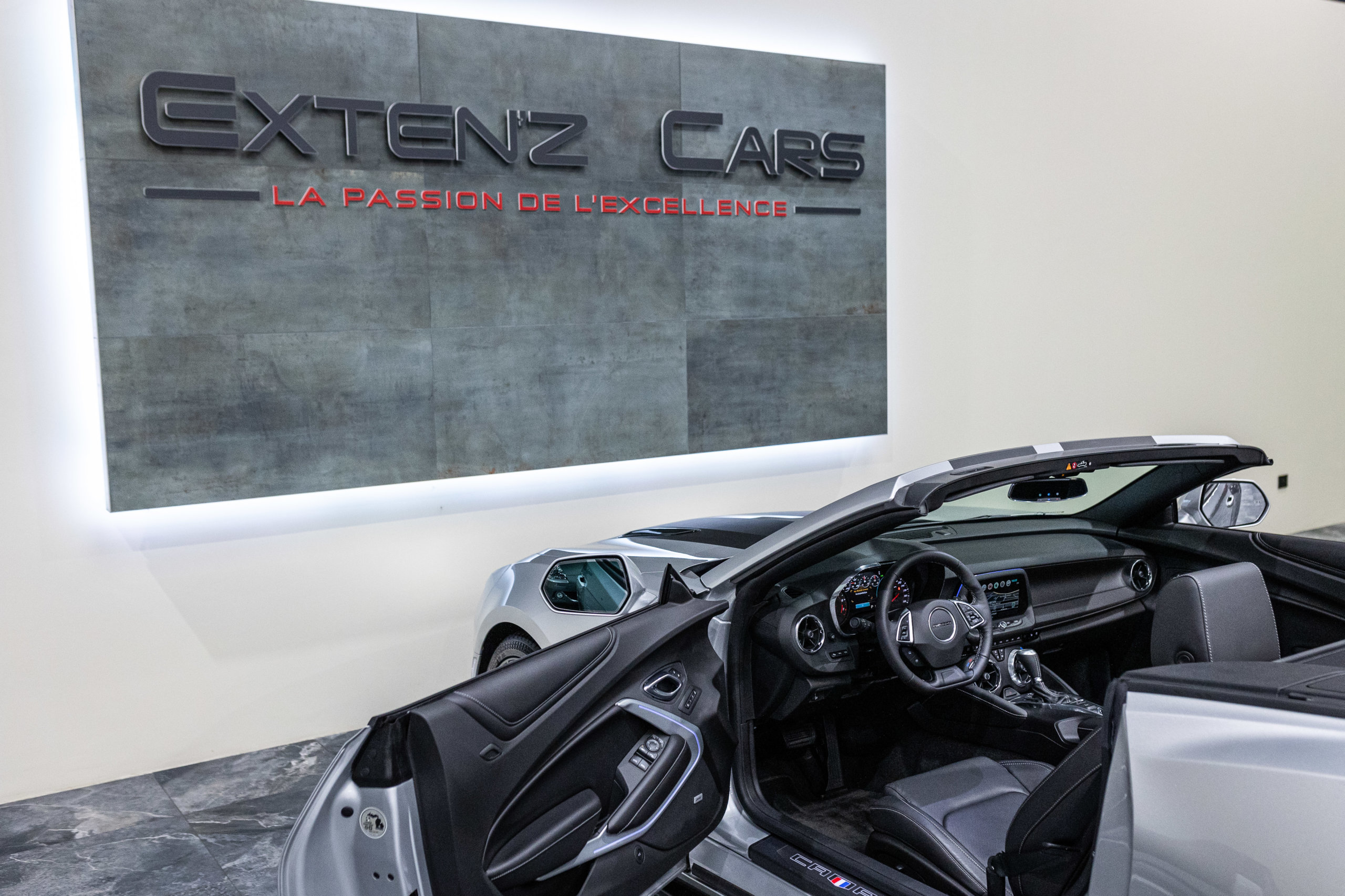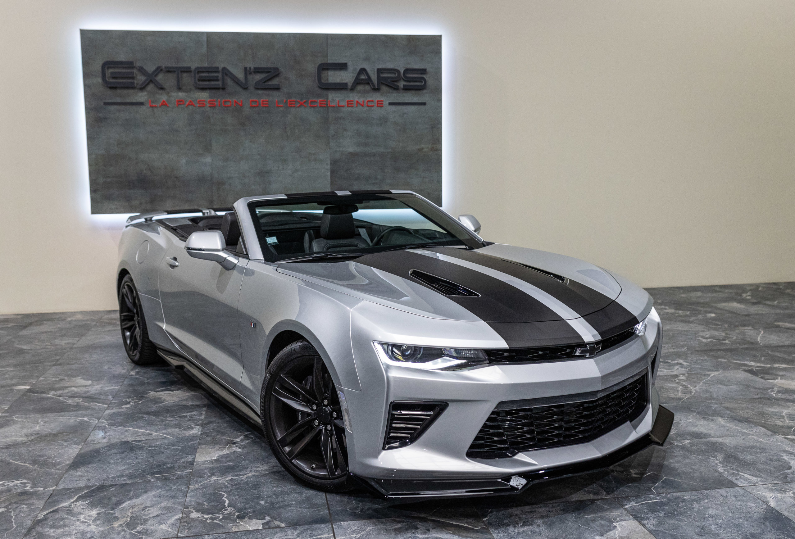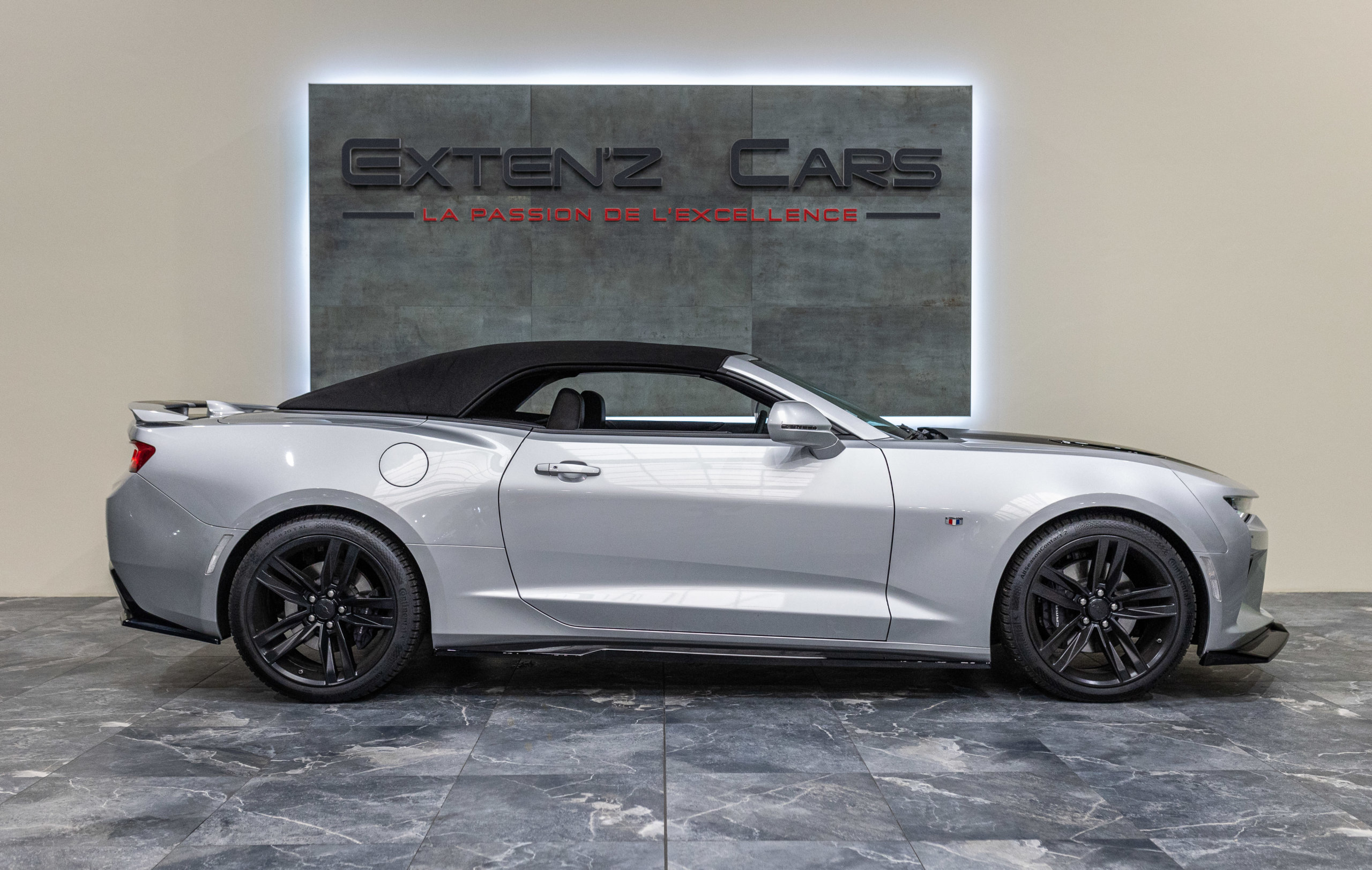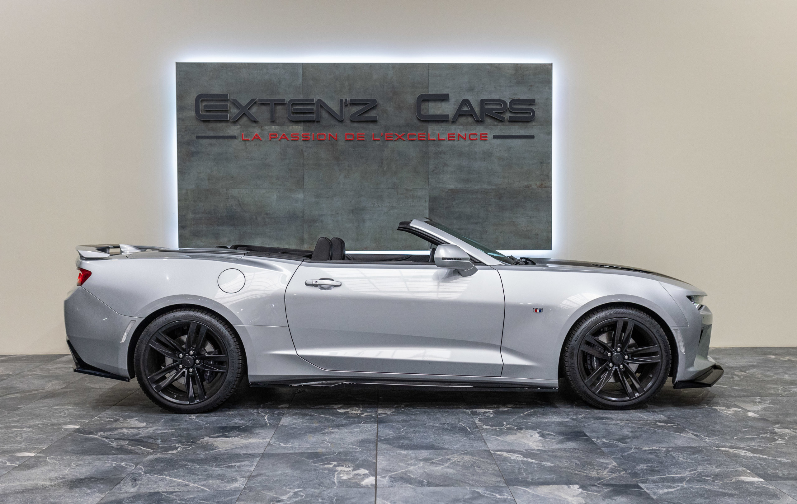 EXTEN’Z CARS vous propose cette séduisante Chevrolet Camaro VI Convertible avec son fantastique V8 6.2 Atmosphérique développant 453 CV (35cv), mise en circulation le 28/02/2018. Associée à une boite à vitesse automatique à huit rapports, si vous préférez une conduite plus sportive, il lui suffit de passer en mode manuel à l’aide des palettes de changement de vitesse au volant pour disposer alors des sept rapports fixes. Cette Camaro distille beaucoup de plaisir à ses occupants tout en offrant un rapport prix/plaisir. En particulier sa silhouette bodybuildée, la position de conduite est parfaite et on peut admirer devant soi le long capot bosselé. Prendre les commandes d’un tel engin, aussi imposant par le gabarit que par son histoire, génère des sensations extraordinaires.