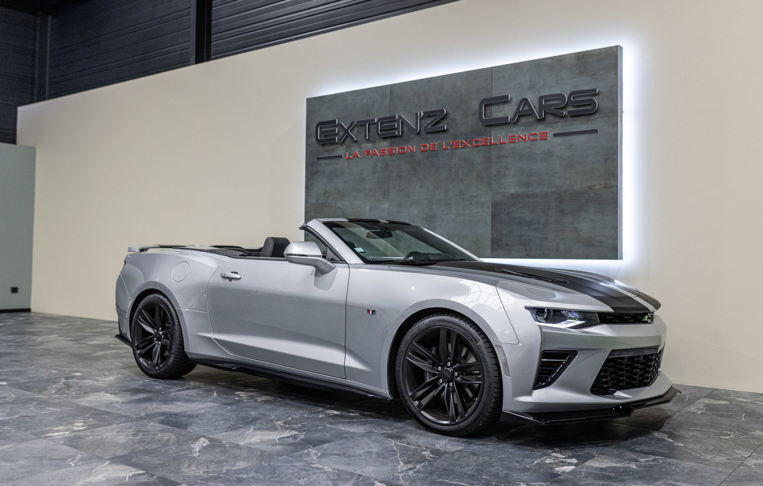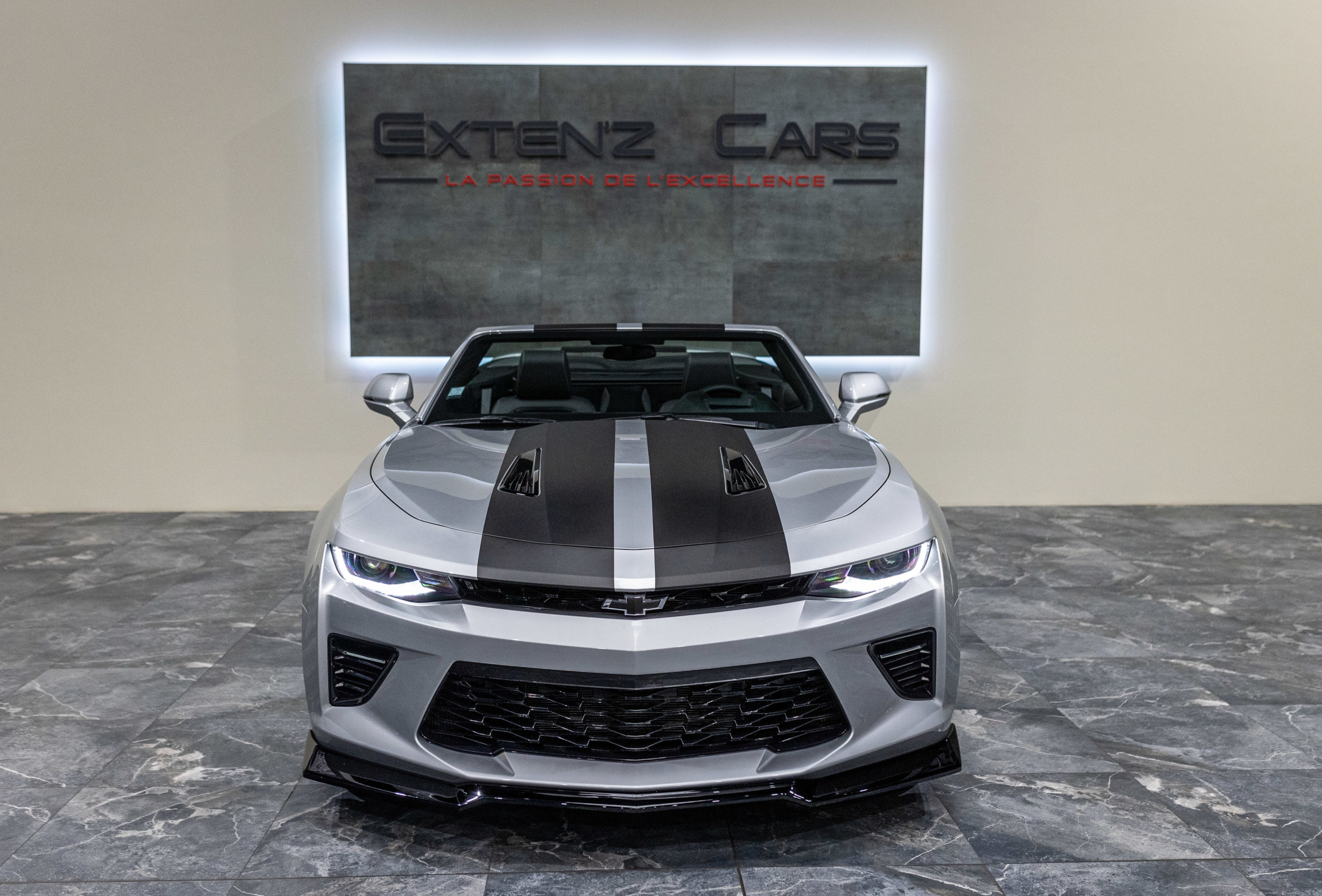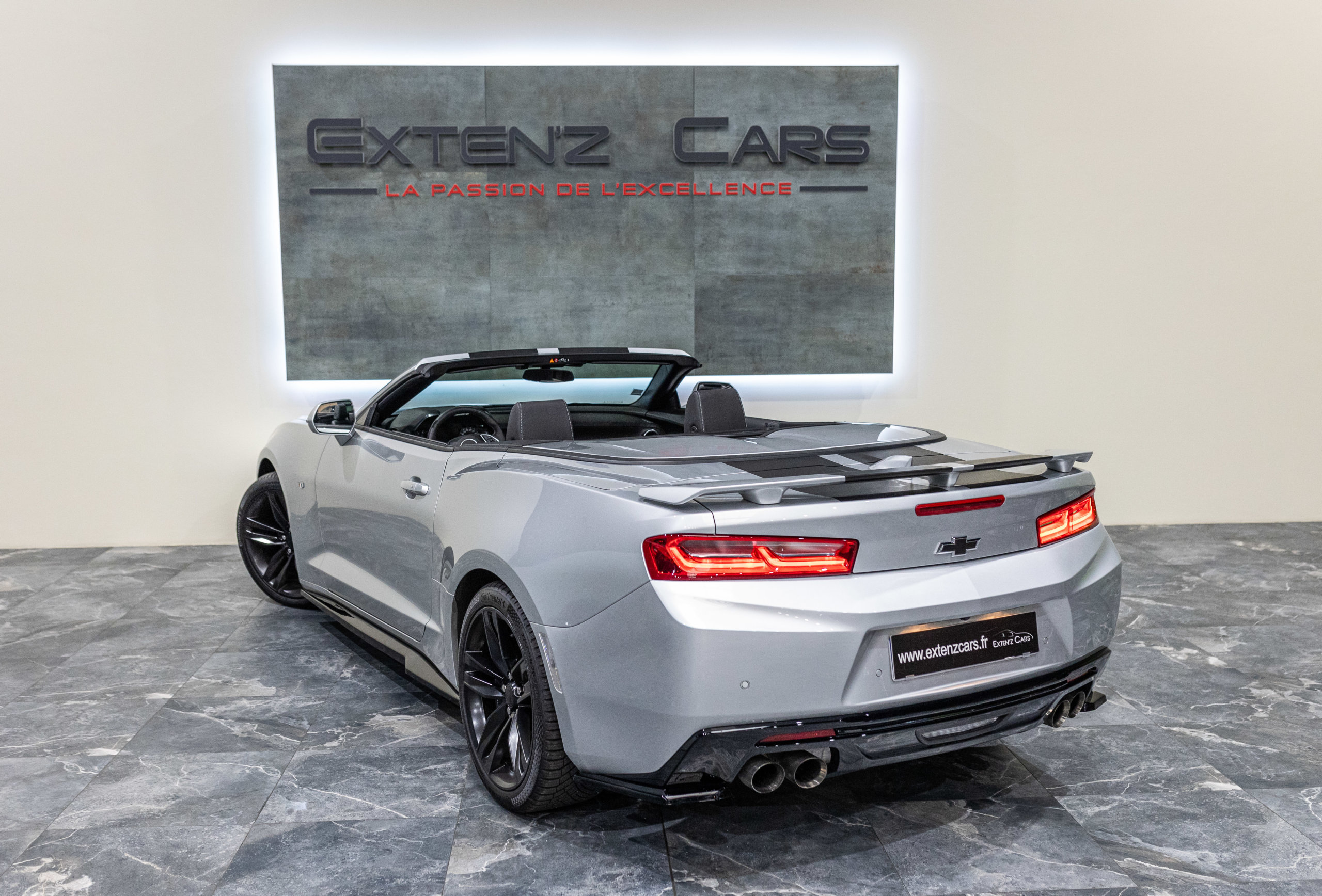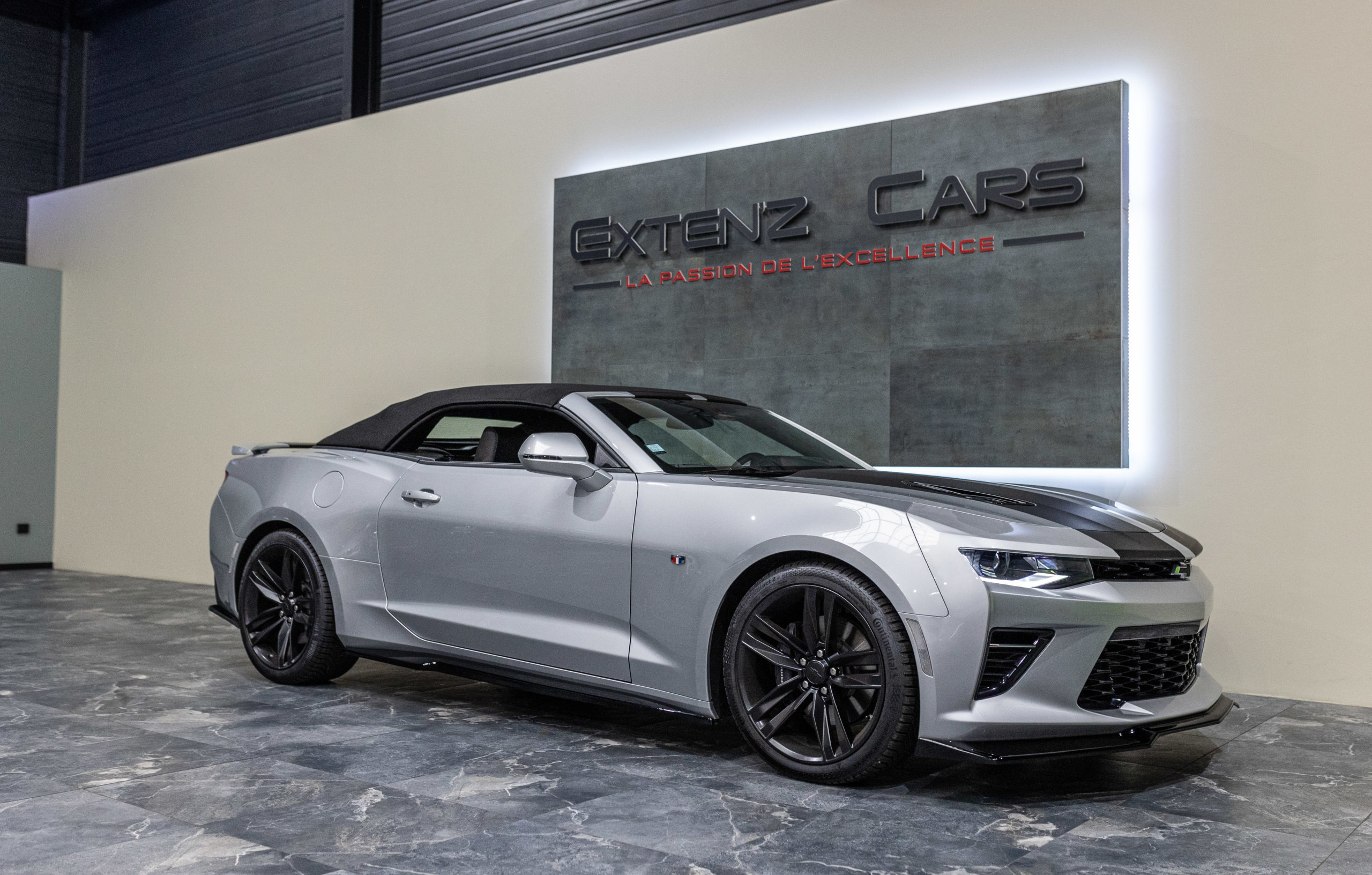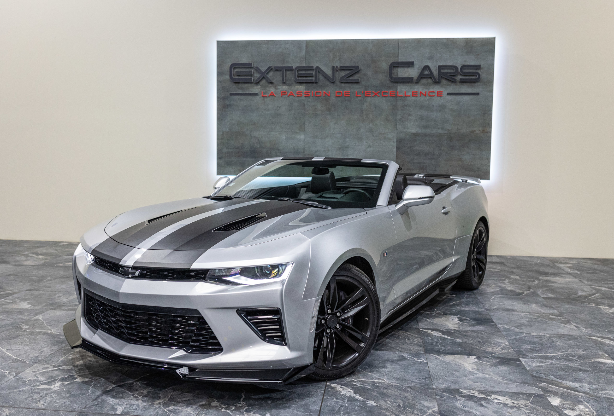 EXTEN’Z CARS vous propose cette séduisante Chevrolet Camaro VI Convertible avec son fantastique V8 6.2 Atmosphérique développant 453 CV (35cv), mise en circulation le 28/02/2018. Associée à une boite à vitesse automatique à huit rapports, si vous préférez une conduite plus sportive, il lui suffit de passer en mode manuel à l’aide des palettes de changement de vitesse au volant pour disposer alors des sept rapports fixes. Cette Camaro distille beaucoup de plaisir à ses occupants tout en offrant un rapport prix/plaisir. En particulier sa silhouette bodybuildée, la position de conduite est parfaite et on peut admirer devant soi le long capot bosselé. Prendre les commandes d’un tel engin, aussi imposant par le gabarit que par son histoire, génère des sensations extraordinaires.