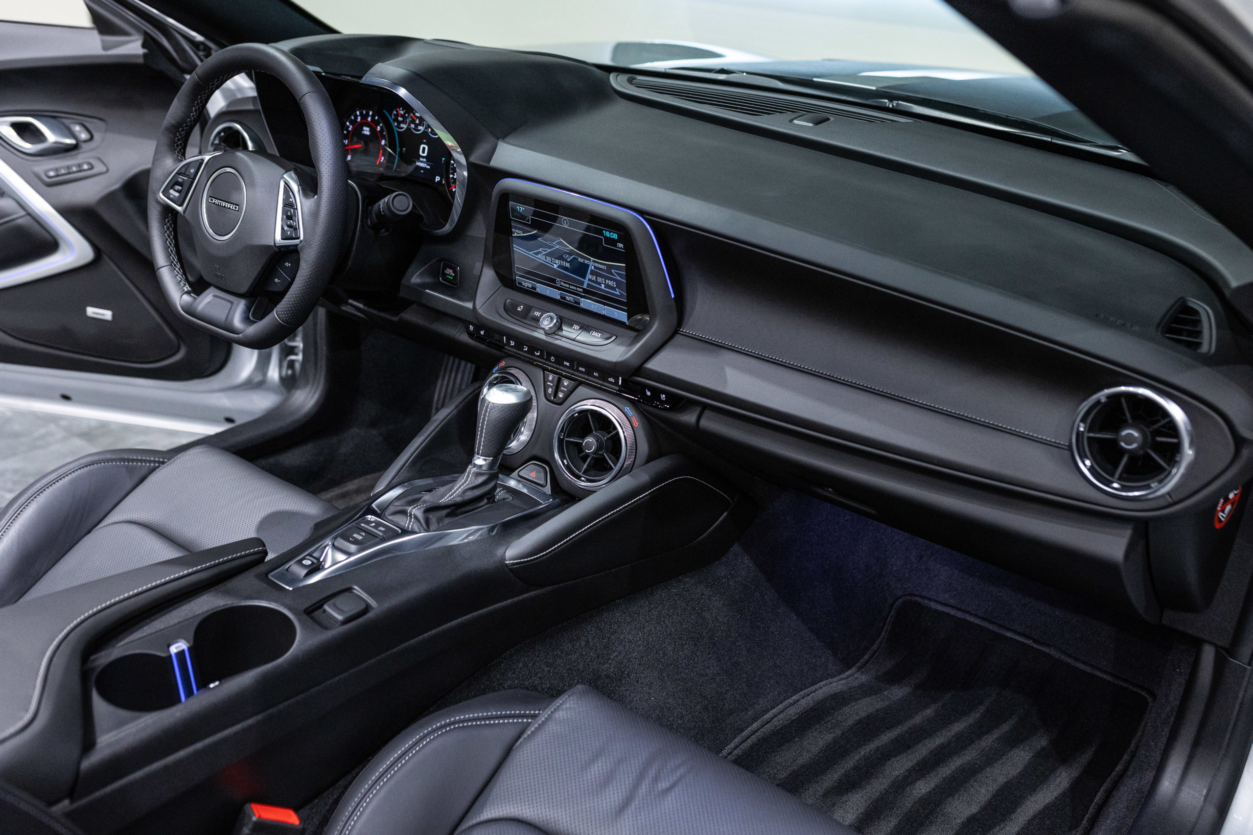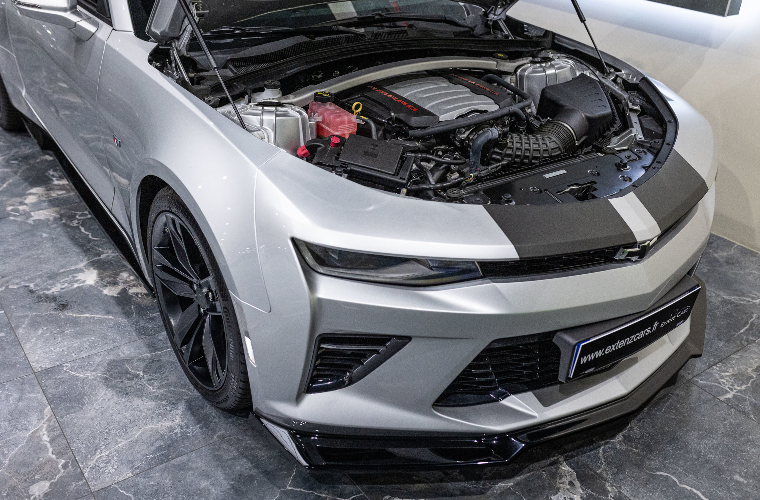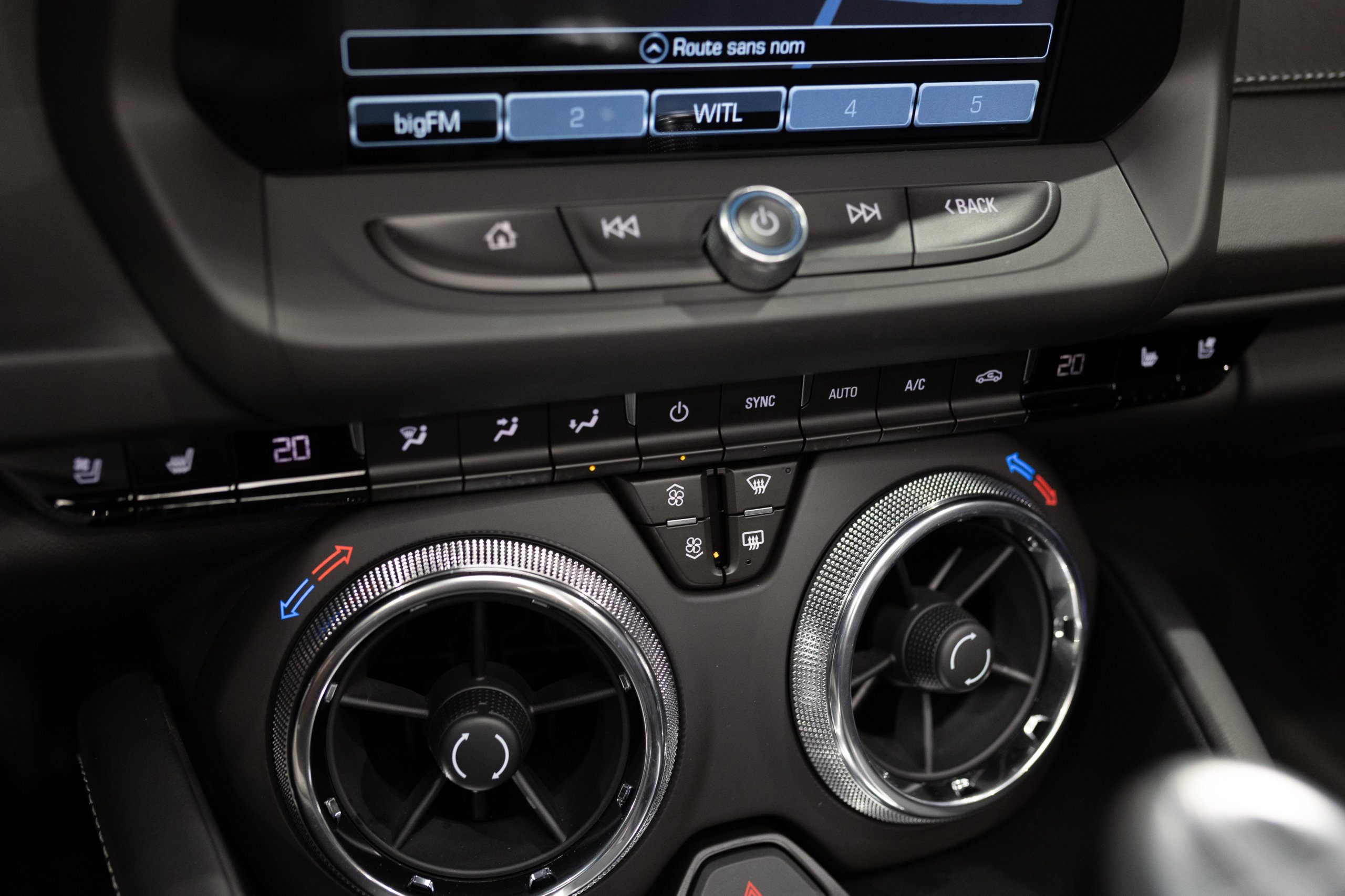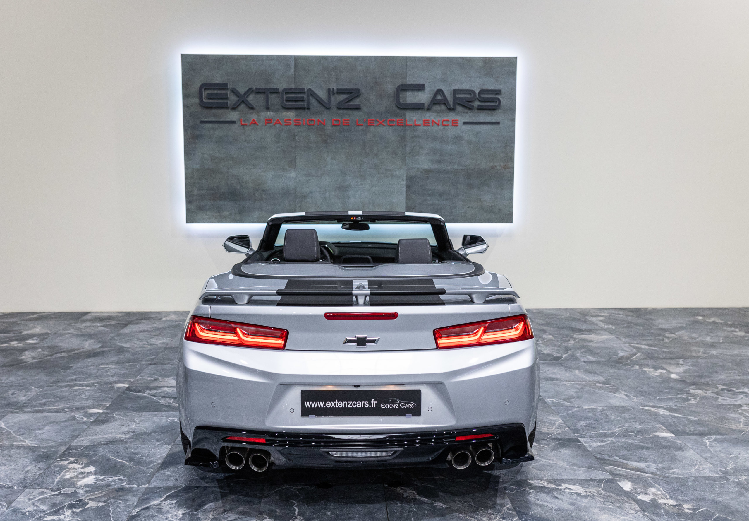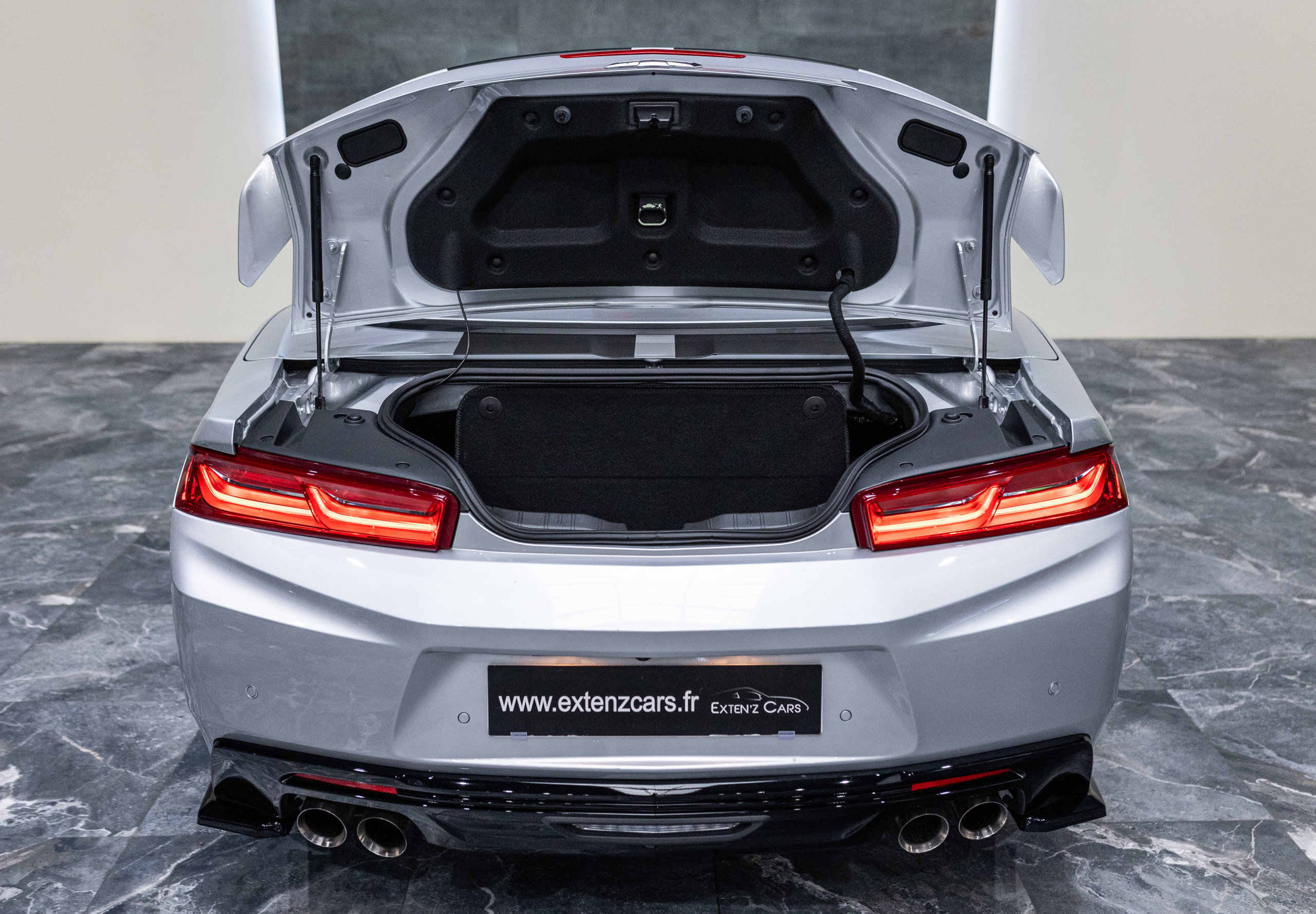 EXTEN’Z CARS vous propose cette séduisante Chevrolet Camaro VI Convertible avec son fantastique V8 6.2 Atmosphérique développant 453 CV (35cv), mise en circulation le 28/02/2018. Associée à une boite à vitesse automatique à huit rapports, si vous préférez une conduite plus sportive, il lui suffit de passer en mode manuel à l’aide des palettes de changement de vitesse au volant pour disposer alors des sept rapports fixes. Cette Camaro distille beaucoup de plaisir à ses occupants tout en offrant un rapport prix/plaisir. En particulier sa silhouette bodybuildée, la position de conduite est parfaite et on peut admirer devant soi le long capot bosselé. Prendre les commandes d’un tel engin, aussi imposant par le gabarit que par son histoire, génère des sensations extraordinaires.