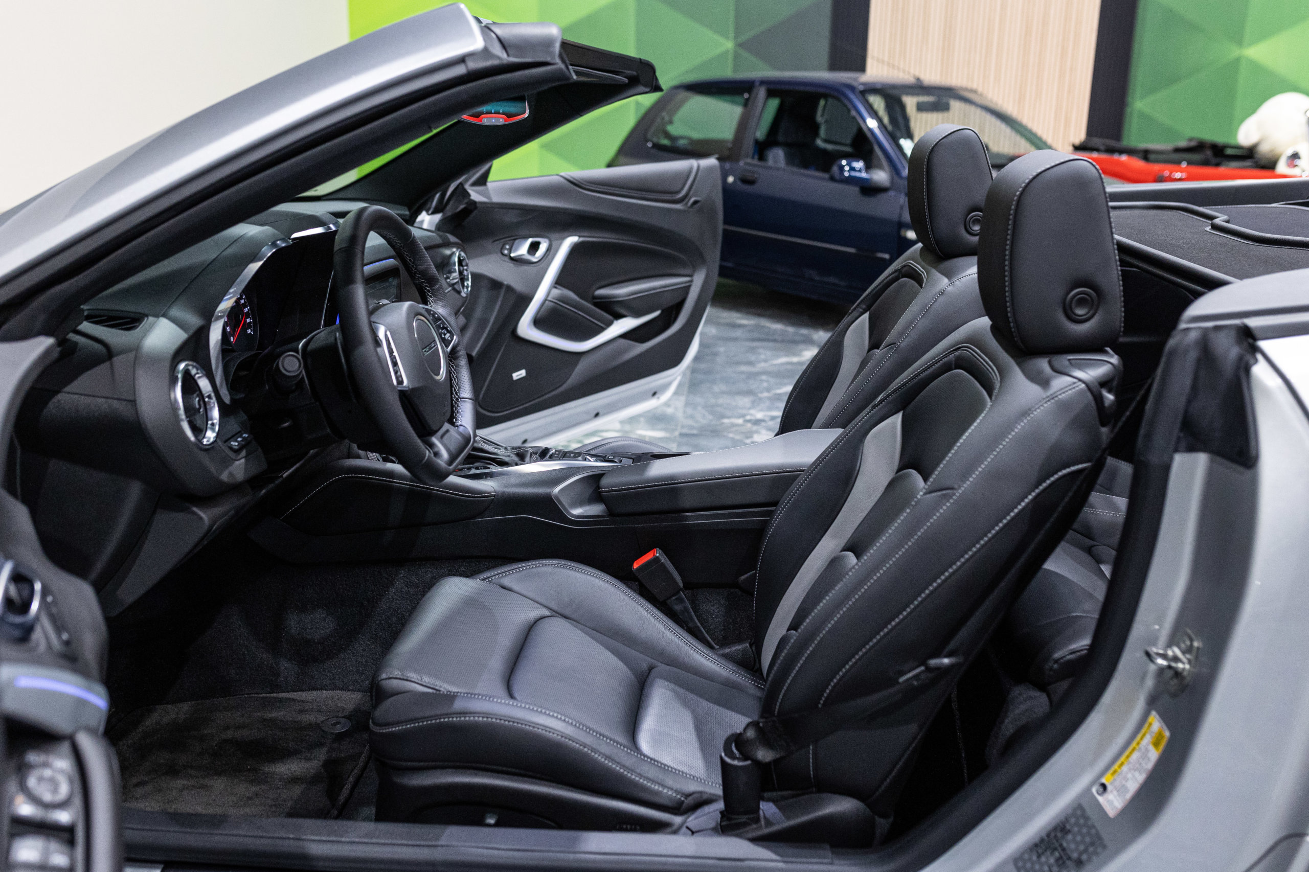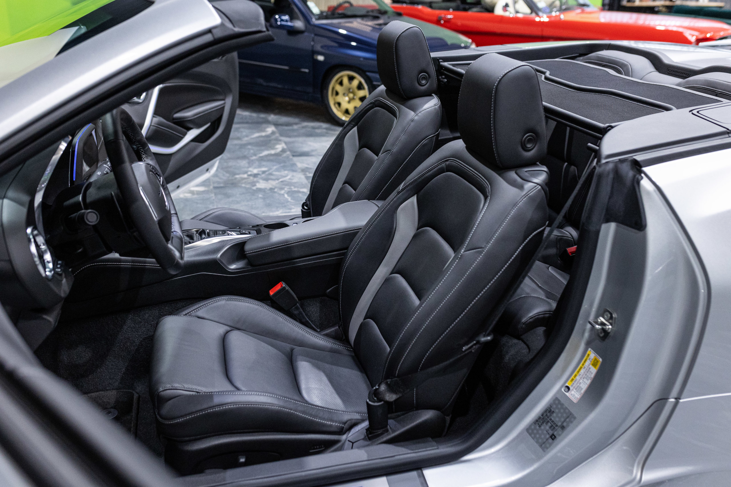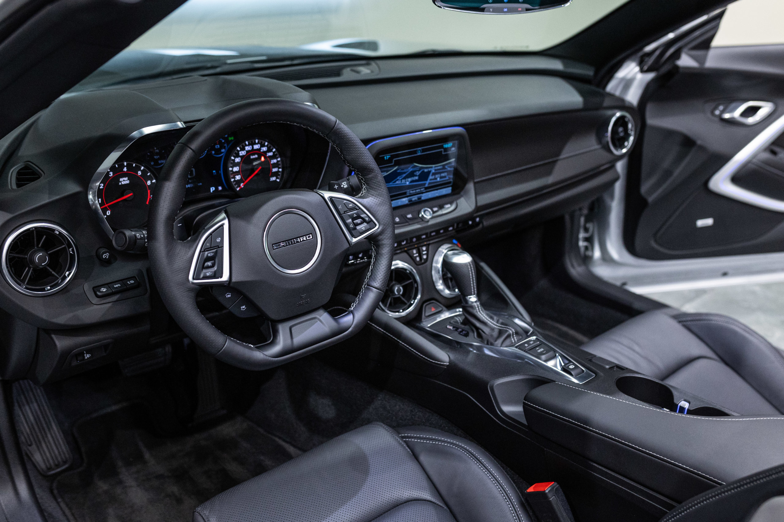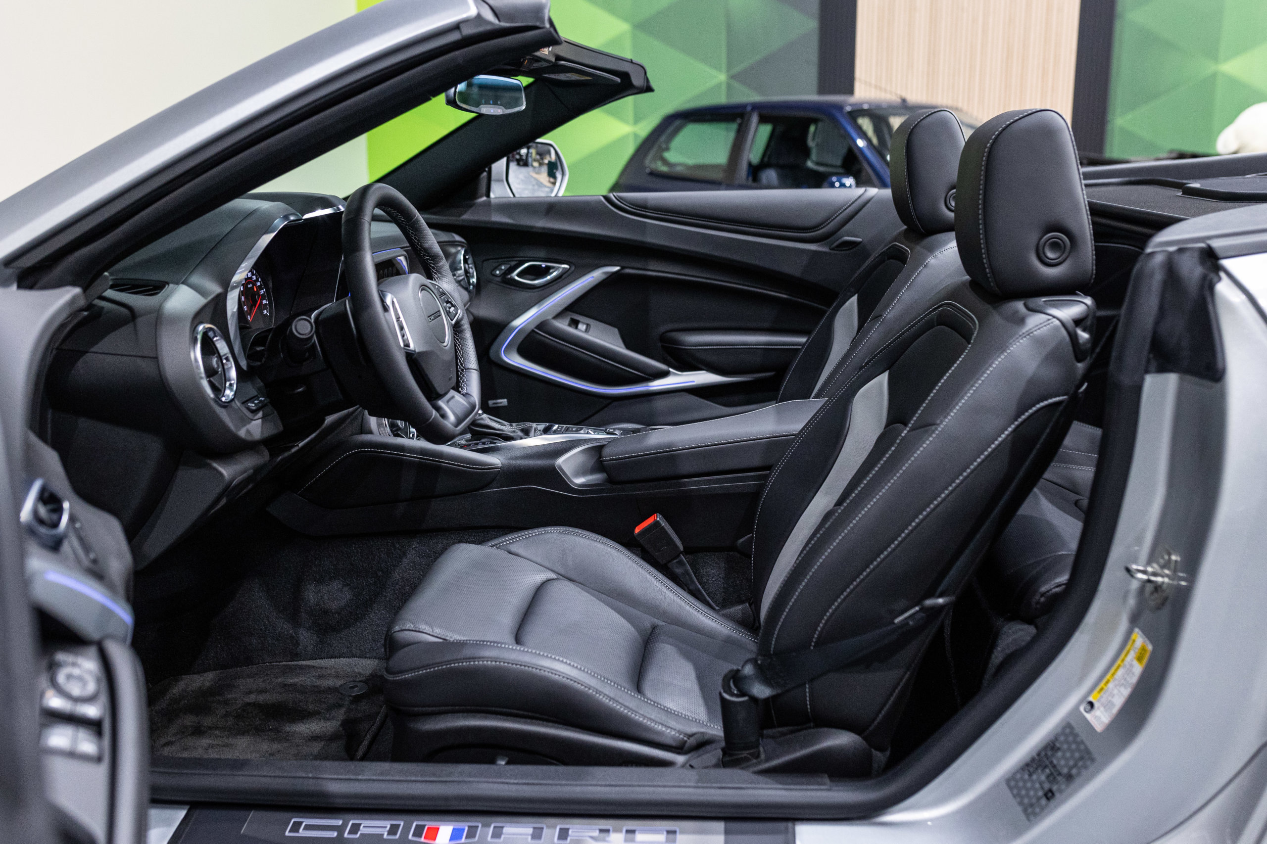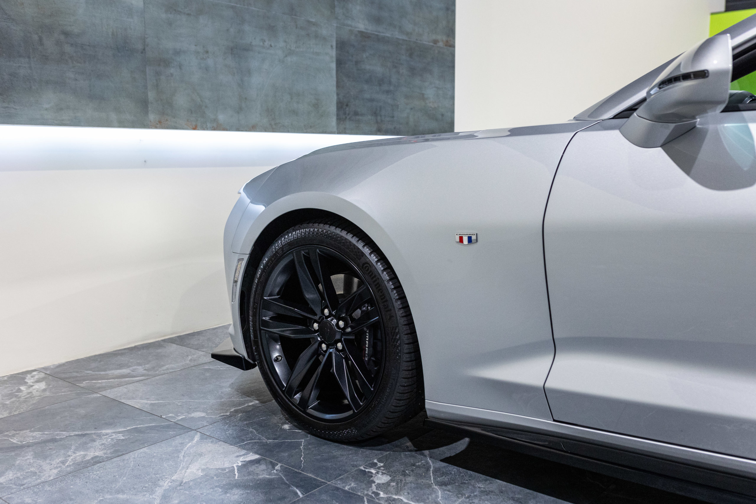 EXTEN’Z CARS vous propose cette séduisante Chevrolet Camaro VI Convertible avec son fantastique V8 6.2 Atmosphérique développant 453 CV (35cv), mise en circulation le 28/02/2018. Associée à une boite à vitesse automatique à huit rapports, si vous préférez une conduite plus sportive, il lui suffit de passer en mode manuel à l’aide des palettes de changement de vitesse au volant pour disposer alors des sept rapports fixes. Cette Camaro distille beaucoup de plaisir à ses occupants tout en offrant un rapport prix/plaisir. En particulier sa silhouette bodybuildée, la position de conduite est parfaite et on peut admirer devant soi le long capot bosselé. Prendre les commandes d’un tel engin, aussi imposant par le gabarit que par son histoire, génère des sensations extraordinaires.