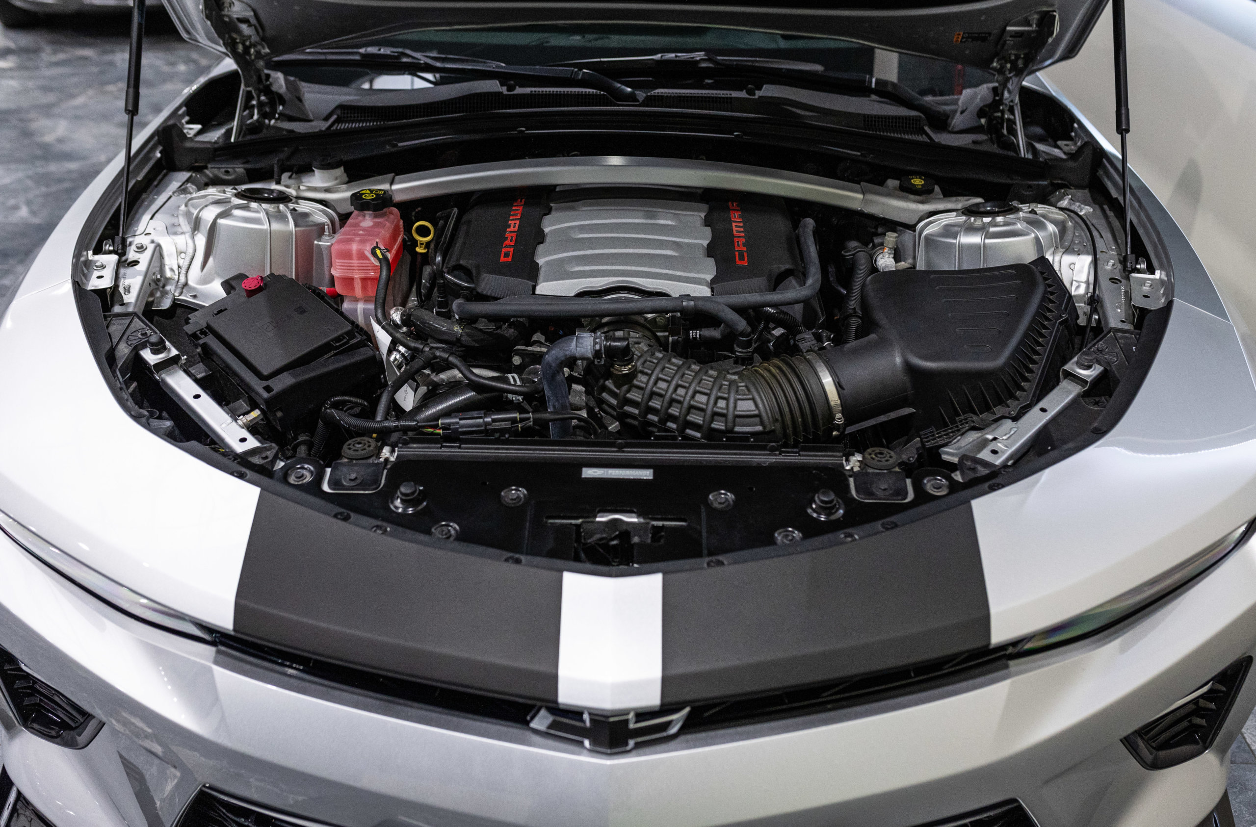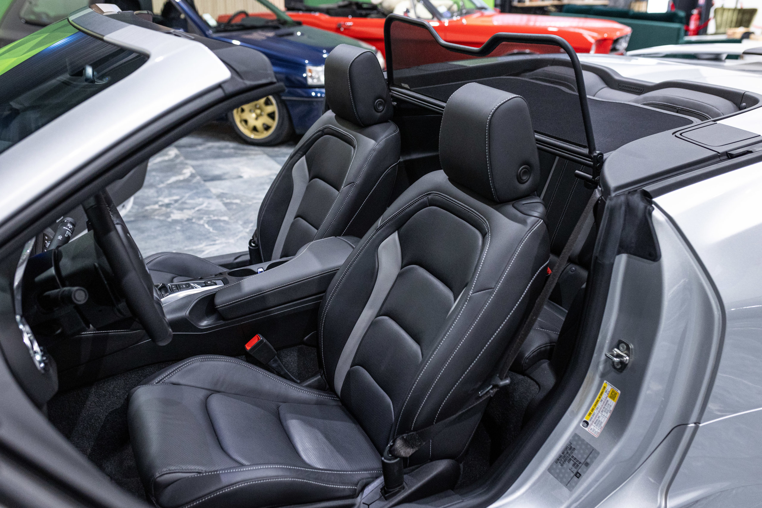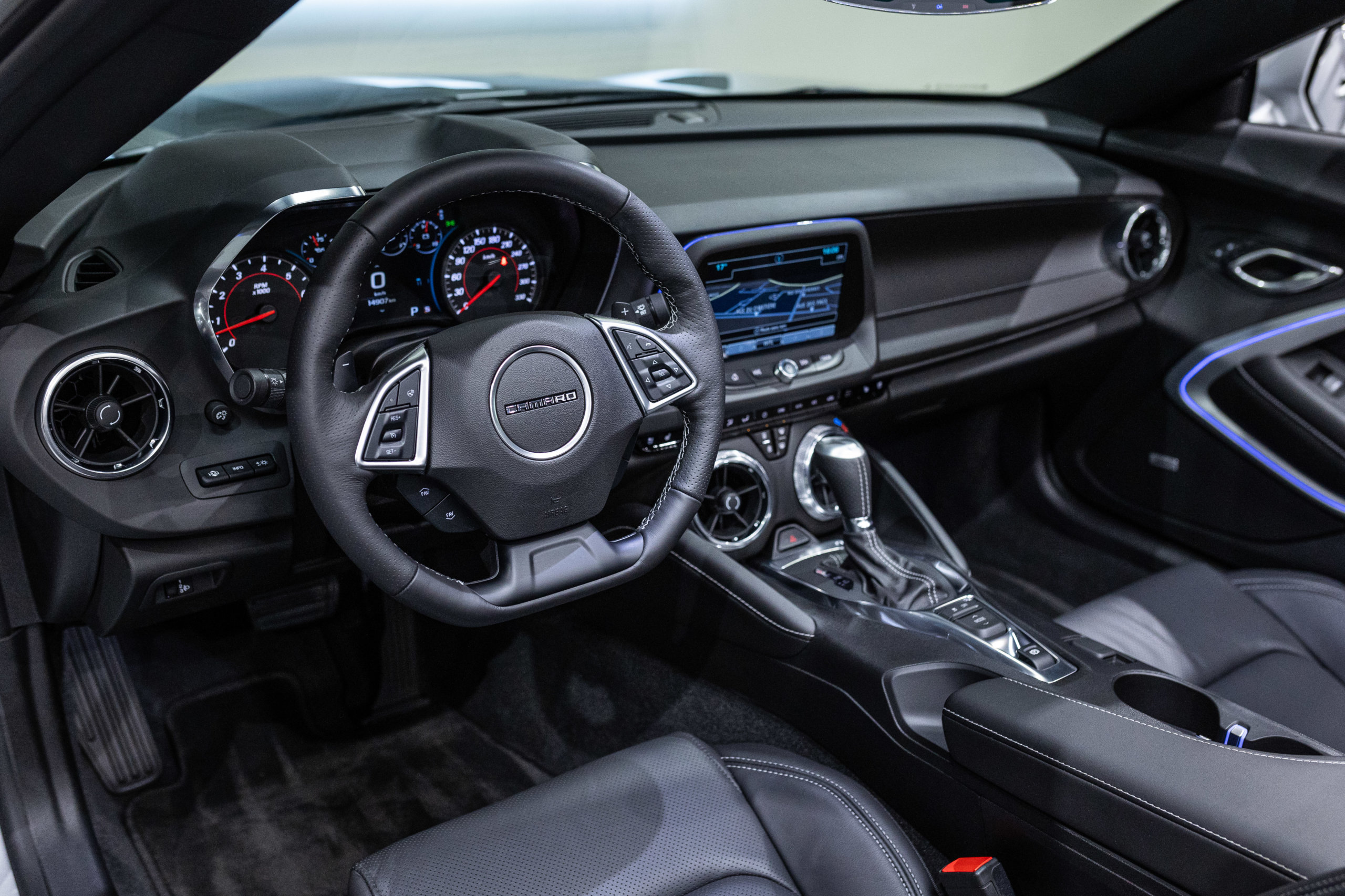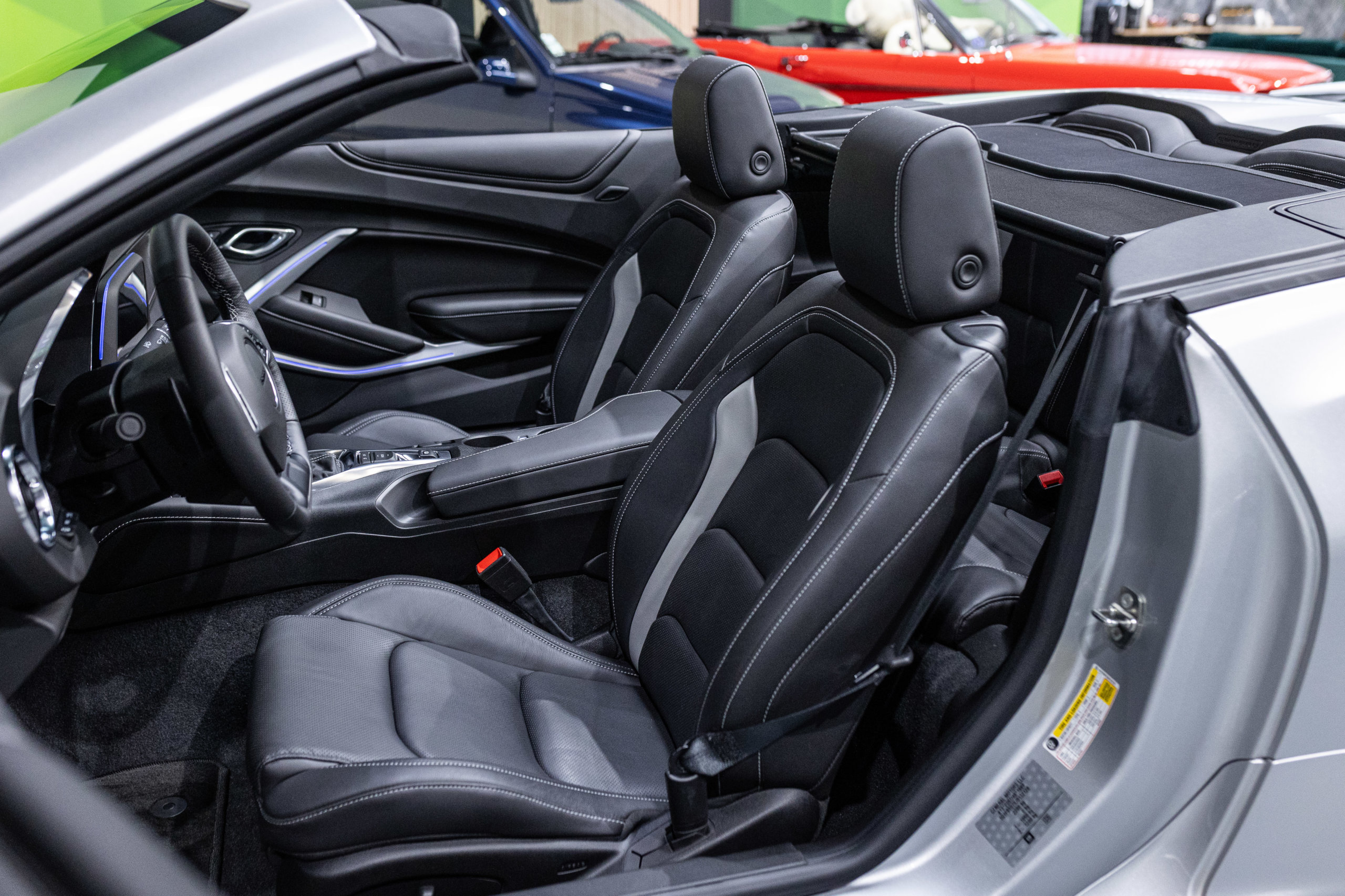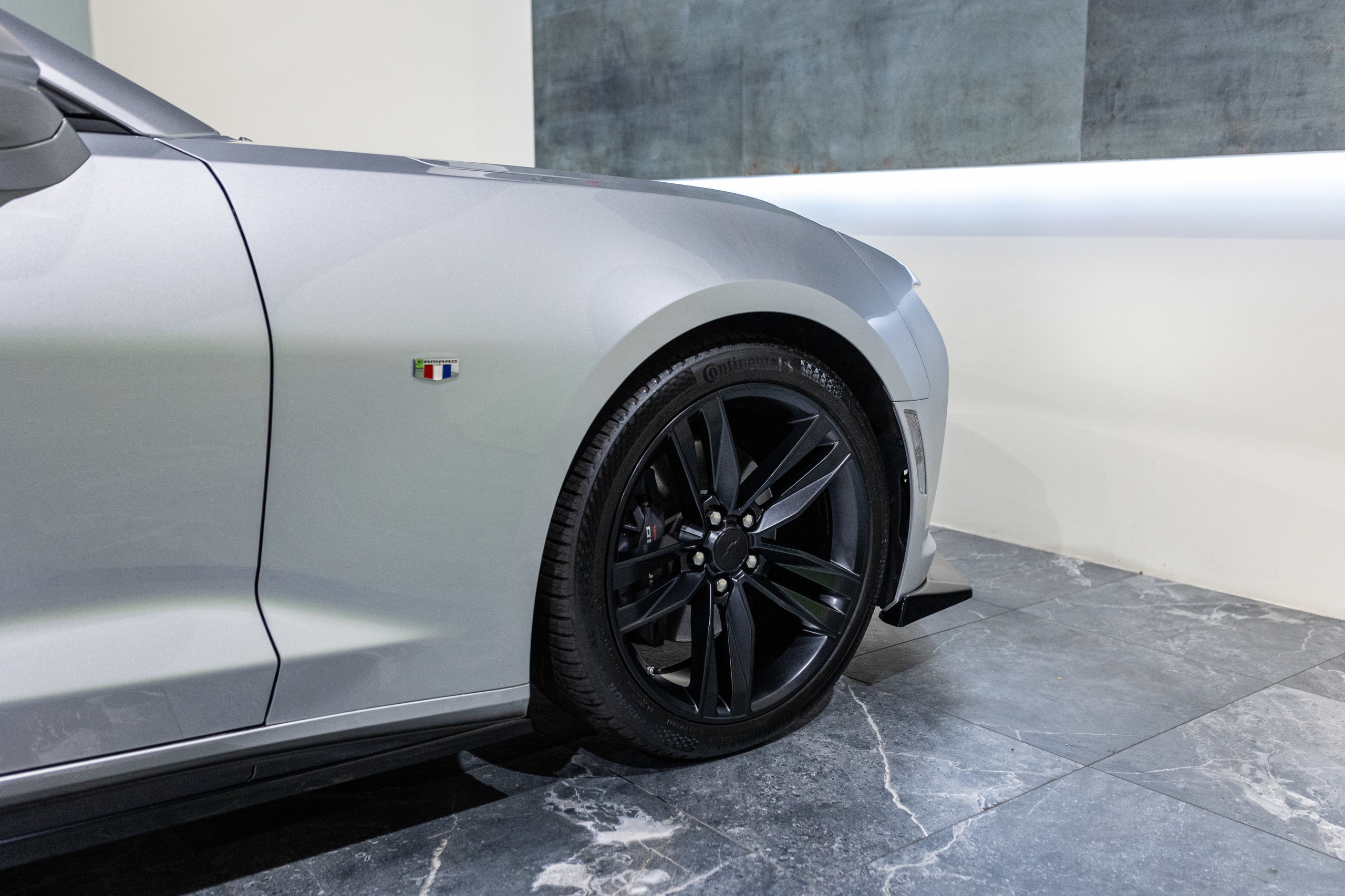 EXTEN’Z CARS vous propose cette séduisante Chevrolet Camaro VI Convertible avec son fantastique V8 6.2 Atmosphérique développant 453 CV (35cv), mise en circulation le 28/02/2018. Associée à une boite à vitesse automatique à huit rapports, si vous préférez une conduite plus sportive, il lui suffit de passer en mode manuel à l’aide des palettes de changement de vitesse au volant pour disposer alors des sept rapports fixes. Cette Camaro distille beaucoup de plaisir à ses occupants tout en offrant un rapport prix/plaisir. En particulier sa silhouette bodybuildée, la position de conduite est parfaite et on peut admirer devant soi le long capot bosselé. Prendre les commandes d’un tel engin, aussi imposant par le gabarit que par son histoire, génère des sensations extraordinaires.