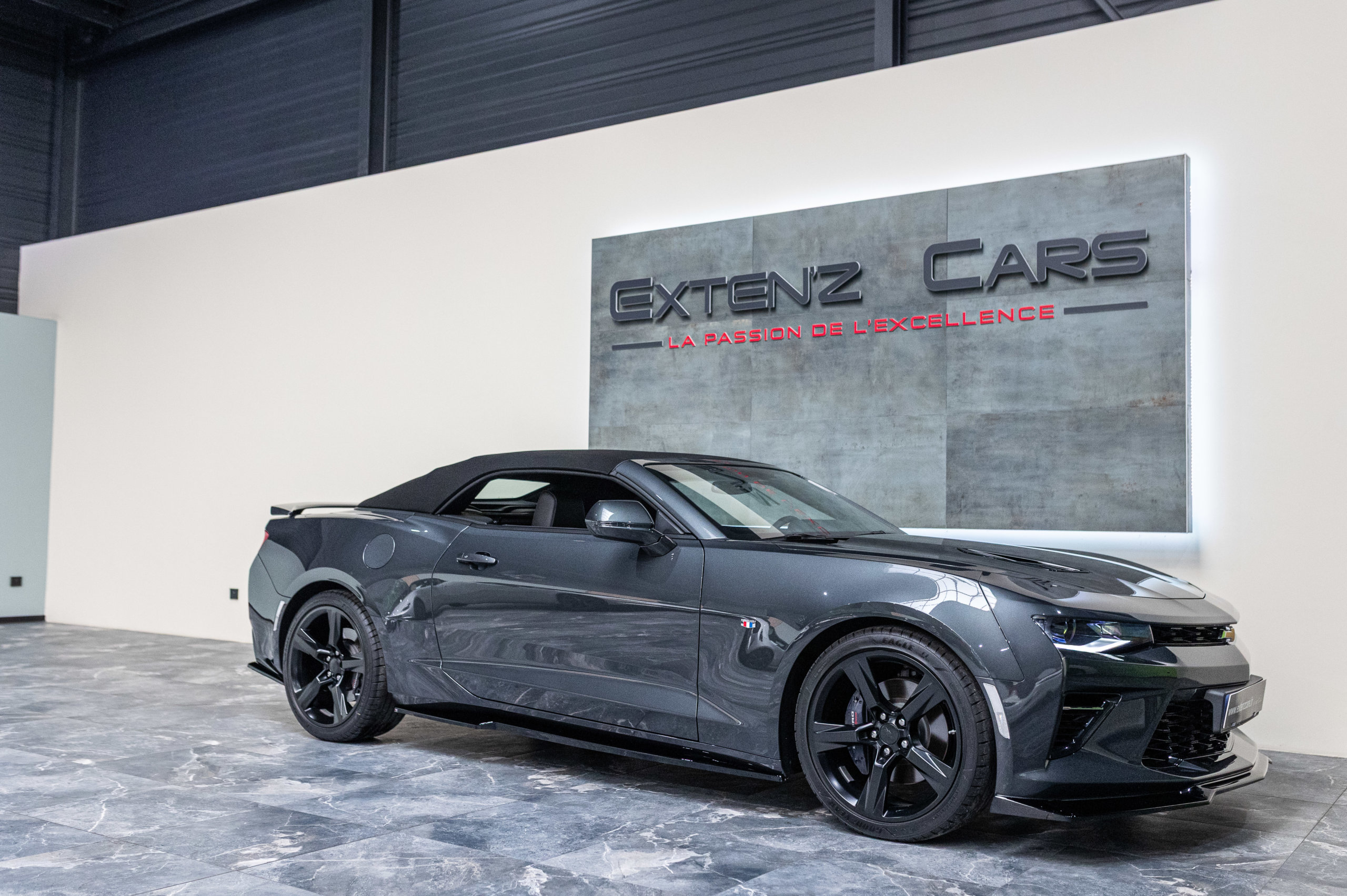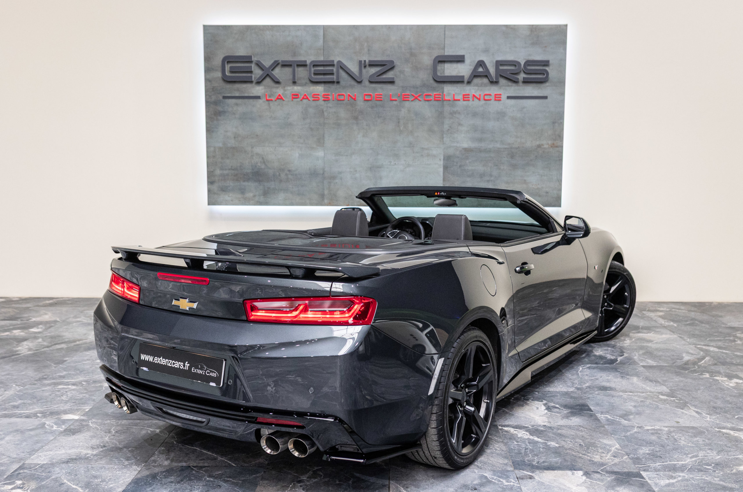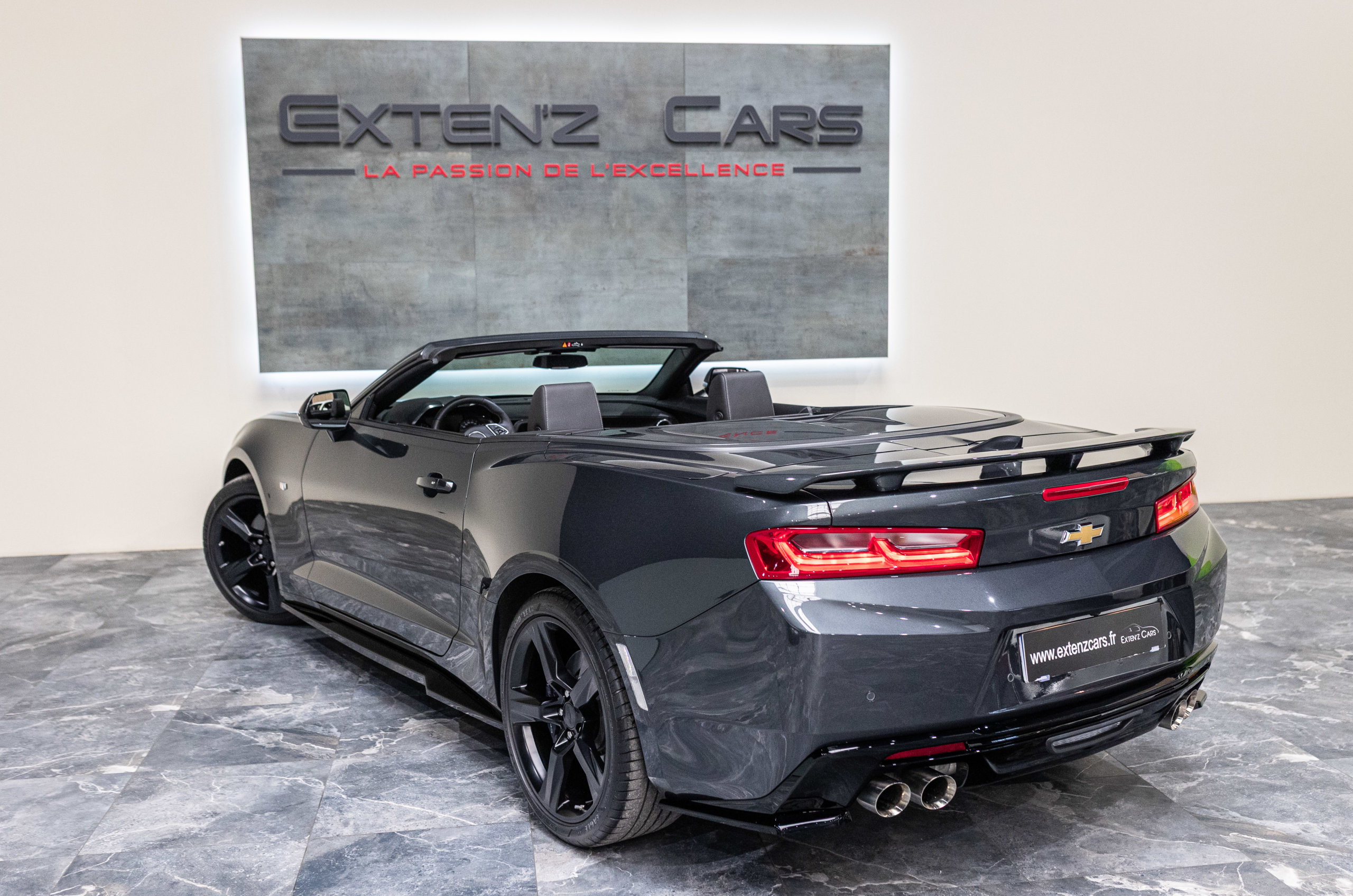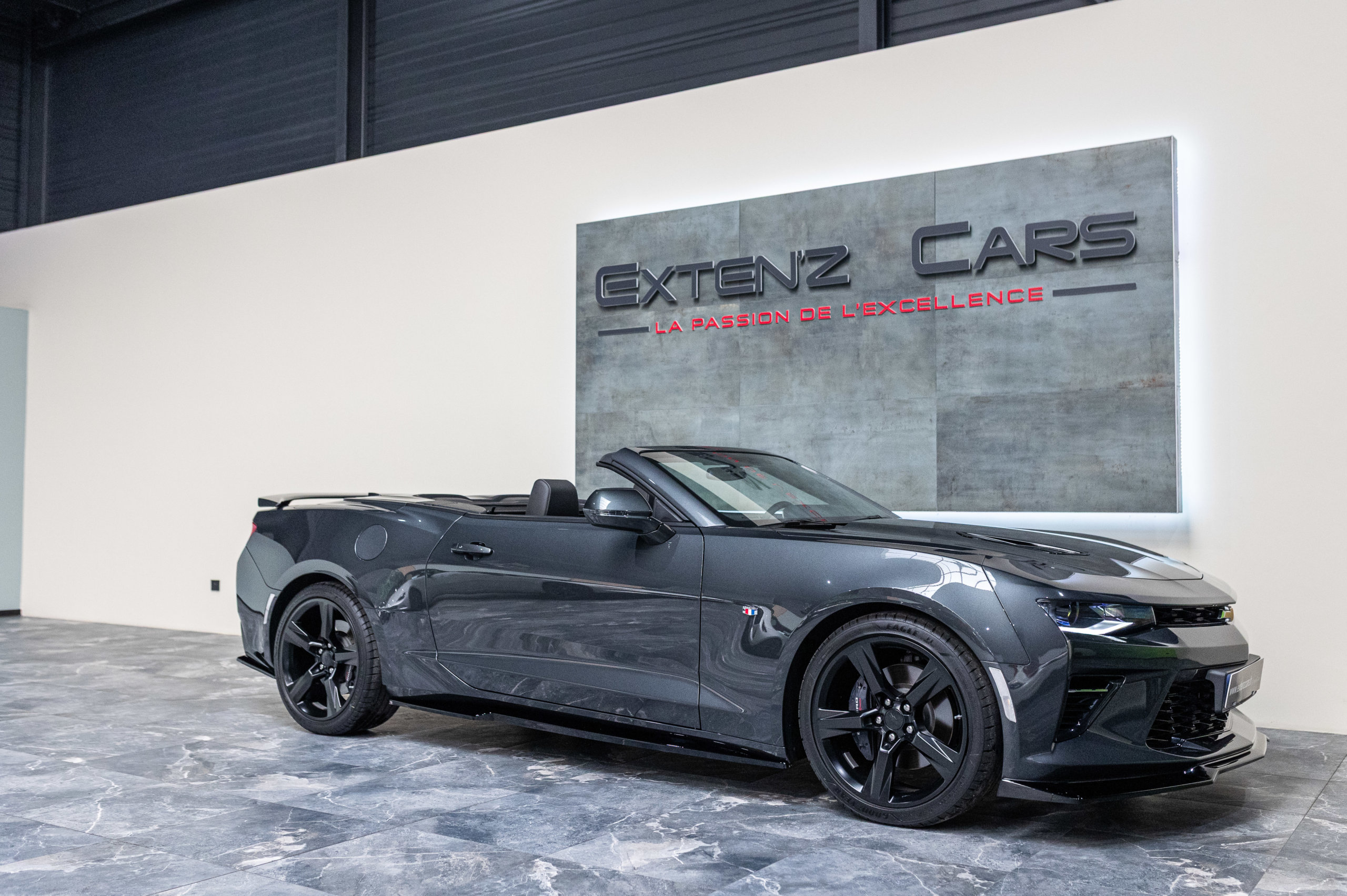 EXTEN’Z CARS vous propose cette séduisante Chevrolet Camaro VI Cabriolet avec son fantastique V8 6.2 Atmosphérique développant 453 CV (35cv), mise en circulation le 20/02/2018. Associée à une boite à vitesse automatique à 8 rapports, si vous préférez une conduite plus sportive, il lui suffit de passer en mode manuel à l’aide des palettes de changement de vitesse au volant pour disposer alors des 8 rapports fixes. Cette Camaro distille beaucoup de plaisir à ses occupants tout en offrant un rapport prix/plaisir. En particulier sa silhouette bodybuildée, la position de conduite est parfaite et on peut admirer devant soi le long capot bosselé. Prendre les commandes d’un tel engin, aussi imposant par le gabarit que par son histoire, génère des sensations extraordinaires.