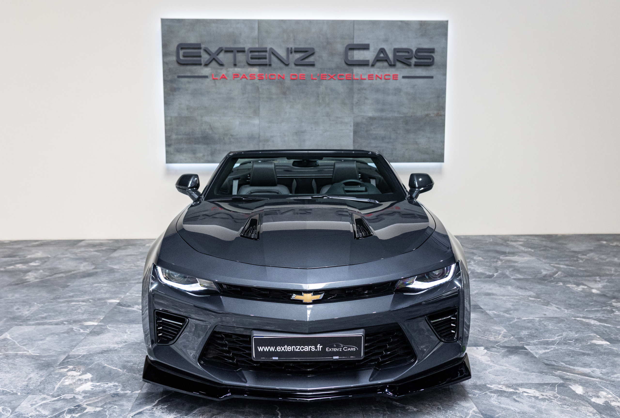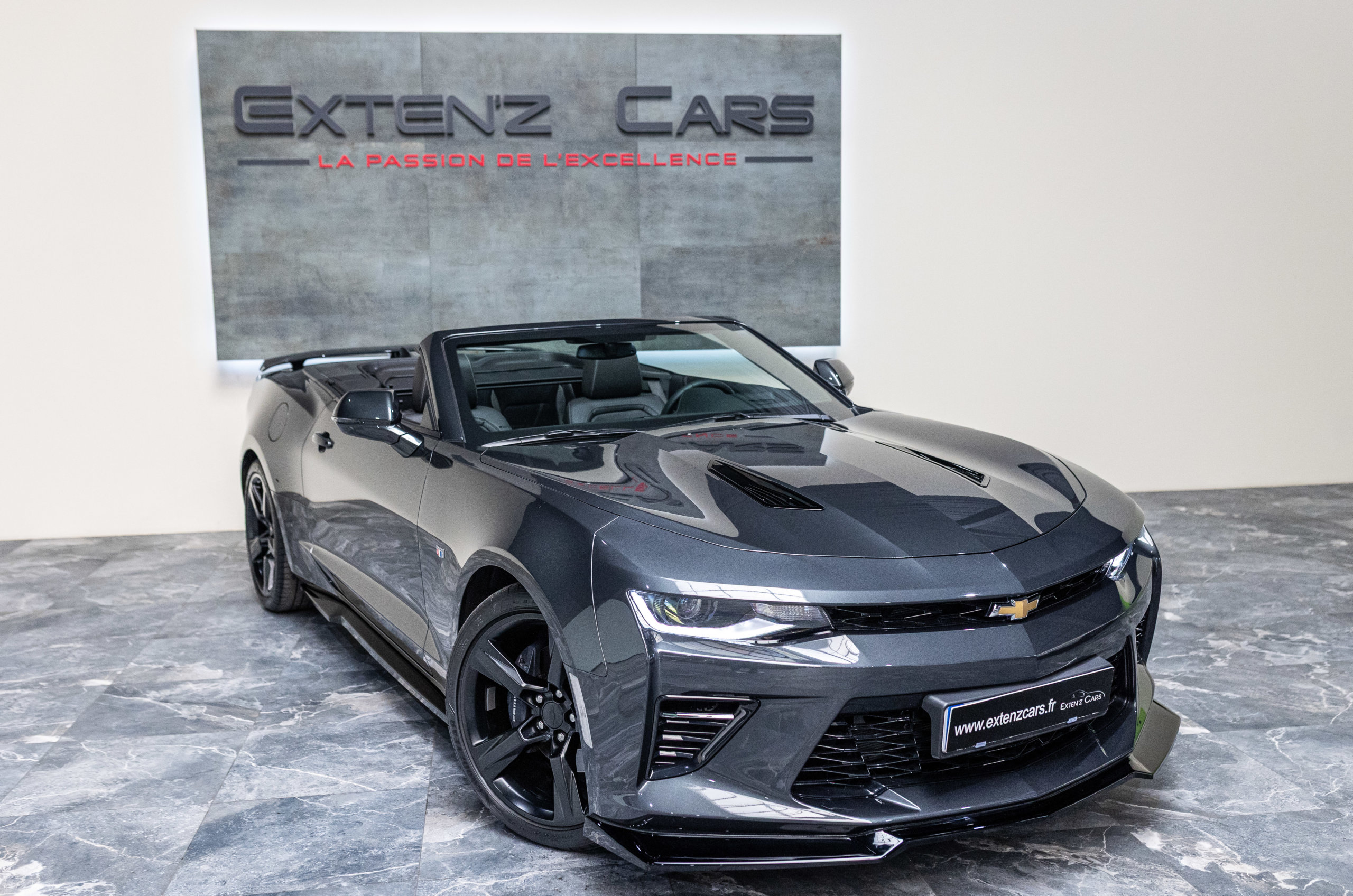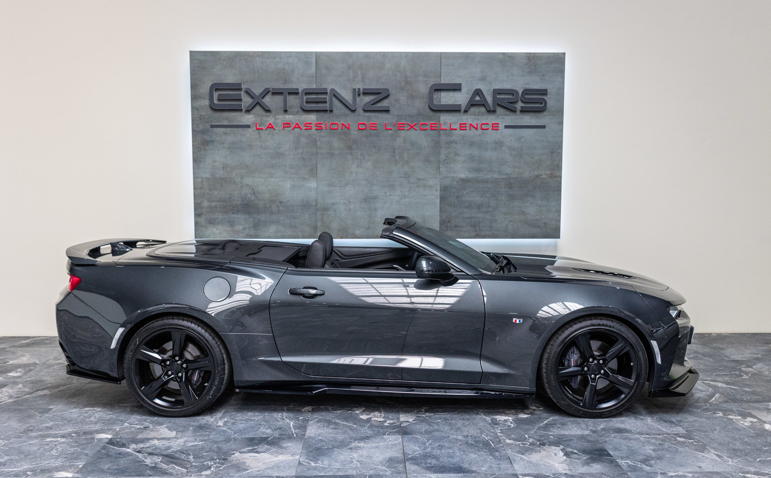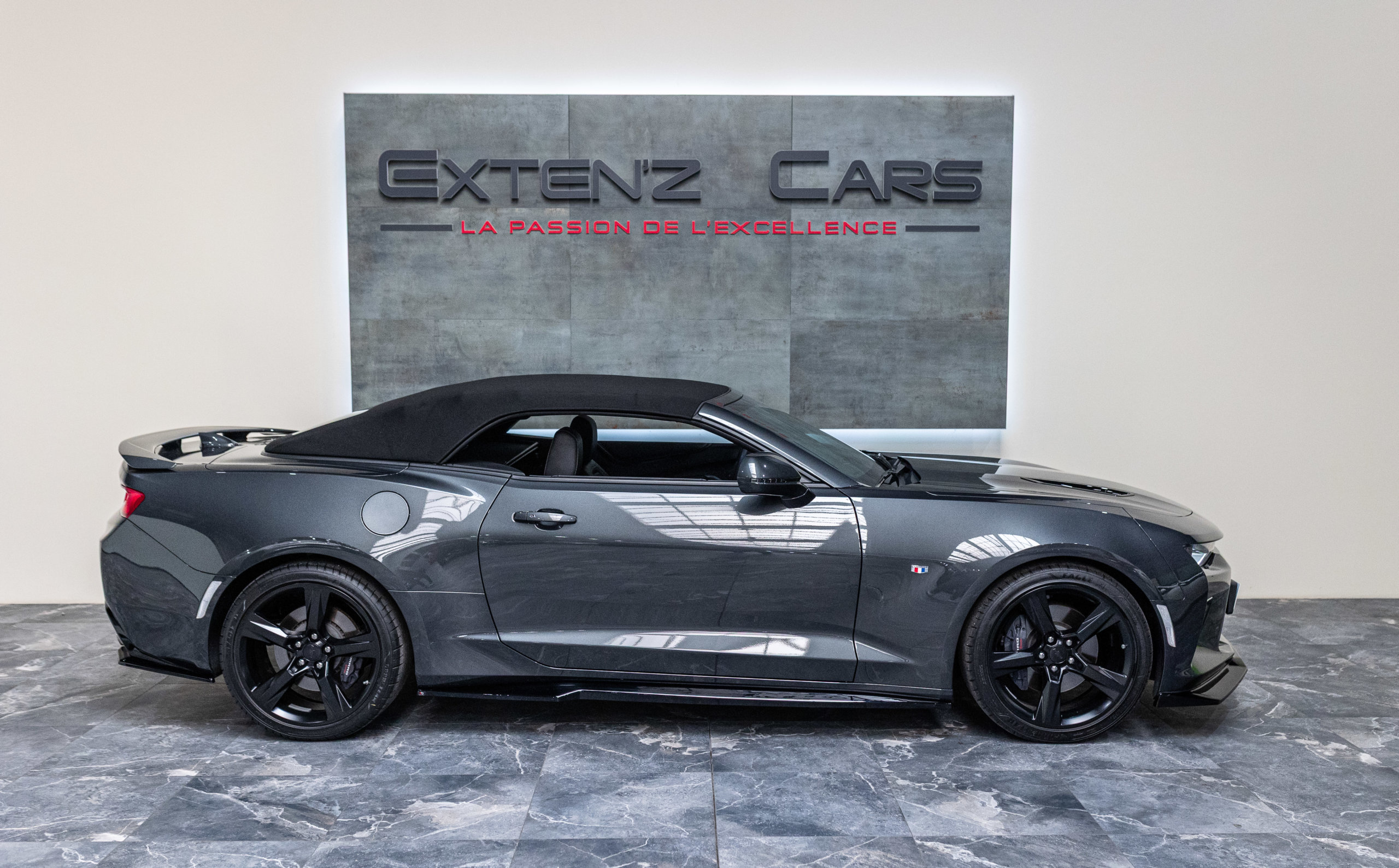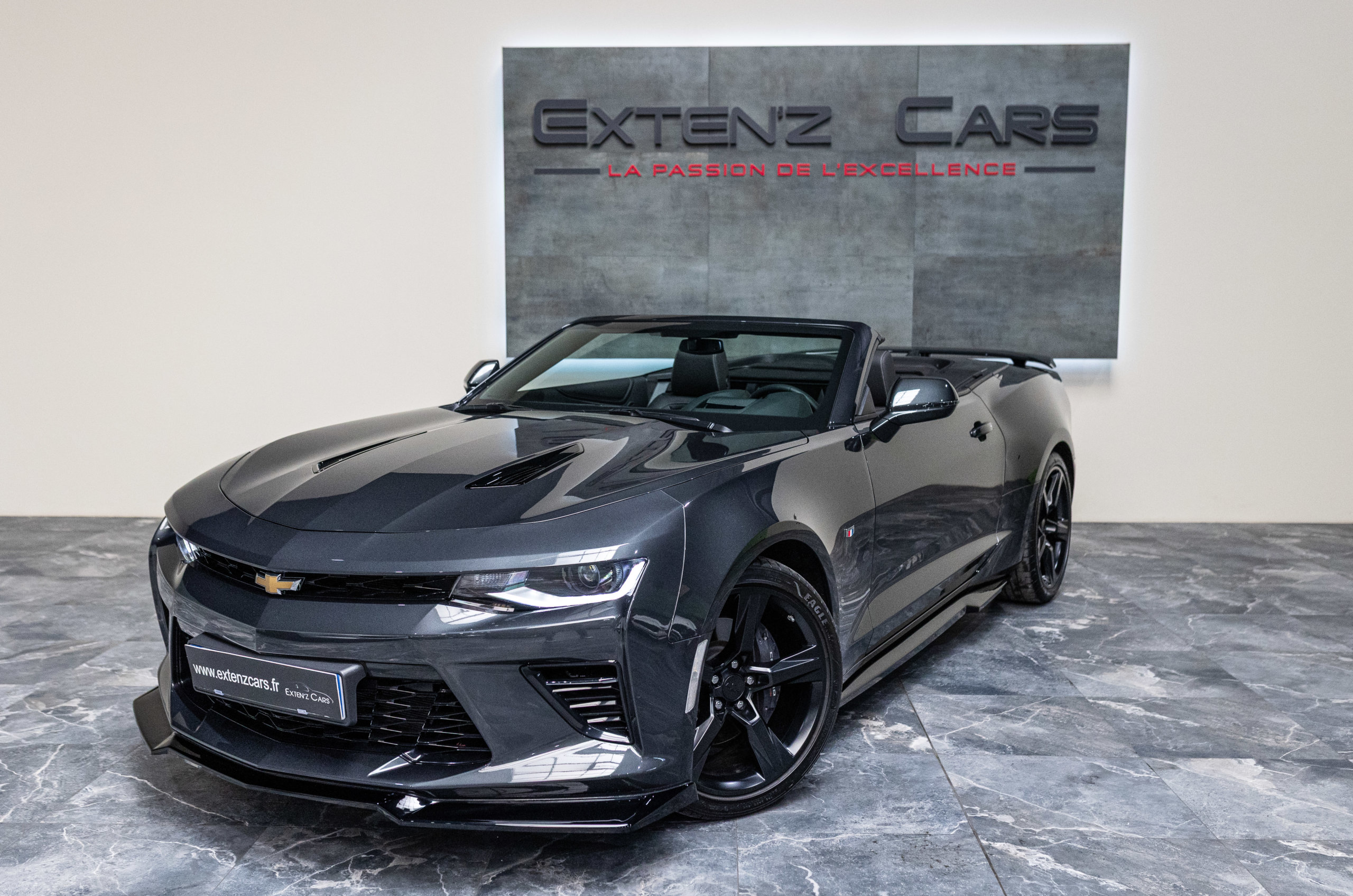 EXTEN’Z CARS vous propose cette séduisante Chevrolet Camaro VI Cabriolet avec son fantastique V8 6.2 Atmosphérique développant 453 CV (35cv), mise en circulation le 20/02/2018. Associée à une boite à vitesse automatique à 8 rapports, si vous préférez une conduite plus sportive, il lui suffit de passer en mode manuel à l’aide des palettes de changement de vitesse au volant pour disposer alors des 8 rapports fixes. Cette Camaro distille beaucoup de plaisir à ses occupants tout en offrant un rapport prix/plaisir. En particulier sa silhouette bodybuildée, la position de conduite est parfaite et on peut admirer devant soi le long capot bosselé. Prendre les commandes d’un tel engin, aussi imposant par le gabarit que par son histoire, génère des sensations extraordinaires.