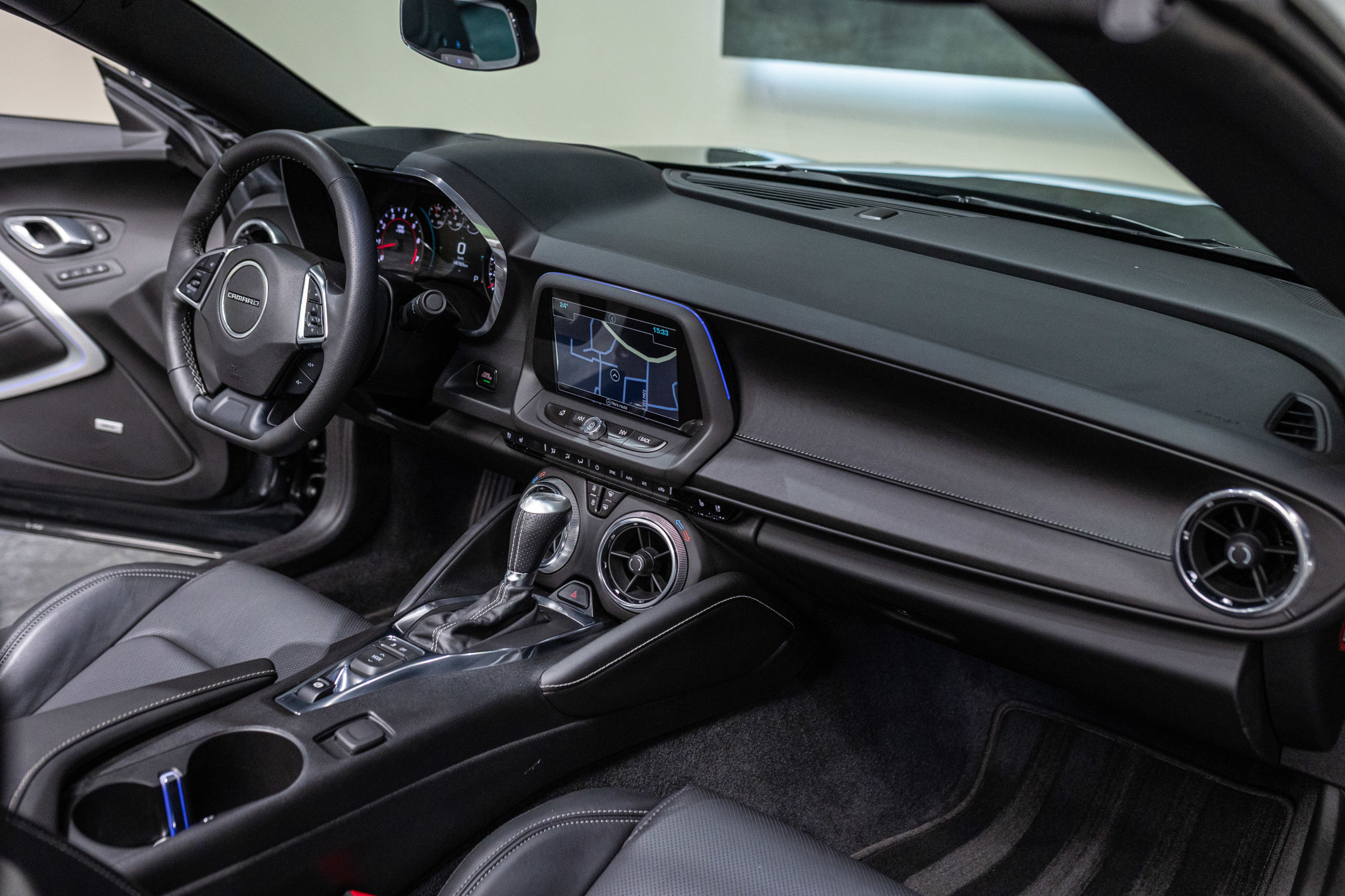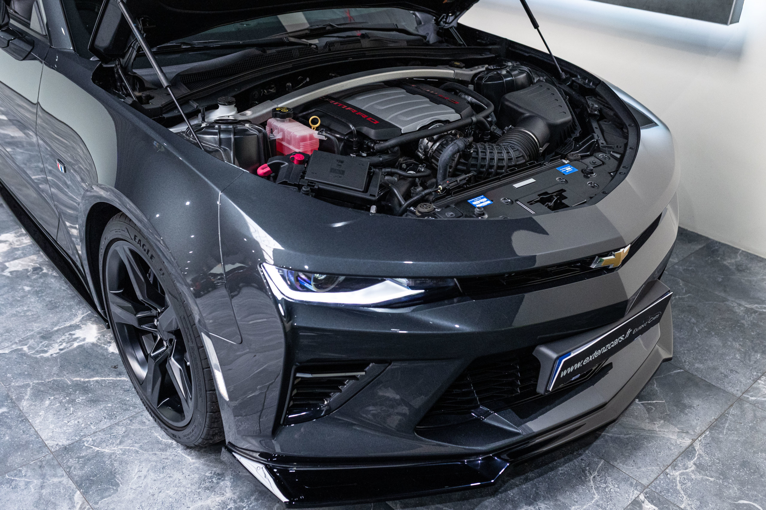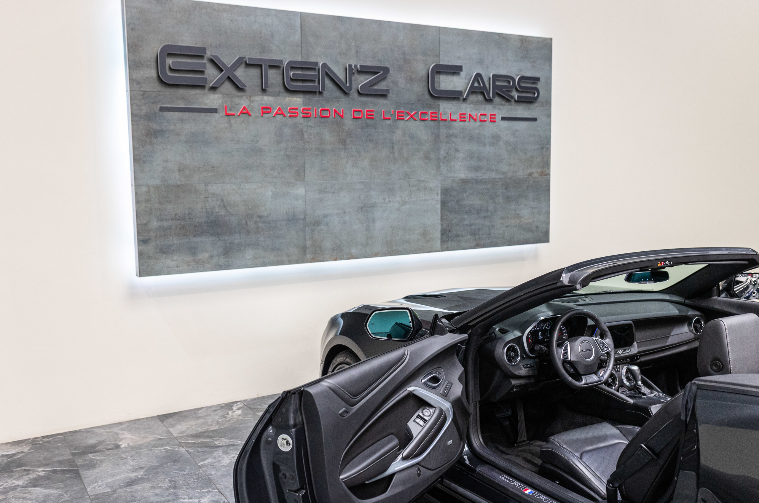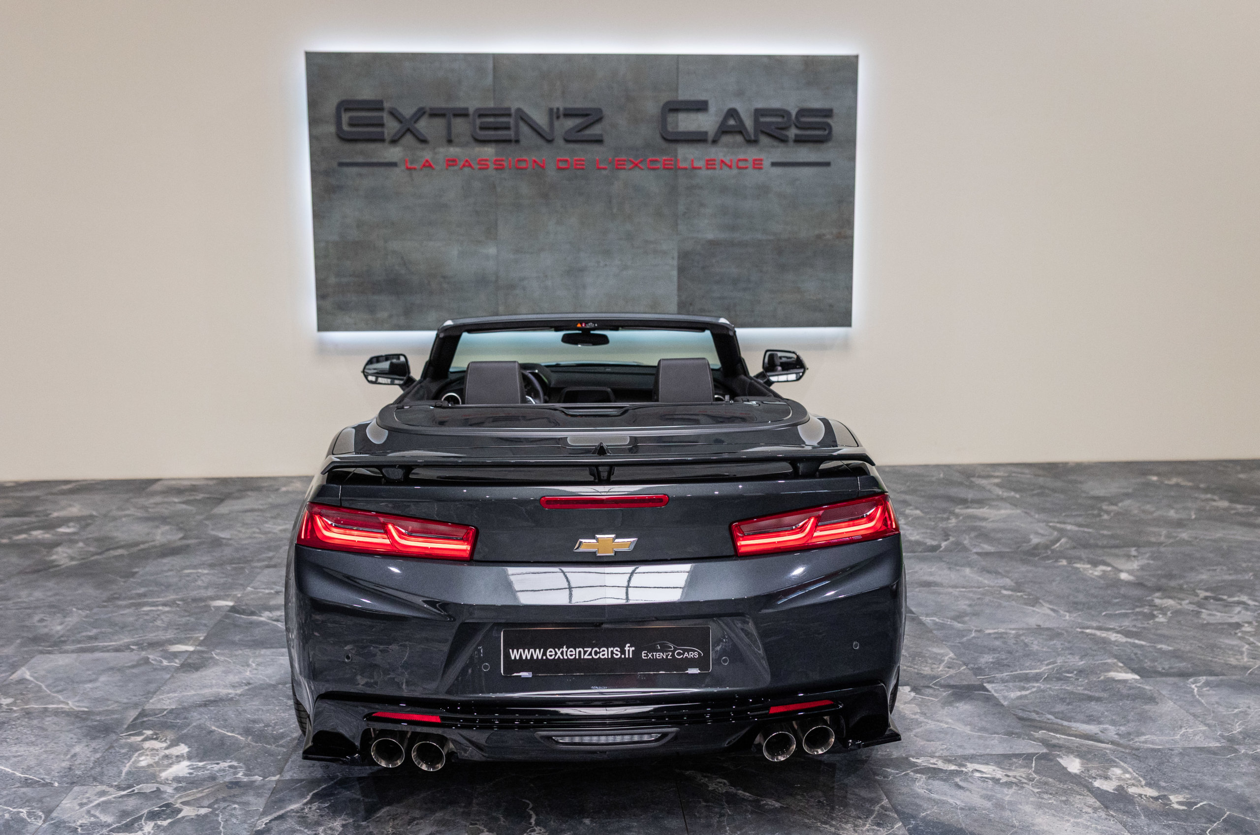EXTEN’Z CARS vous propose cette séduisante Chevrolet Camaro VI Cabriolet avec son fantastique V8 6.2 Atmosphérique développant 453 CV (35cv), mise en circulation le 20/02/2018. Associée à une boite à vitesse automatique à 8 rapports, si vous préférez une conduite plus sportive, il lui suffit de passer en mode manuel à l’aide des palettes de changement de vitesse au volant pour disposer alors des 8 rapports fixes. Cette Camaro distille beaucoup de plaisir à ses occupants tout en offrant un rapport prix/plaisir. En particulier sa silhouette bodybuildée, la position de conduite est parfaite et on peut admirer devant soi le long capot bosselé. Prendre les commandes d’un tel engin, aussi imposant par le gabarit que par son histoire, génère des sensations extraordinaires.
