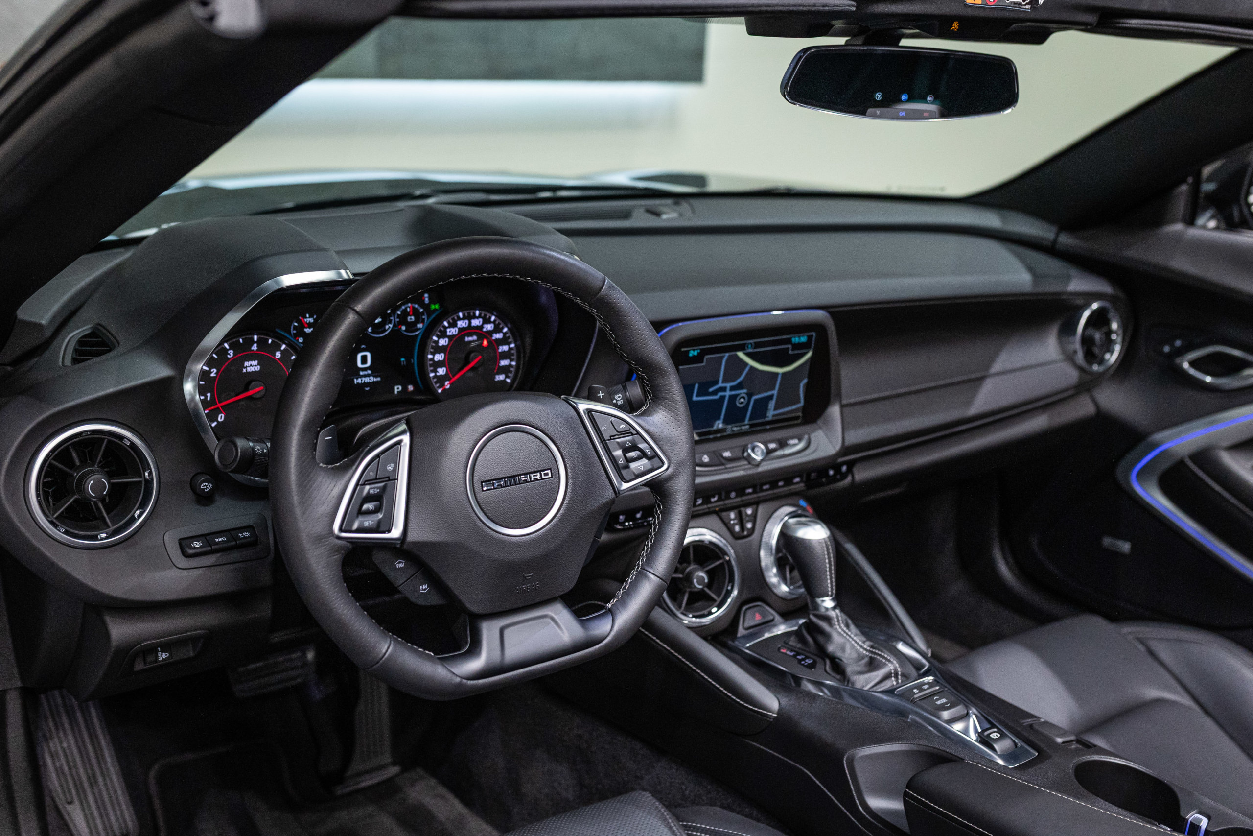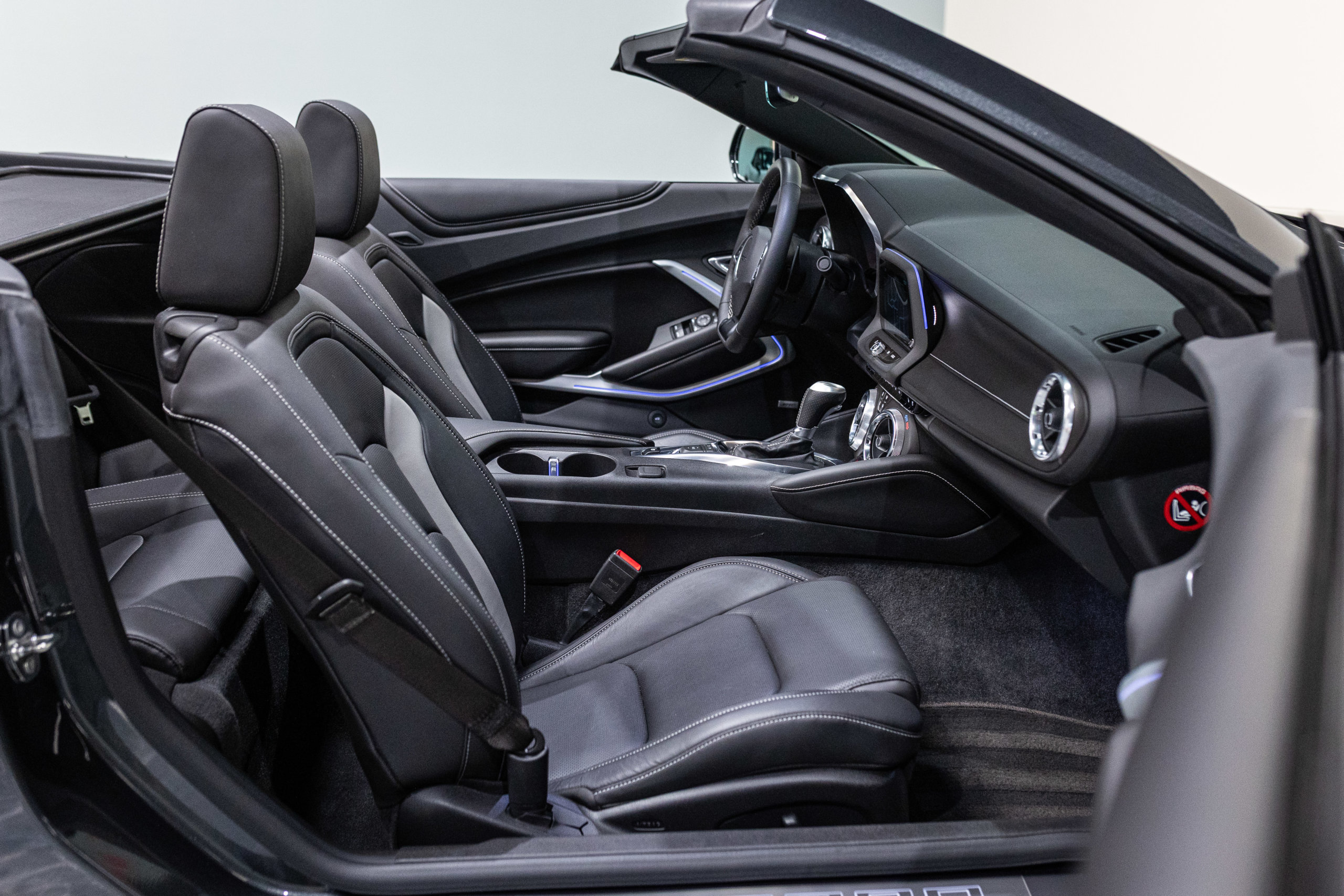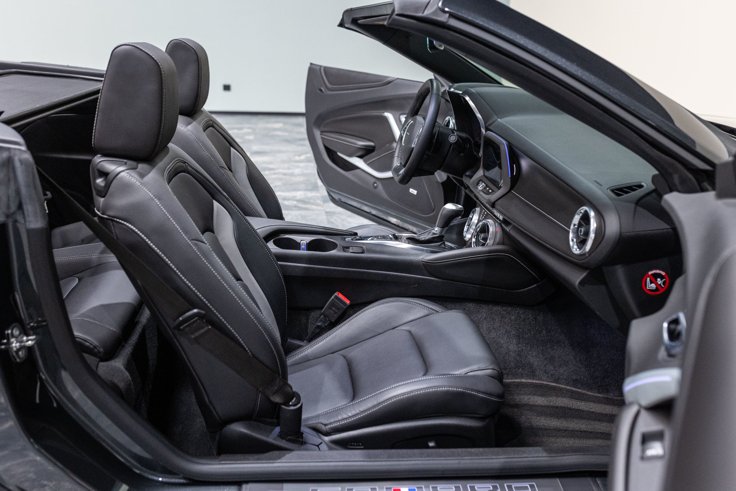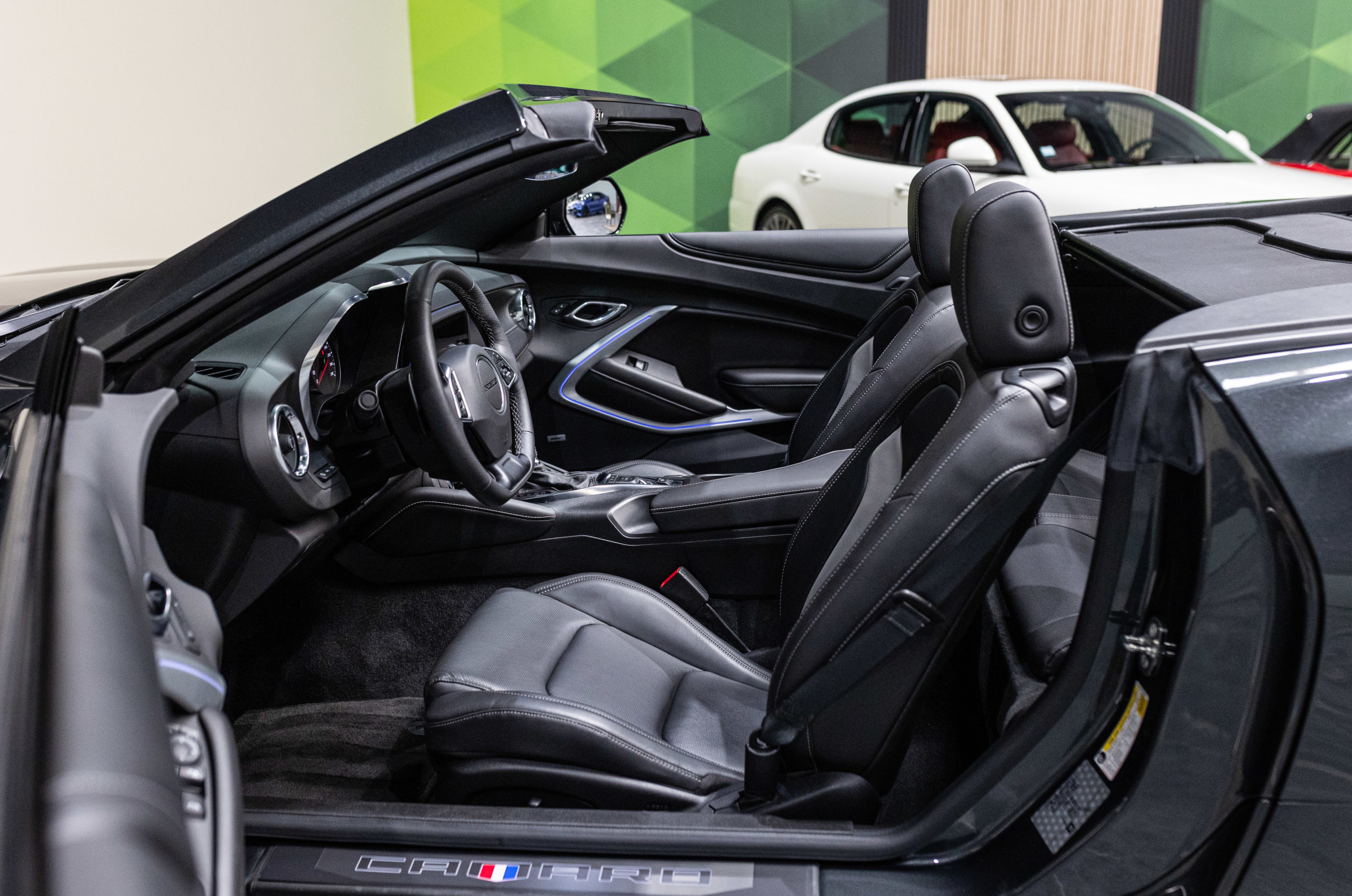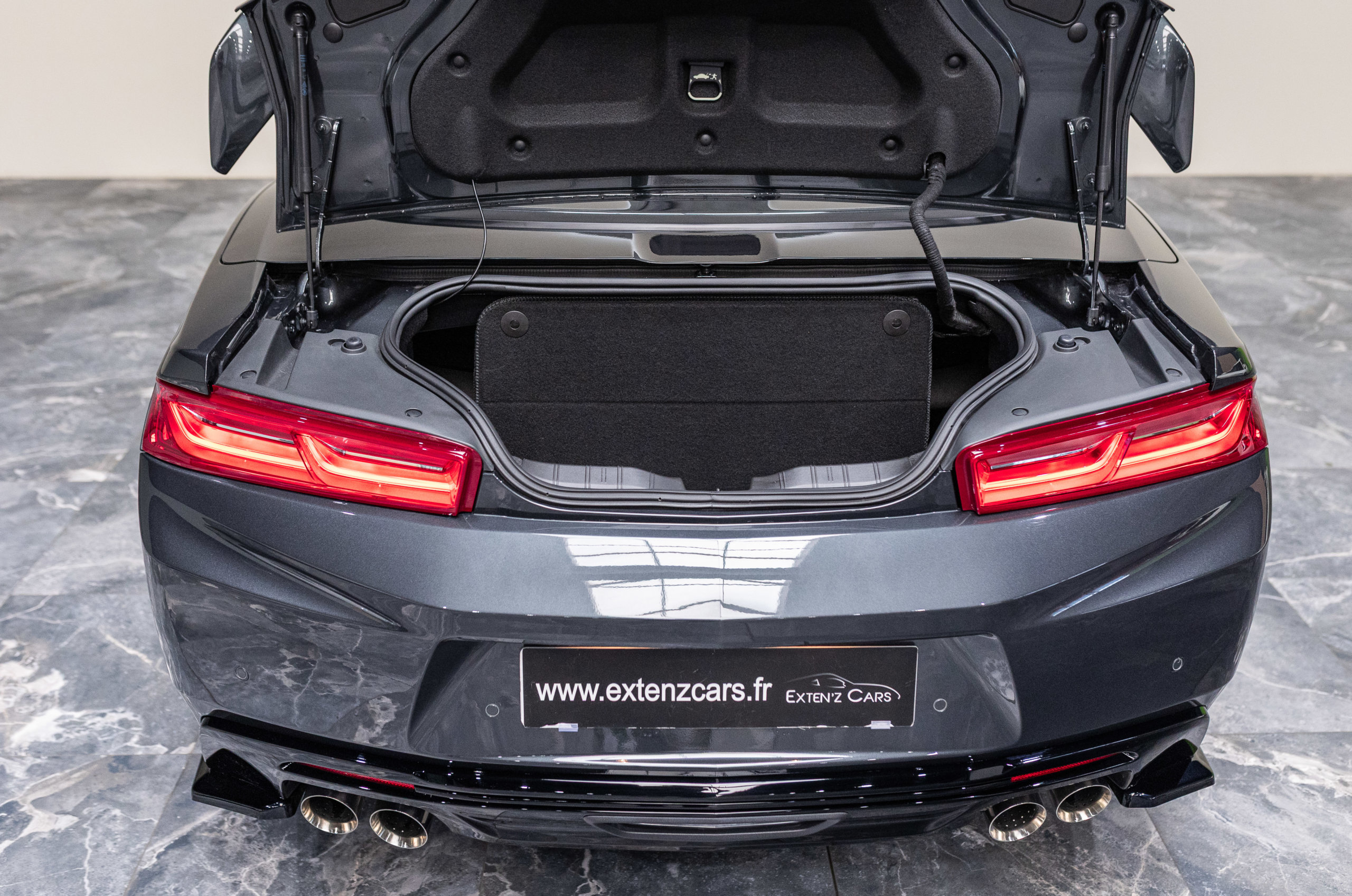 EXTEN’Z CARS vous propose cette séduisante Chevrolet Camaro VI Cabriolet avec son fantastique V8 6.2 Atmosphérique développant 453 CV (35cv), mise en circulation le 20/02/2018. Associée à une boite à vitesse automatique à 8 rapports, si vous préférez une conduite plus sportive, il lui suffit de passer en mode manuel à l’aide des palettes de changement de vitesse au volant pour disposer alors des 8 rapports fixes. Cette Camaro distille beaucoup de plaisir à ses occupants tout en offrant un rapport prix/plaisir. En particulier sa silhouette bodybuildée, la position de conduite est parfaite et on peut admirer devant soi le long capot bosselé. Prendre les commandes d’un tel engin, aussi imposant par le gabarit que par son histoire, génère des sensations extraordinaires.