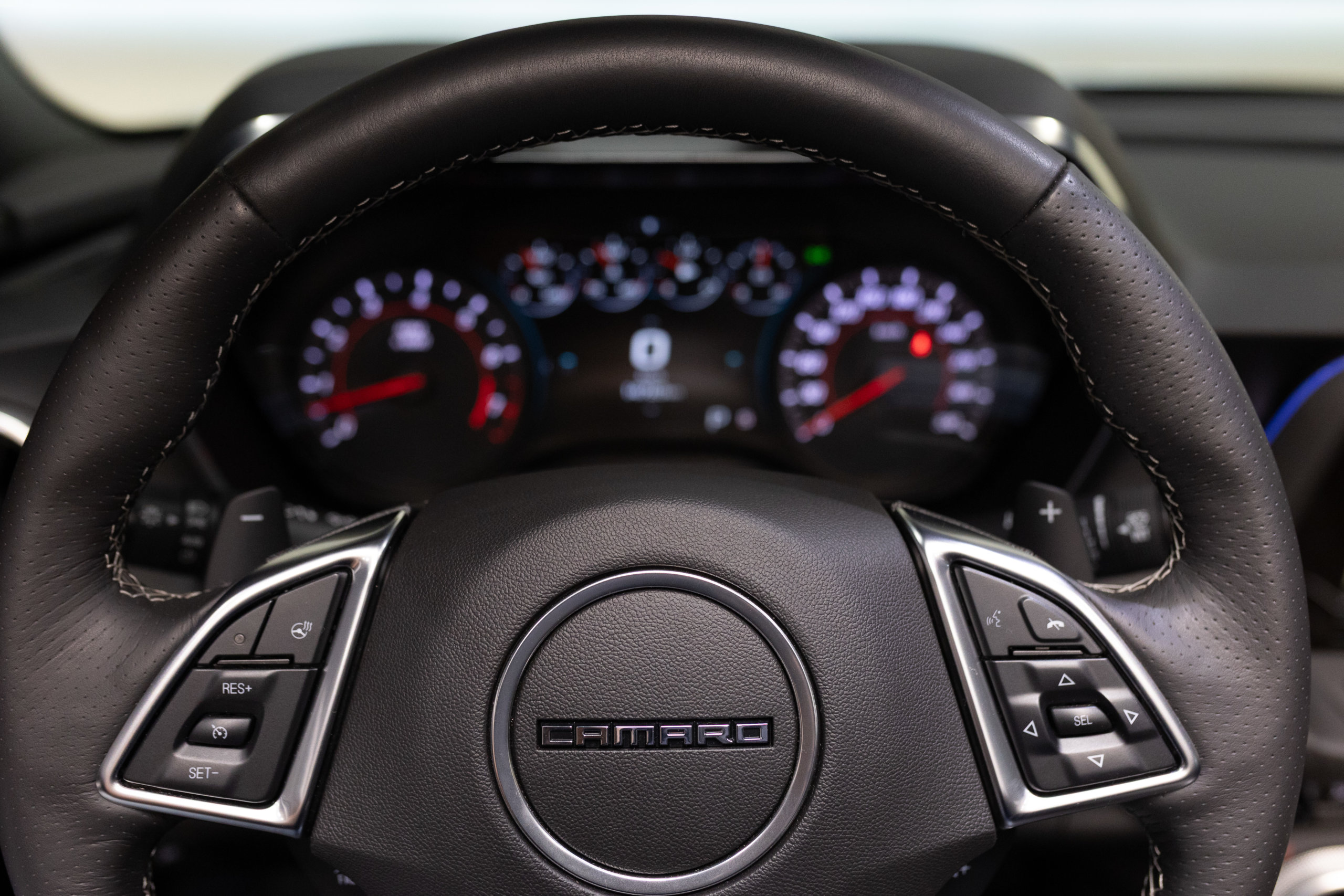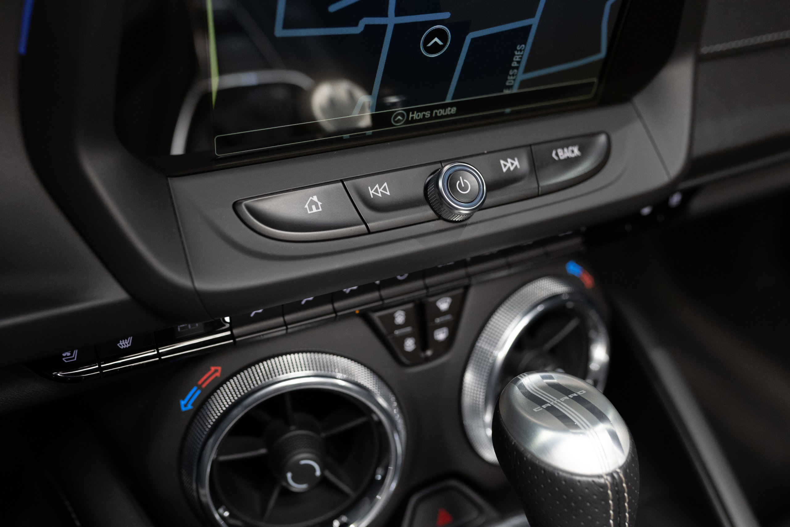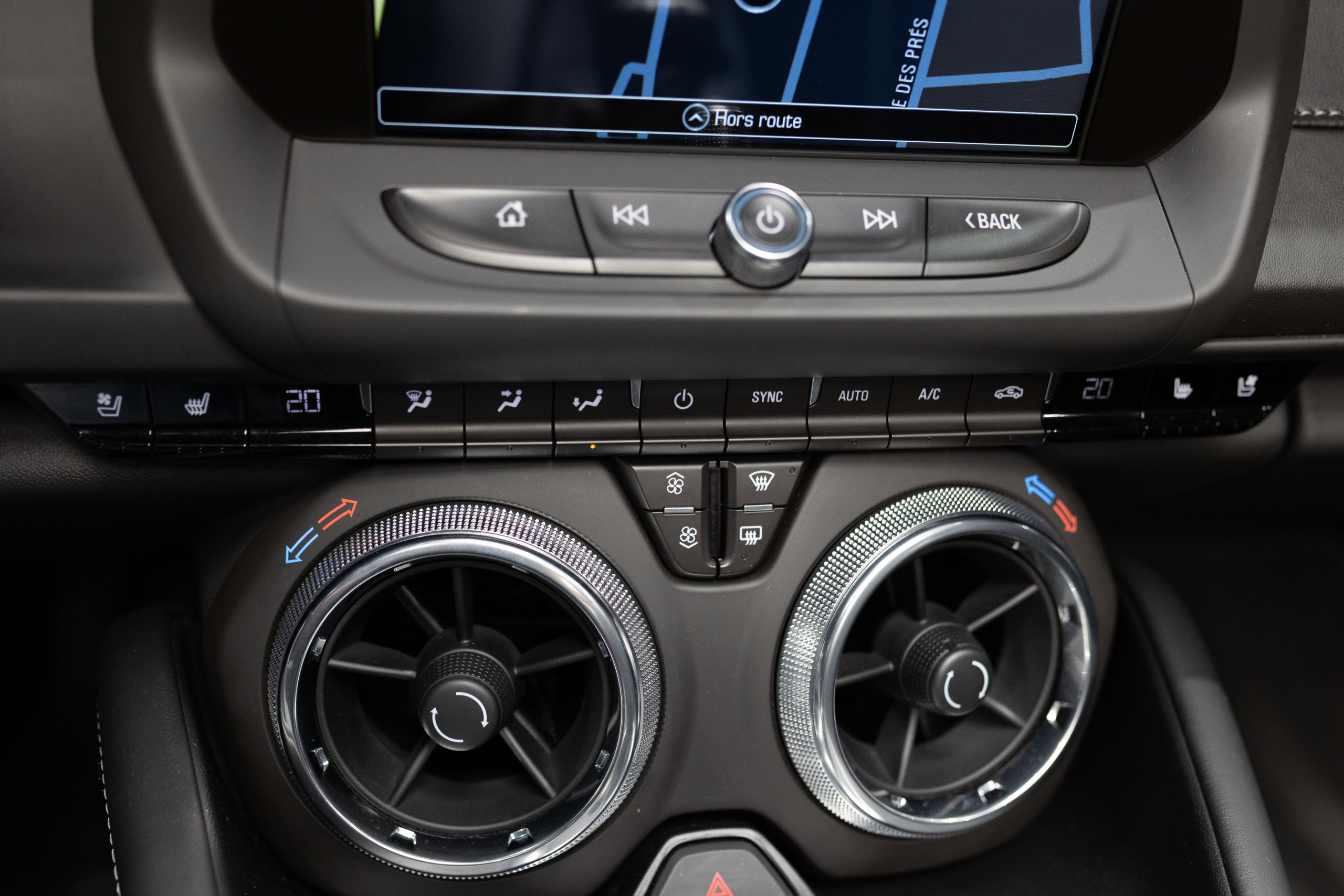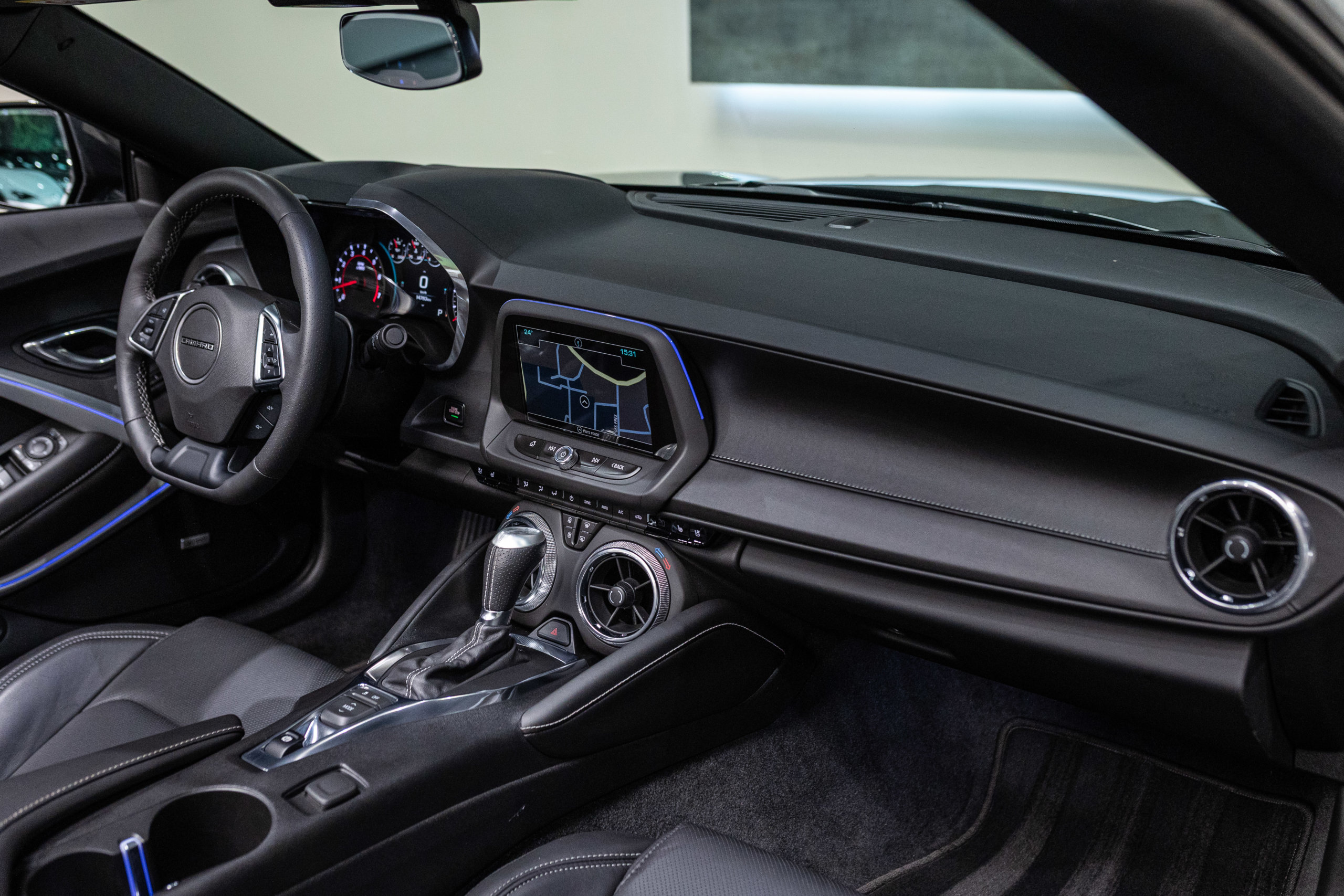 EXTEN’Z CARS vous propose cette séduisante Chevrolet Camaro VI Cabriolet avec son fantastique V8 6.2 Atmosphérique développant 453 CV (35cv), mise en circulation le 20/02/2018. Associée à une boite à vitesse automatique à 8 rapports, si vous préférez une conduite plus sportive, il lui suffit de passer en mode manuel à l’aide des palettes de changement de vitesse au volant pour disposer alors des 8 rapports fixes. Cette Camaro distille beaucoup de plaisir à ses occupants tout en offrant un rapport prix/plaisir. En particulier sa silhouette bodybuildée, la position de conduite est parfaite et on peut admirer devant soi le long capot bosselé. Prendre les commandes d’un tel engin, aussi imposant par le gabarit que par son histoire, génère des sensations extraordinaires.