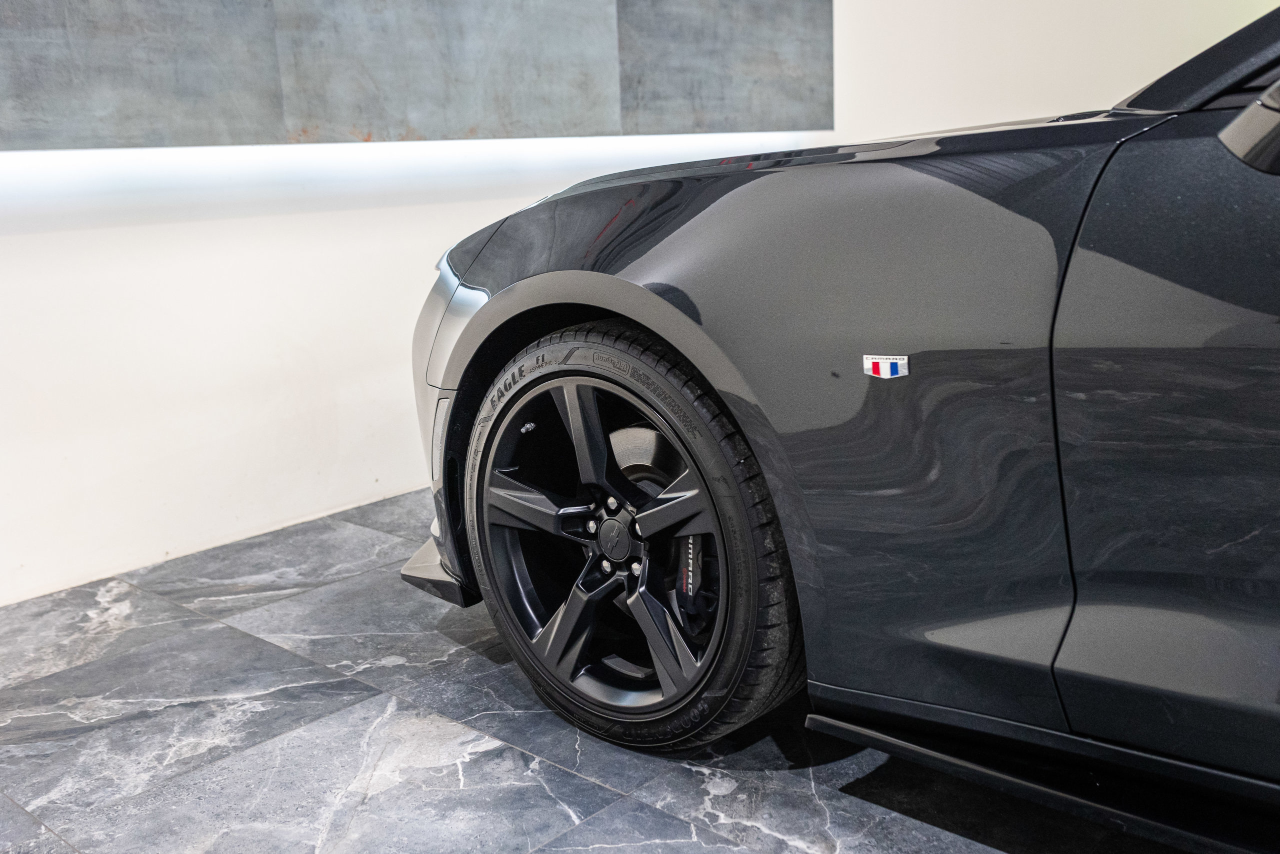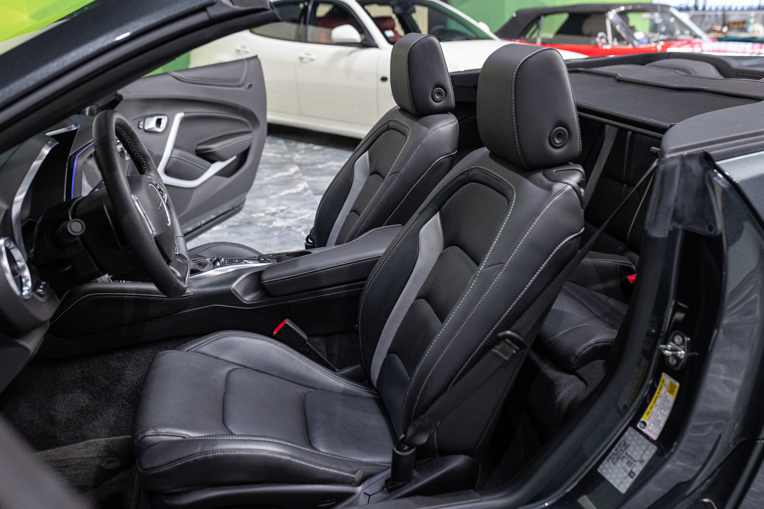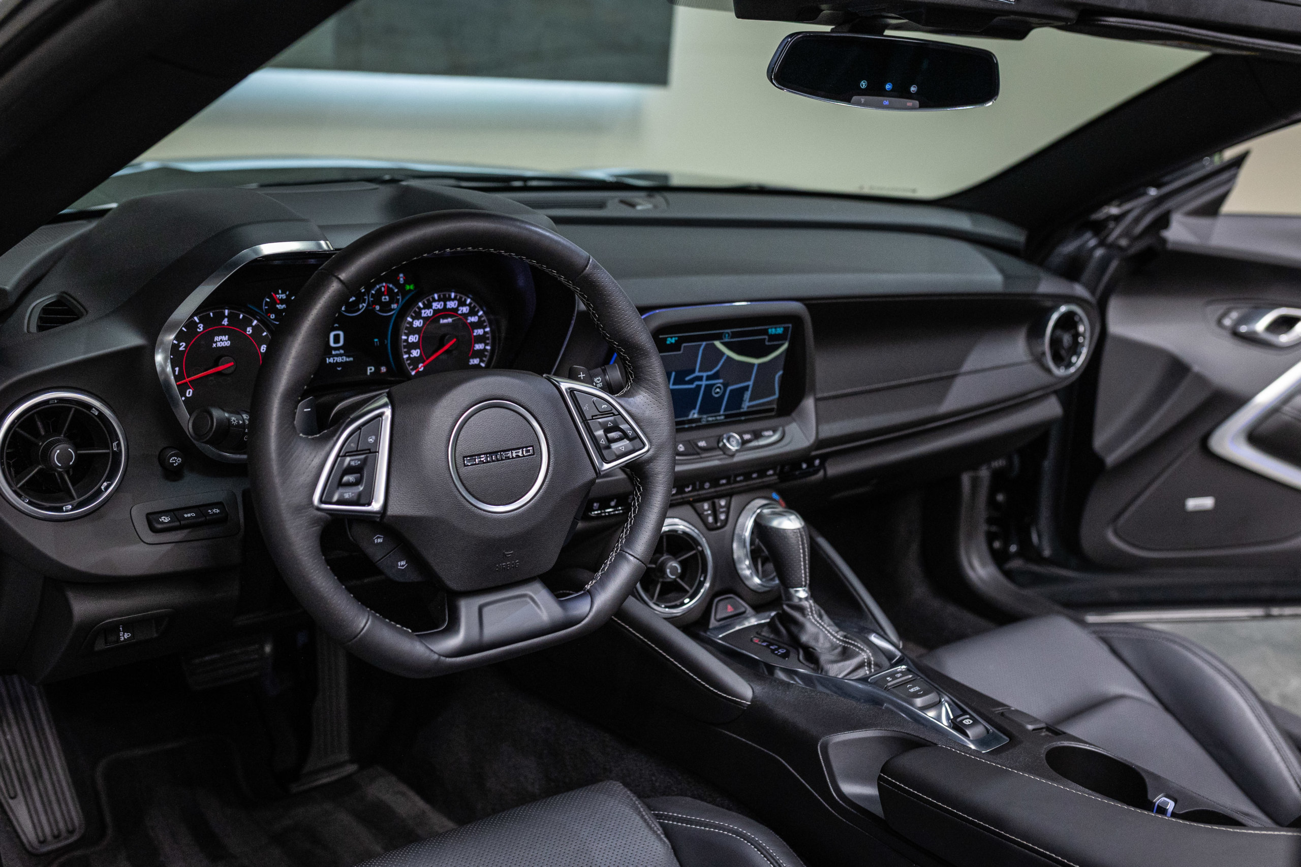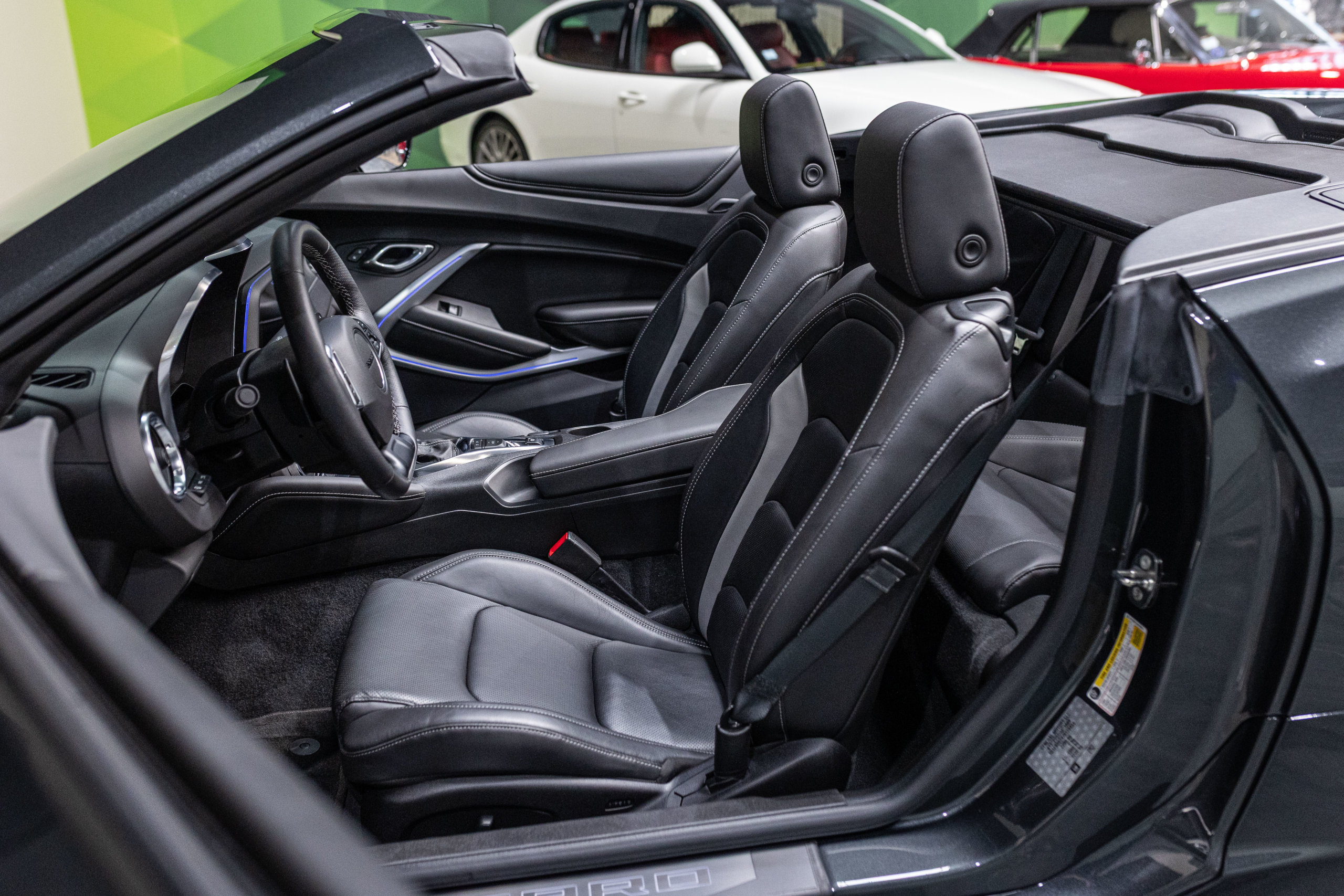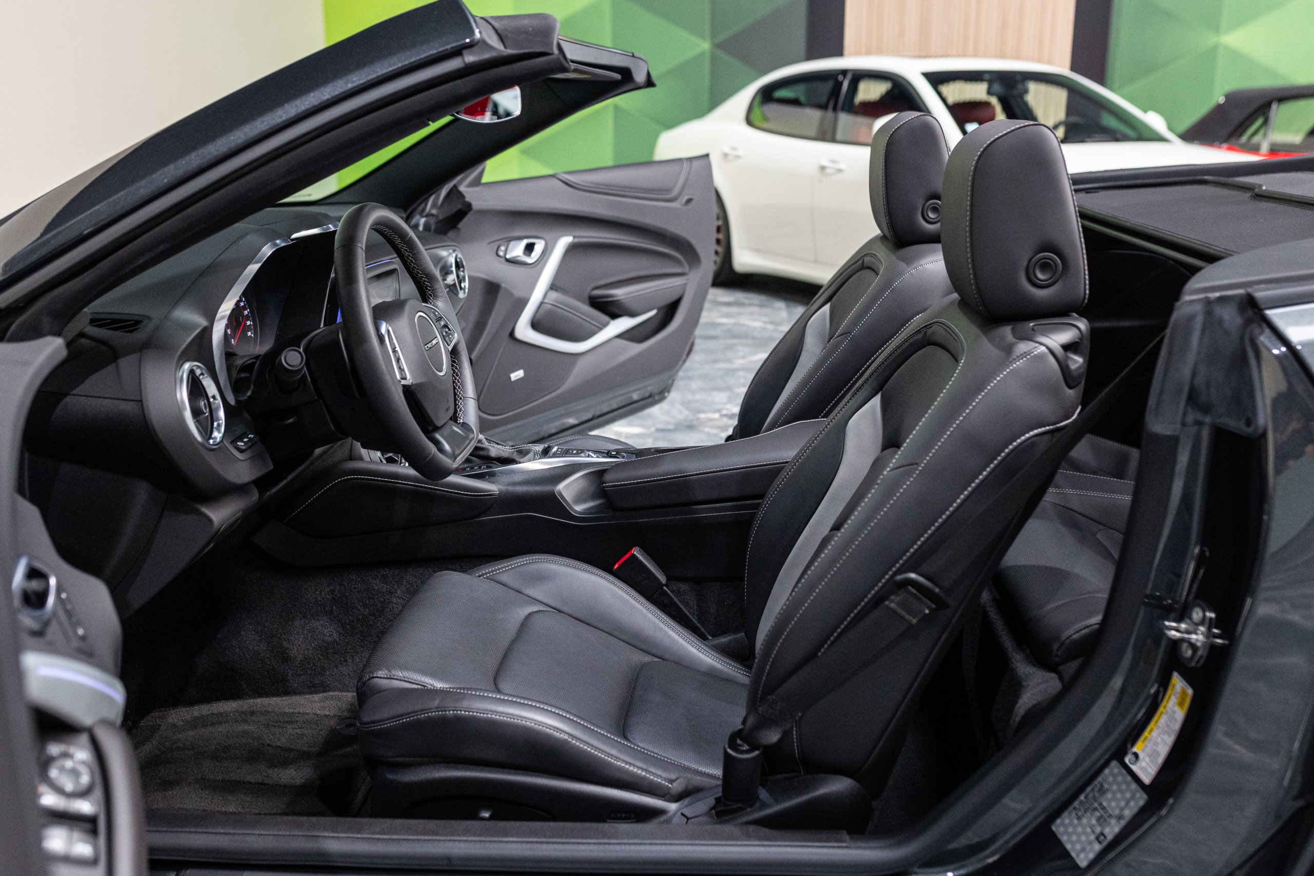 EXTEN’Z CARS vous propose cette séduisante Chevrolet Camaro VI Cabriolet avec son fantastique V8 6.2 Atmosphérique développant 453 CV (35cv), mise en circulation le 20/02/2018. Associée à une boite à vitesse automatique à 8 rapports, si vous préférez une conduite plus sportive, il lui suffit de passer en mode manuel à l’aide des palettes de changement de vitesse au volant pour disposer alors des 8 rapports fixes. Cette Camaro distille beaucoup de plaisir à ses occupants tout en offrant un rapport prix/plaisir. En particulier sa silhouette bodybuildée, la position de conduite est parfaite et on peut admirer devant soi le long capot bosselé. Prendre les commandes d’un tel engin, aussi imposant par le gabarit que par son histoire, génère des sensations extraordinaires.