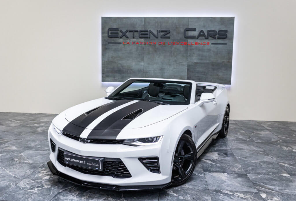 EXTEN’Z CARS vous propose cette séduisante Chevrolet Camaro VI Convertible avec son fantastique V8 6.2 Atmosphérique développant 453 CV (35cv), mise en circulation le 02/07/2018. Associée à une boite à vitesse automatique à huit rapports, si vous préférez une conduite plus sportive, il lui suffit de passer en mode manuel à l’aide des palettes de changement de vitesse au volant pour disposer alors des sept rapports fixes. Cette Camaro distille beaucoup de plaisir à ses occupants tout en offrant un rapport prix/plaisir. En particulier sa silhouette bodybuildée, la position de conduite est parfaite et on peut admirer devant soi le long capot bosselé. Prendre les commandes d’un tel engin, aussi imposant par le gabarit que par son histoire, génère des sensations extraordinaires.