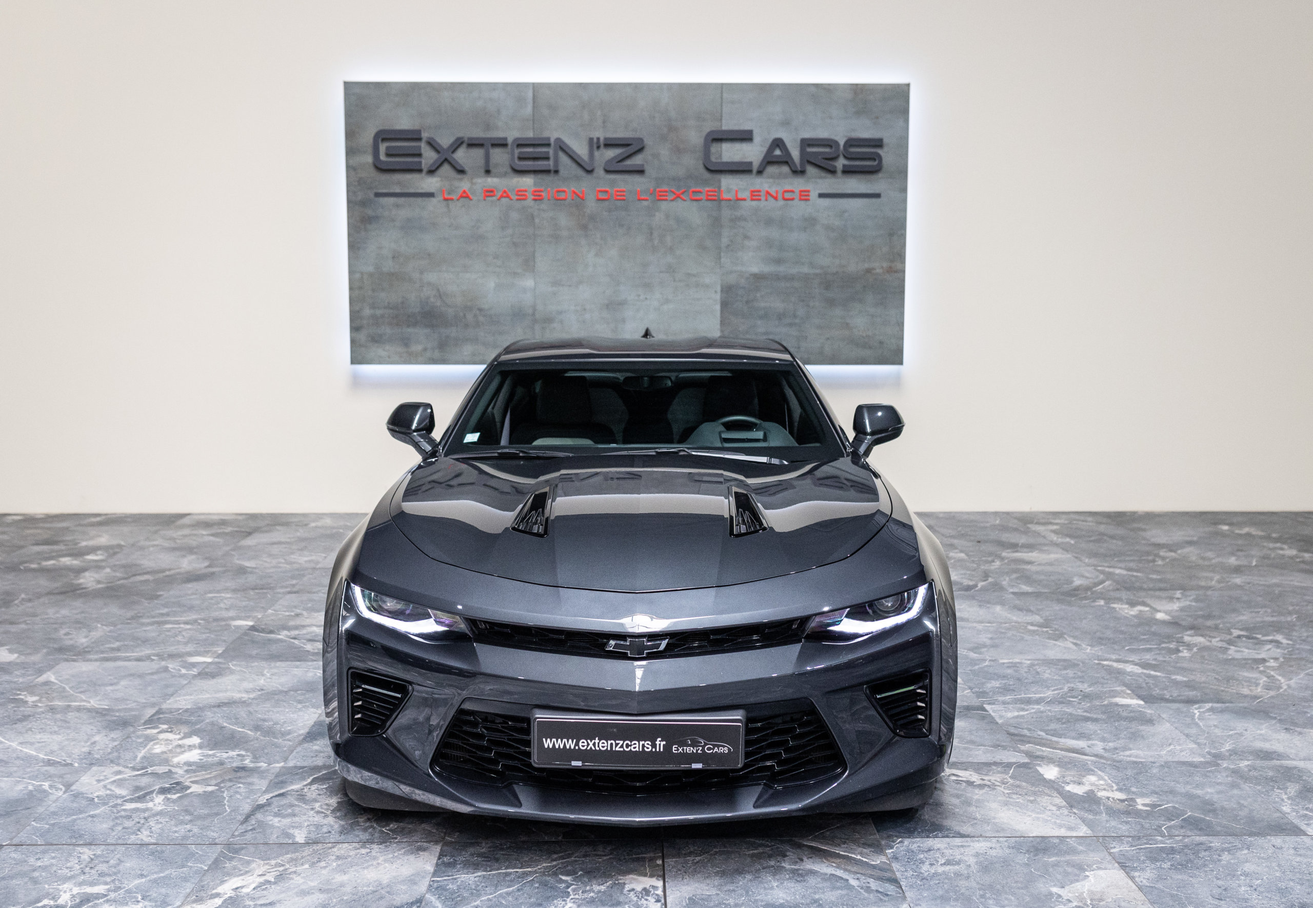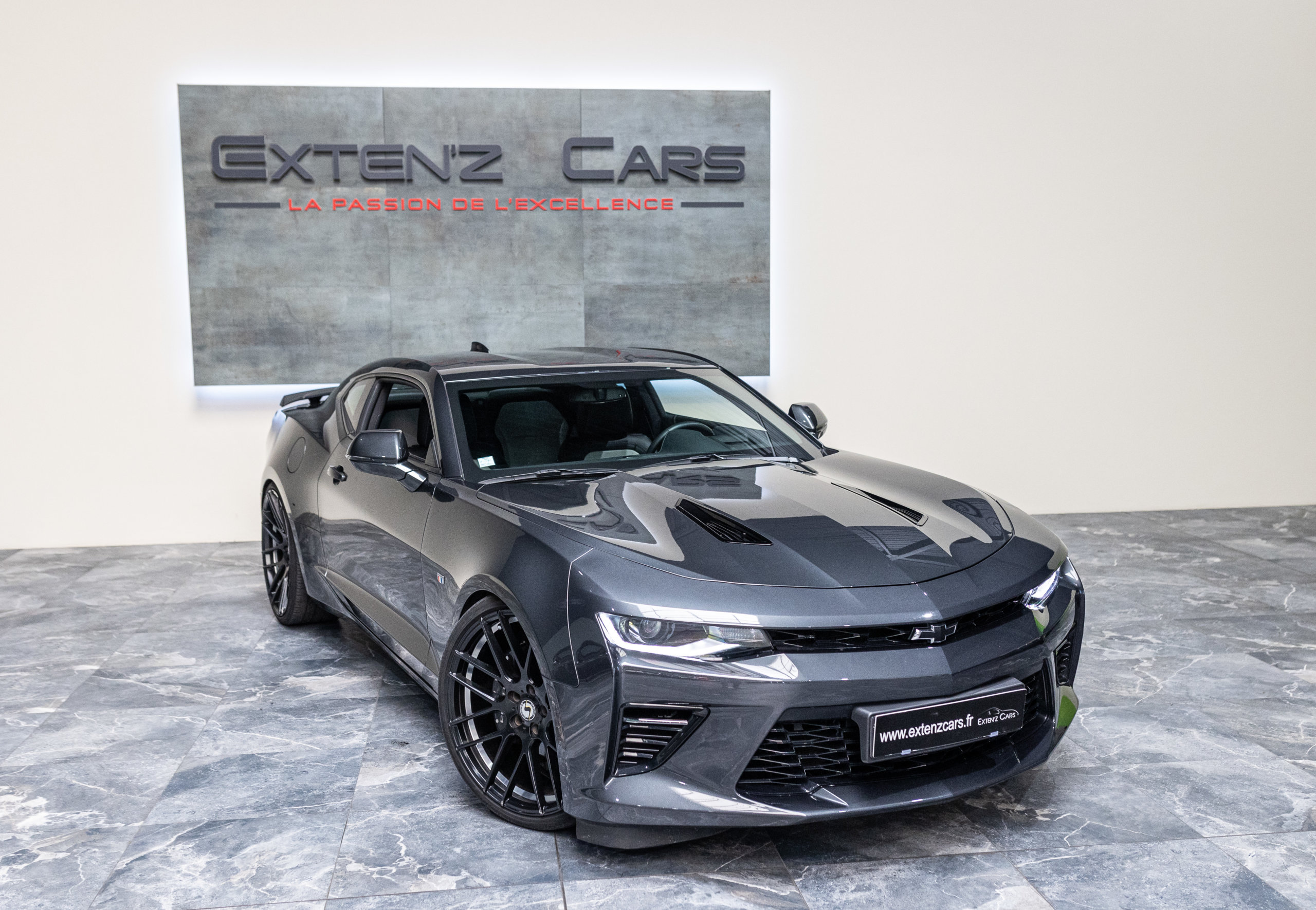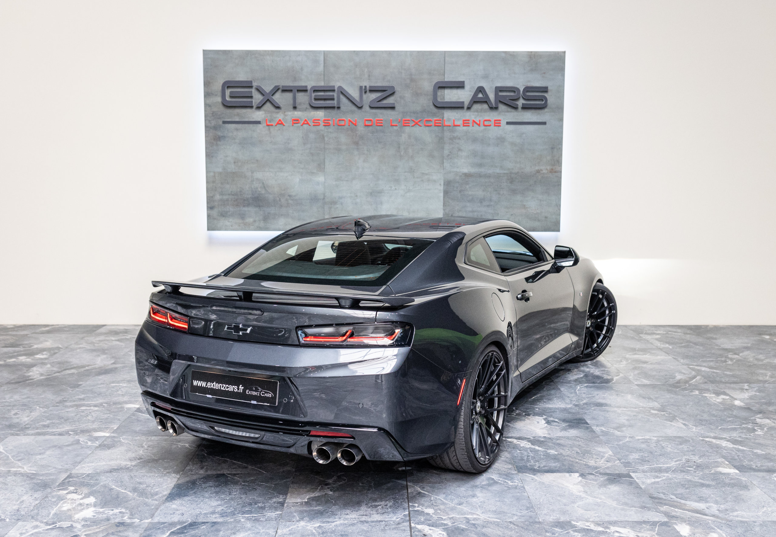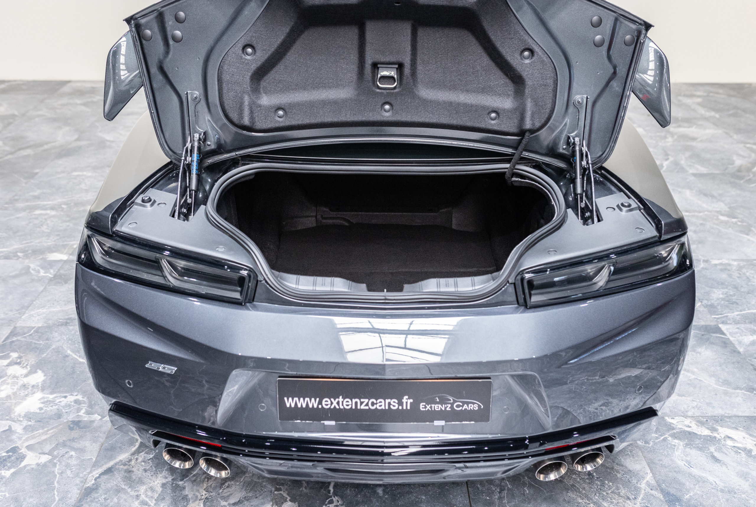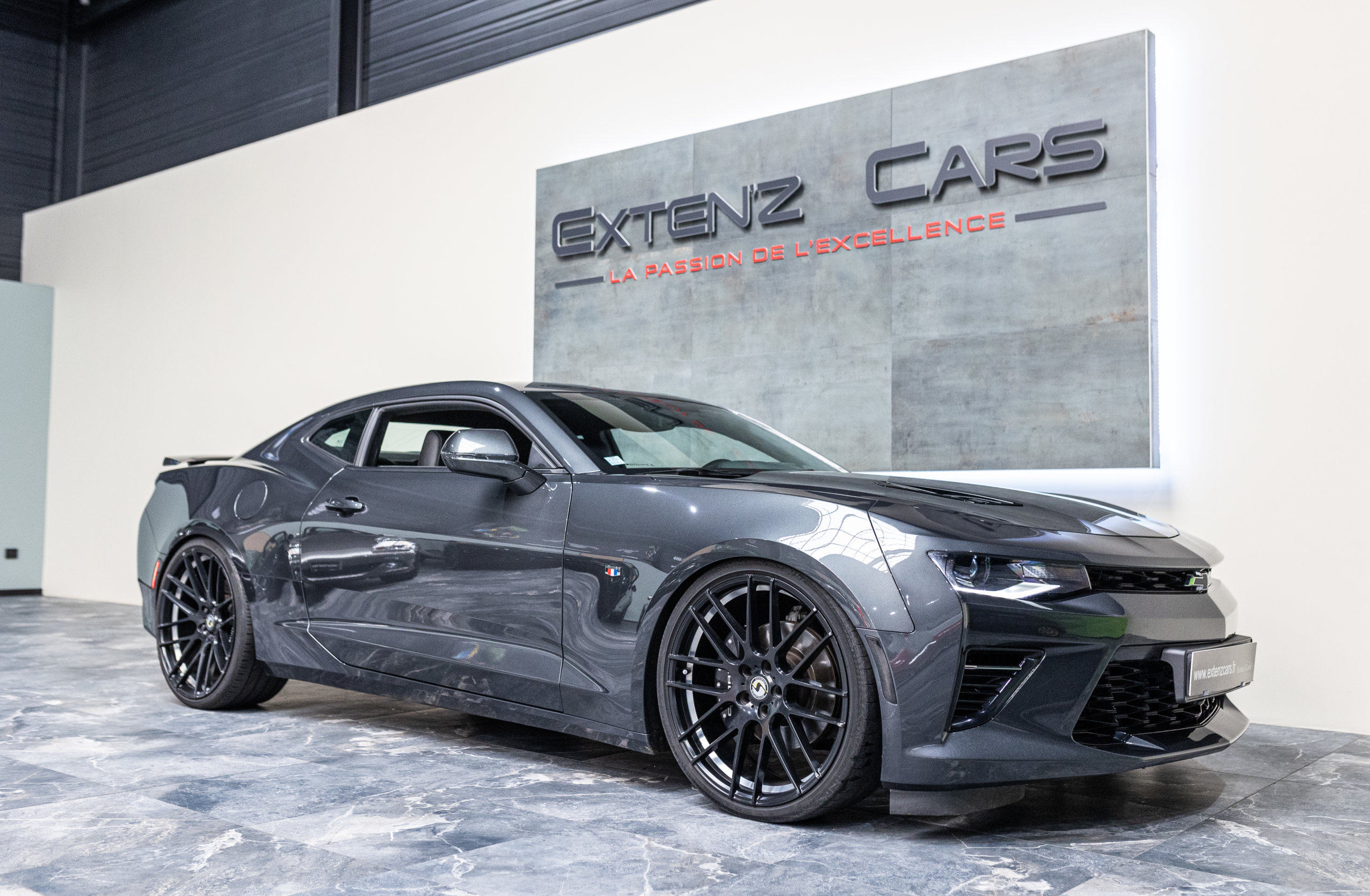 EXTEN’Z CARS vous propose cette séduisante Chevrolet Camaro VI Coupé avec son fantastique V8 6.2 Atmosphérique développant 453 CV (35cv), mise en circulation le 21/12/2016 de couleur NightFall Grey Métallic. Associée à une boite à vitesse automatique à 8 rapports, si vous préférez une conduite plus sportive, il lui suffit de passer en mode manuel à l’aide des palettes de changement de vitesse au volant pour disposer alors des 8 rapports fixes. Cette Camaro distille beaucoup de plaisir à ses occupants tout en offrant un rapport prix/plaisir. En particulier sa silhouette bodybuildée, la position de conduite est parfaite et on peut admirer devant soi le long capot bosselé. Prendre les commandes d’un tel engin, aussi imposant par le gabarit que par son histoire, génère des sensations extraordinaires.