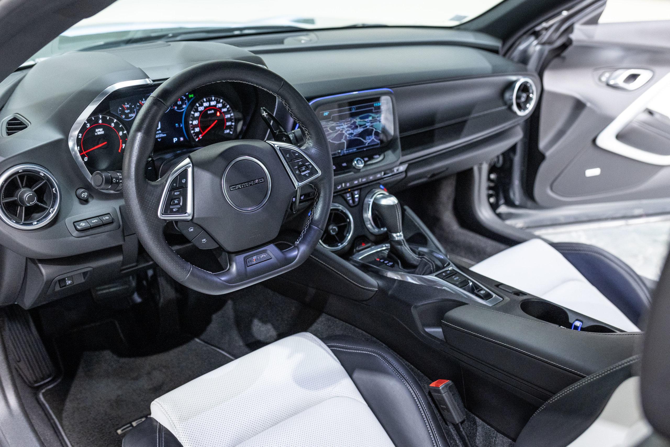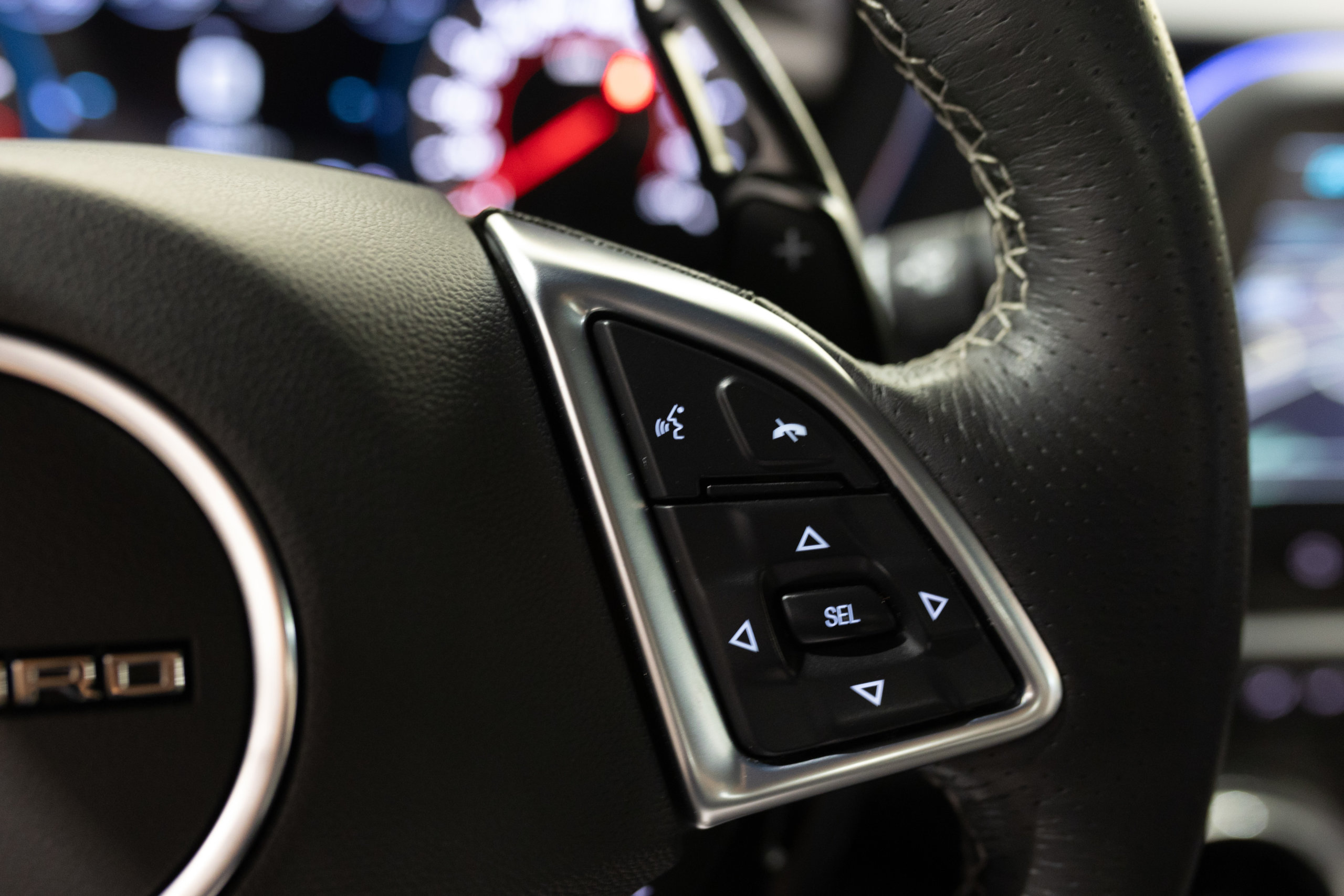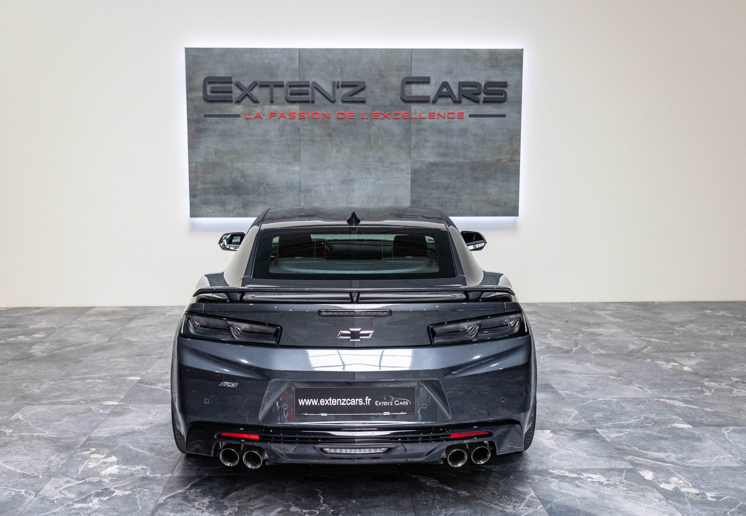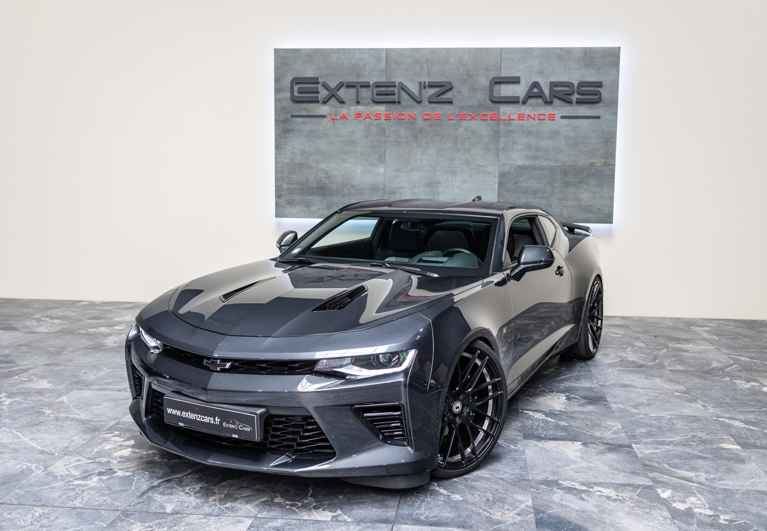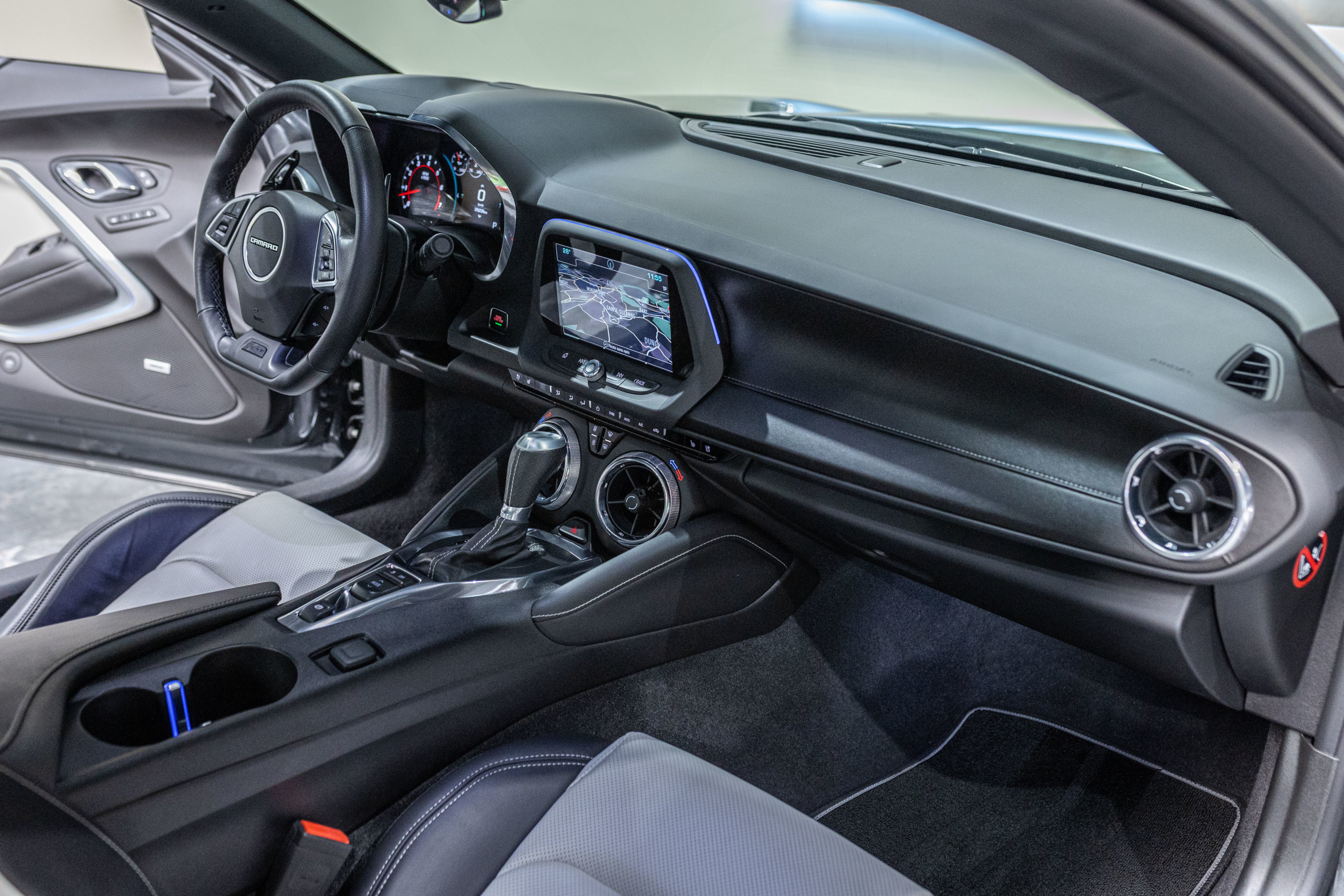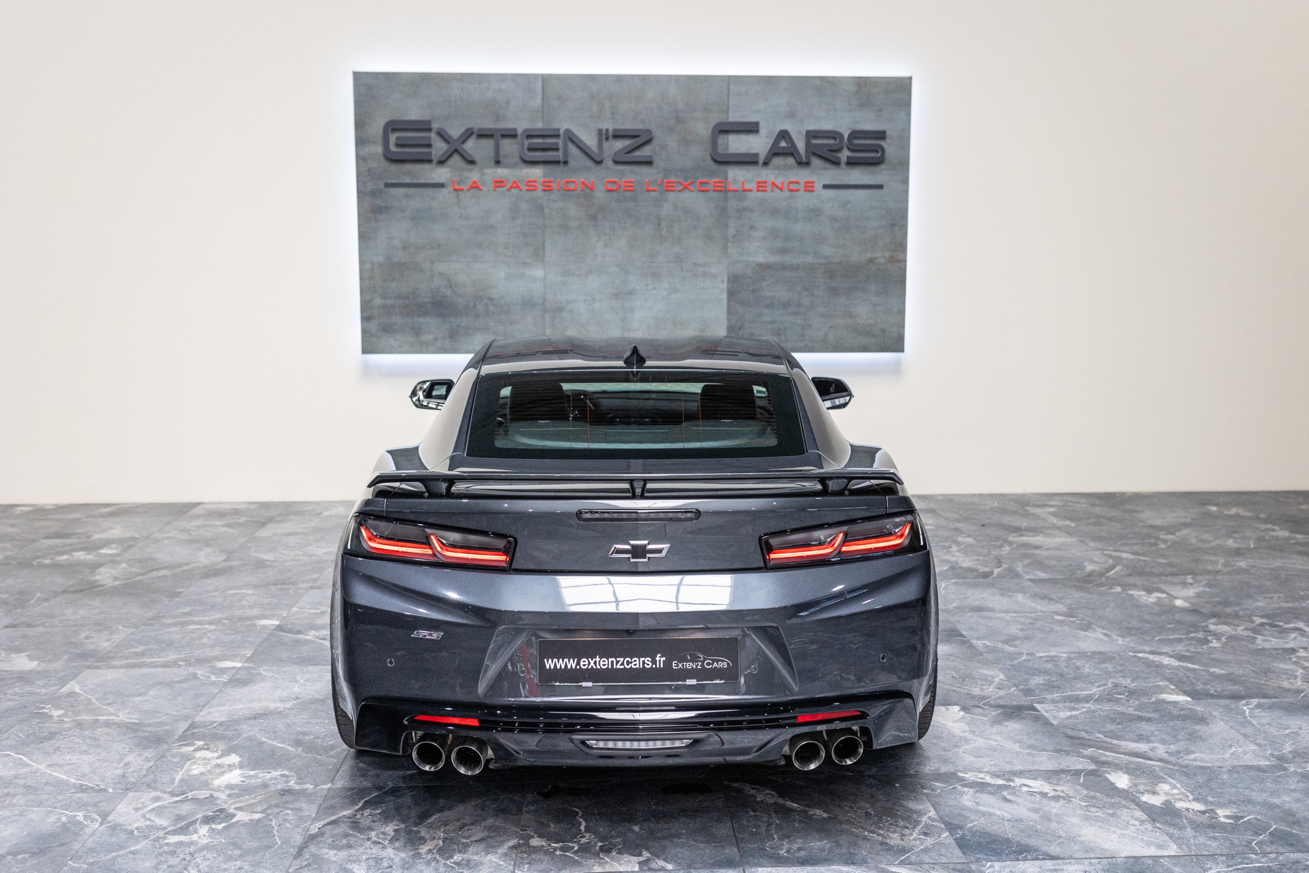 EXTEN’Z CARS vous propose cette séduisante Chevrolet Camaro VI Coupé avec son fantastique V8 6.2 Atmosphérique développant 453 CV (35cv), mise en circulation le 21/12/2016 de couleur NightFall Grey Métallic. Associée à une boite à vitesse automatique à 8 rapports, si vous préférez une conduite plus sportive, il lui suffit de passer en mode manuel à l’aide des palettes de changement de vitesse au volant pour disposer alors des 8 rapports fixes. Cette Camaro distille beaucoup de plaisir à ses occupants tout en offrant un rapport prix/plaisir. En particulier sa silhouette bodybuildée, la position de conduite est parfaite et on peut admirer devant soi le long capot bosselé. Prendre les commandes d’un tel engin, aussi imposant par le gabarit que par son histoire, génère des sensations extraordinaires.